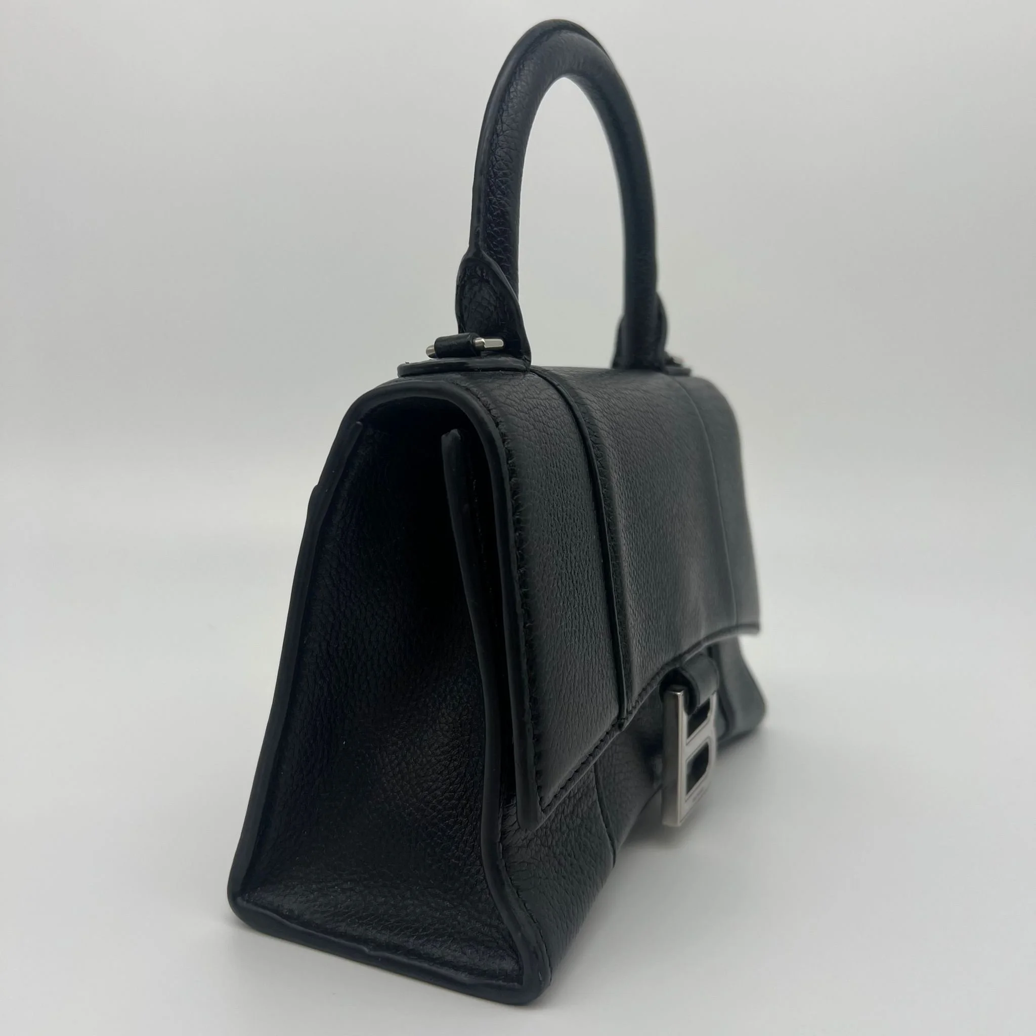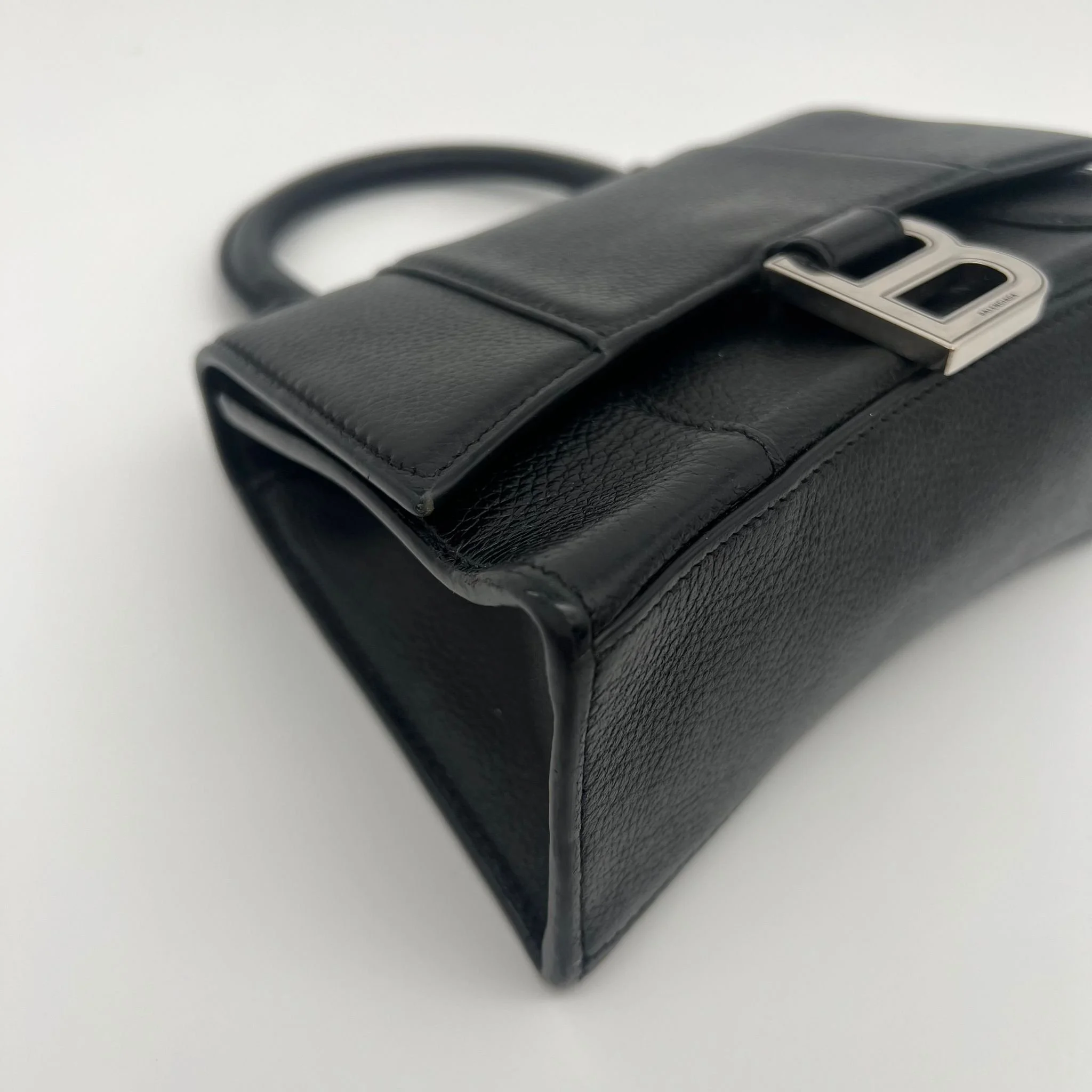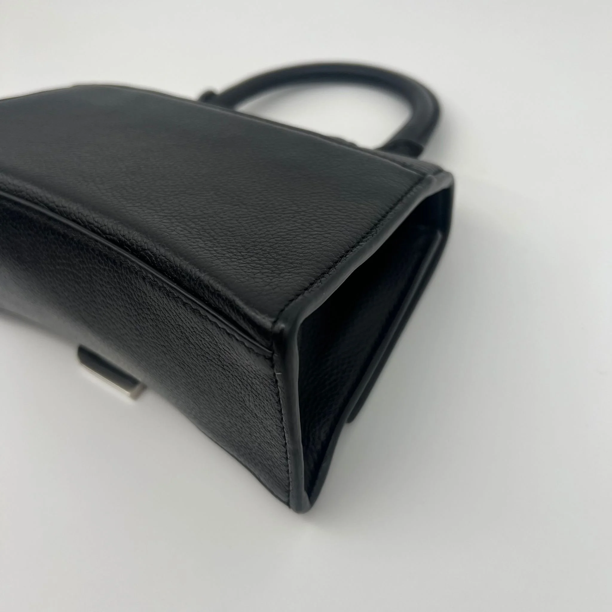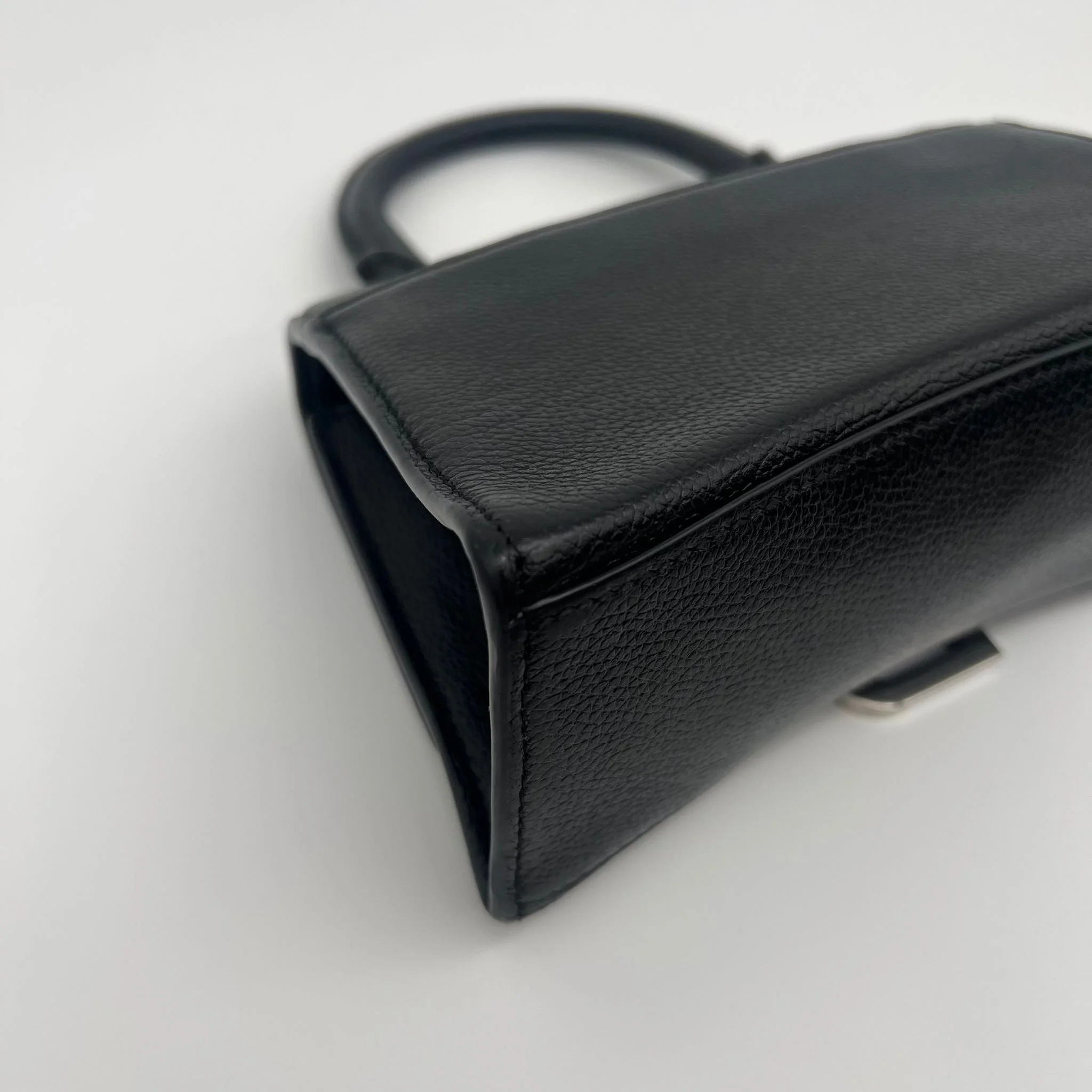 Balenciaga Hourglass Bag XS Black Grained Leather with Silver Hardware