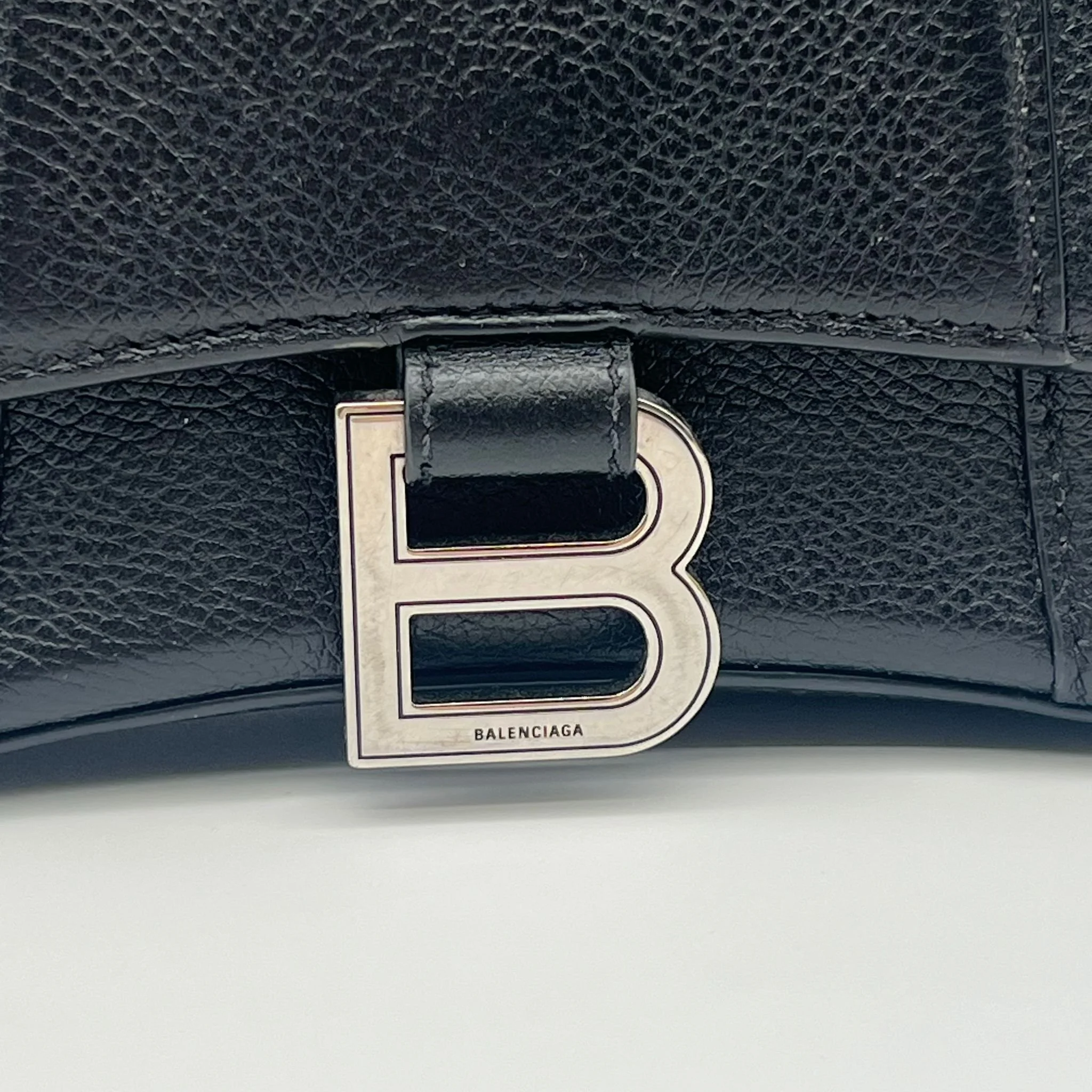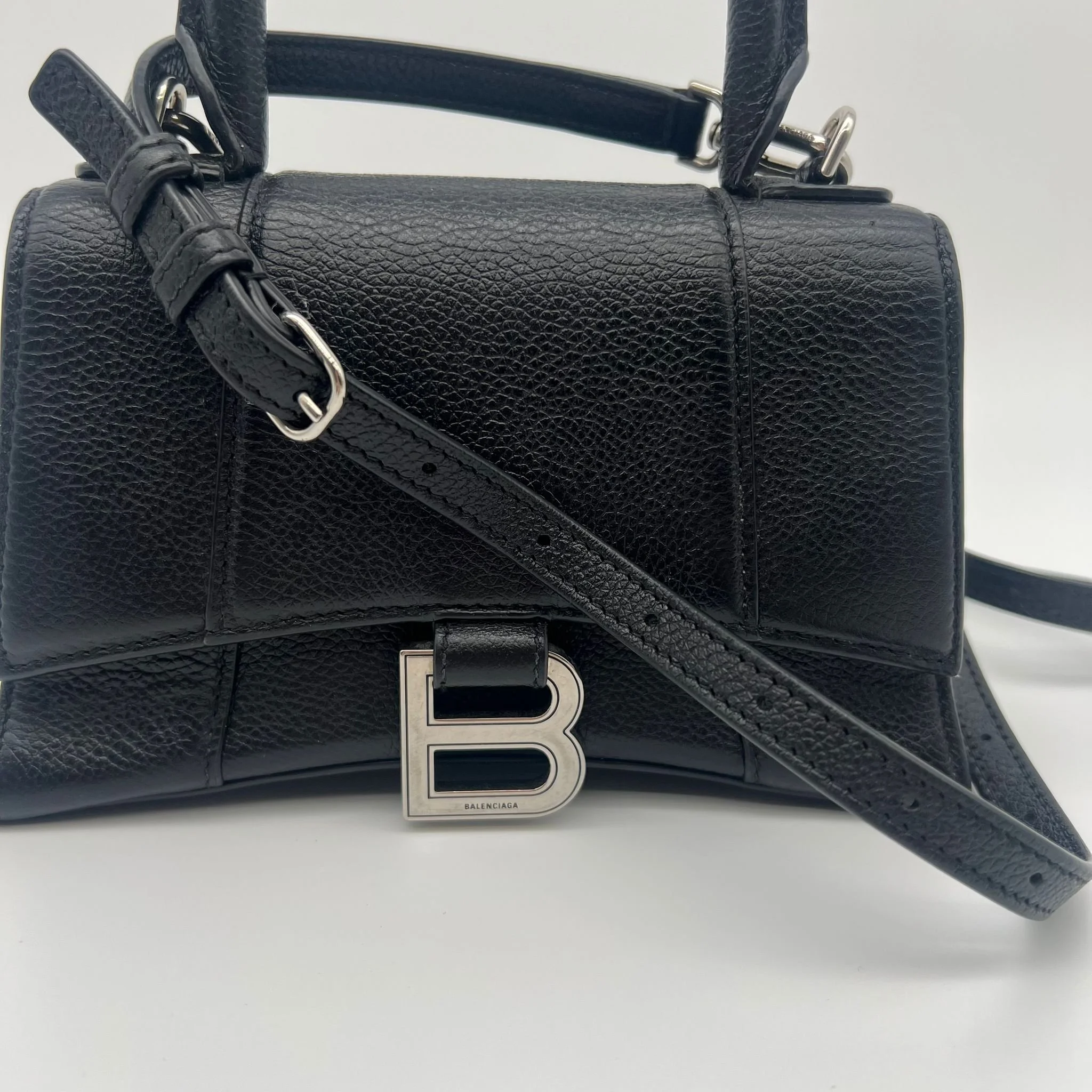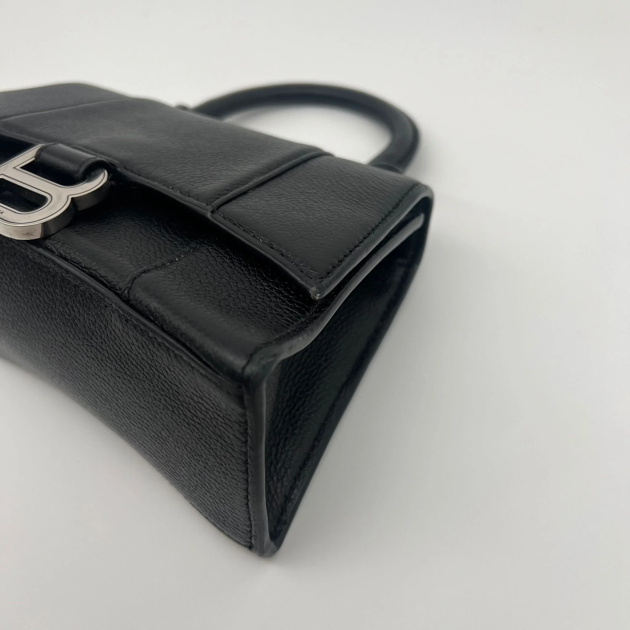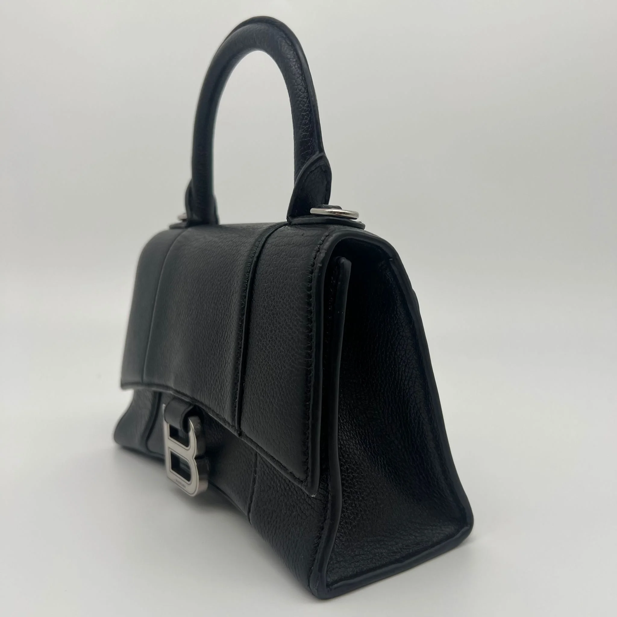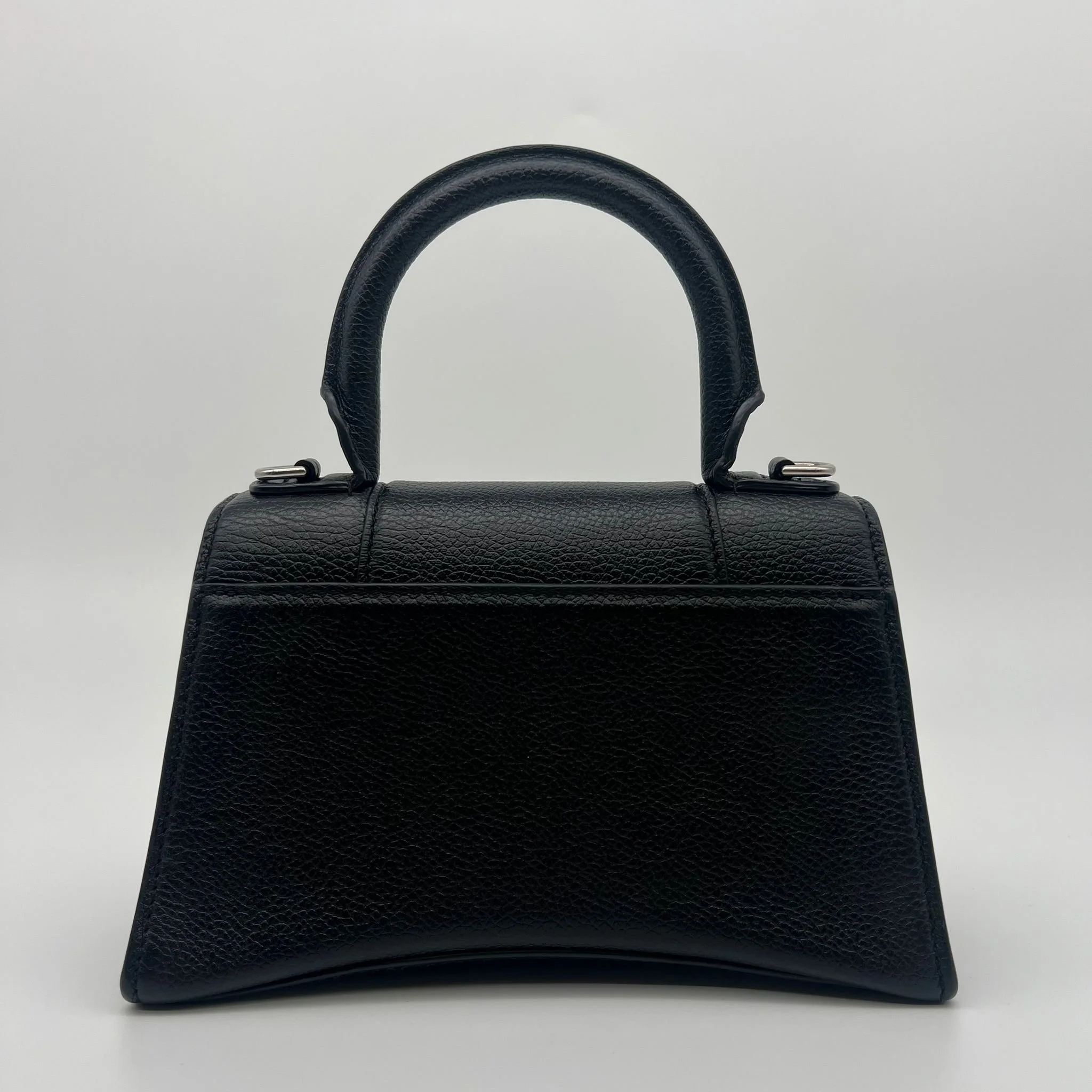 Balenciaga Hourglass Bag XS Black Grained Leather with Silver Hardware