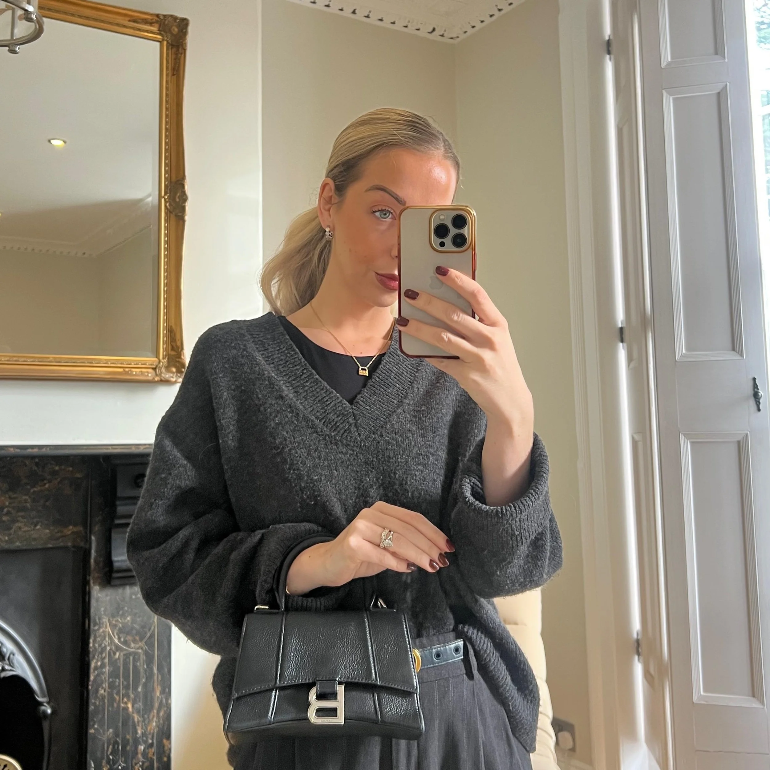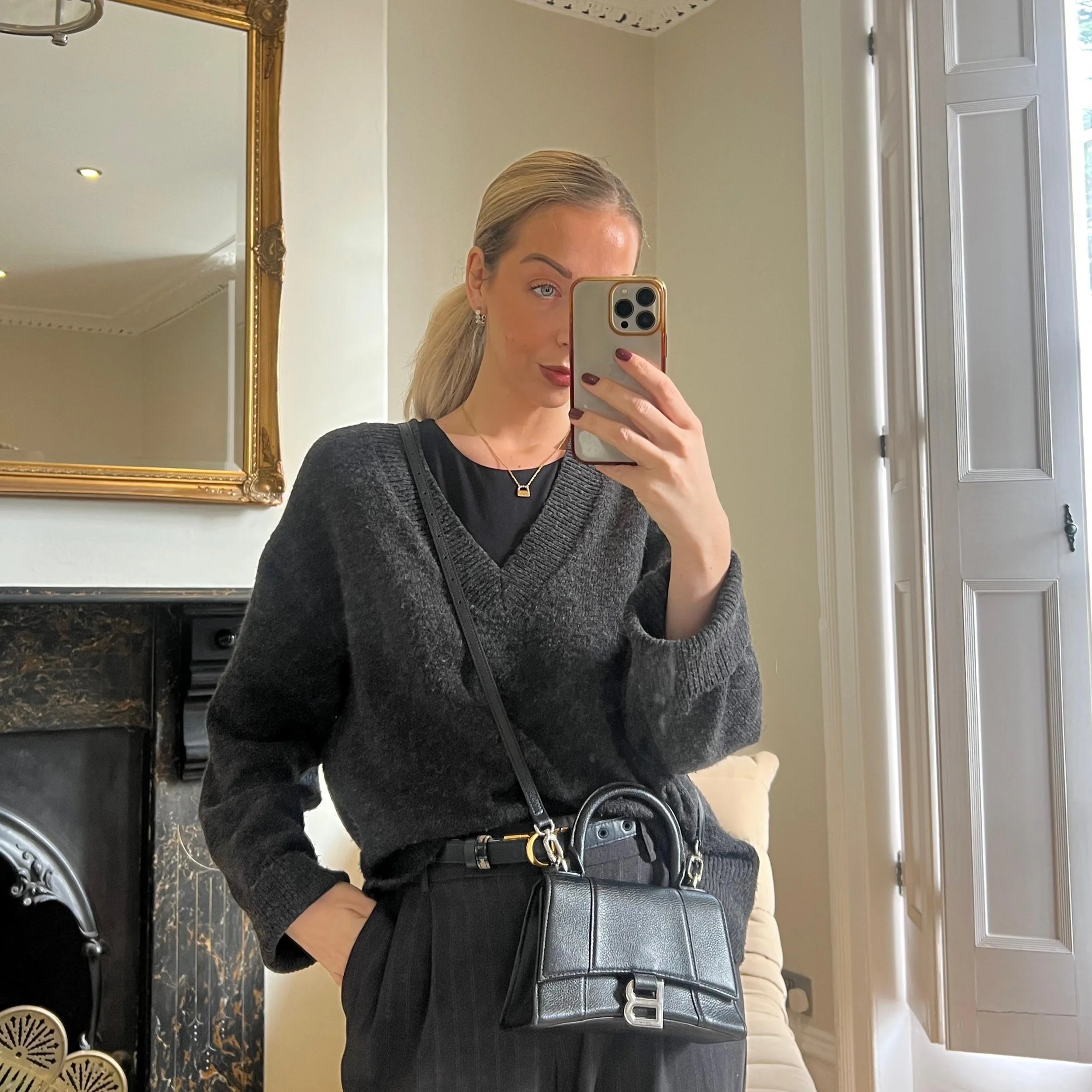 Item Description/Model: Balenciaga Hourglass Bag XS in Black Grained Leather with Silver Hardware