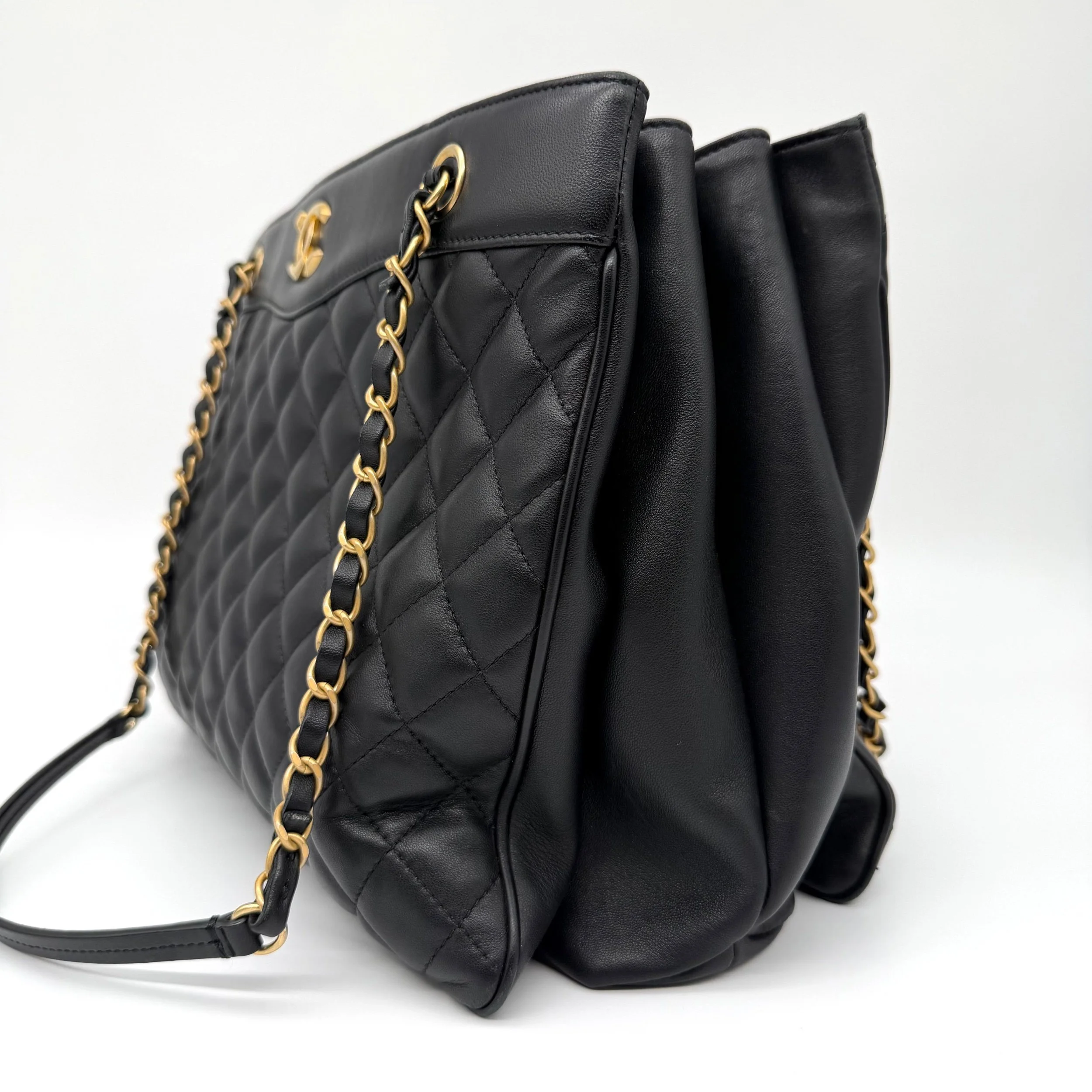 Chanel Large Timeless Classic Tote Bag in Black Quilted Lambskin Leather Gold Hardware