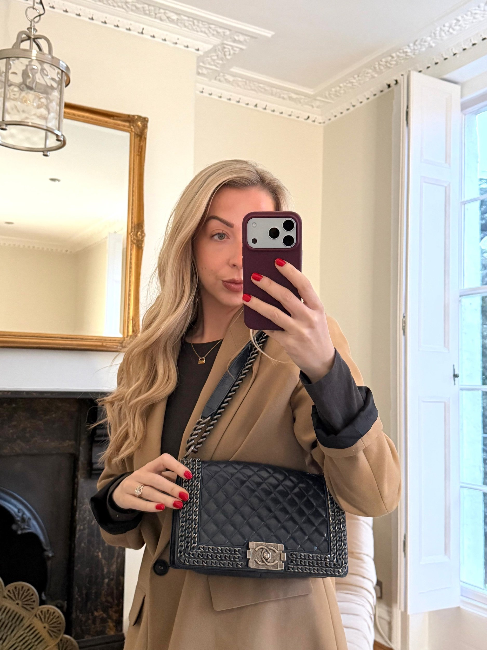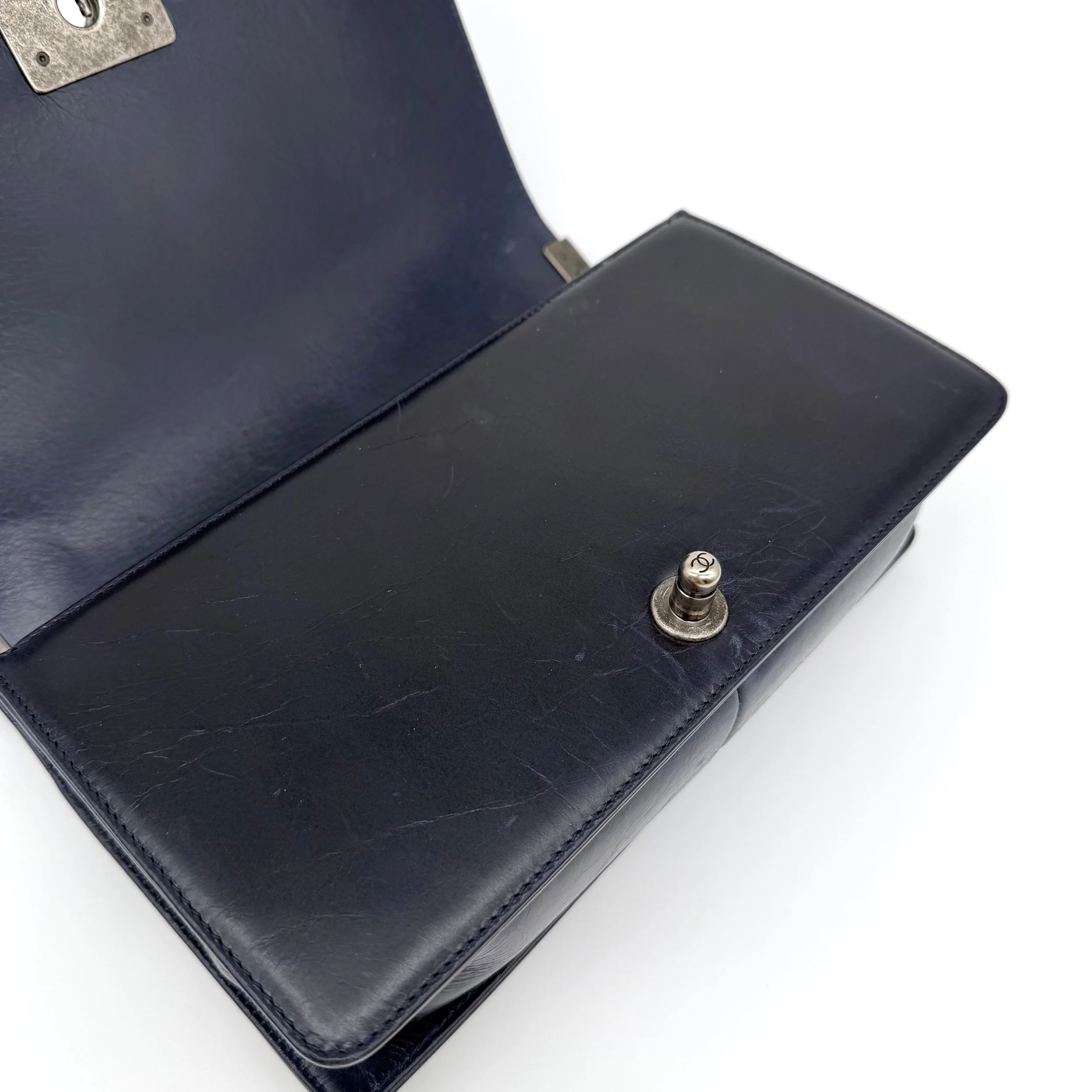 Chanel Medium Boy Flap Bag in Quilted Navy Crumpled Leather