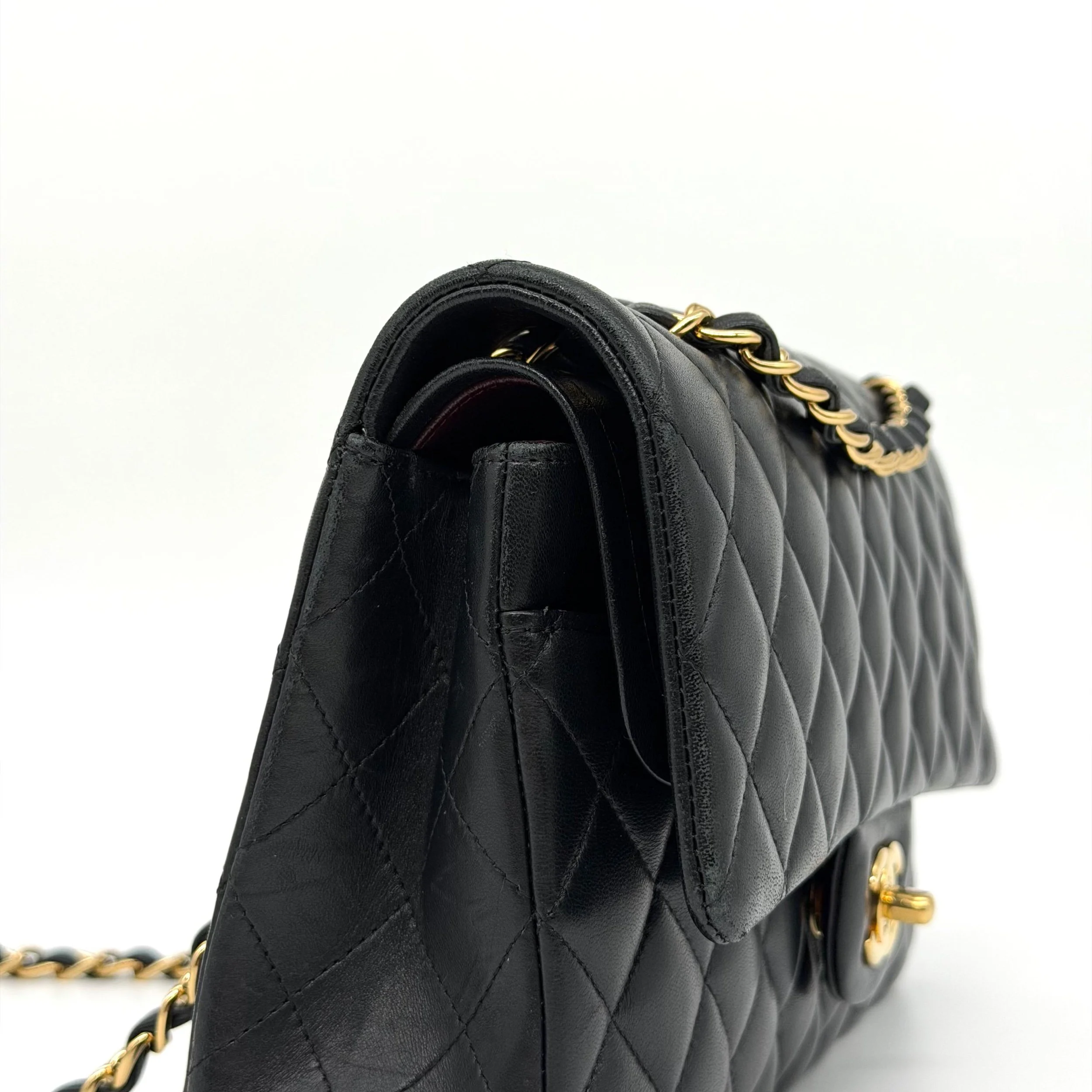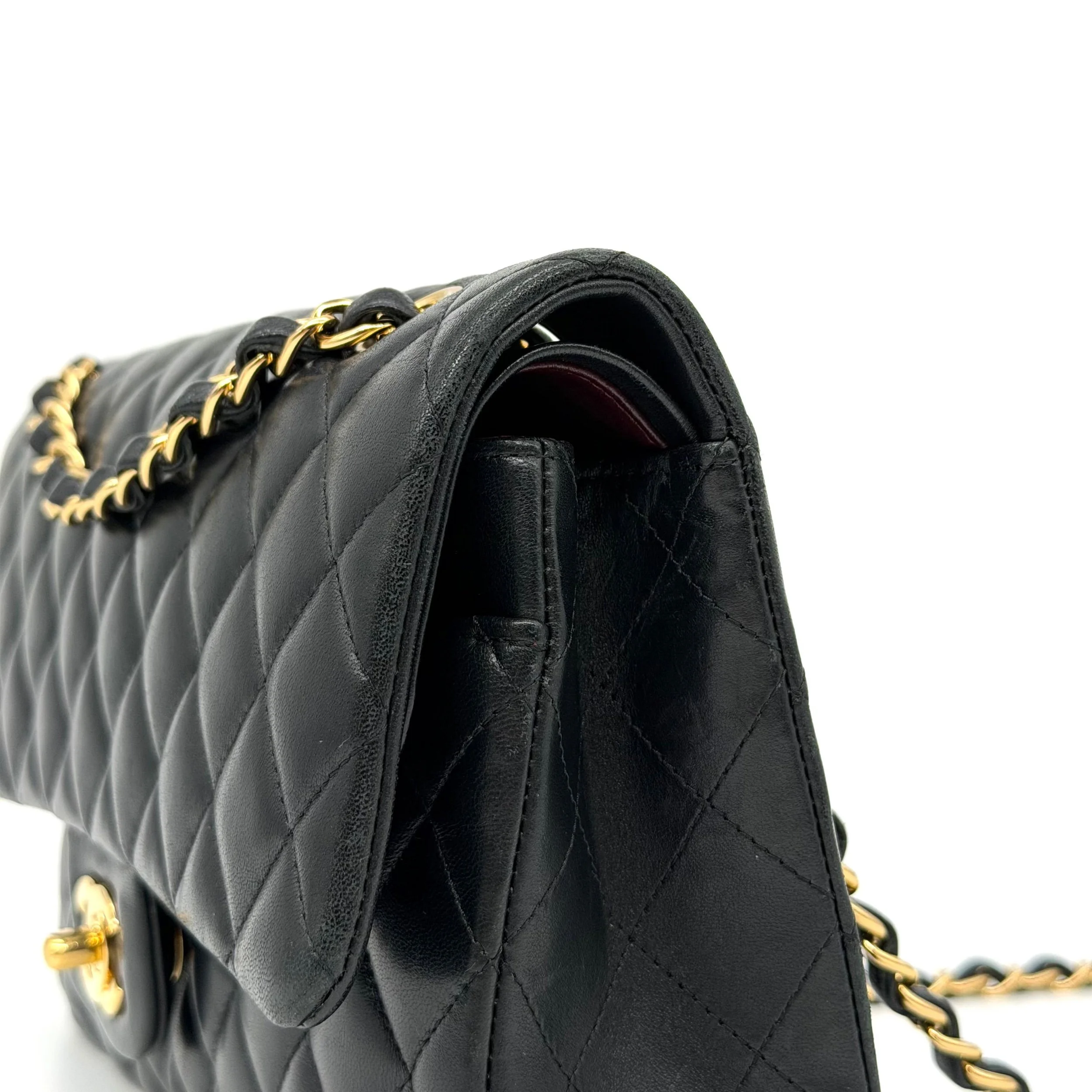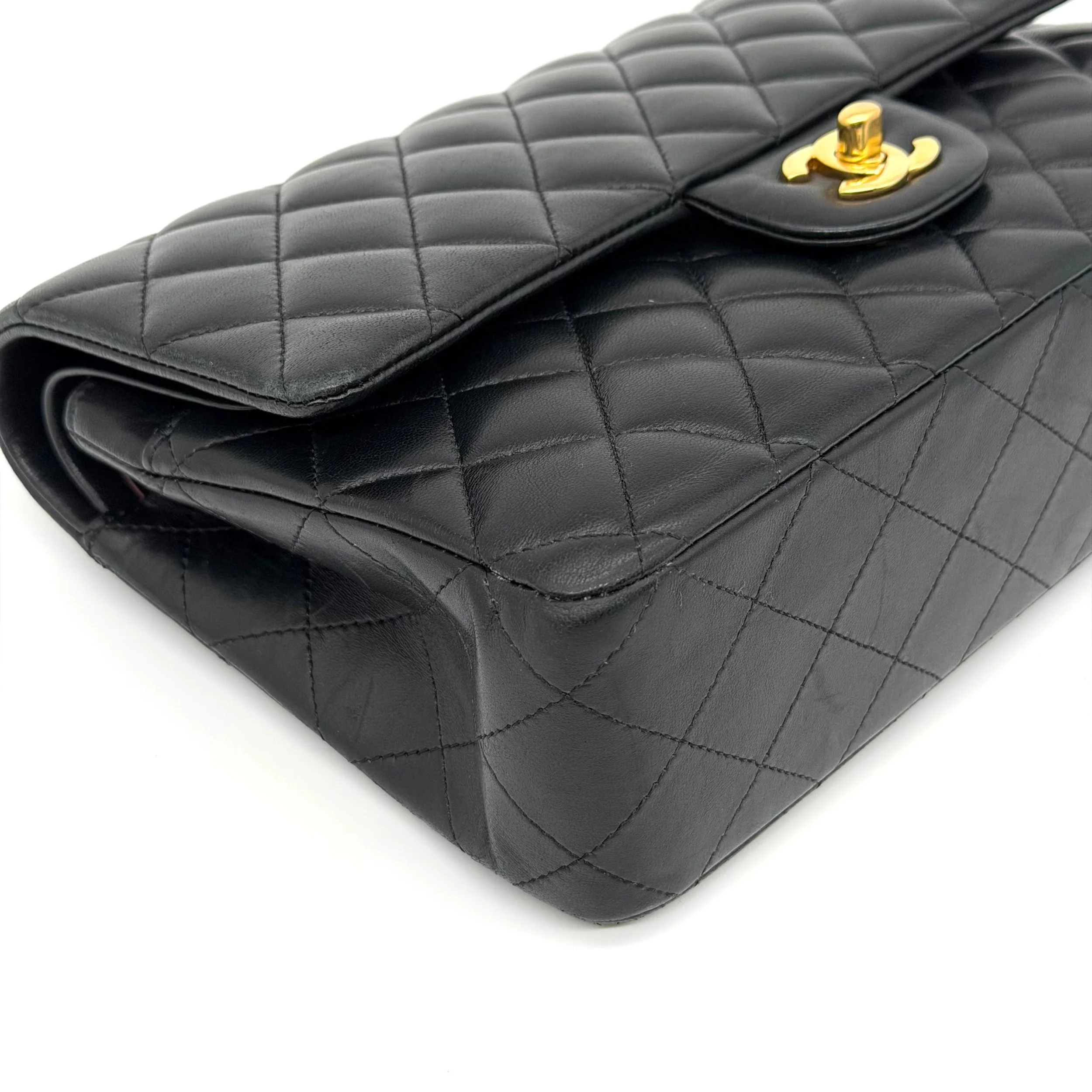 Item Description/Model: Chanel Medium Classic Double Flap Bag in Black Quilted Lambskin Leather Gold Hardware