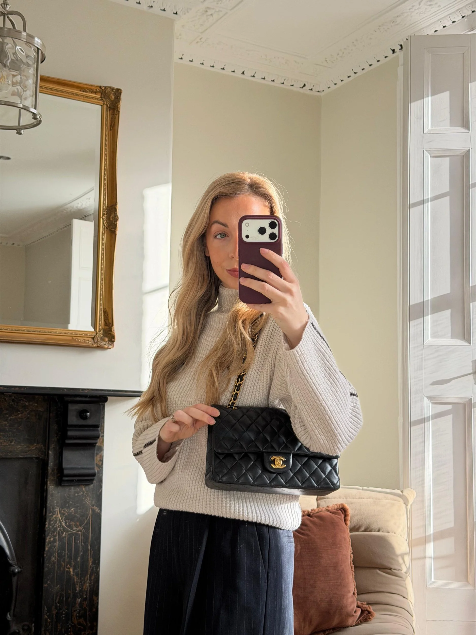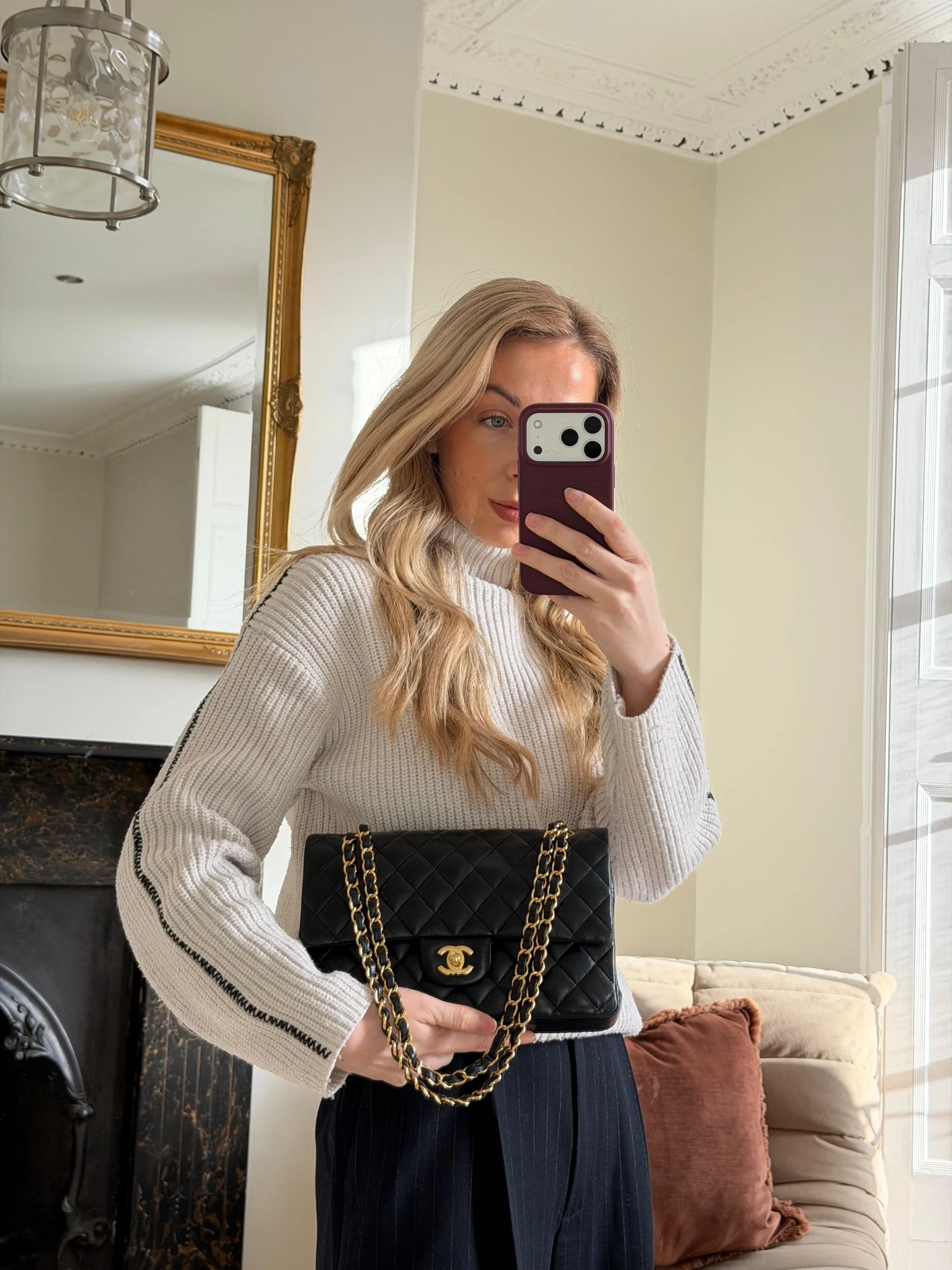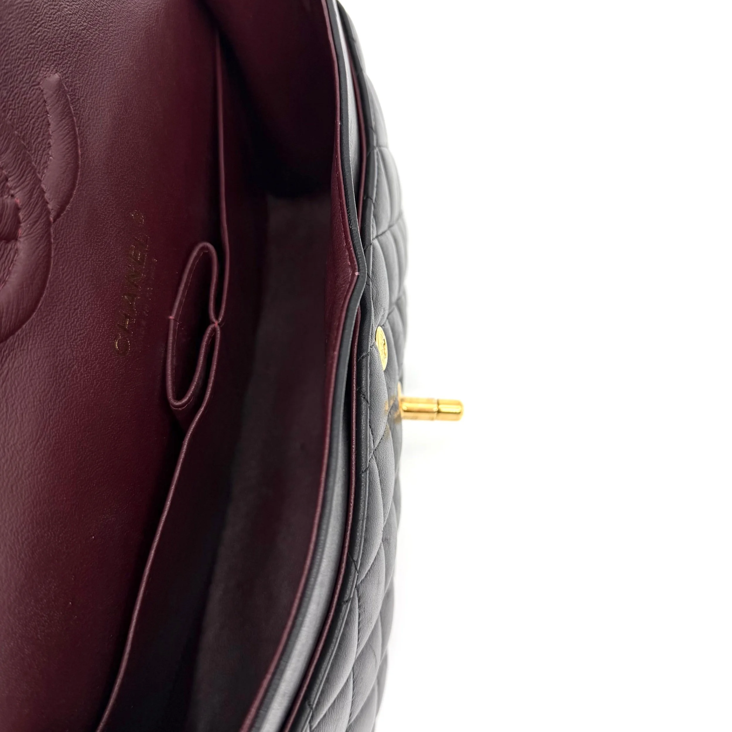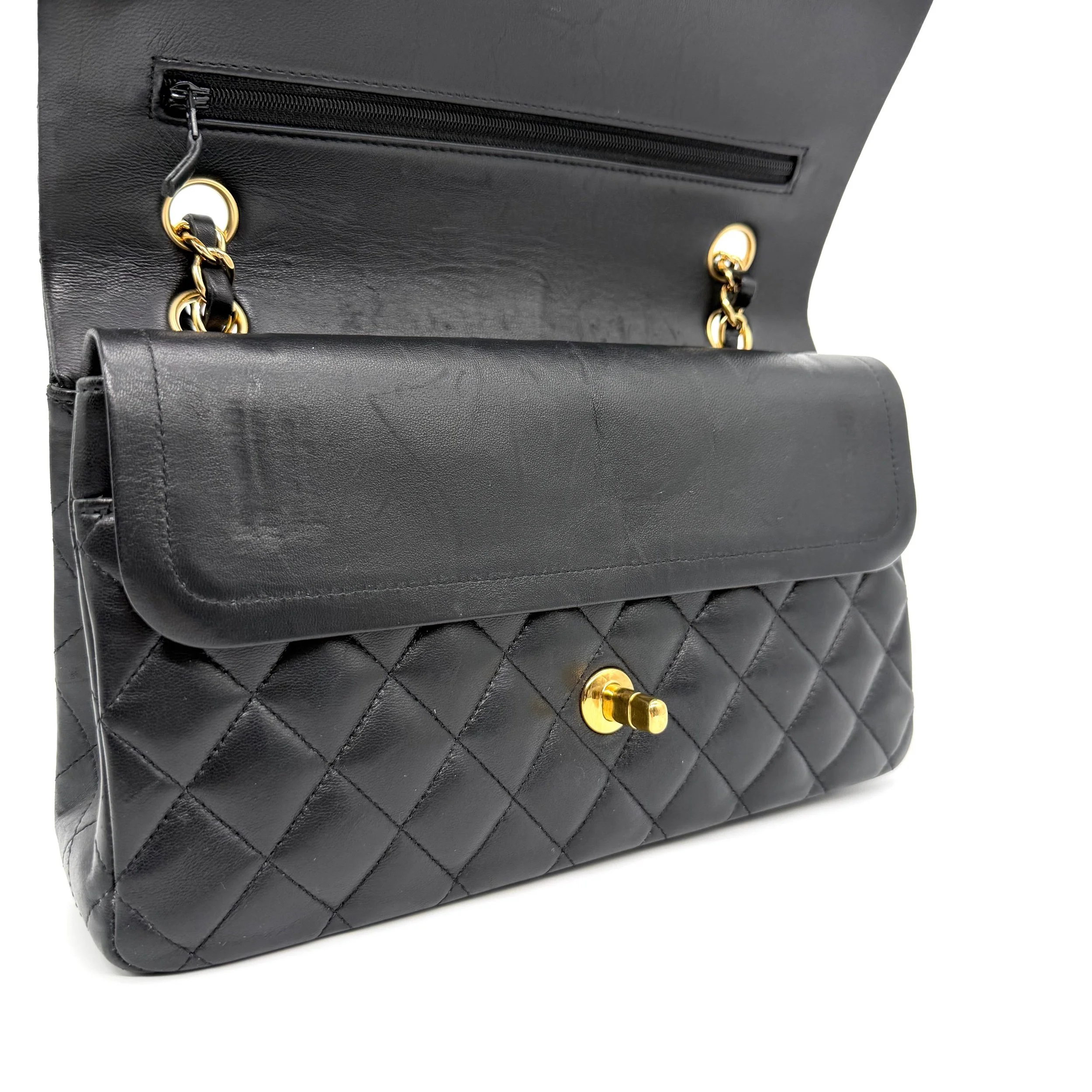 Item Description/Model: Chanel Medium Classic Double Flap Bag in Black Quilted Lambskin Leather Gold Hardware