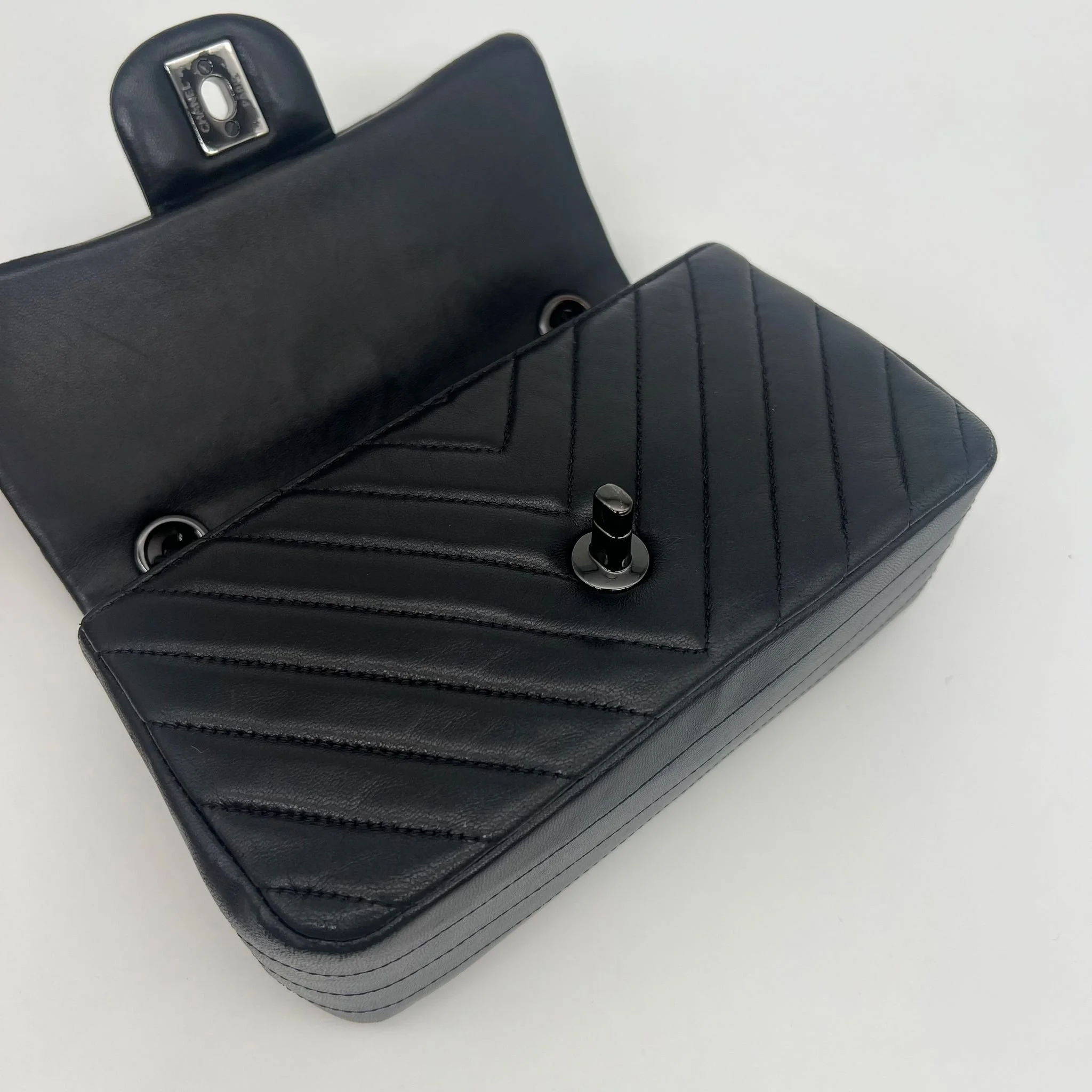 Item Description/Model: Chanel Mini Timeless Classic Rectangular Flap Bag So Black in Black Quilted Chevron Lambskin Leather
