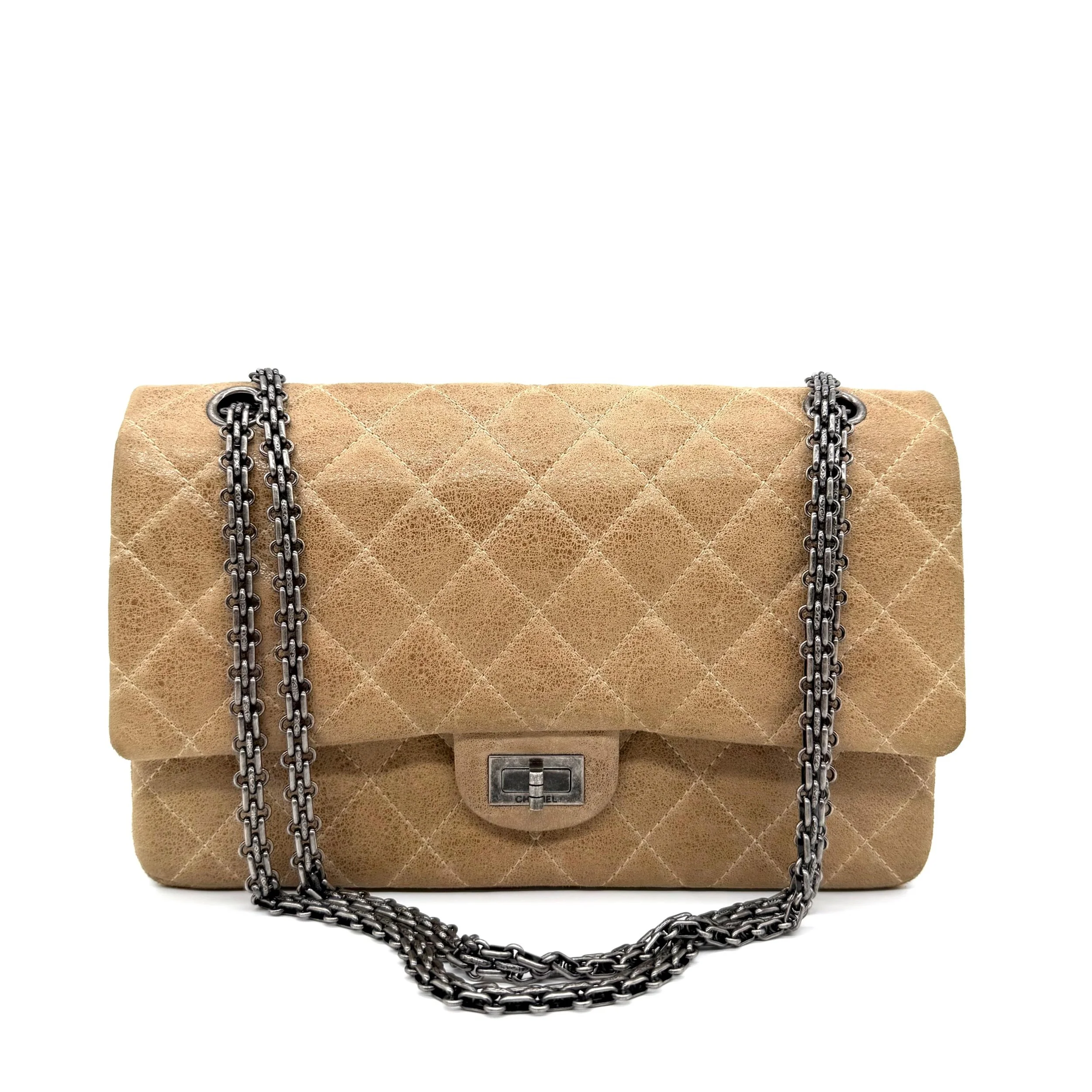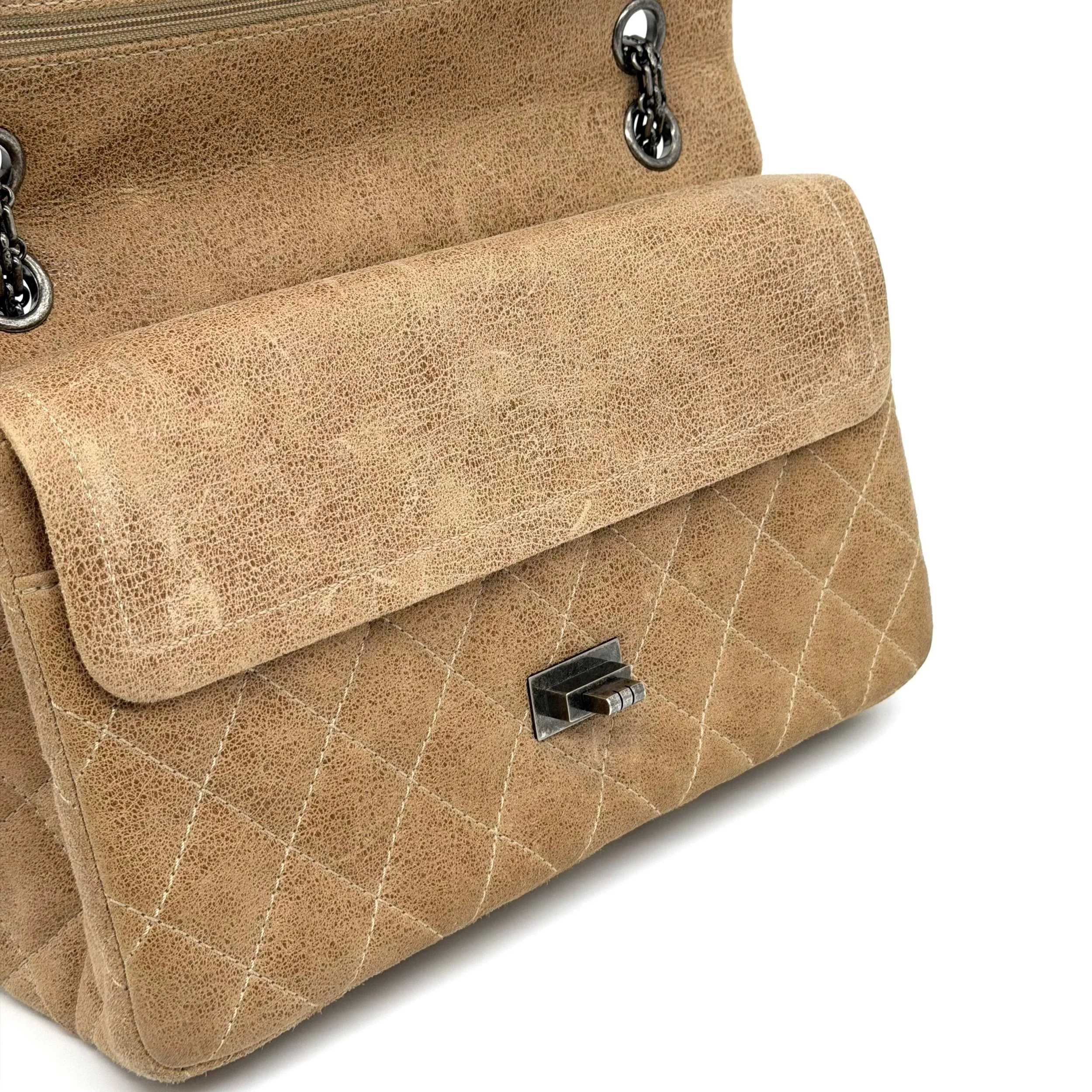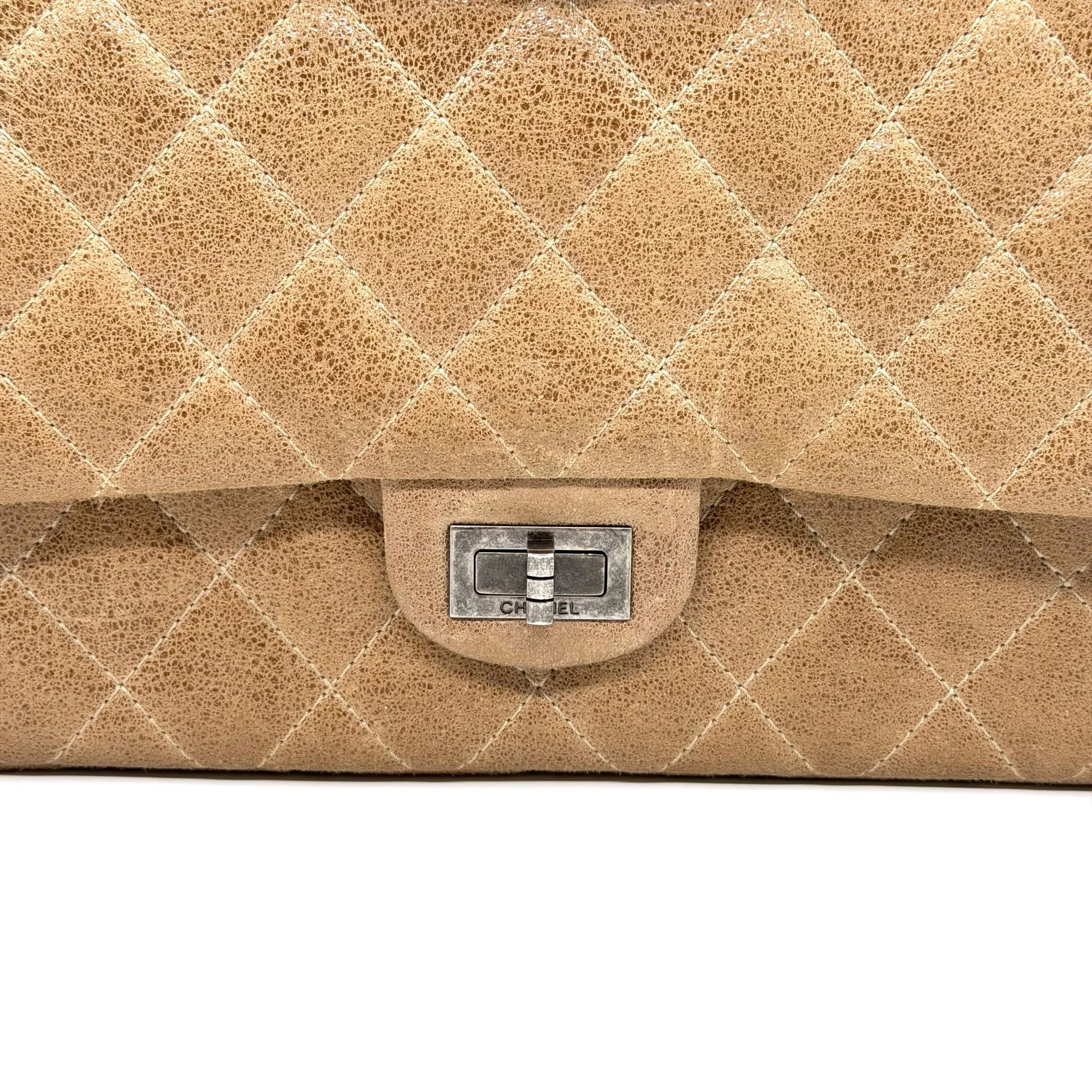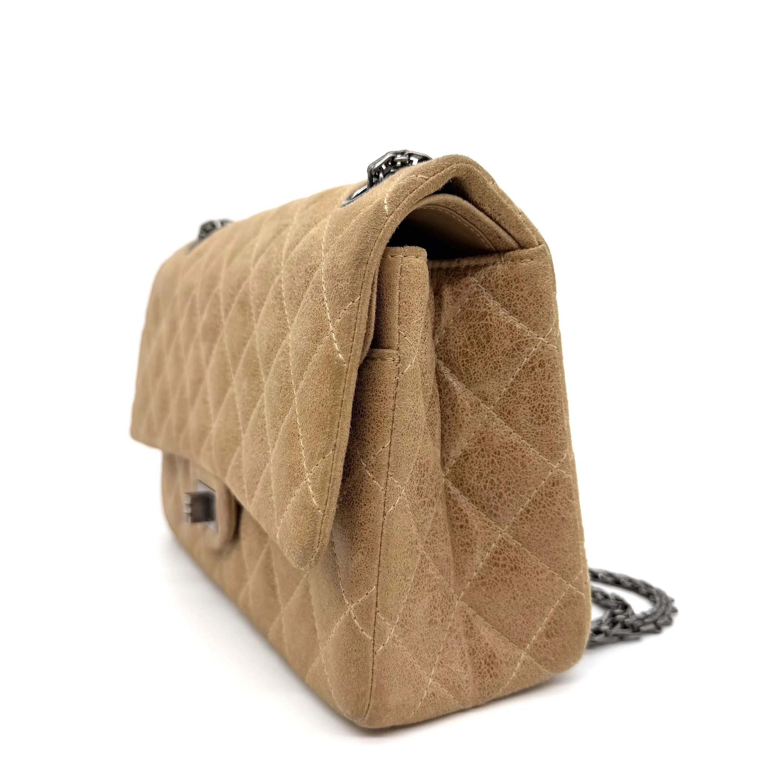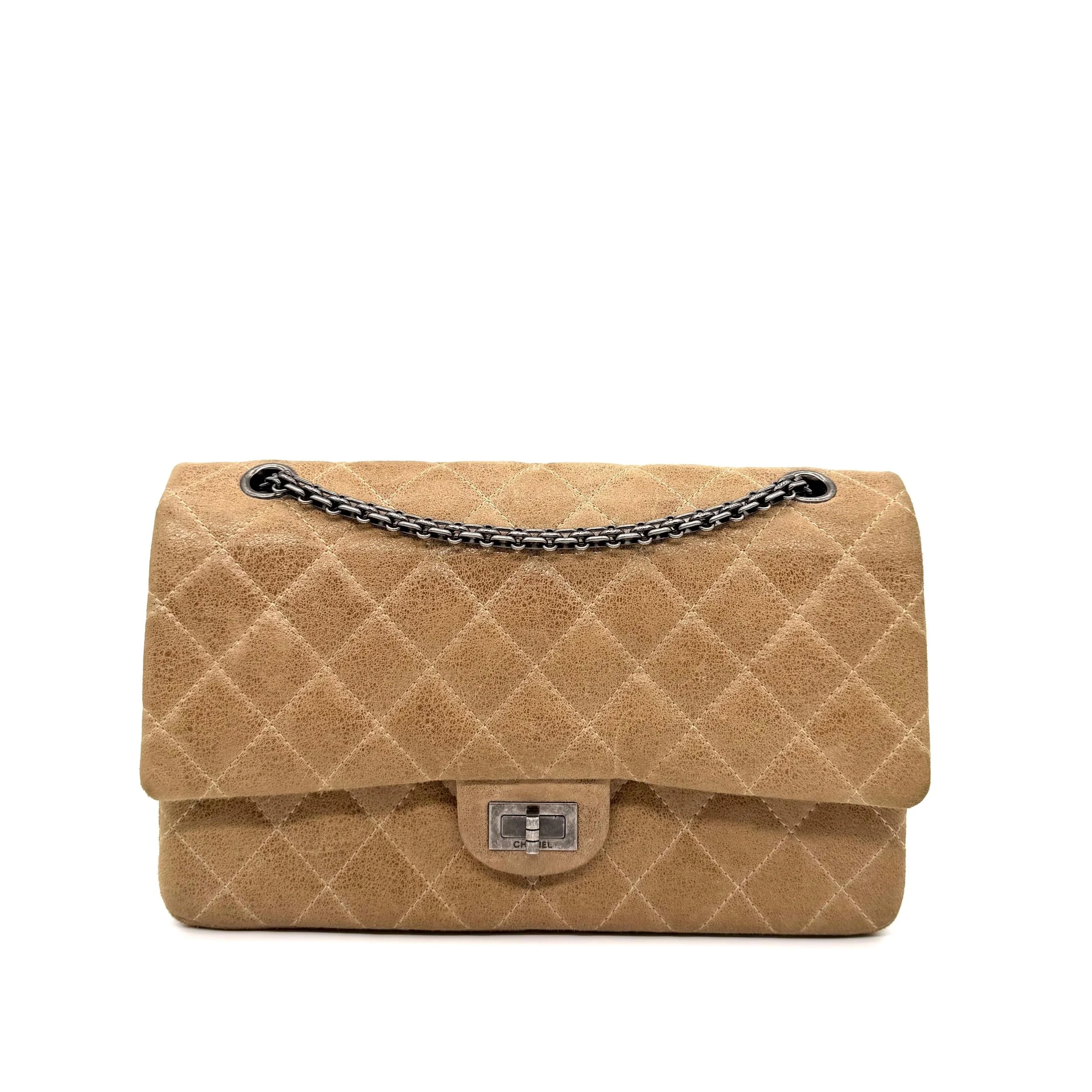 Item Description/Model: Chanel Reissue 226 2.55 Flap Bag in Metallic Dark Beige Quilted Pony - Style Calfskin Leather and Ruthenium Hardware