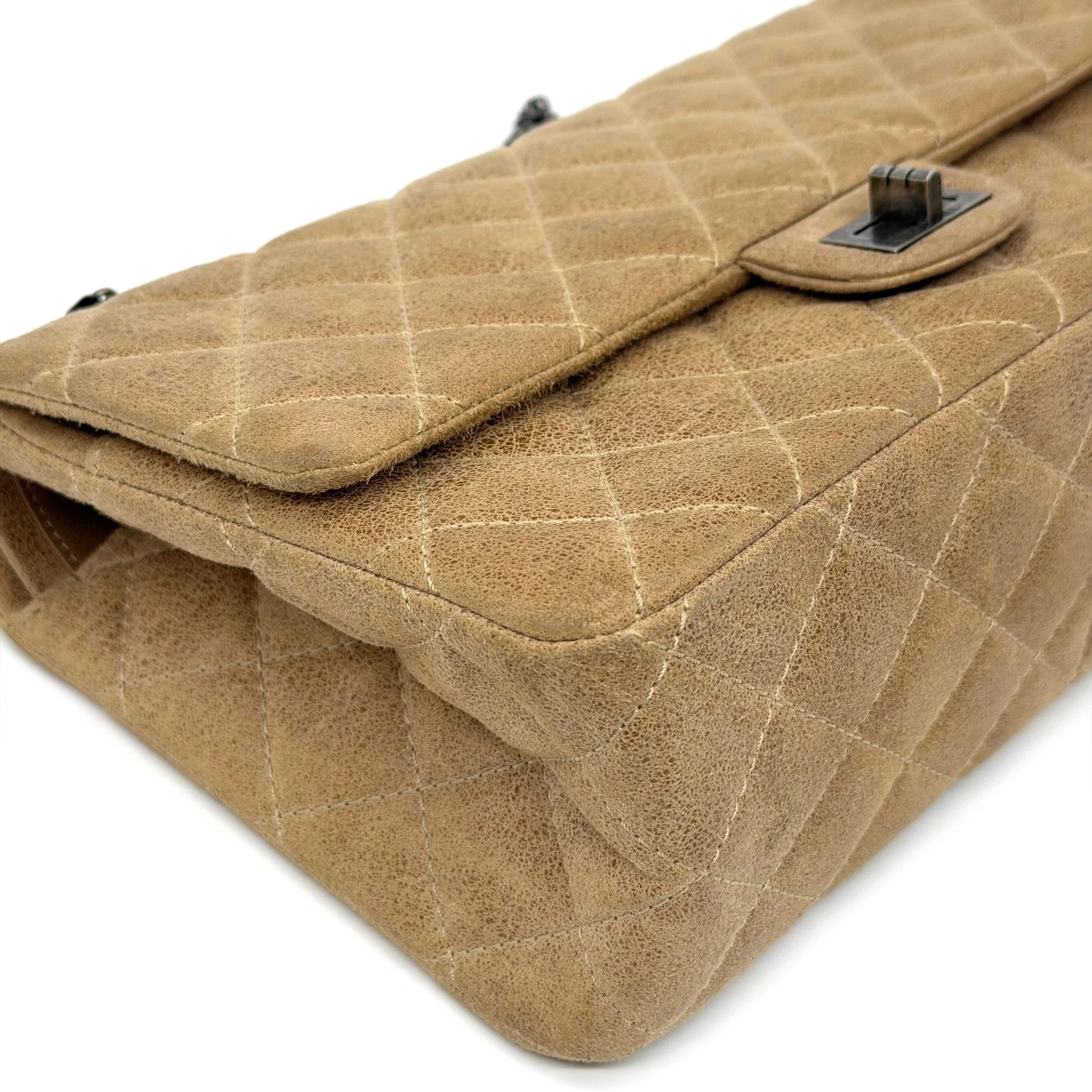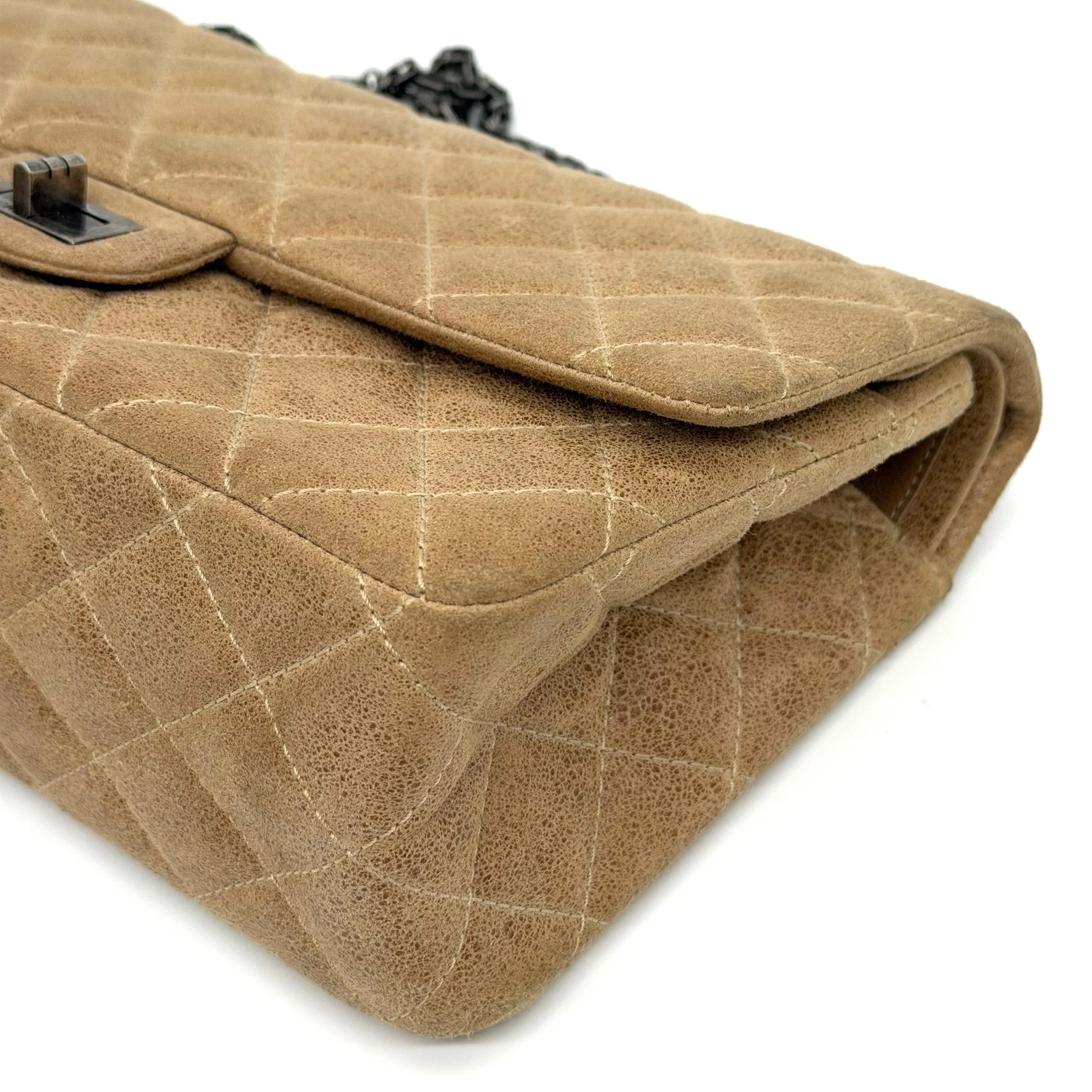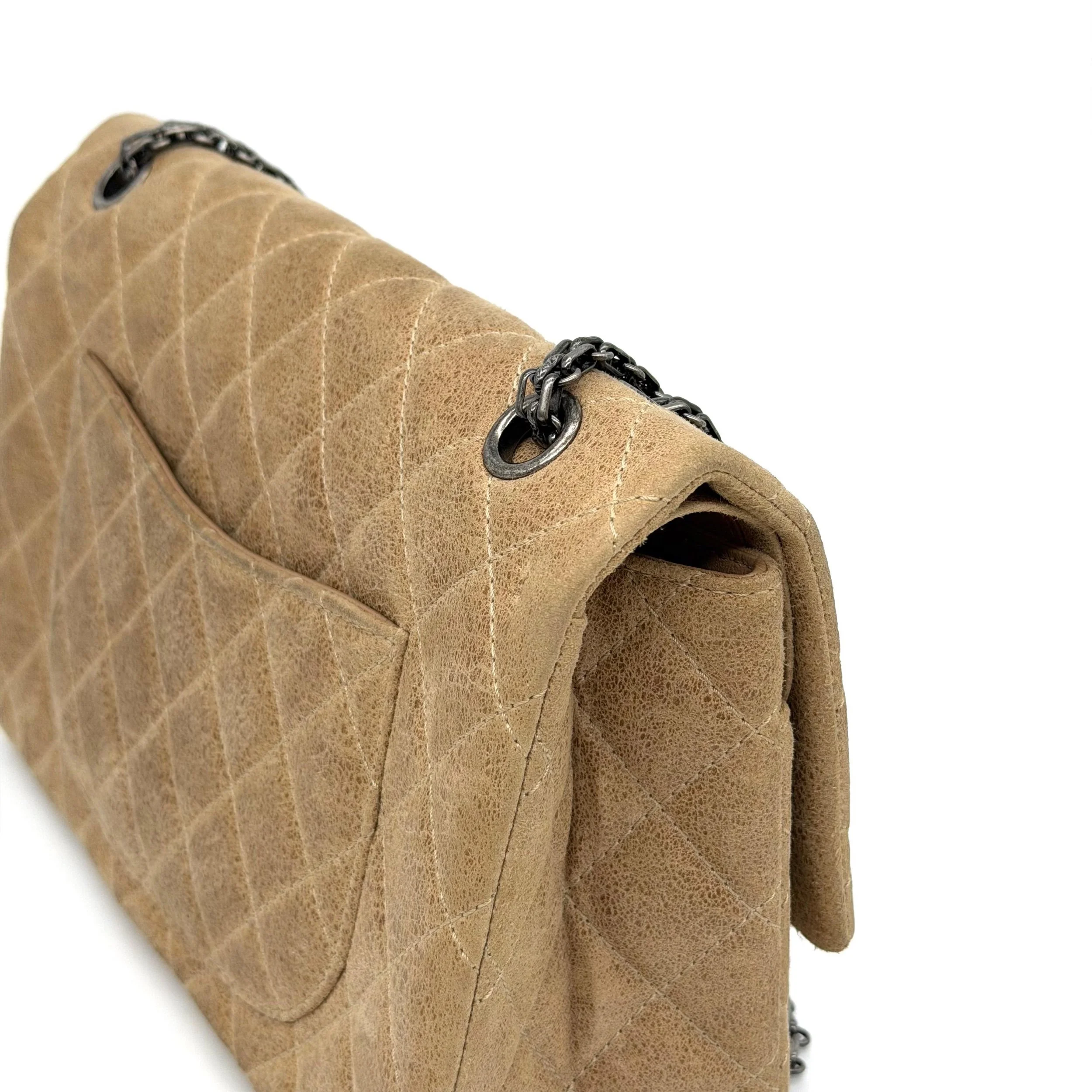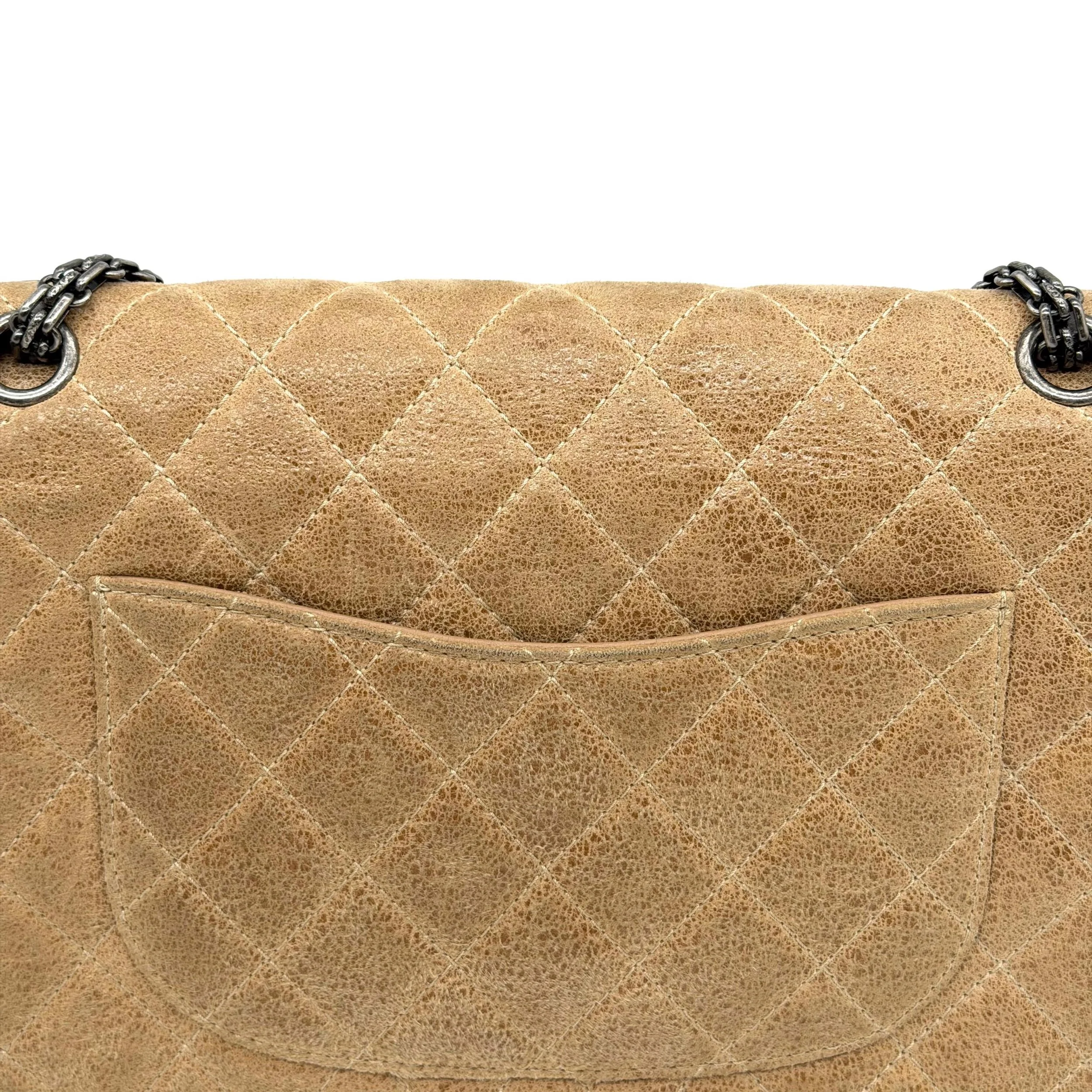 Item Description/Model: Chanel Reissue 226 2.55 Flap Bag in Metallic Dark Beige Quilted Pony - Style Calfskin Leather and Ruthenium Hardware