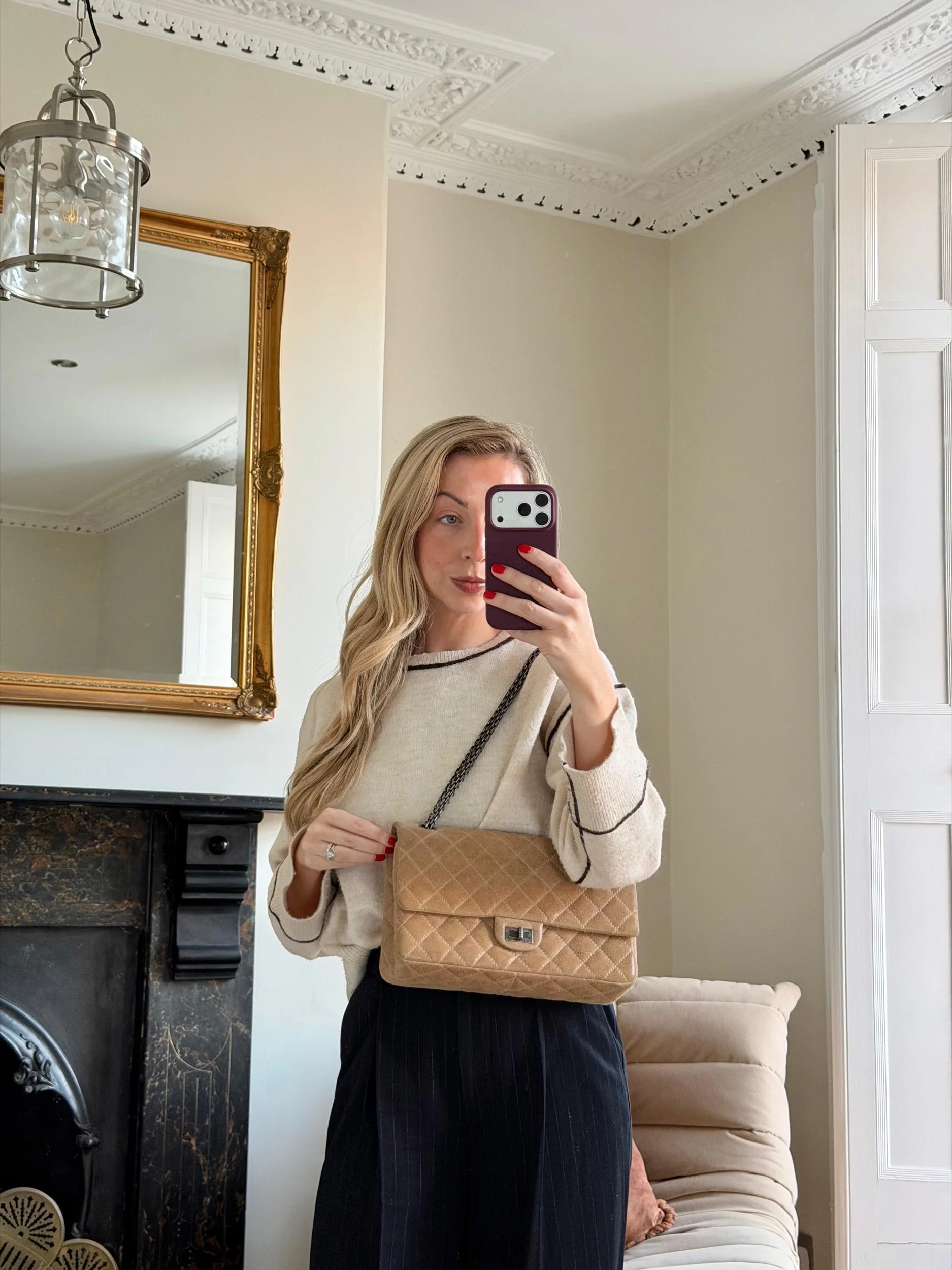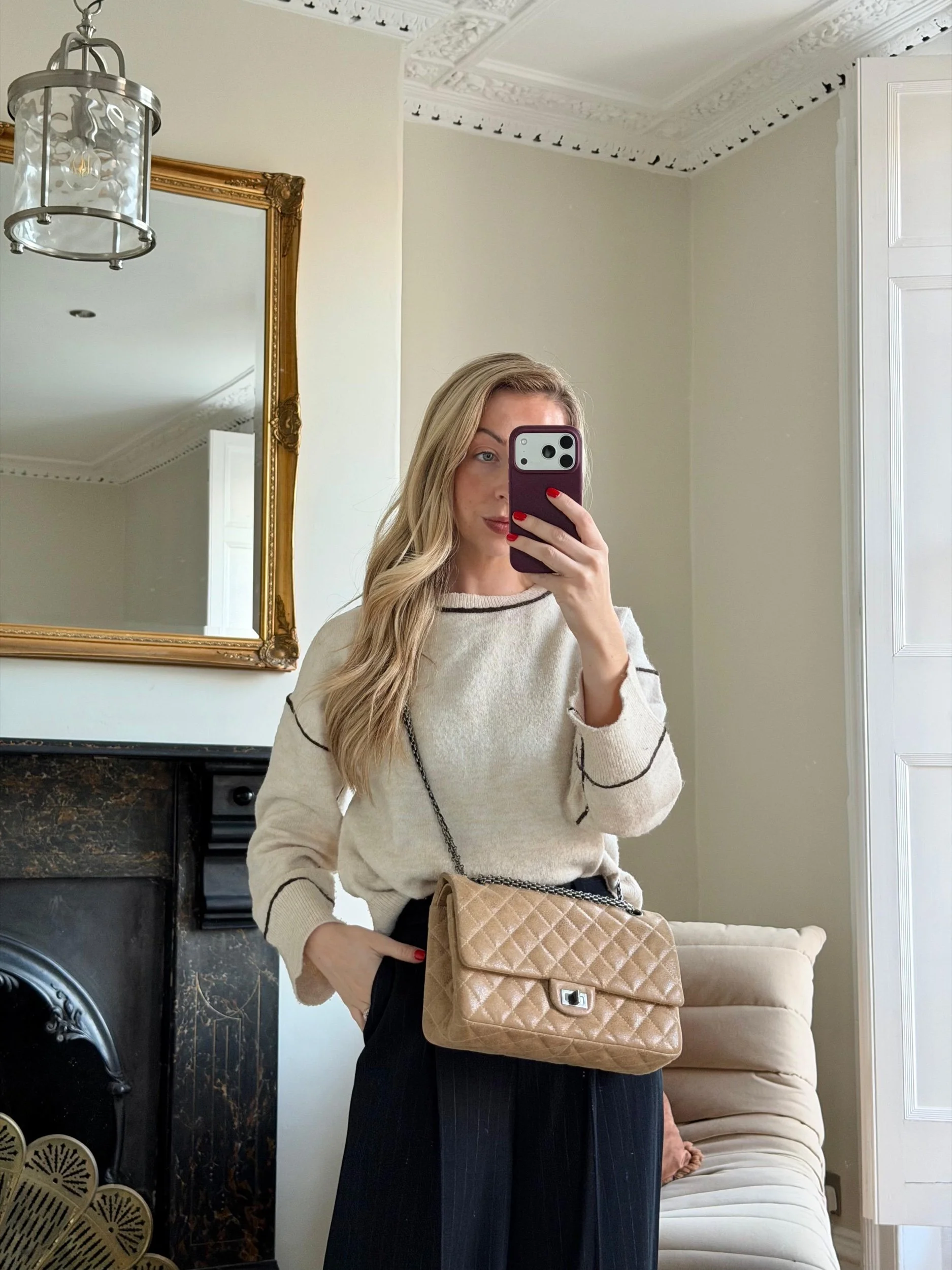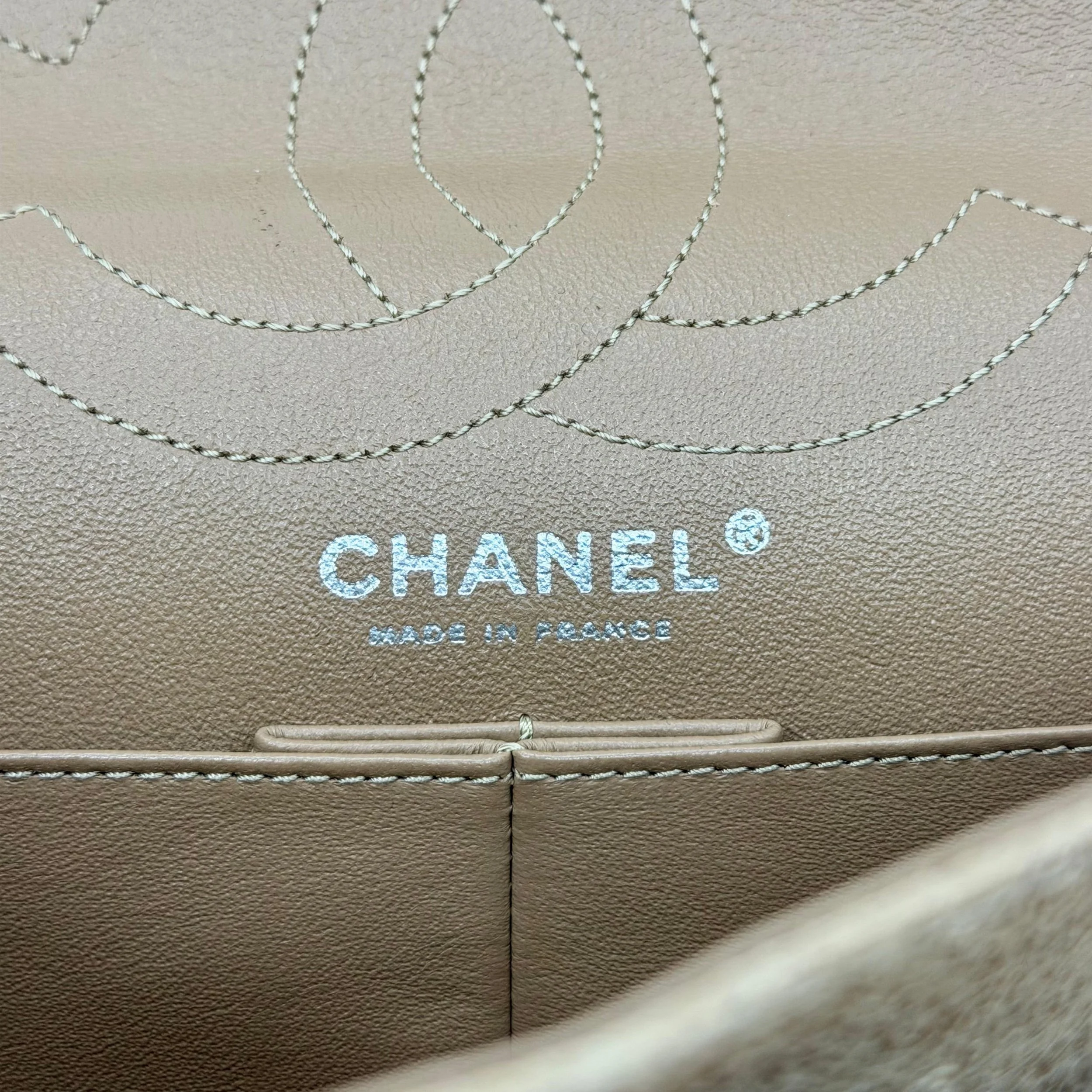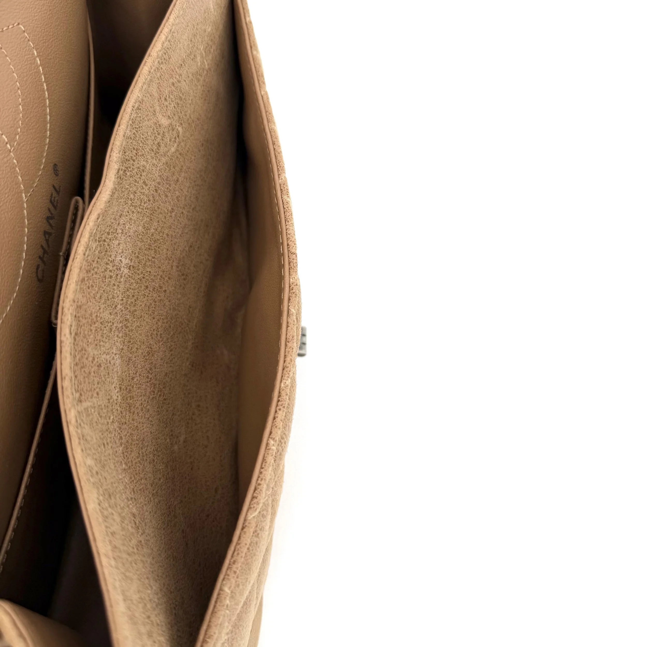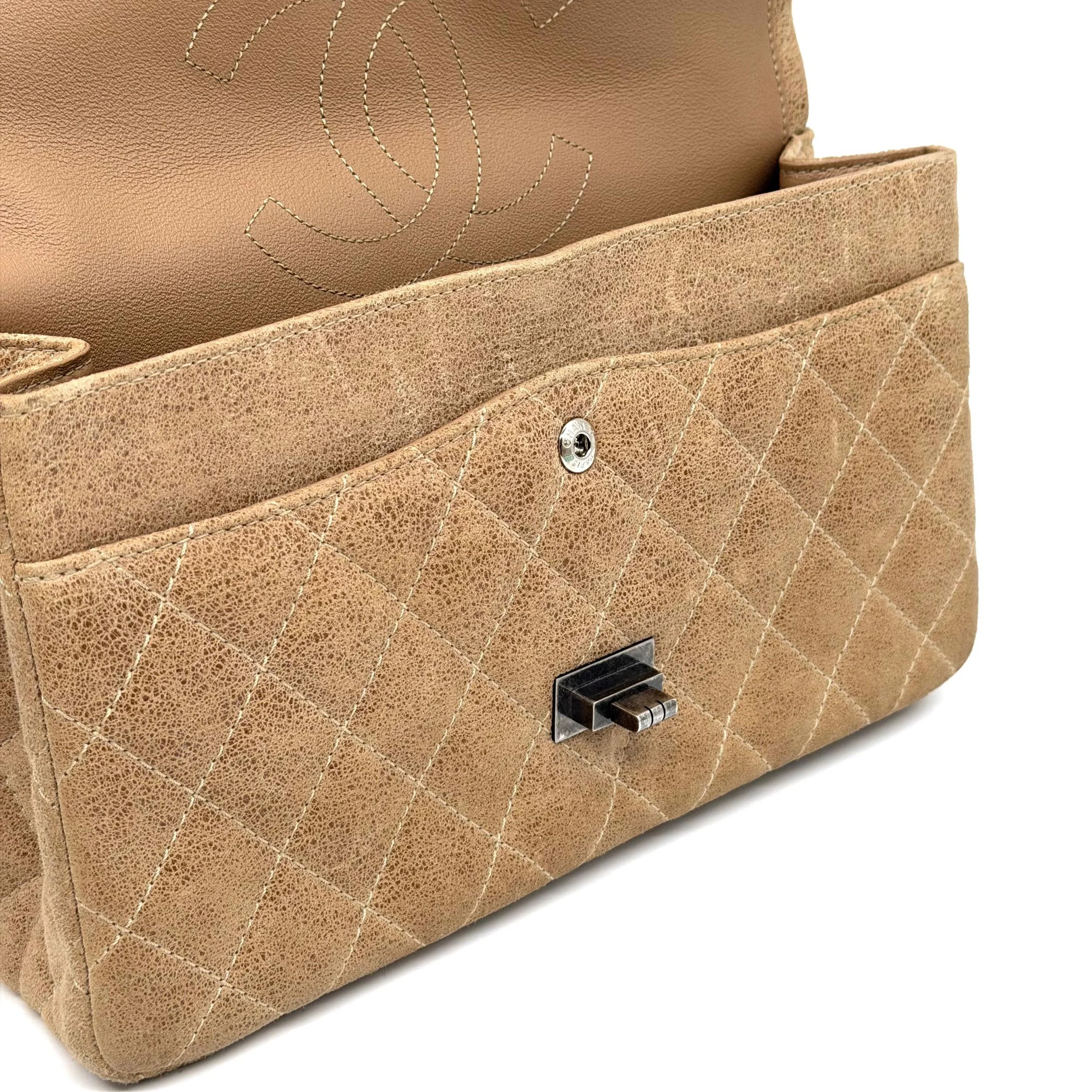 Item Description/Model: Chanel Reissue 226 2.55 Flap Bag in Metallic Dark Beige Quilted Pony - Style Calfskin Leather and Ruthenium Hardware