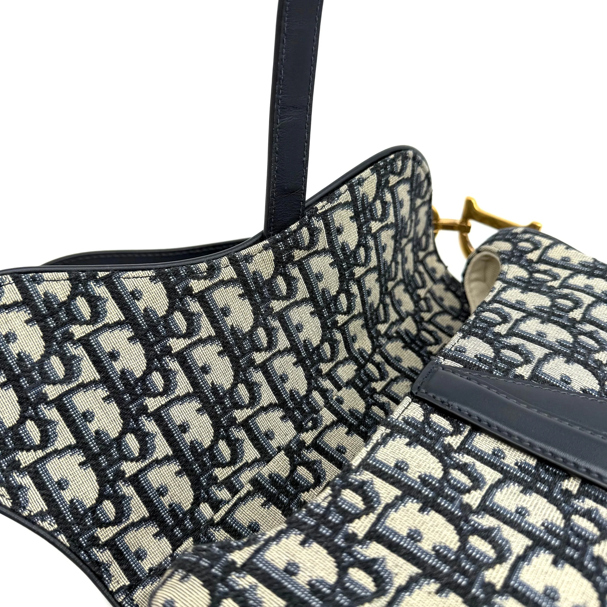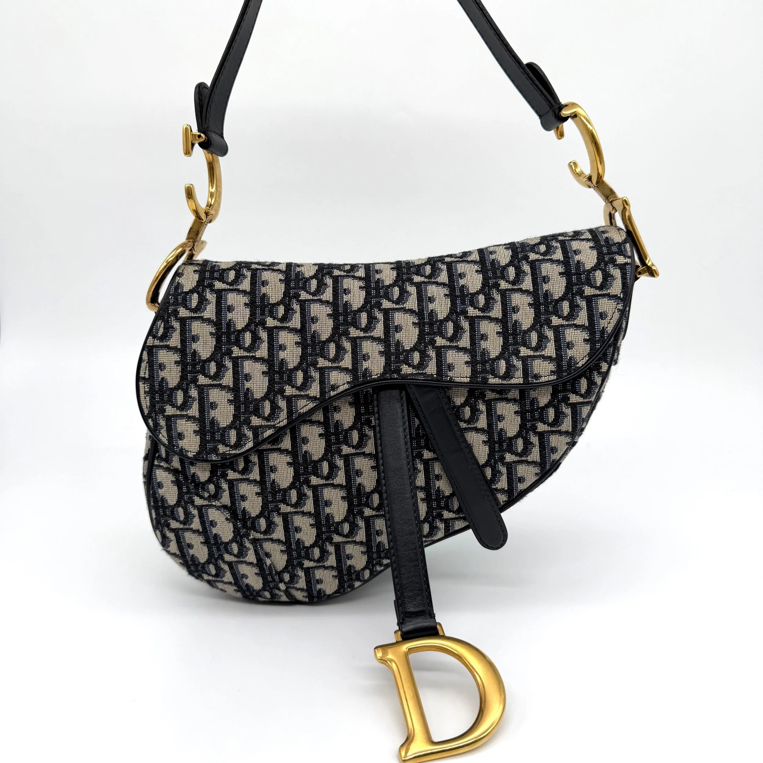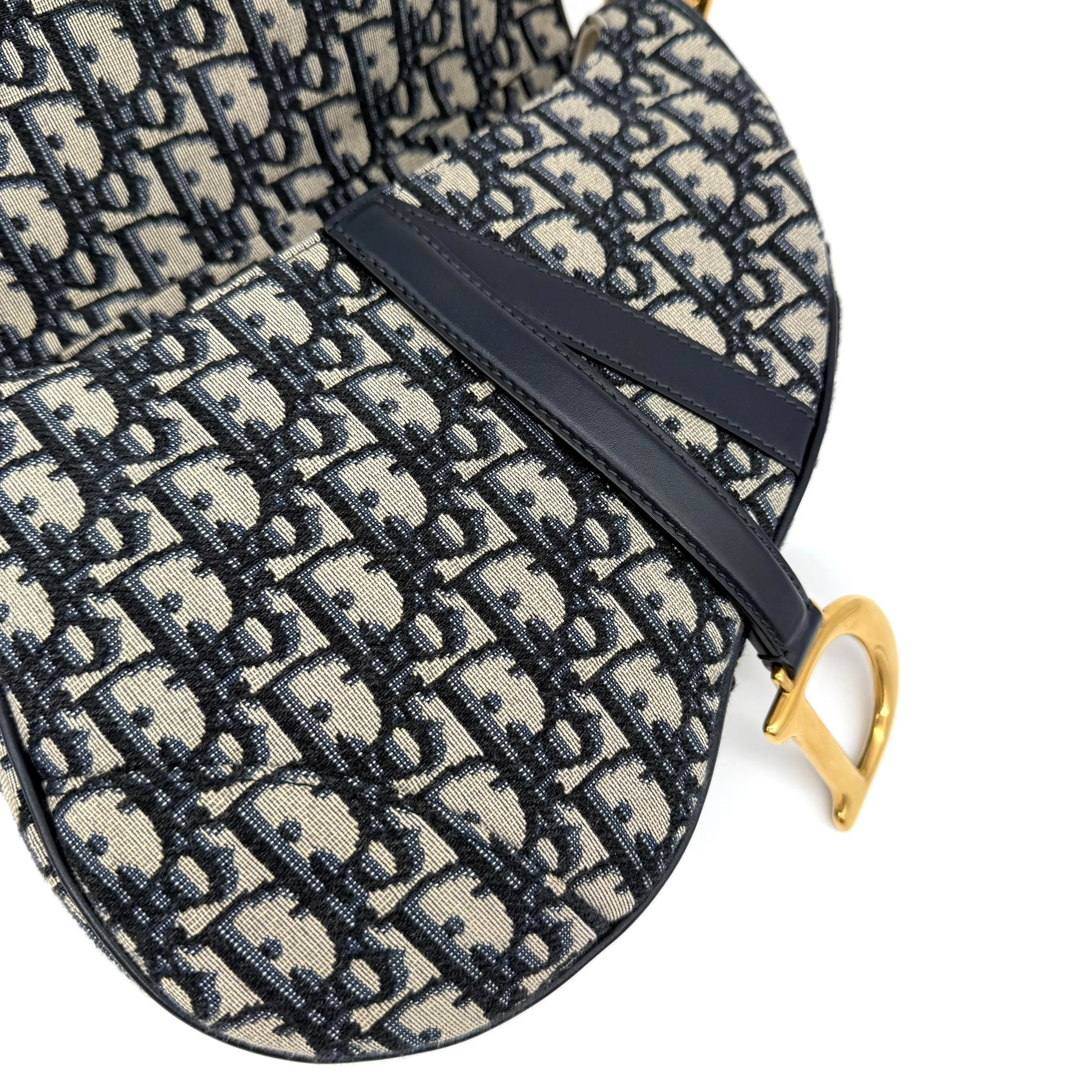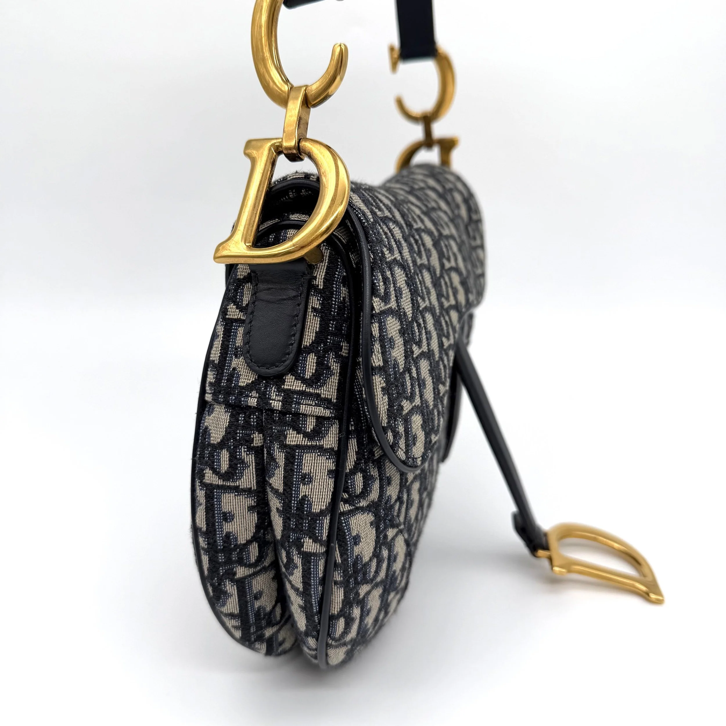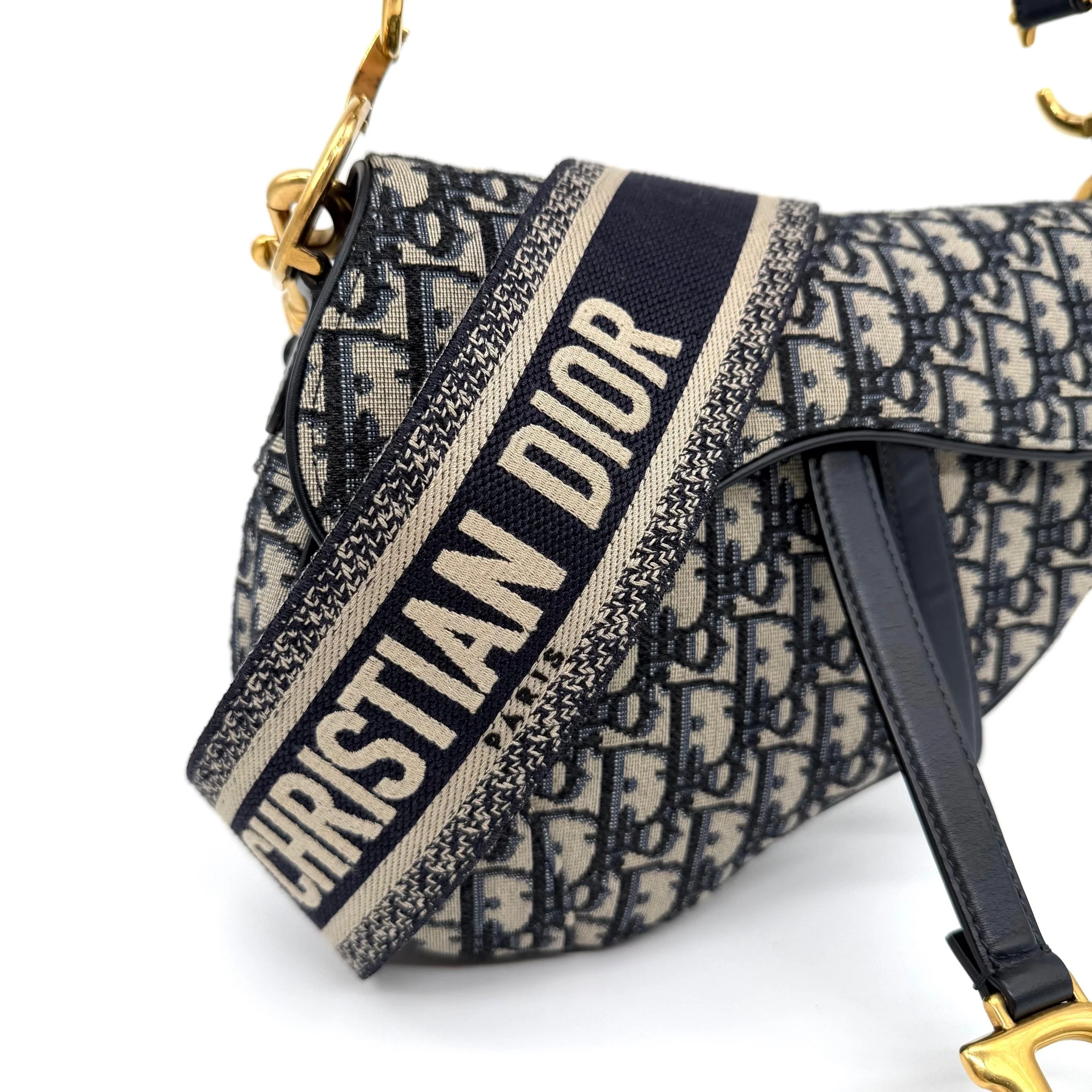 Item Description/Model: Christian Dior Saddle Bag in Navy Oblique Monogram Canvas Gold Hardware with Strap