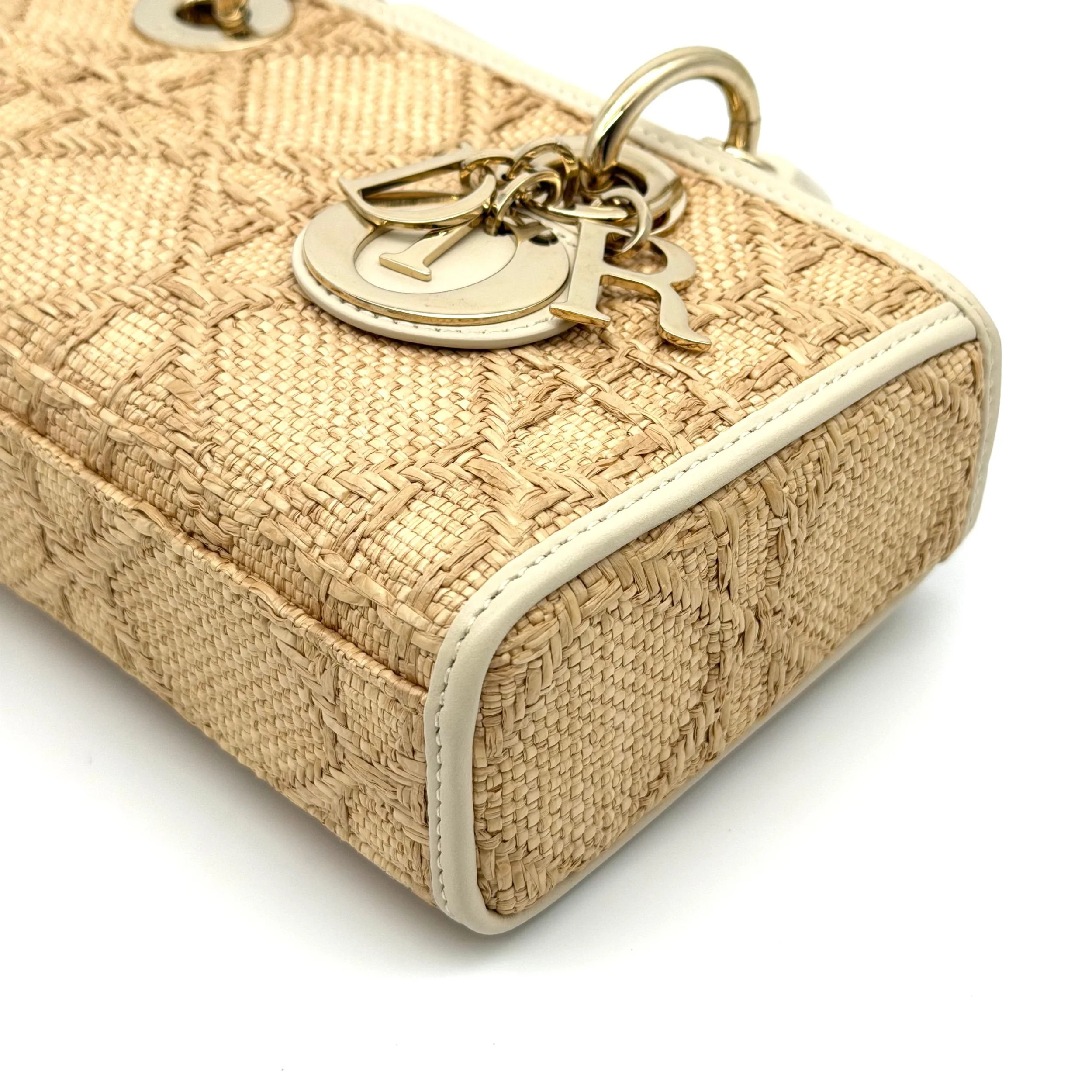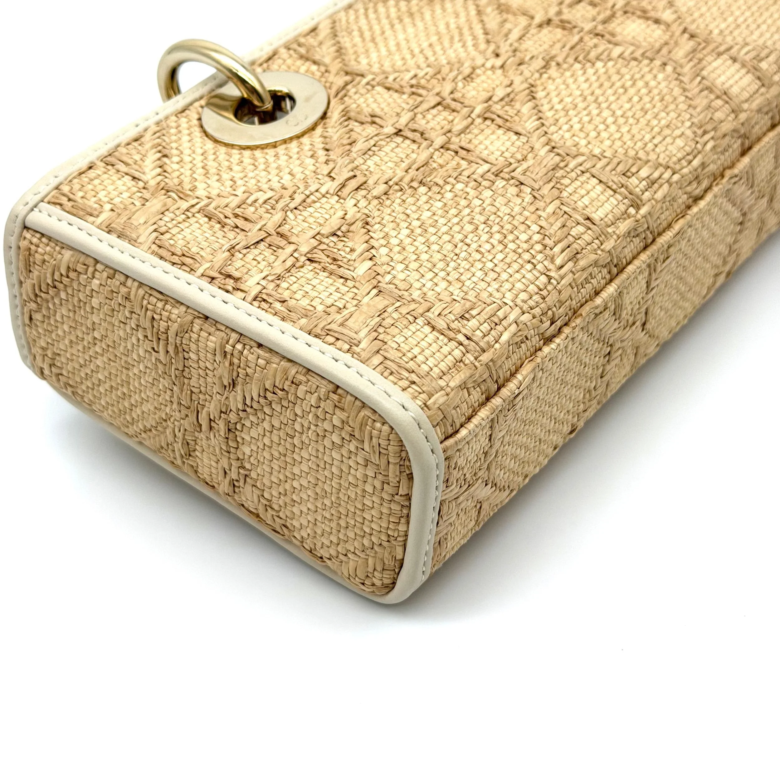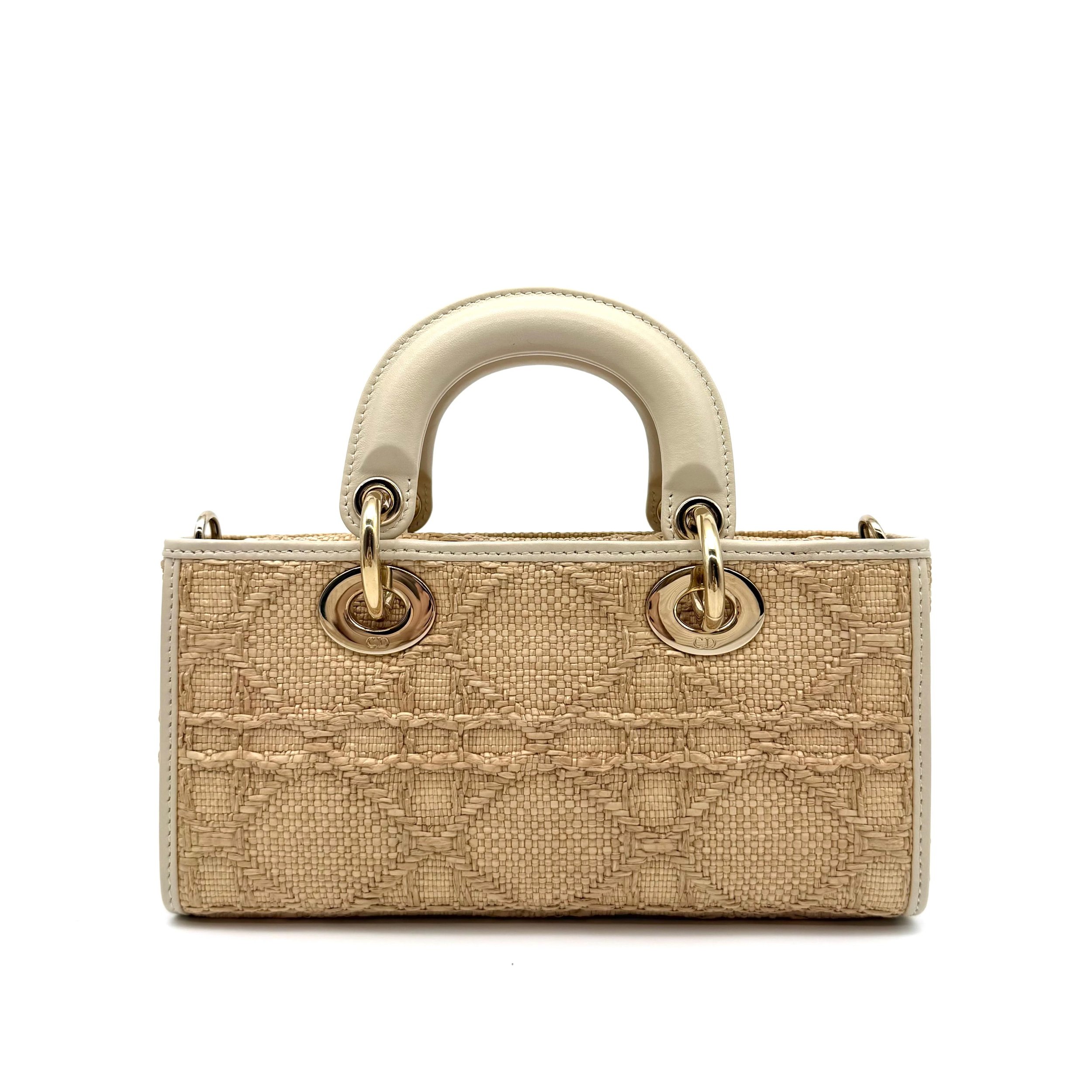 Item Description/Model: Christian Dior Small Lady D-Joy Bag in Raffia Macrocannage Latte Leather