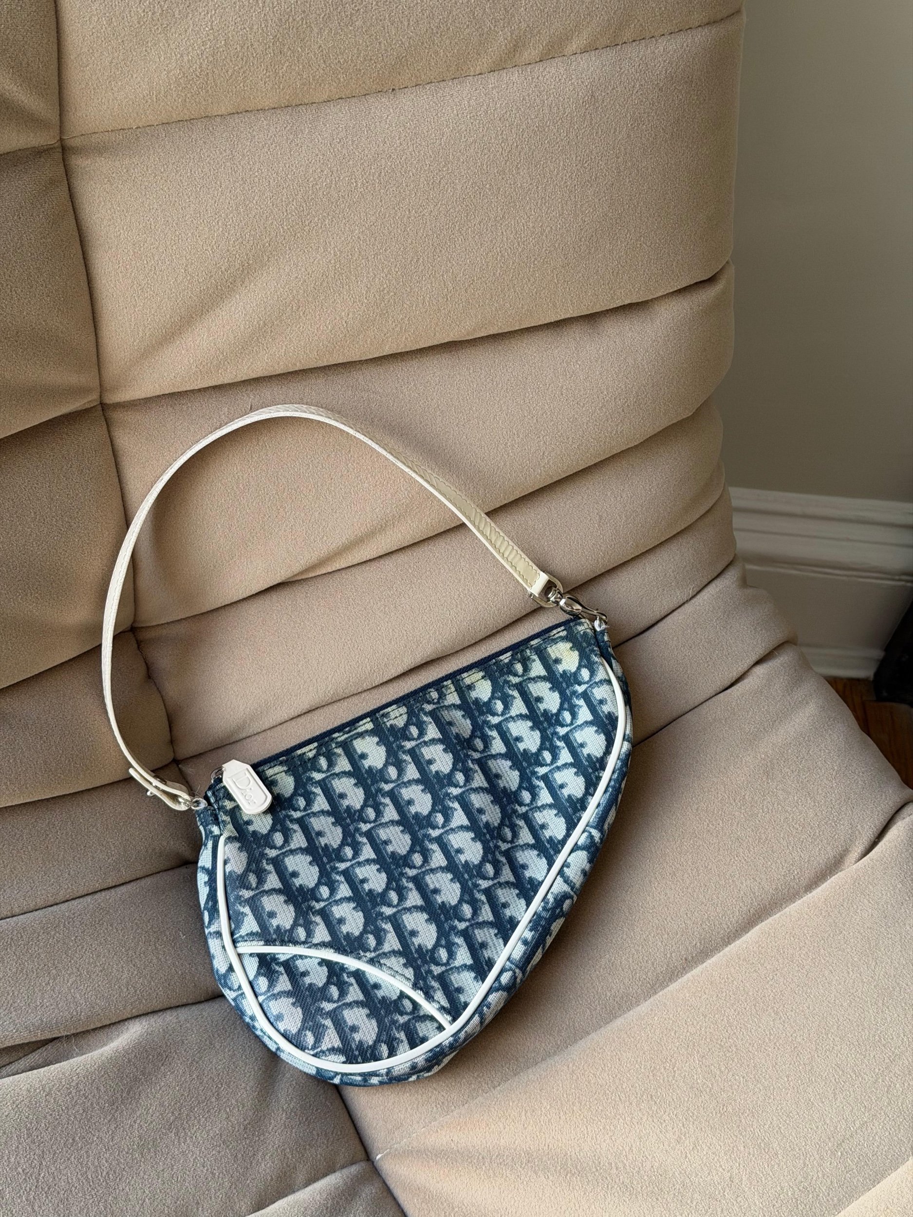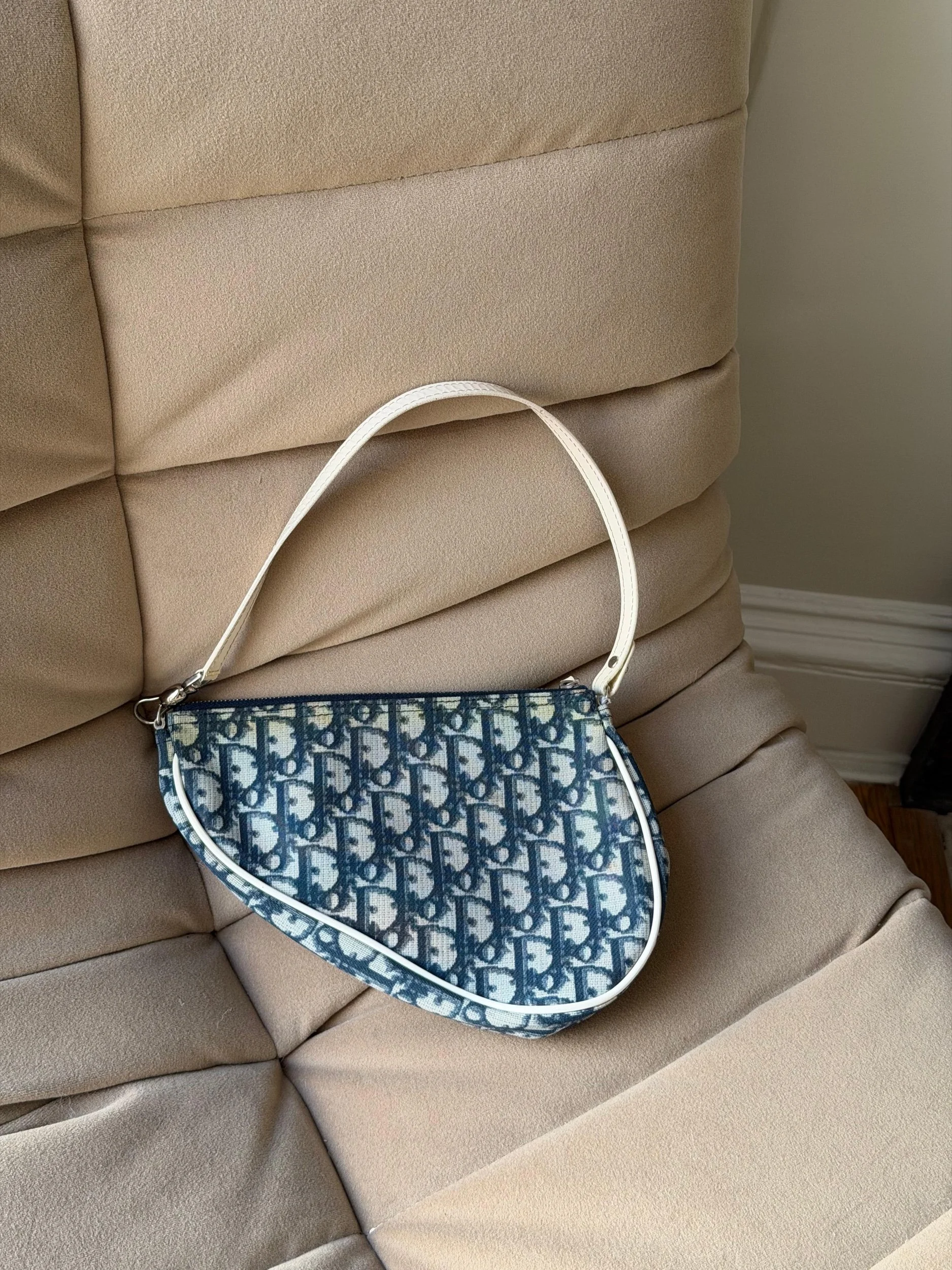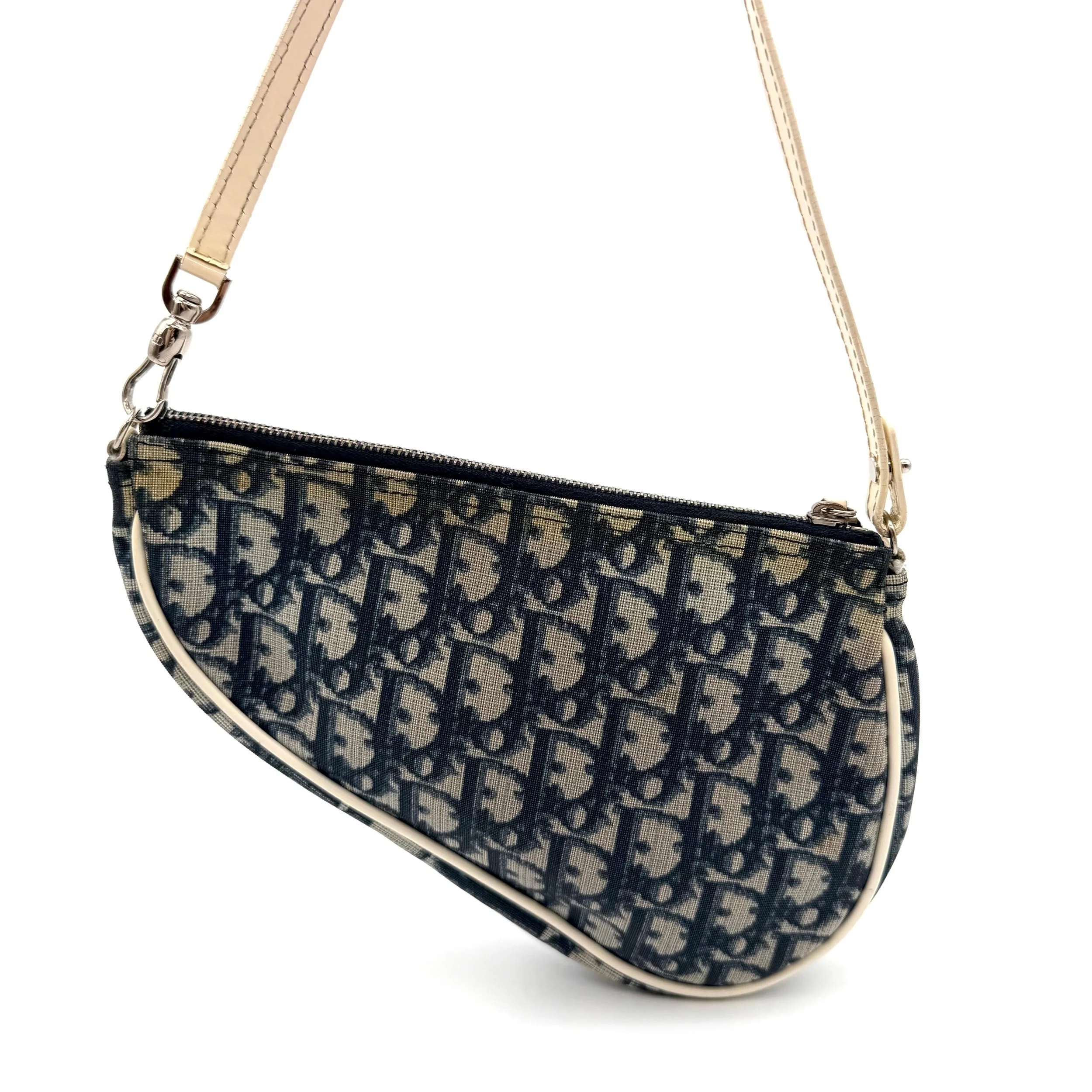 Item Description/Model: Christian Dior Trotter Saddle Pouch Clutch Bag in Navy Oblique Canvas and Gold Hardware