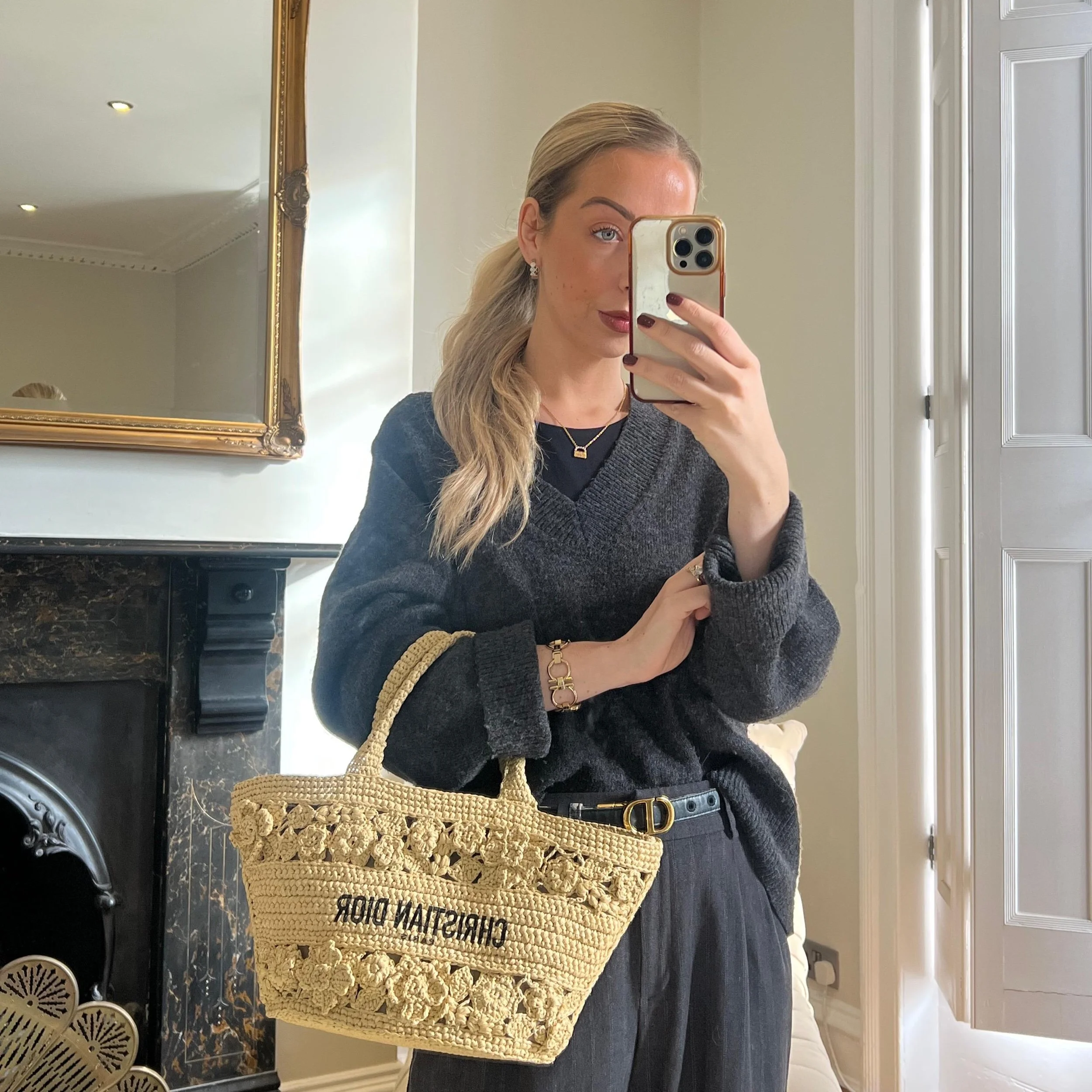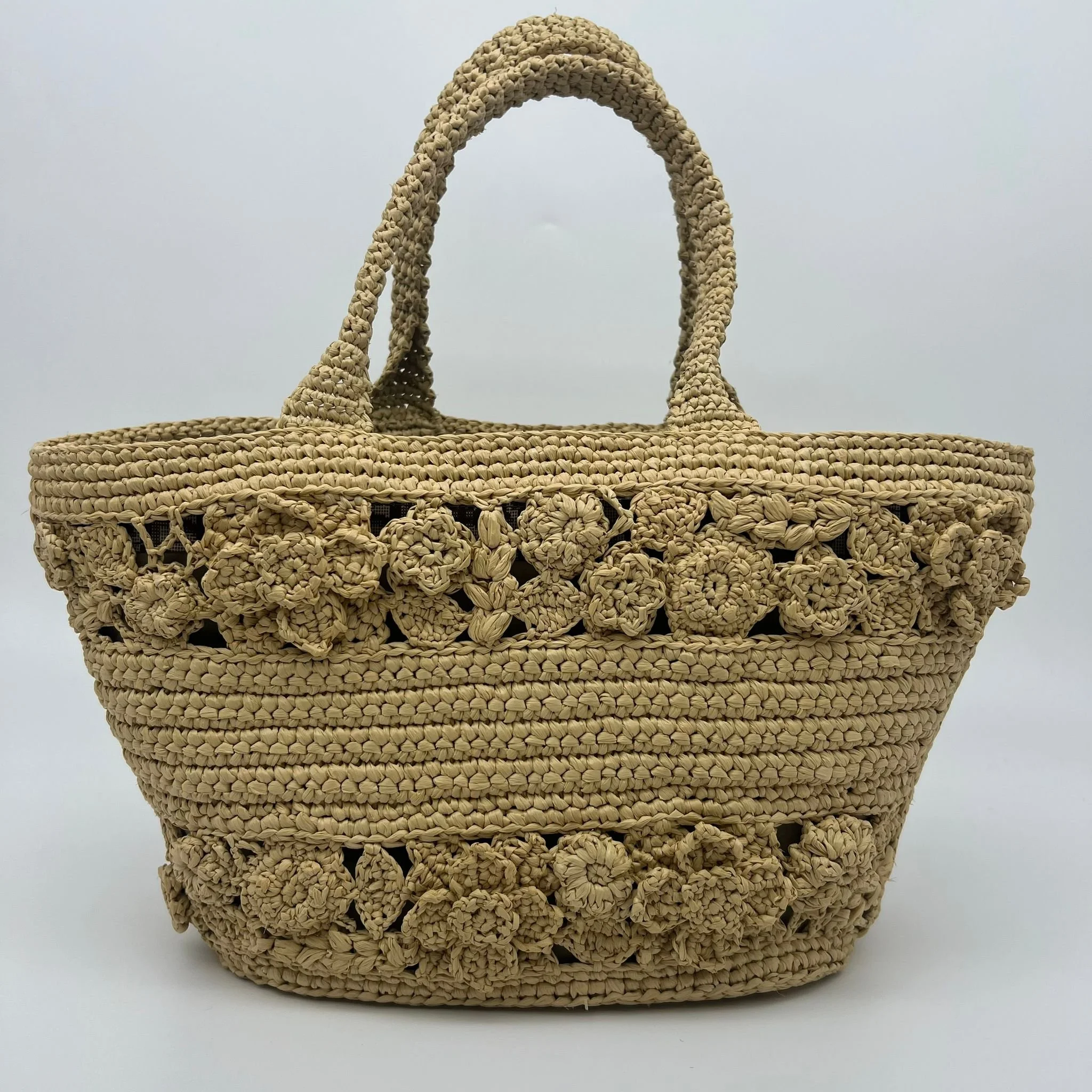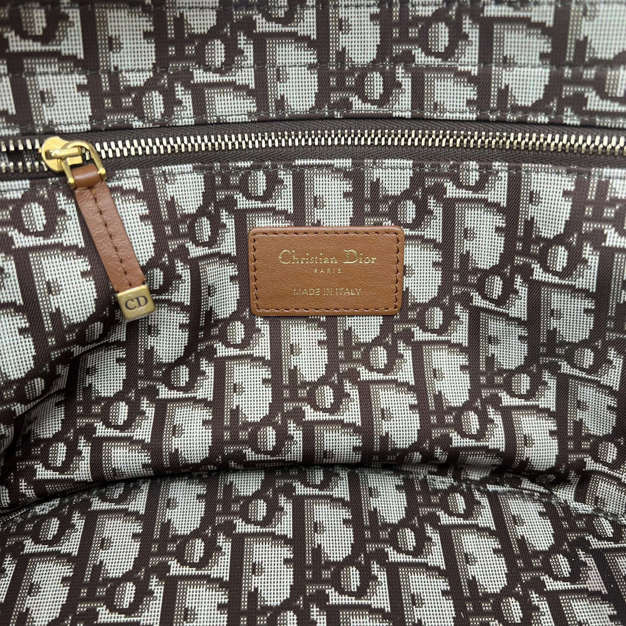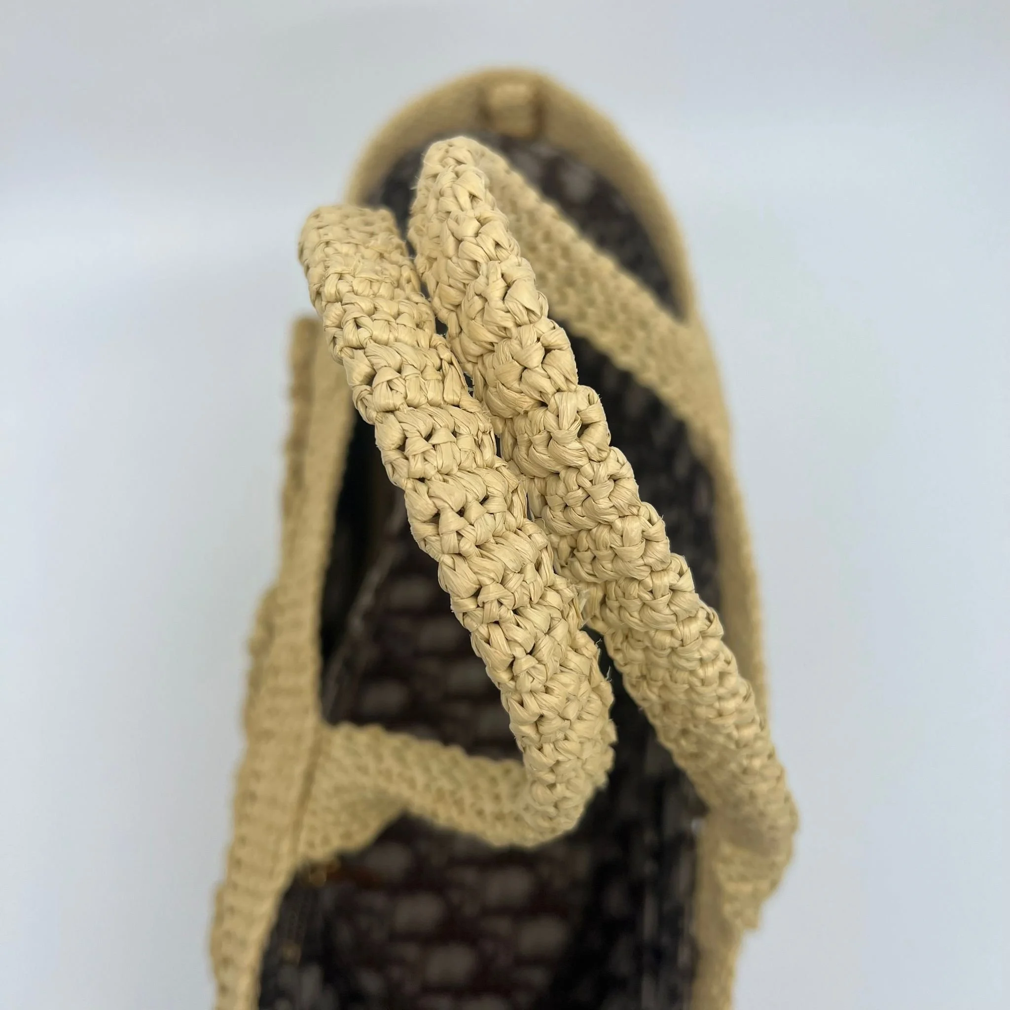 Item Description/Model: Christian Dior Woven Raffia Small Basket Book Tote Bag with Floral Embellished Detail Brown Oblique Canvas Lining