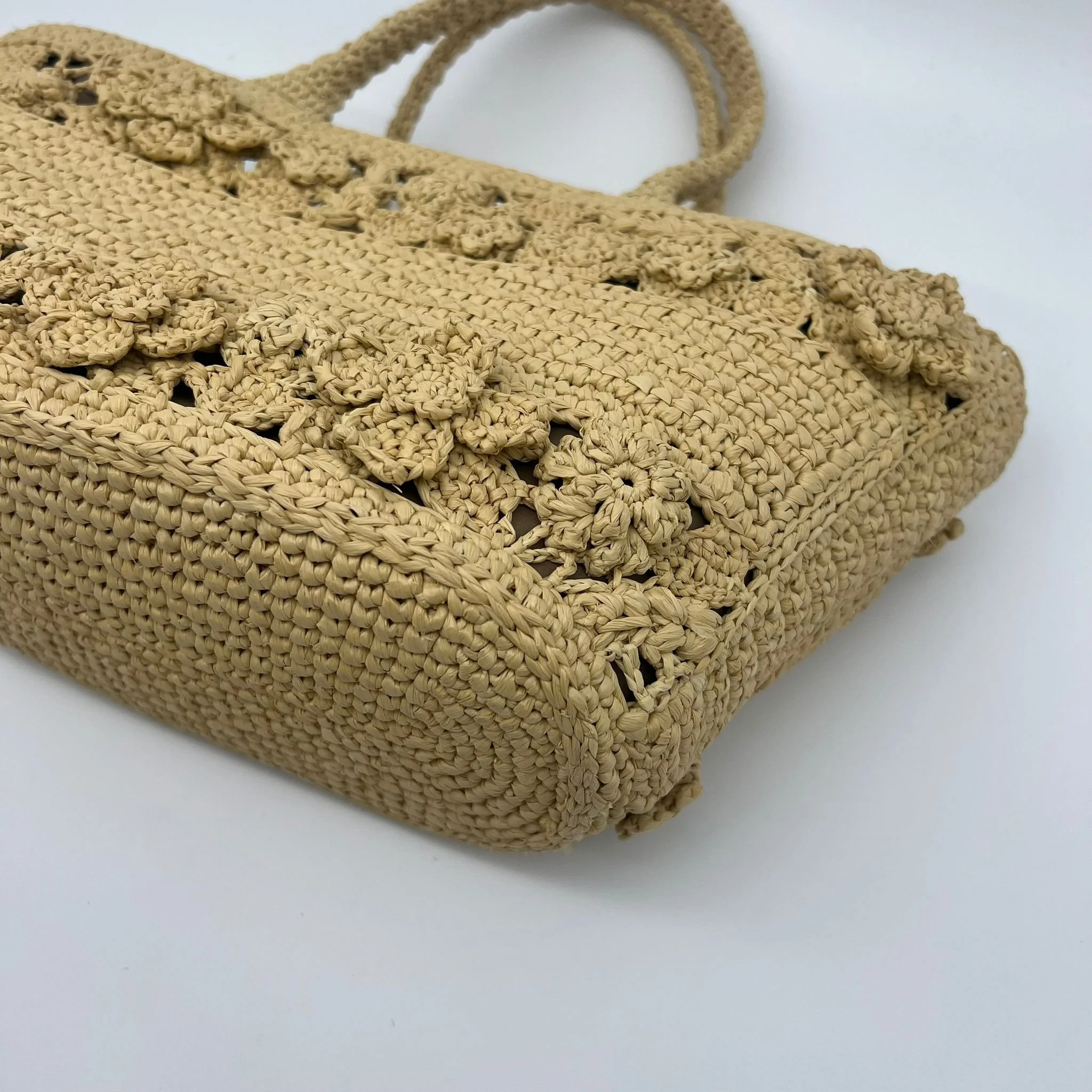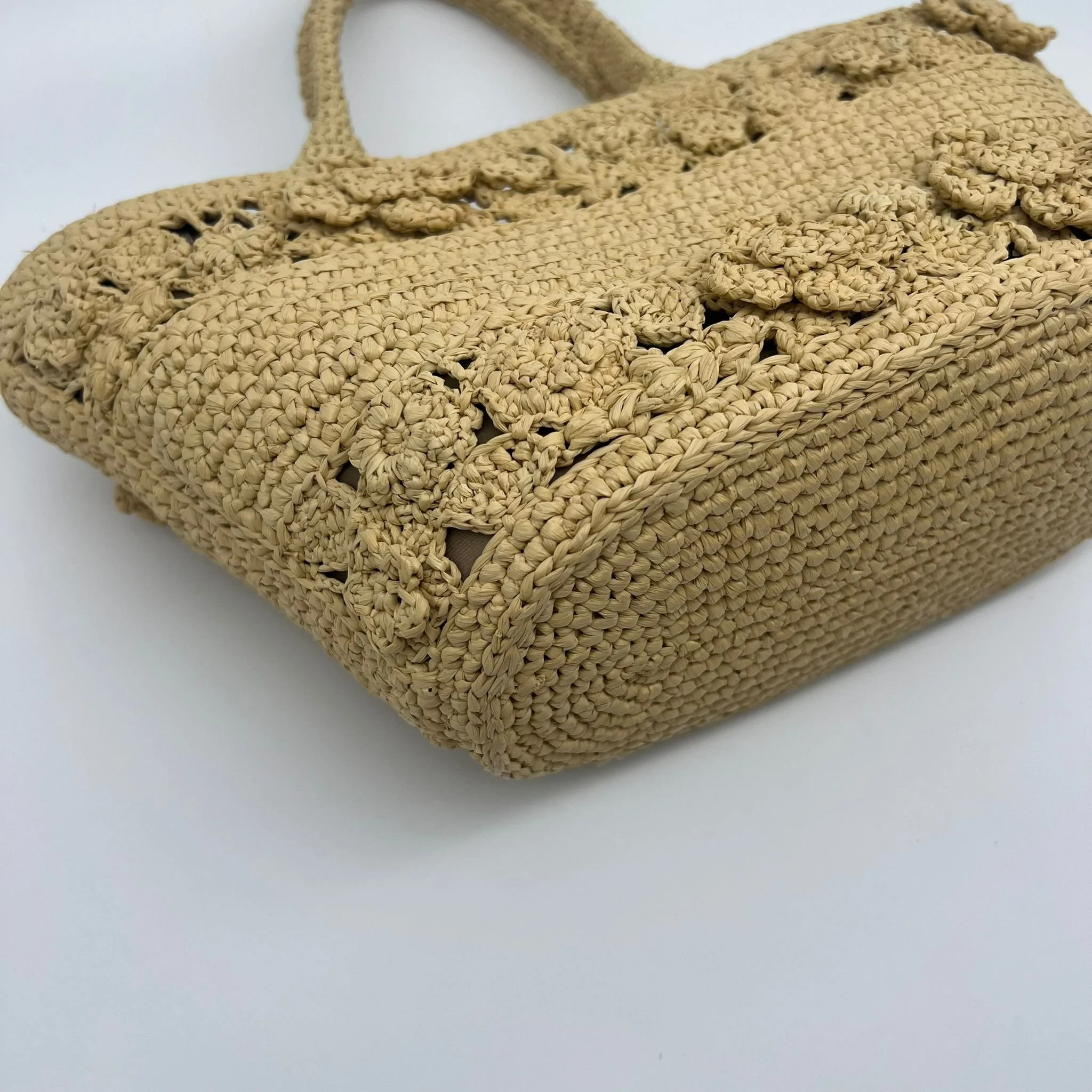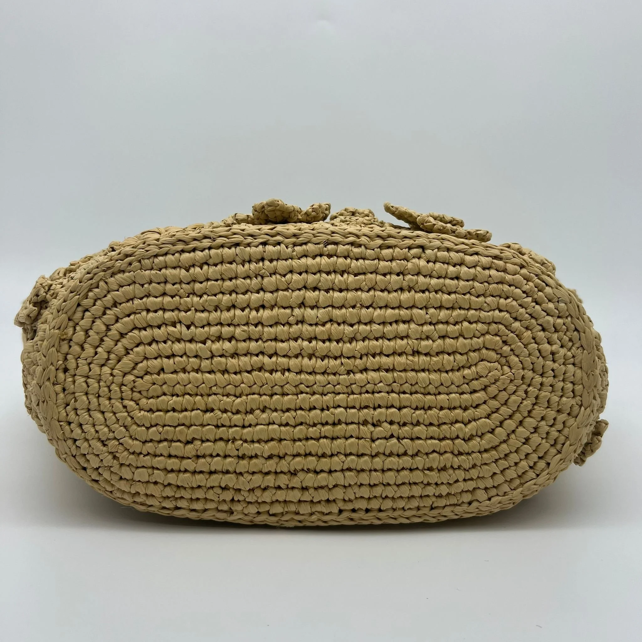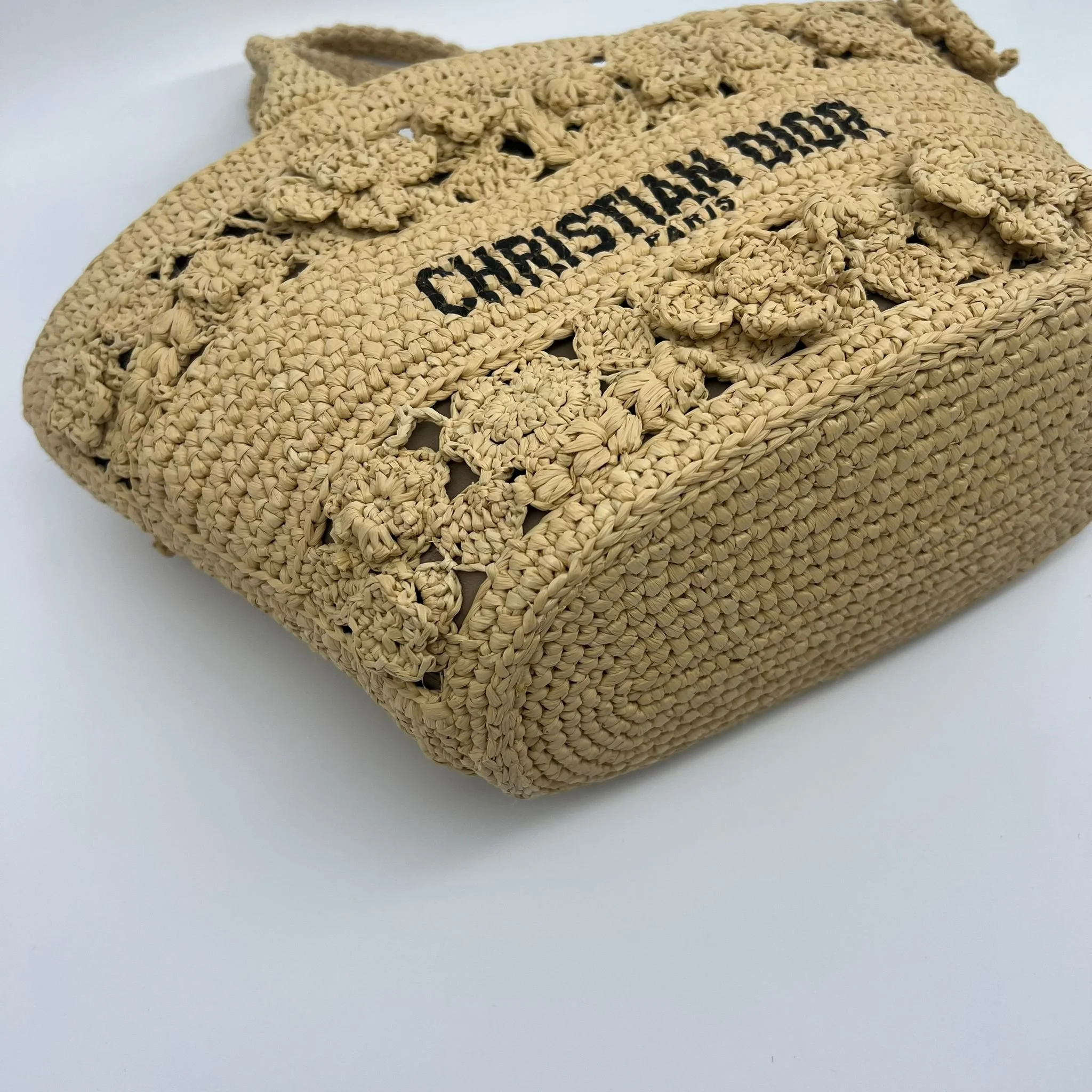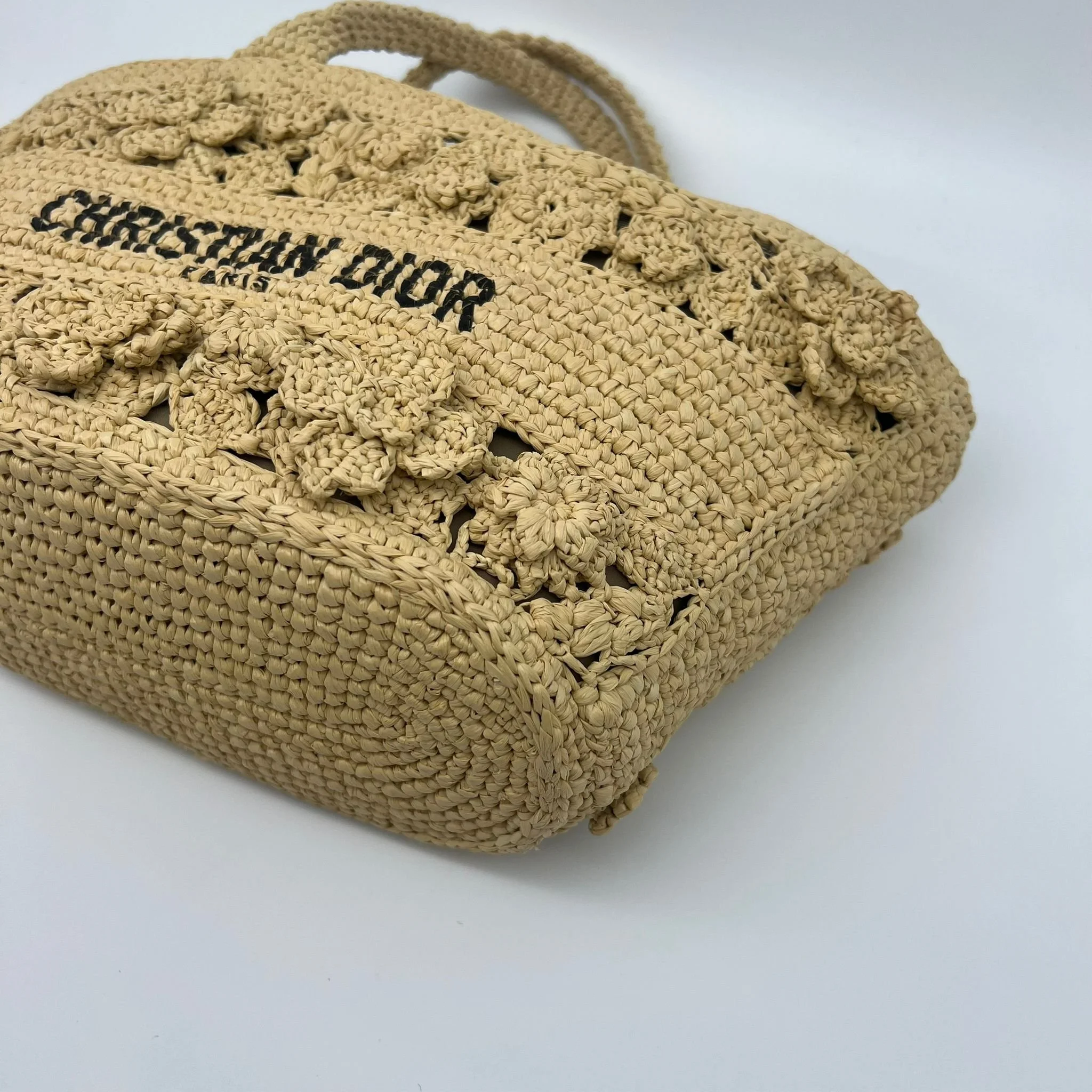 Christian Dior Woven Raffia Small Basket Book Tote Bag Floral Embellished