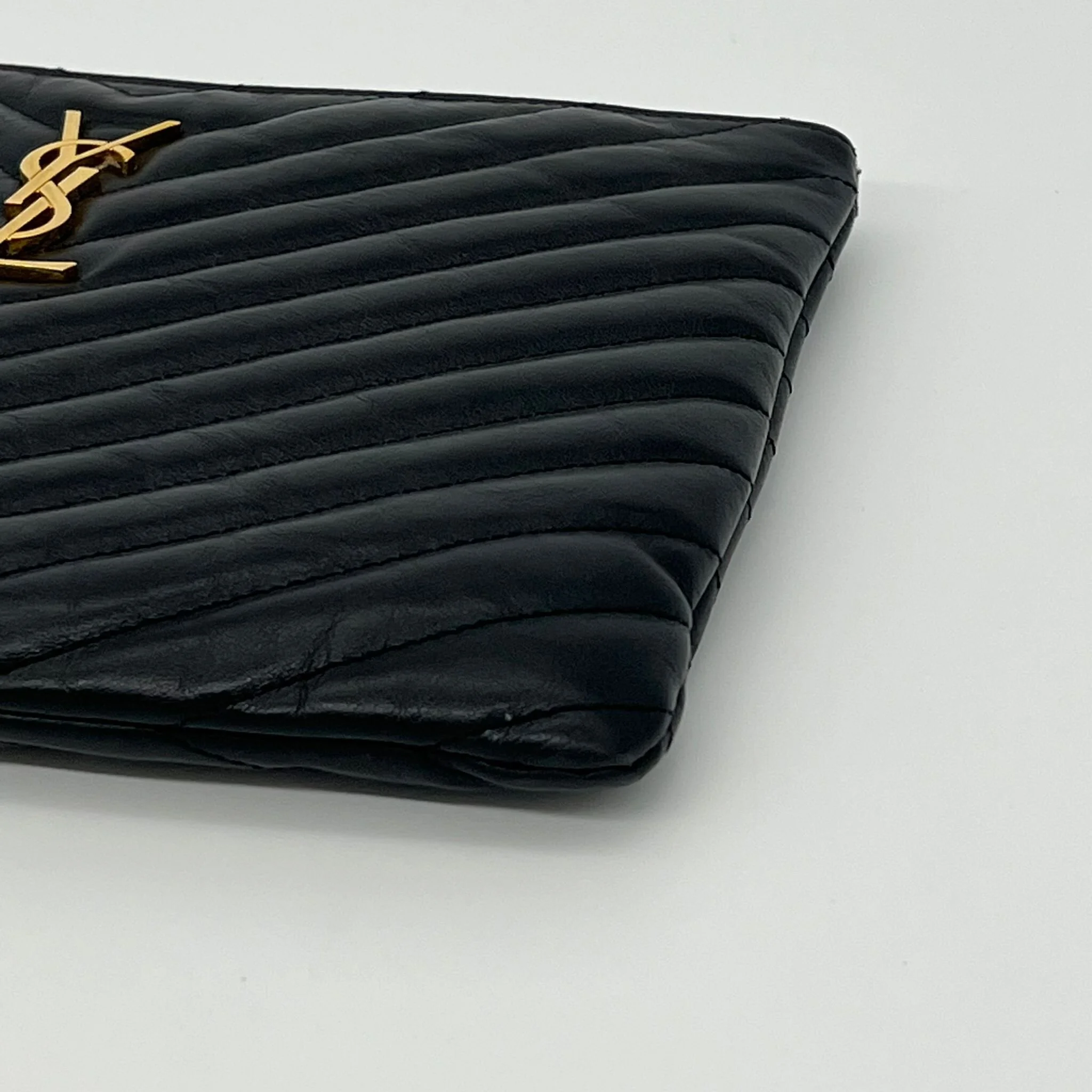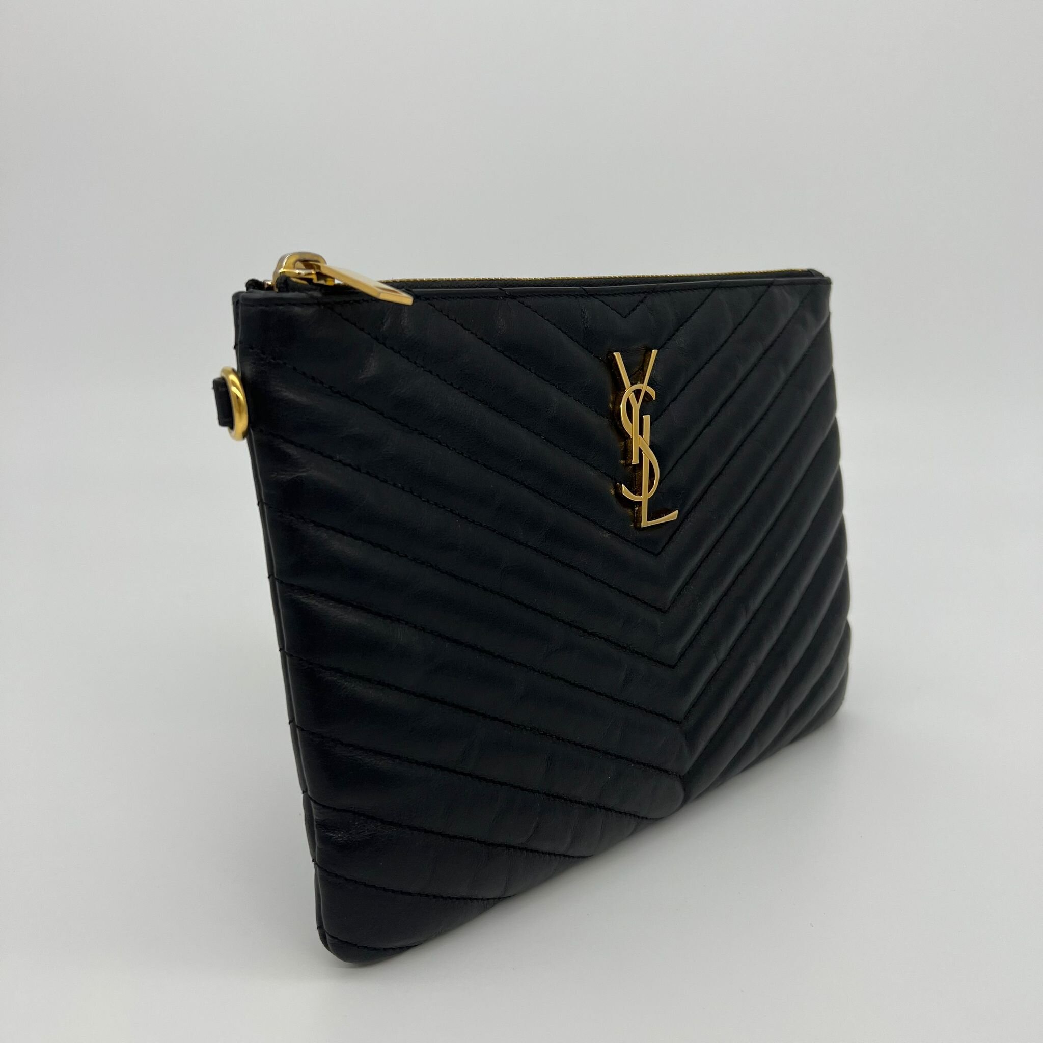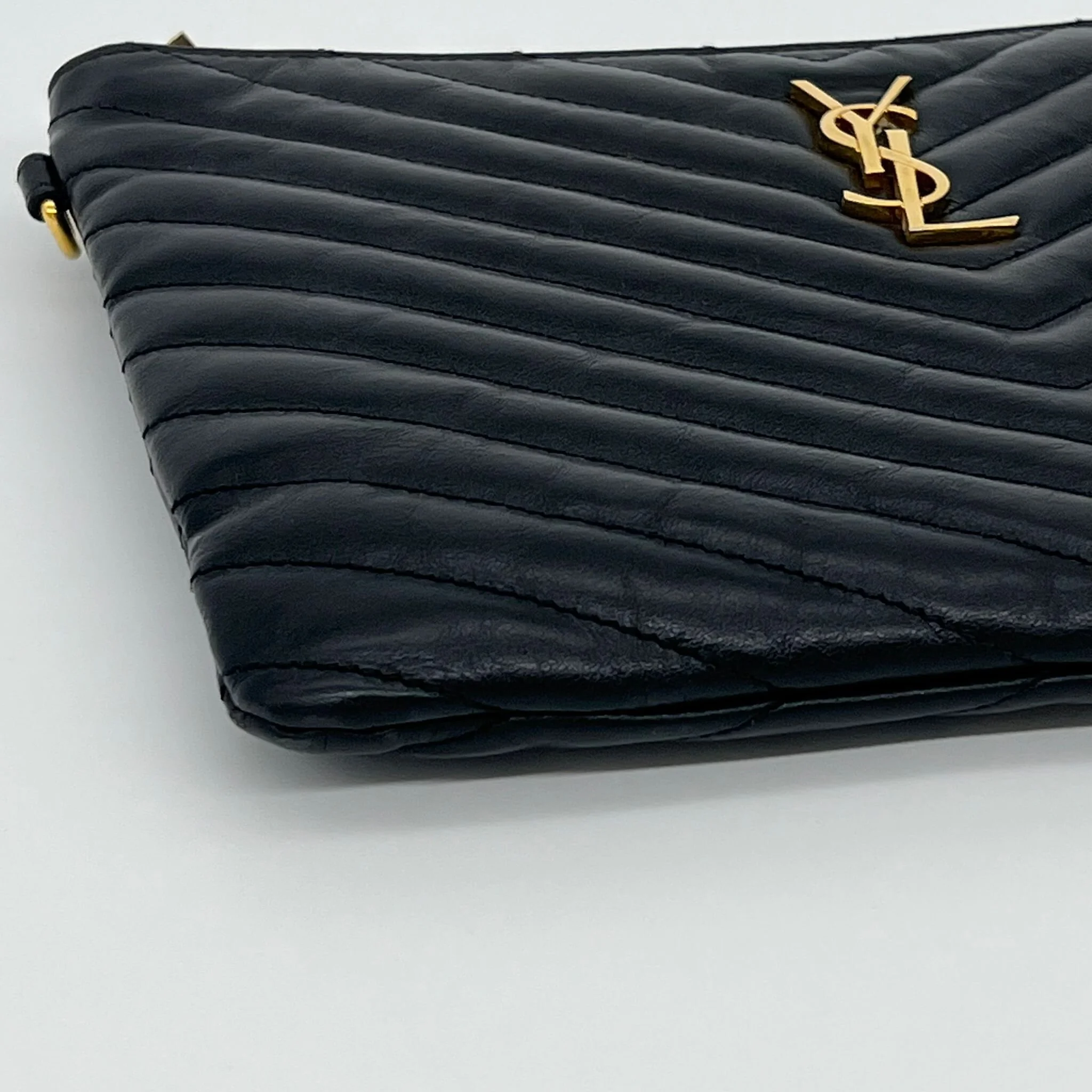 Item Description/Model: Saint Laurent YSL Monogram Quilted Pouch in Black Leather and Gold Hardware