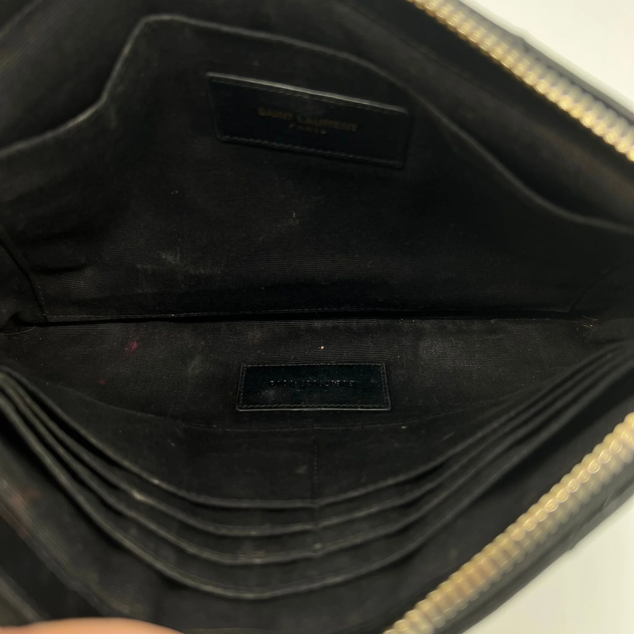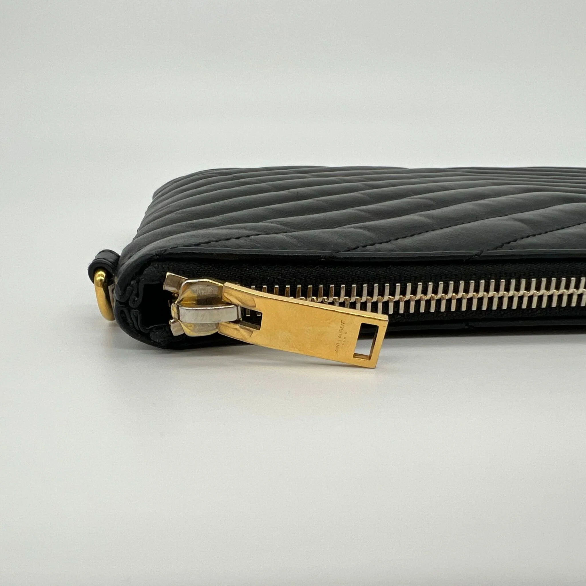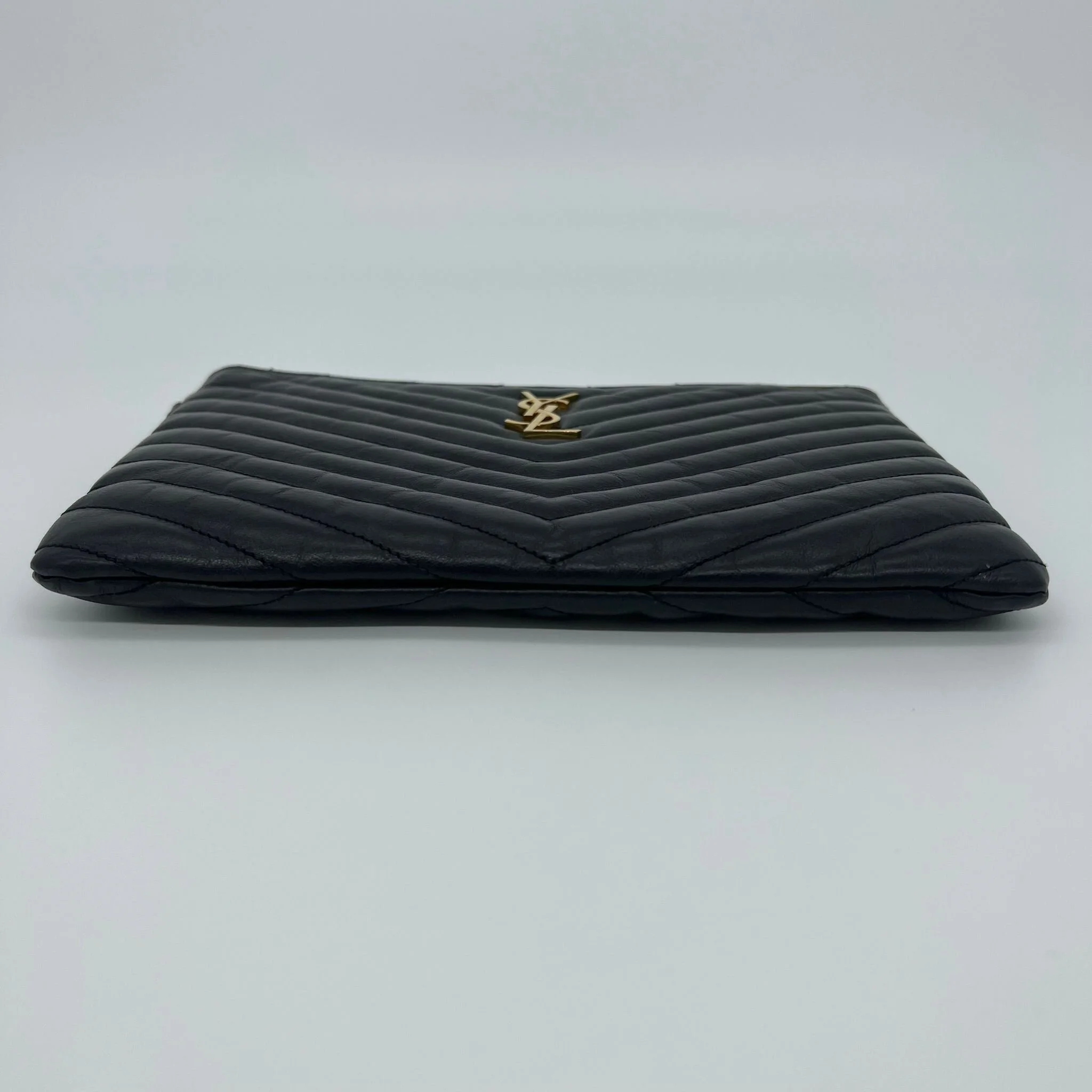Item Description/Model: Saint Laurent YSL Monogram Quilted Pouch in Black Leather and Gold Hardware