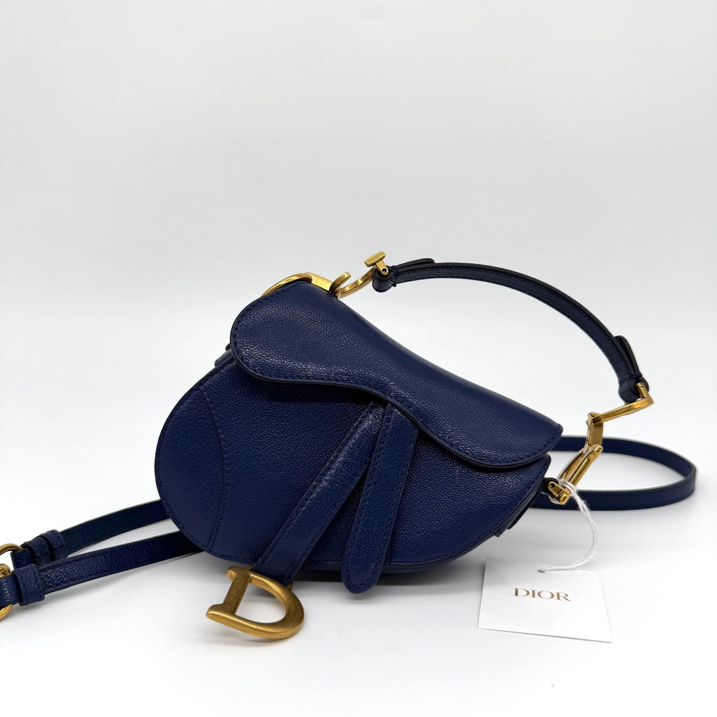 Dior Micro Saddle Bag in Navy Blue Leather Gold Hardware