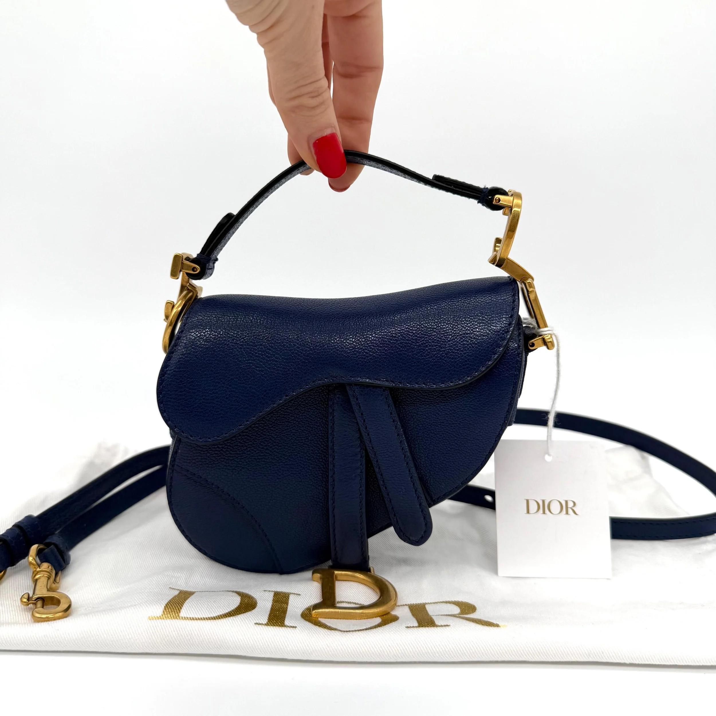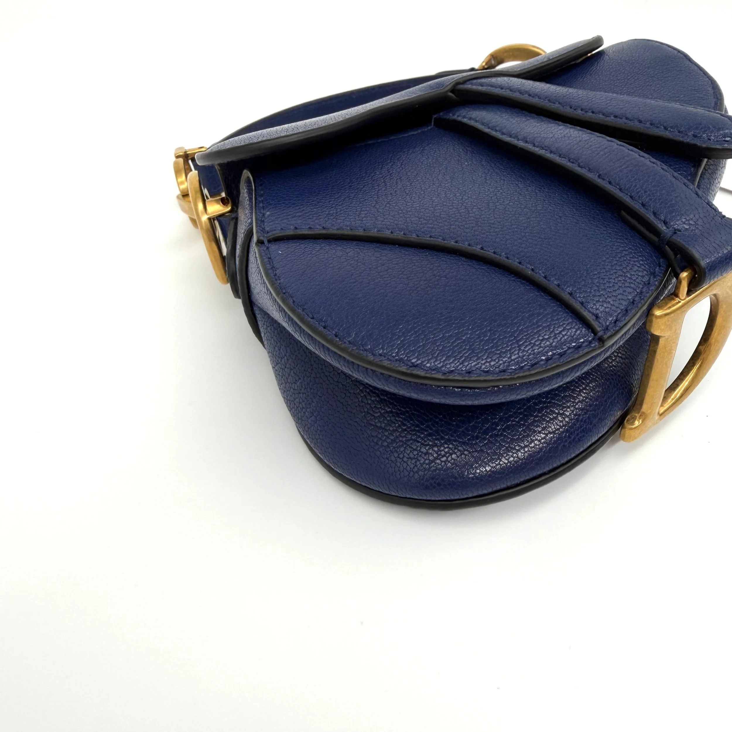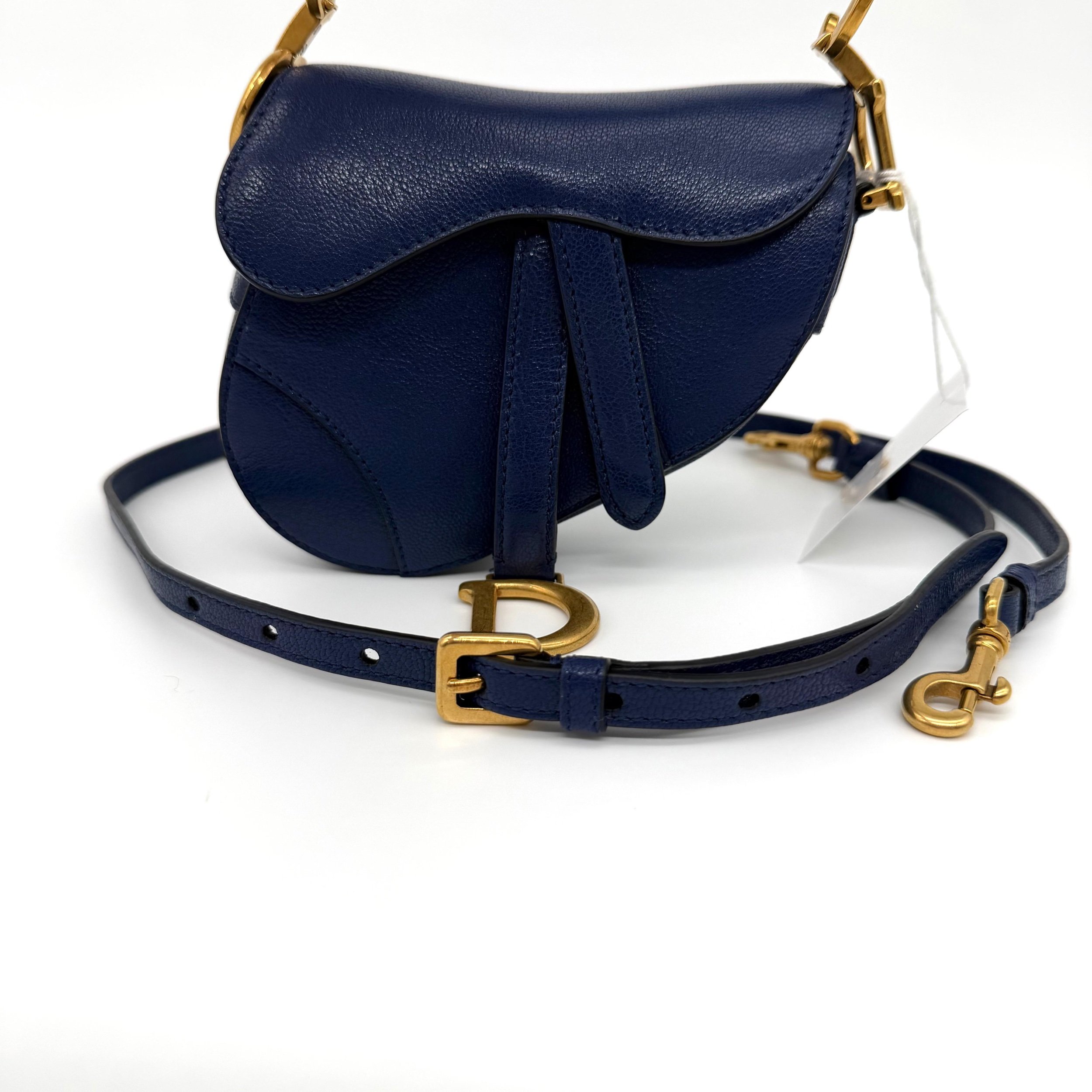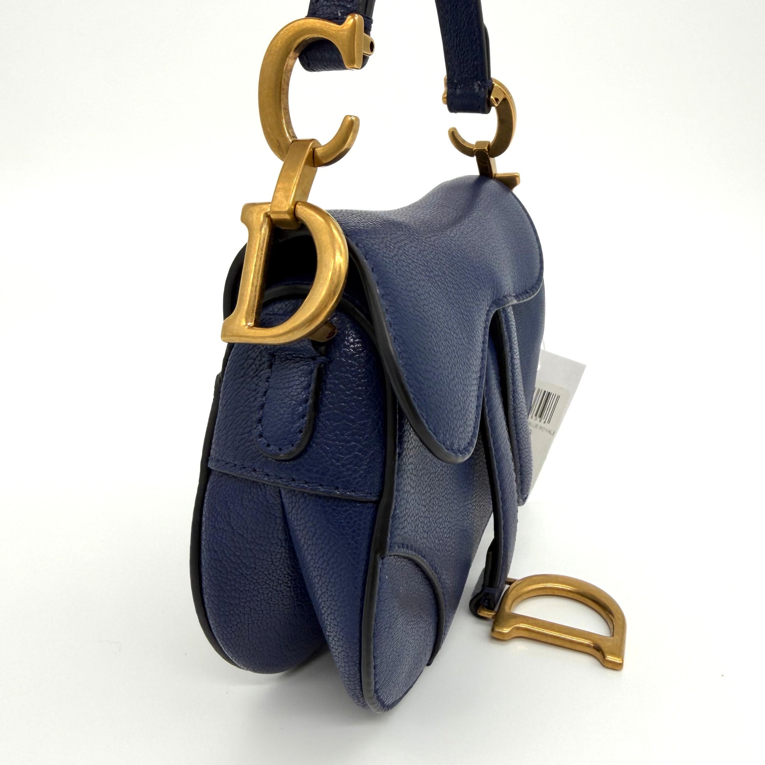 Item Description/Model: Christian Dior Micro Saddle Bag in Navy Blue Leather Gold Hardware