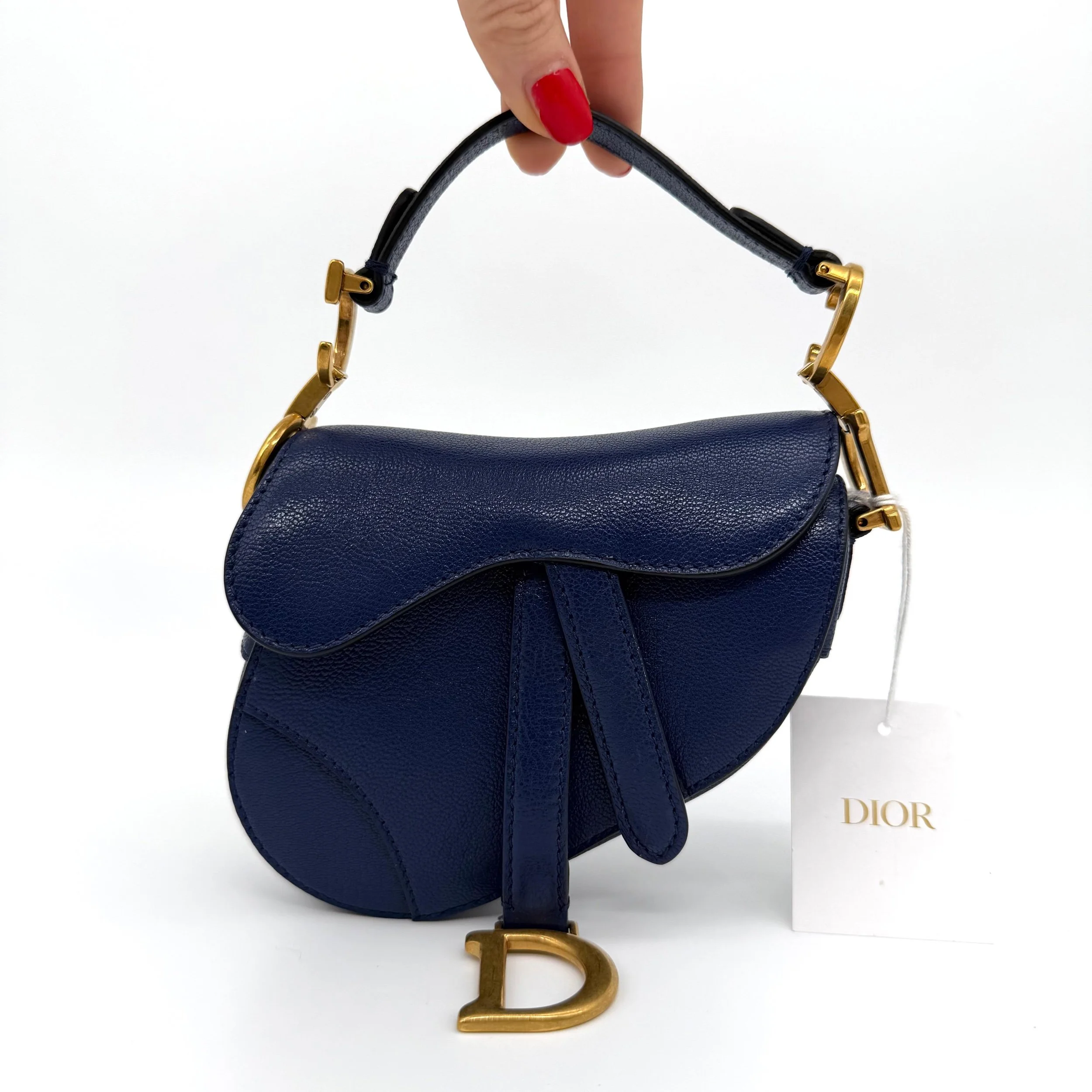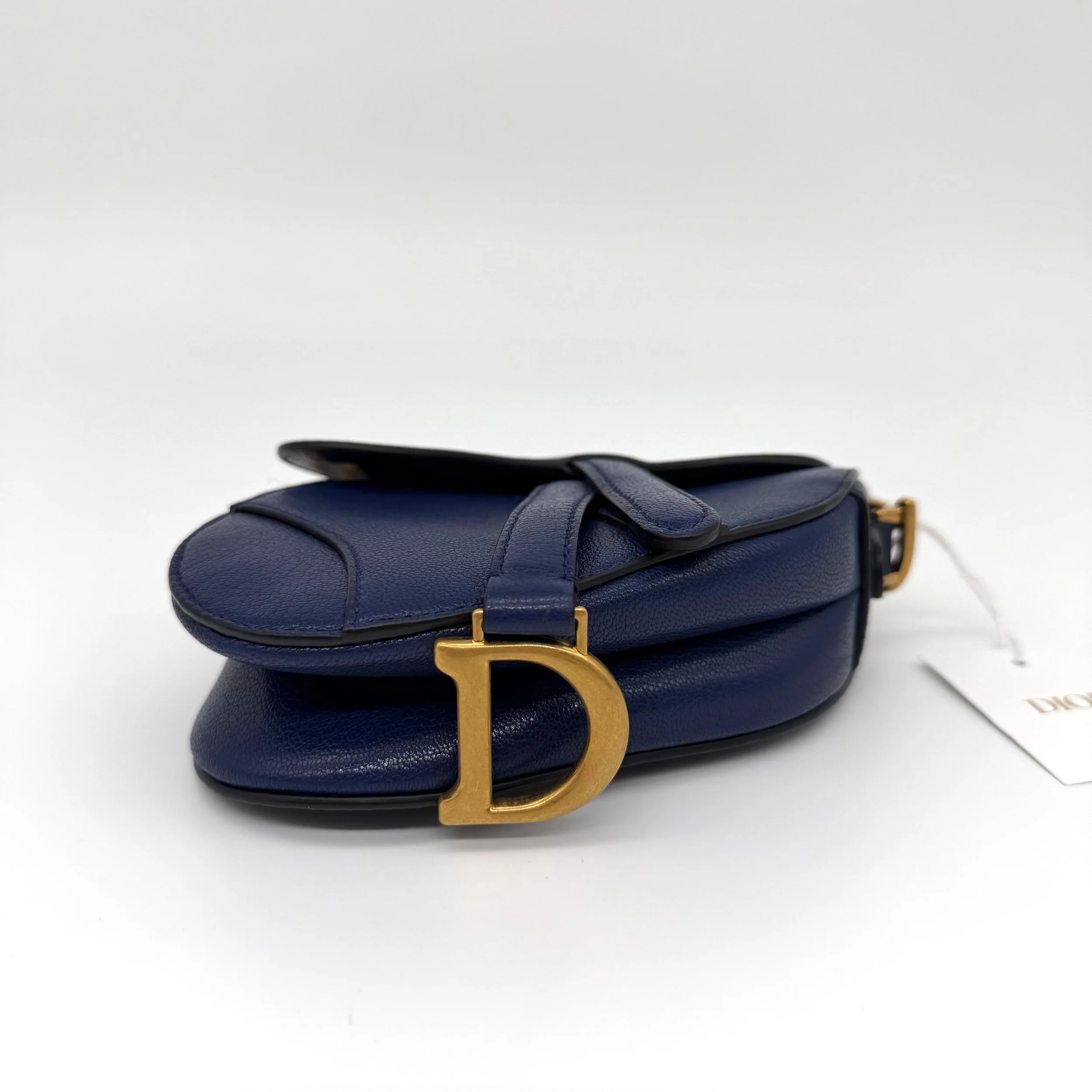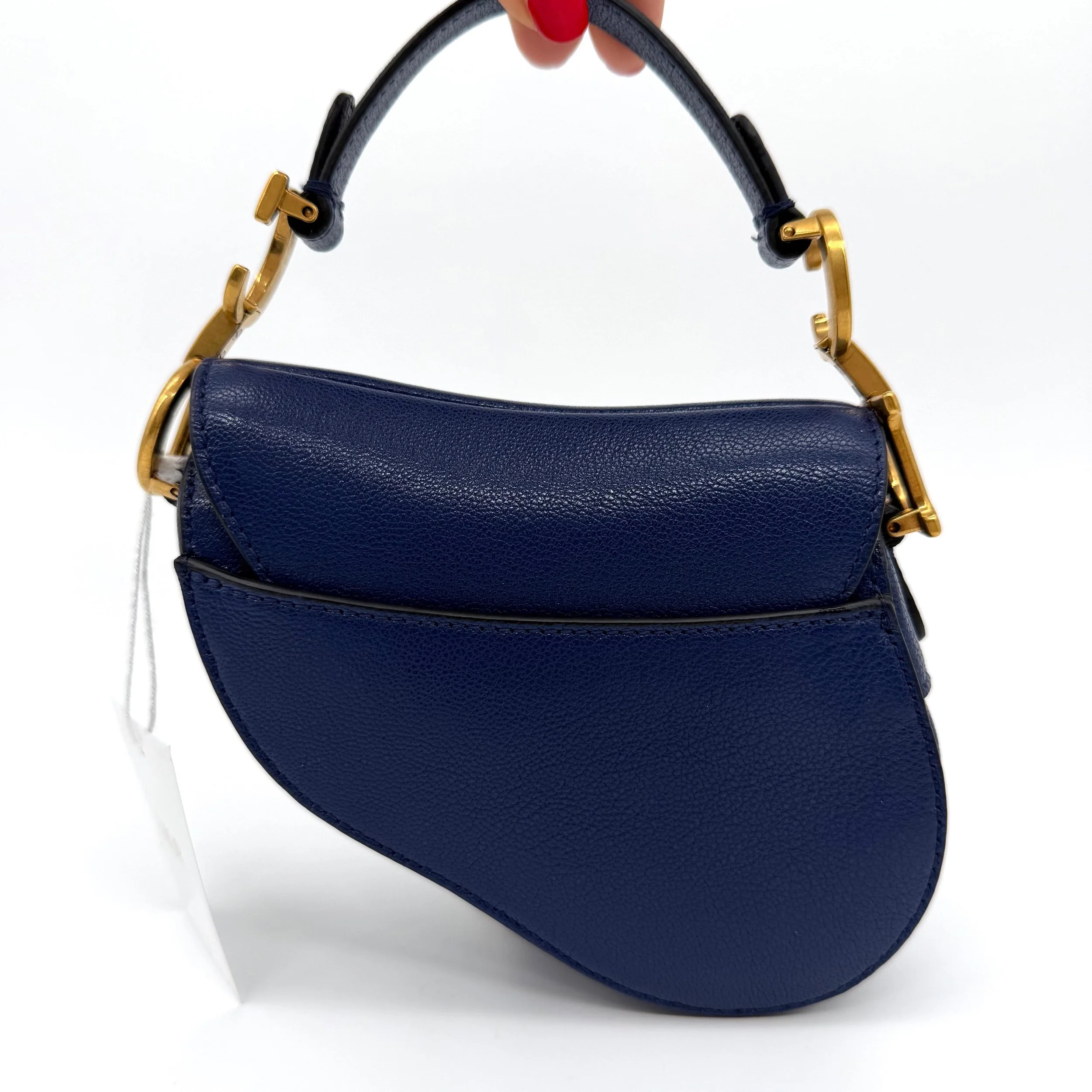 Item Description/Model: Christian Dior Micro Saddle Bag in Navy Blue Leather Gold Hardware