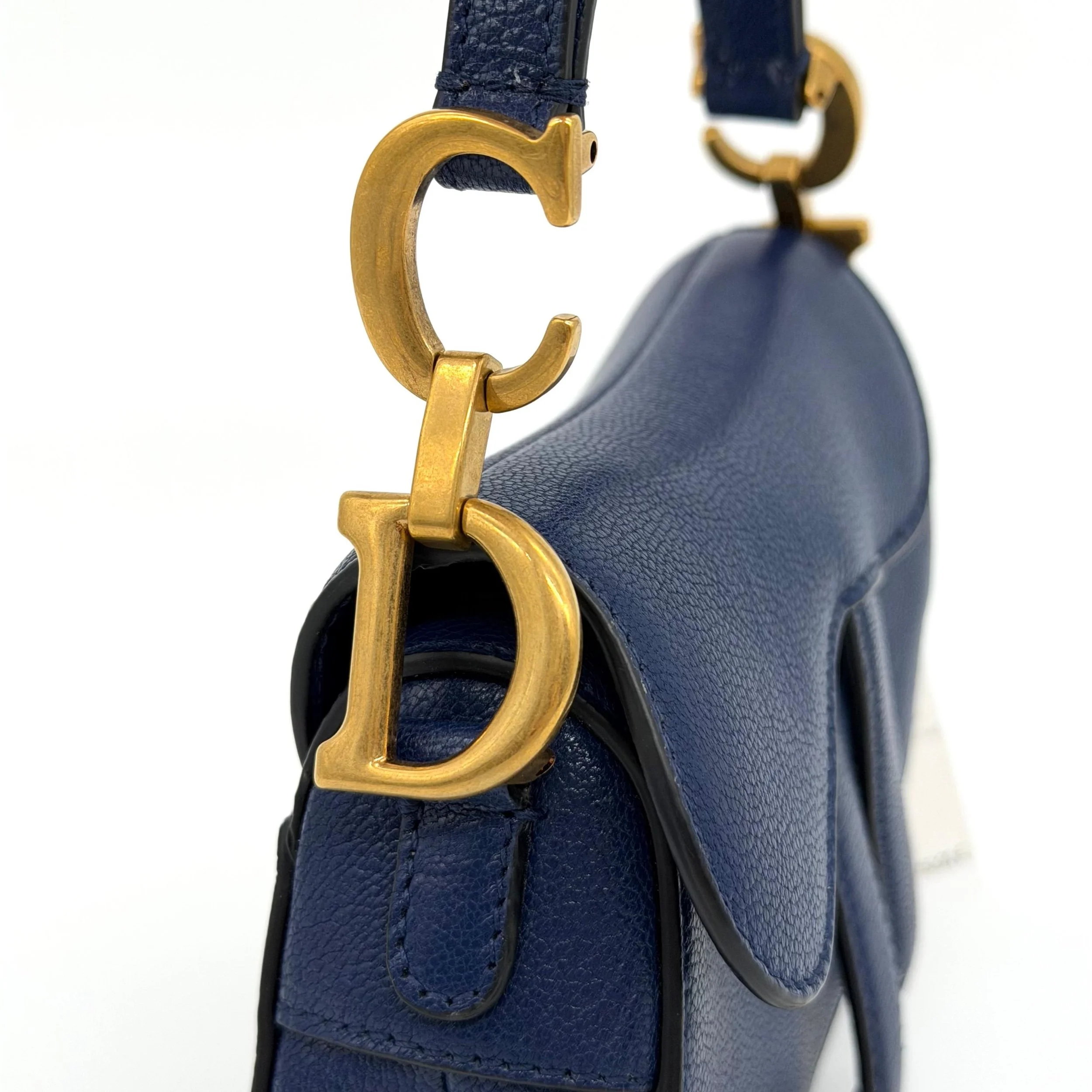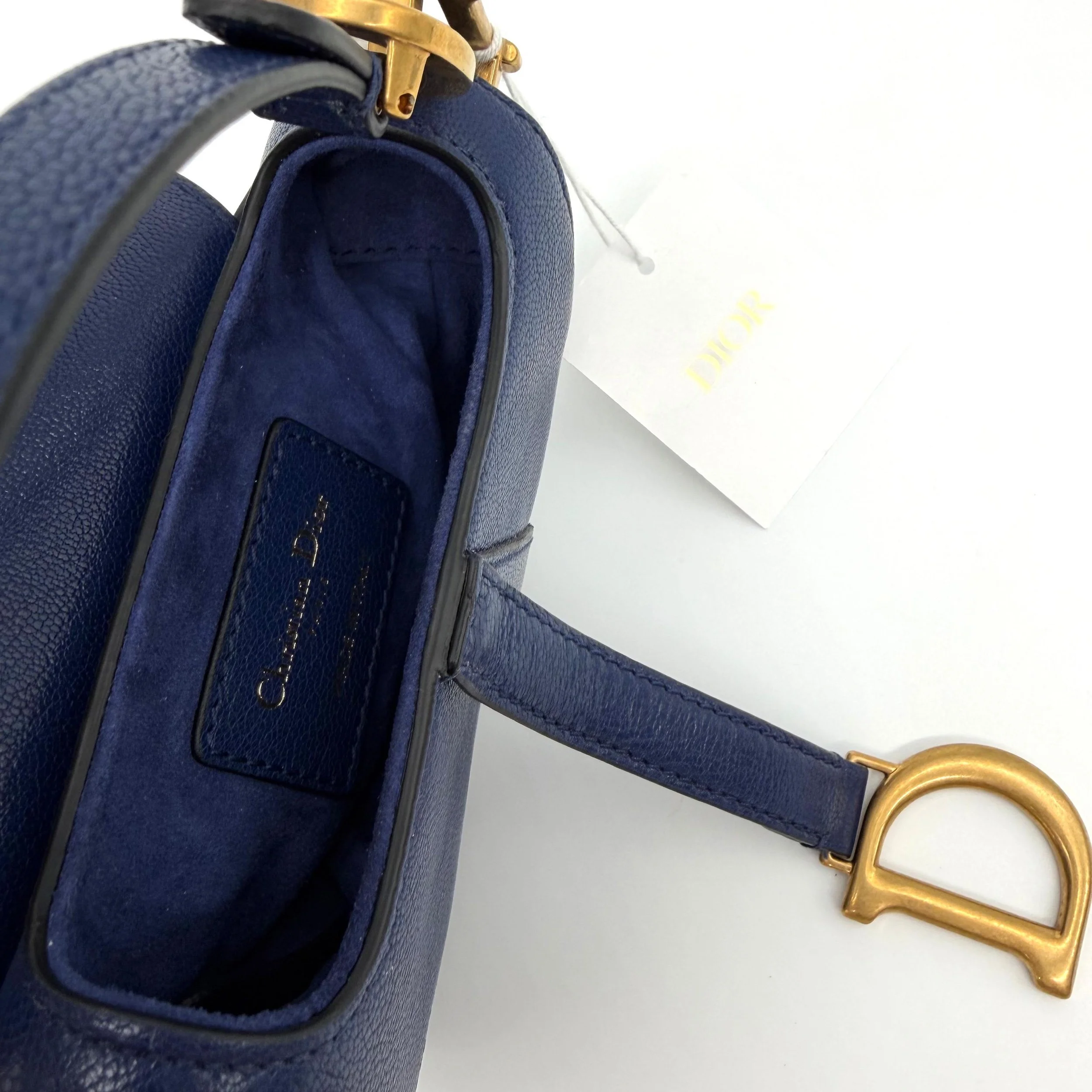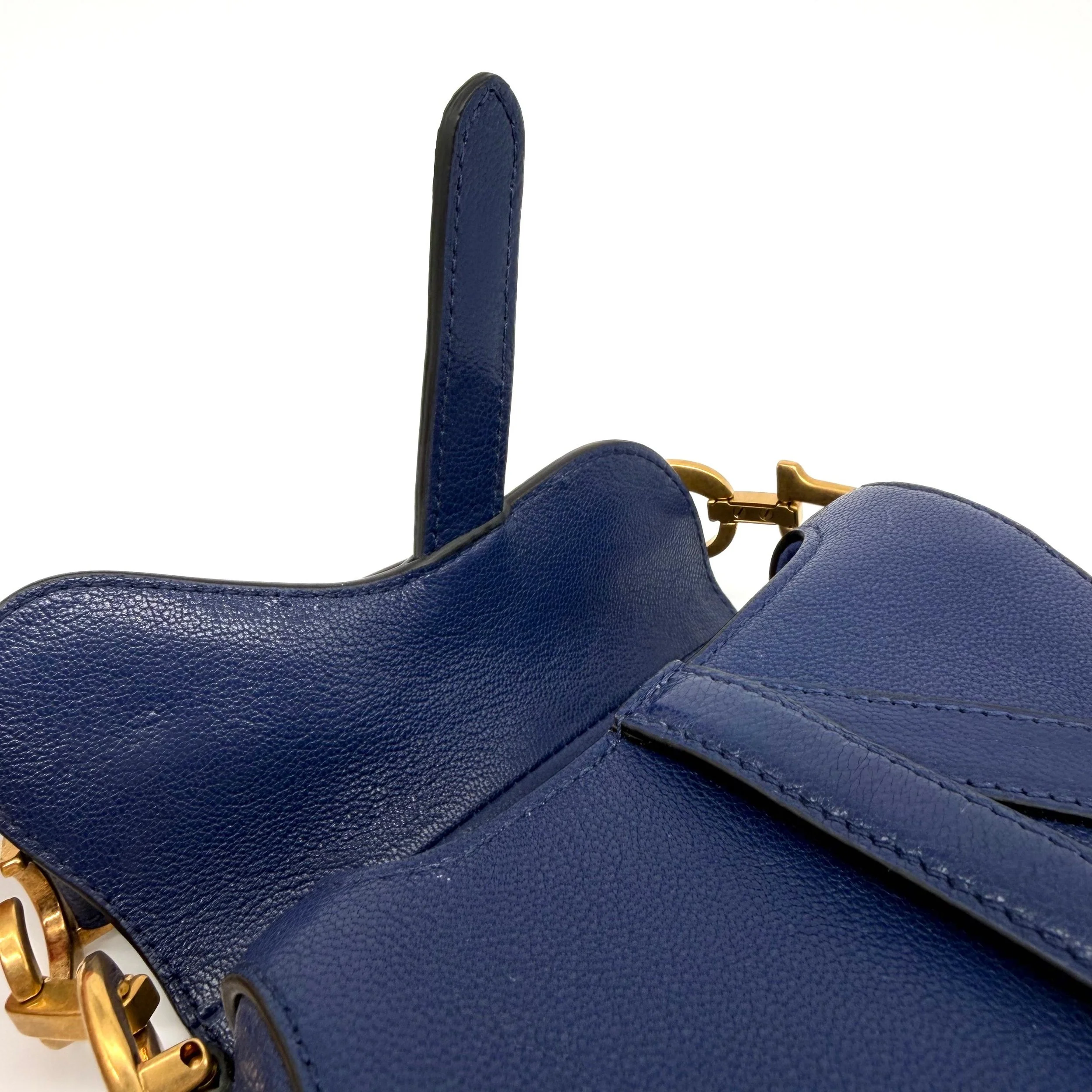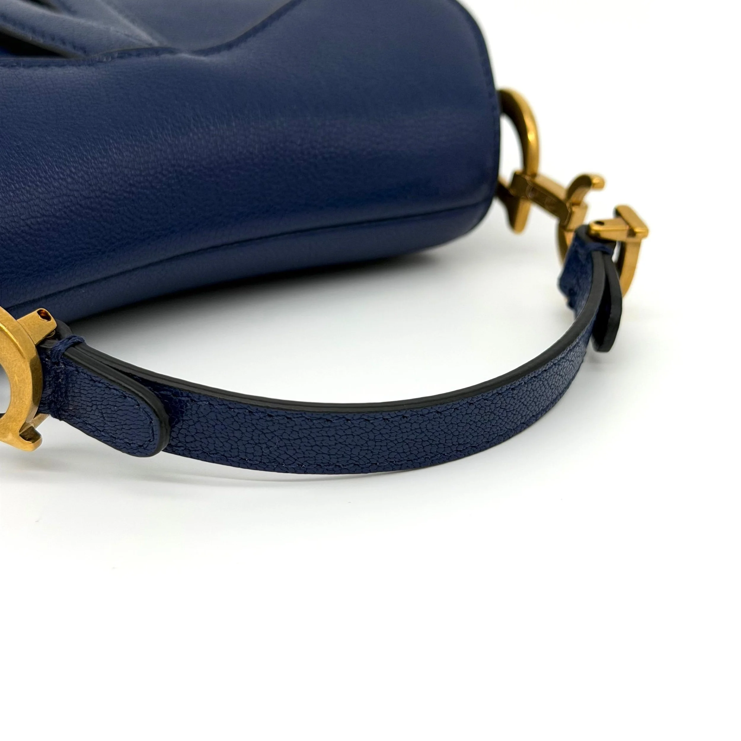 Item Description/Model: Christian Dior Micro Saddle Bag in Navy Blue Leather Gold Hardware