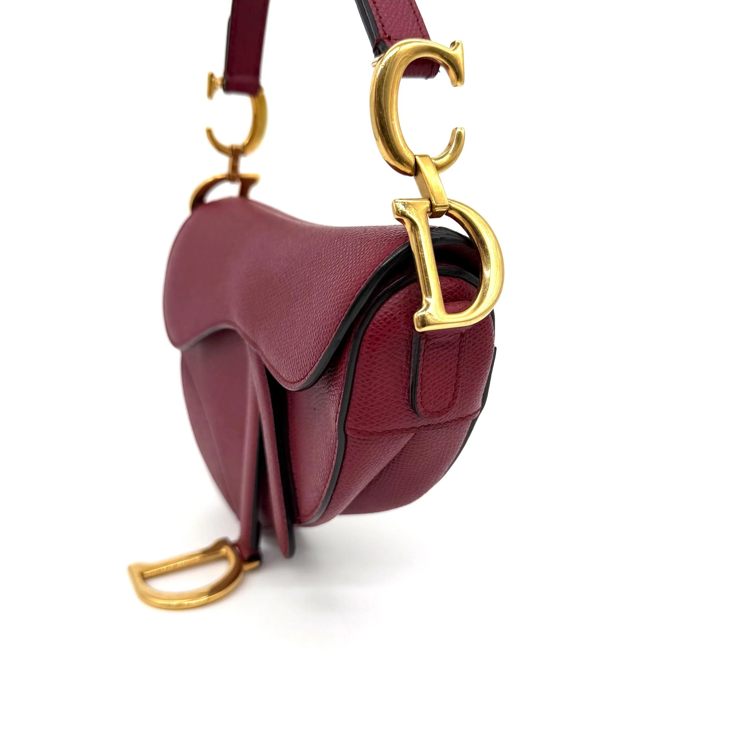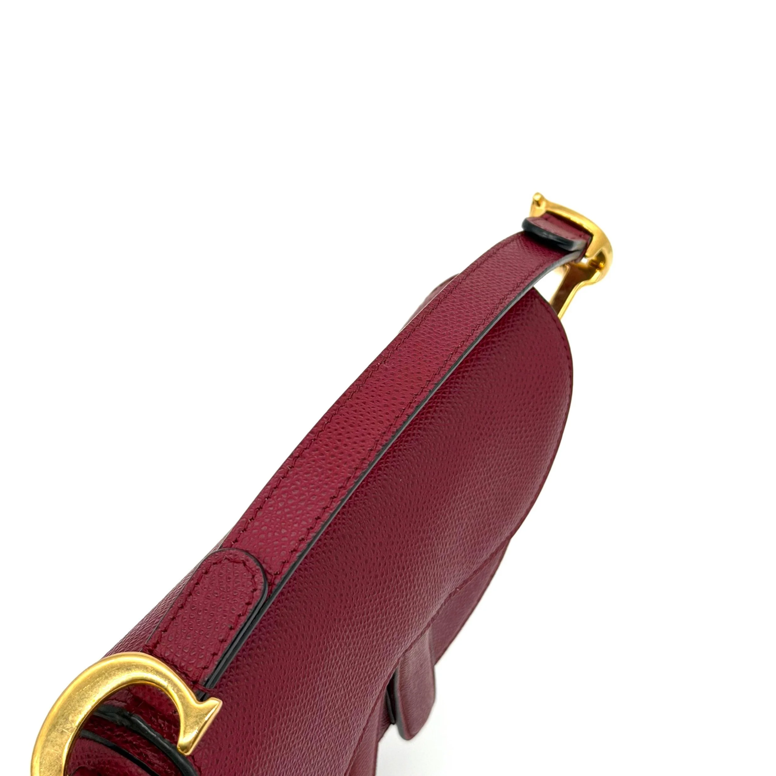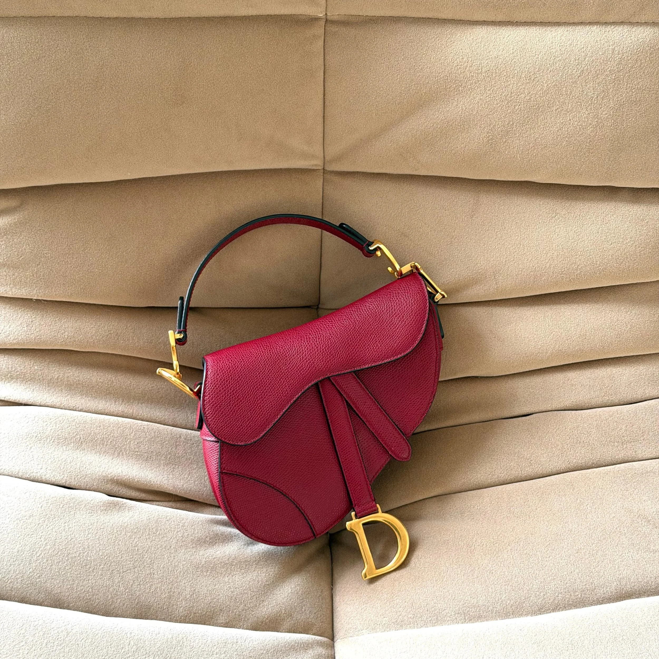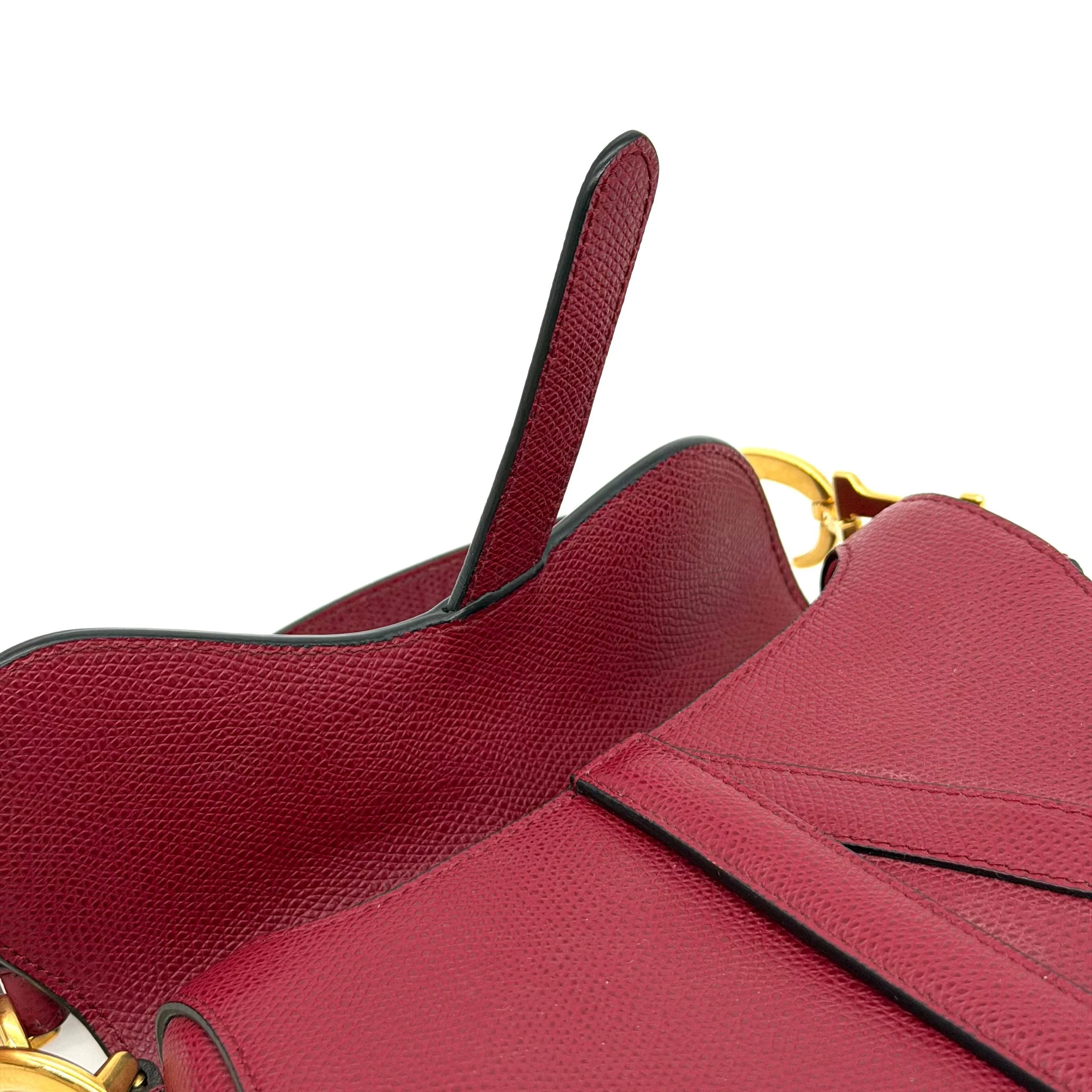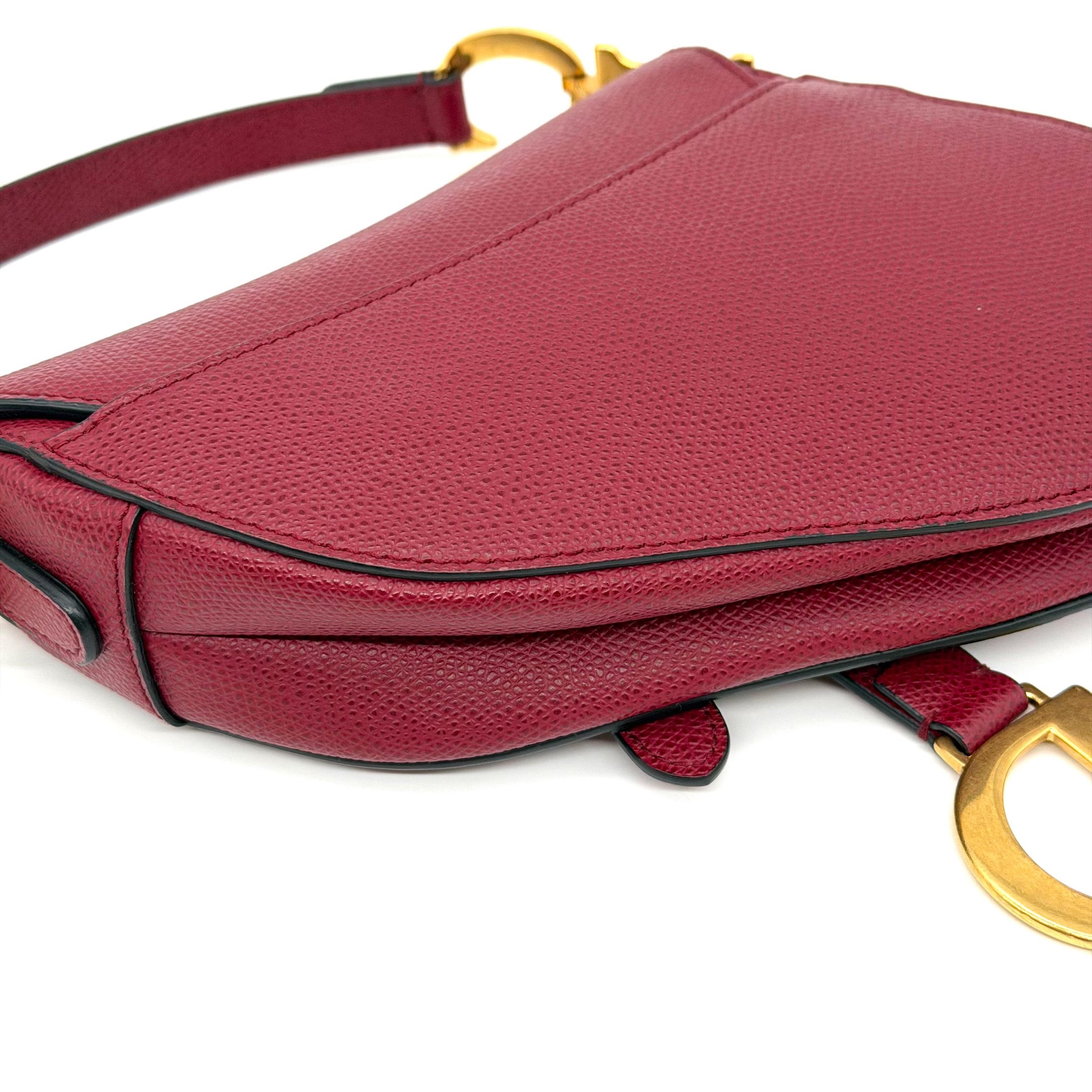 Item Description/Model: Christian Dior Mini Saddle Bag in Cherry Red (Burgundy) Grained Leather Gold Hardware