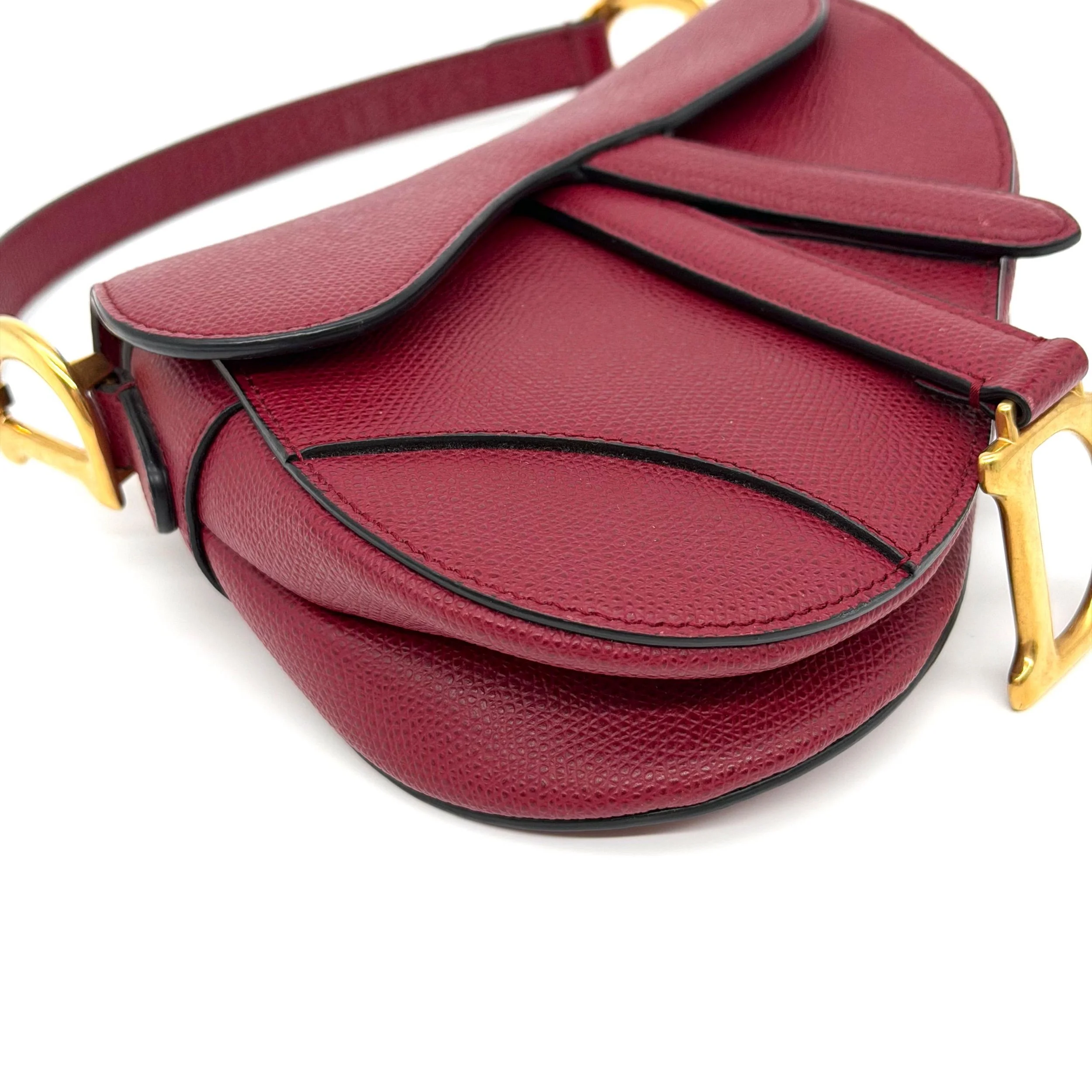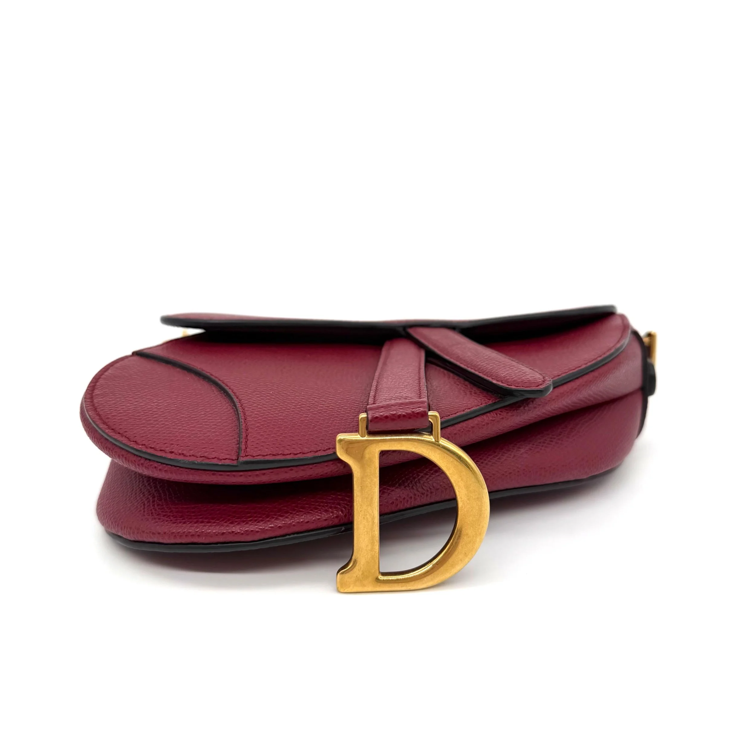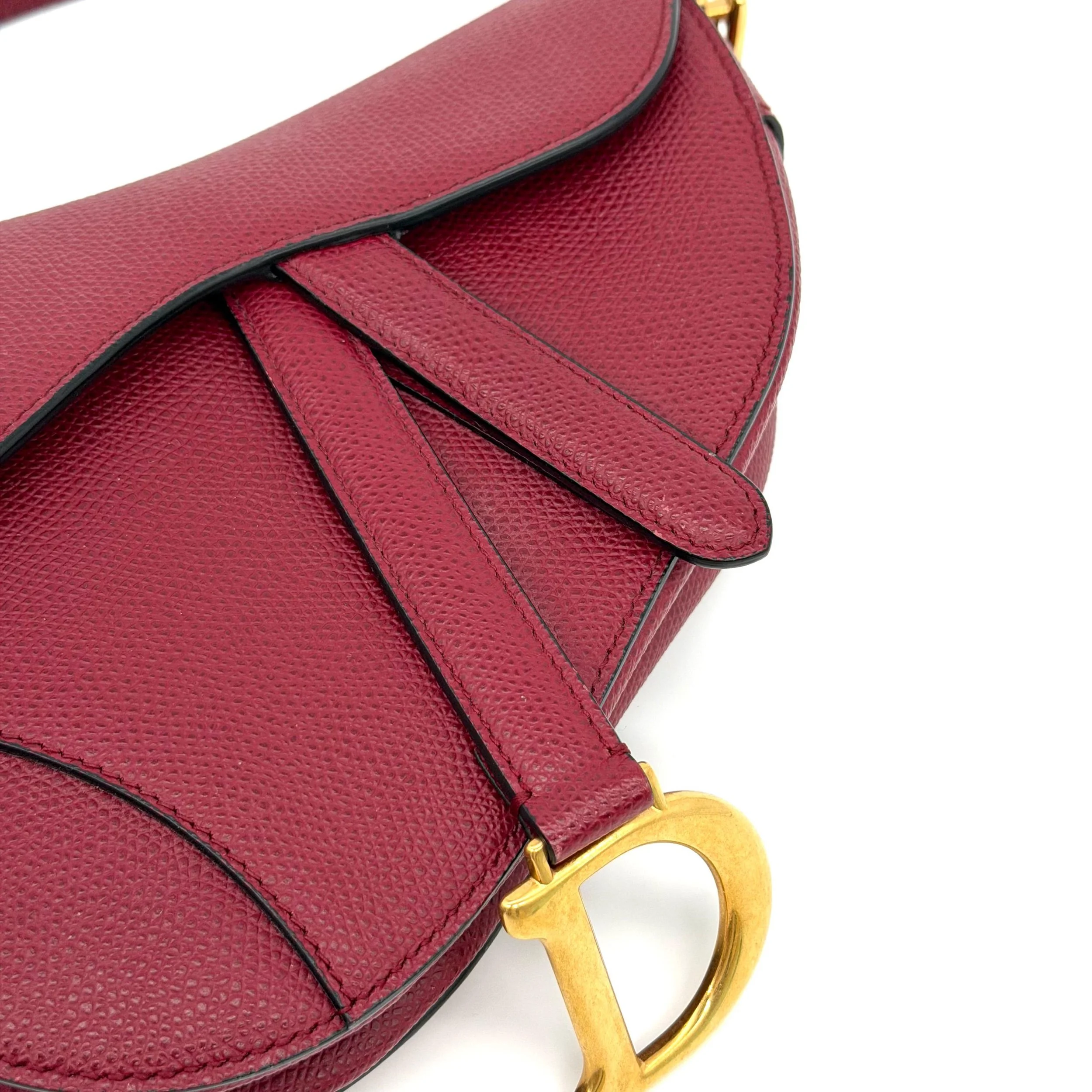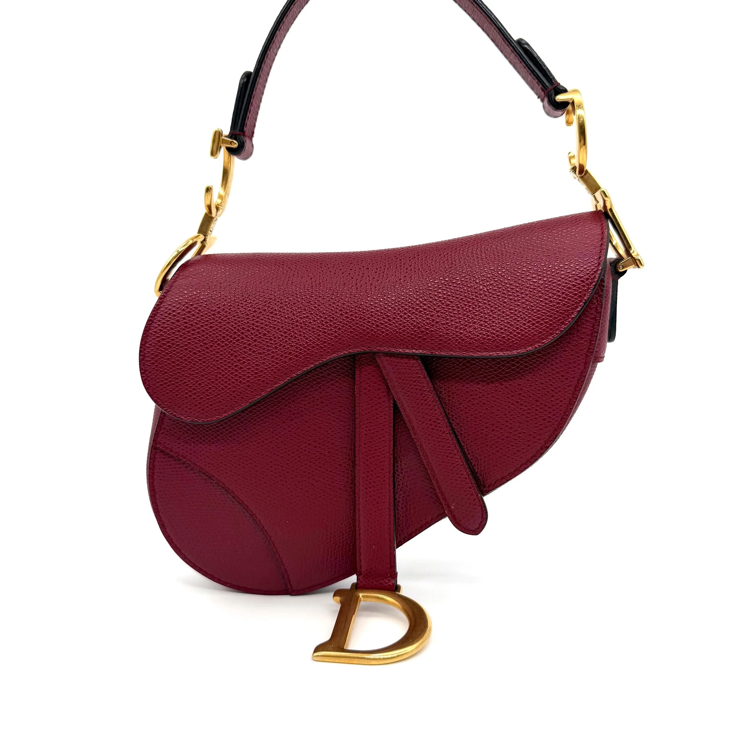Item Description/Model: Christian Dior Mini Saddle Bag in Cherry Red (Burgundy) Grained Leather Gold Hardware
