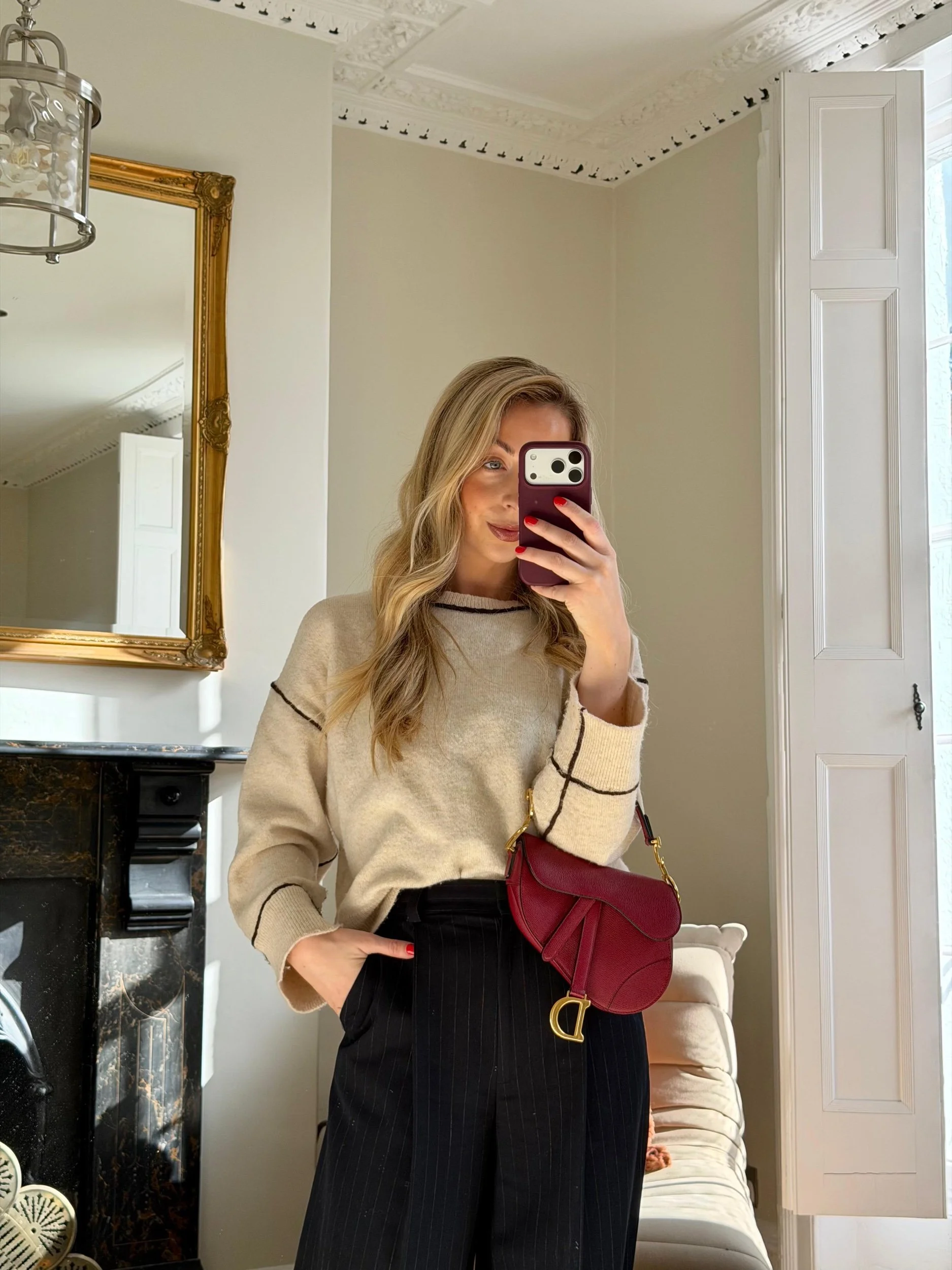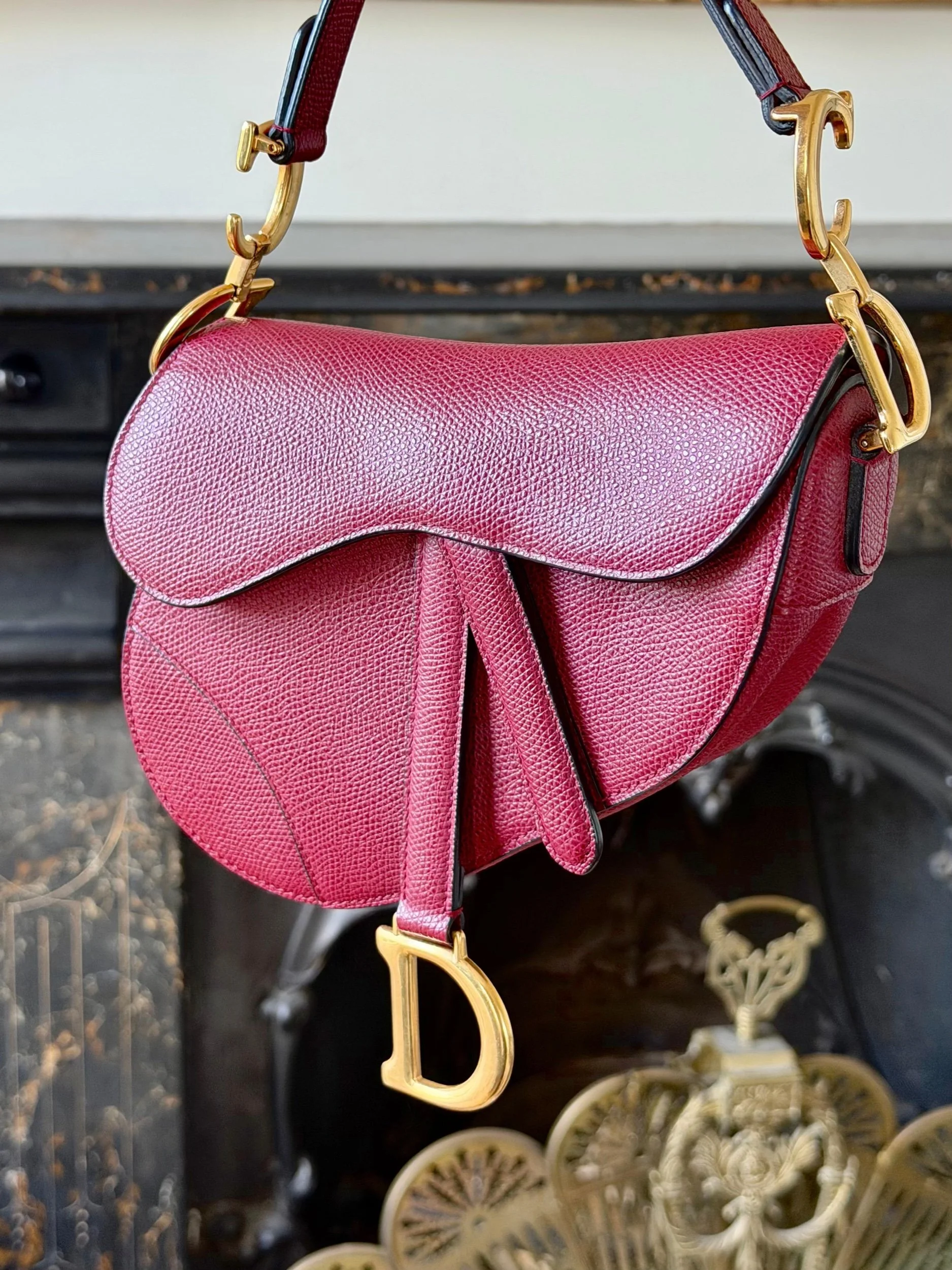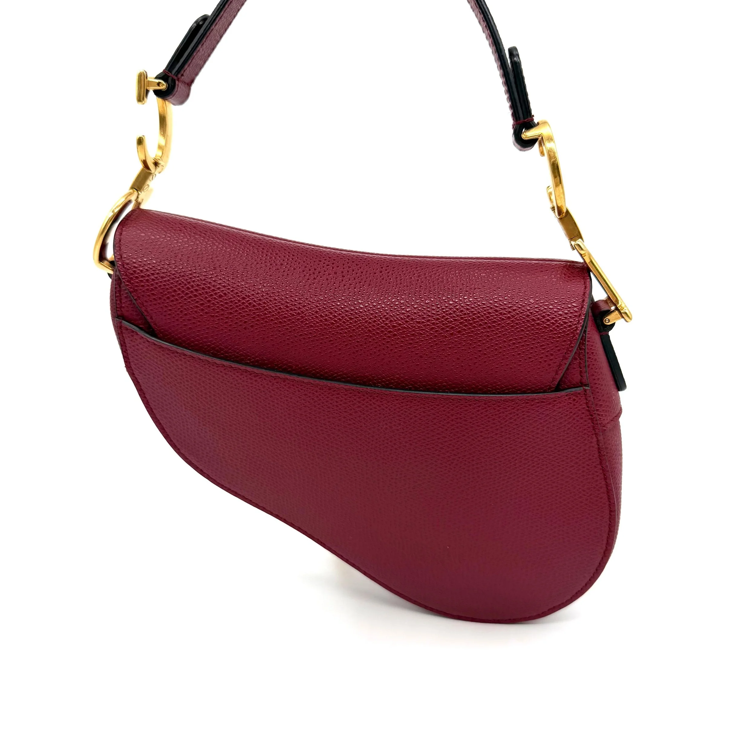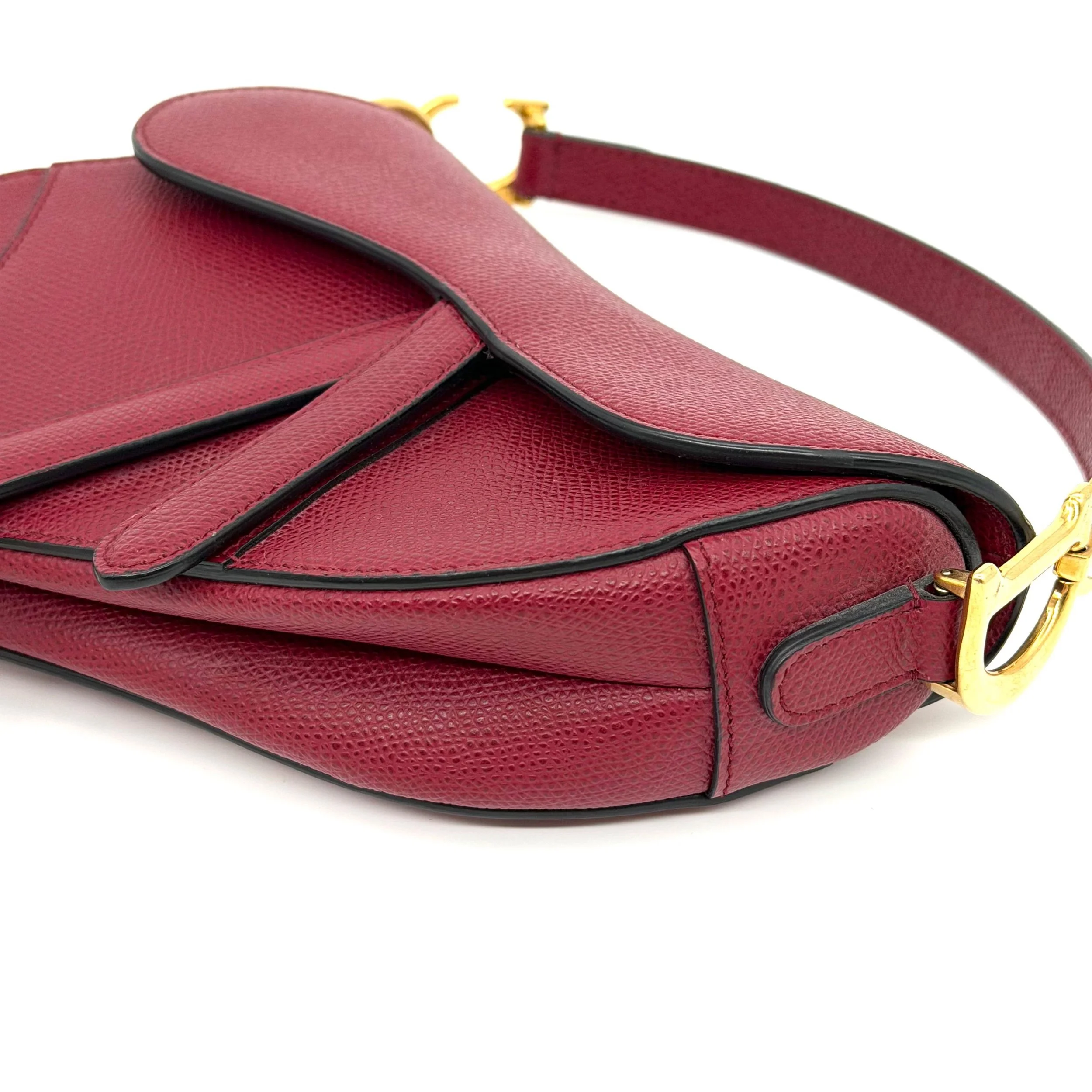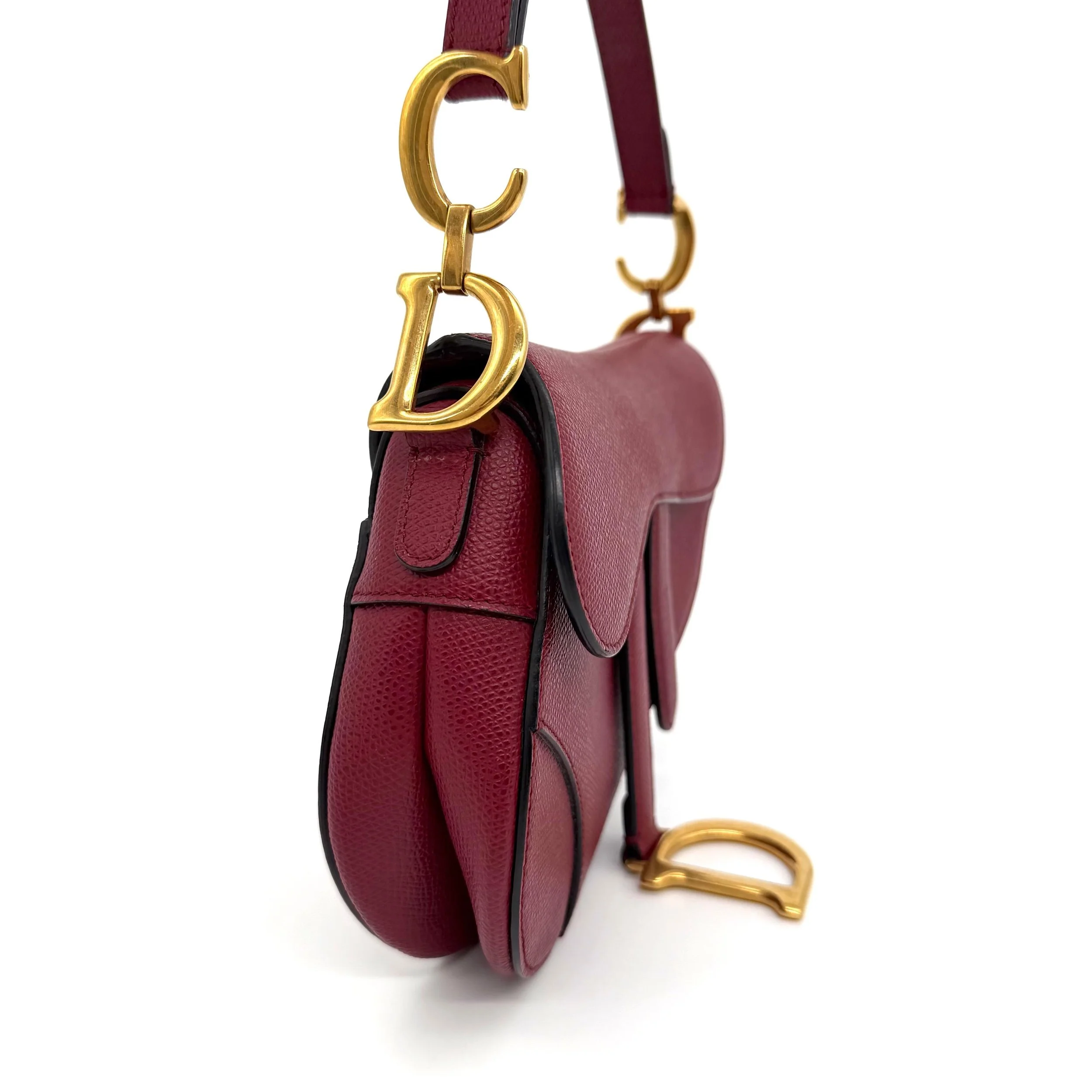 Item Description/Model: Christian Dior Mini Saddle Bag in Cherry Red (Burgundy) Grained Leather Gold Hardware