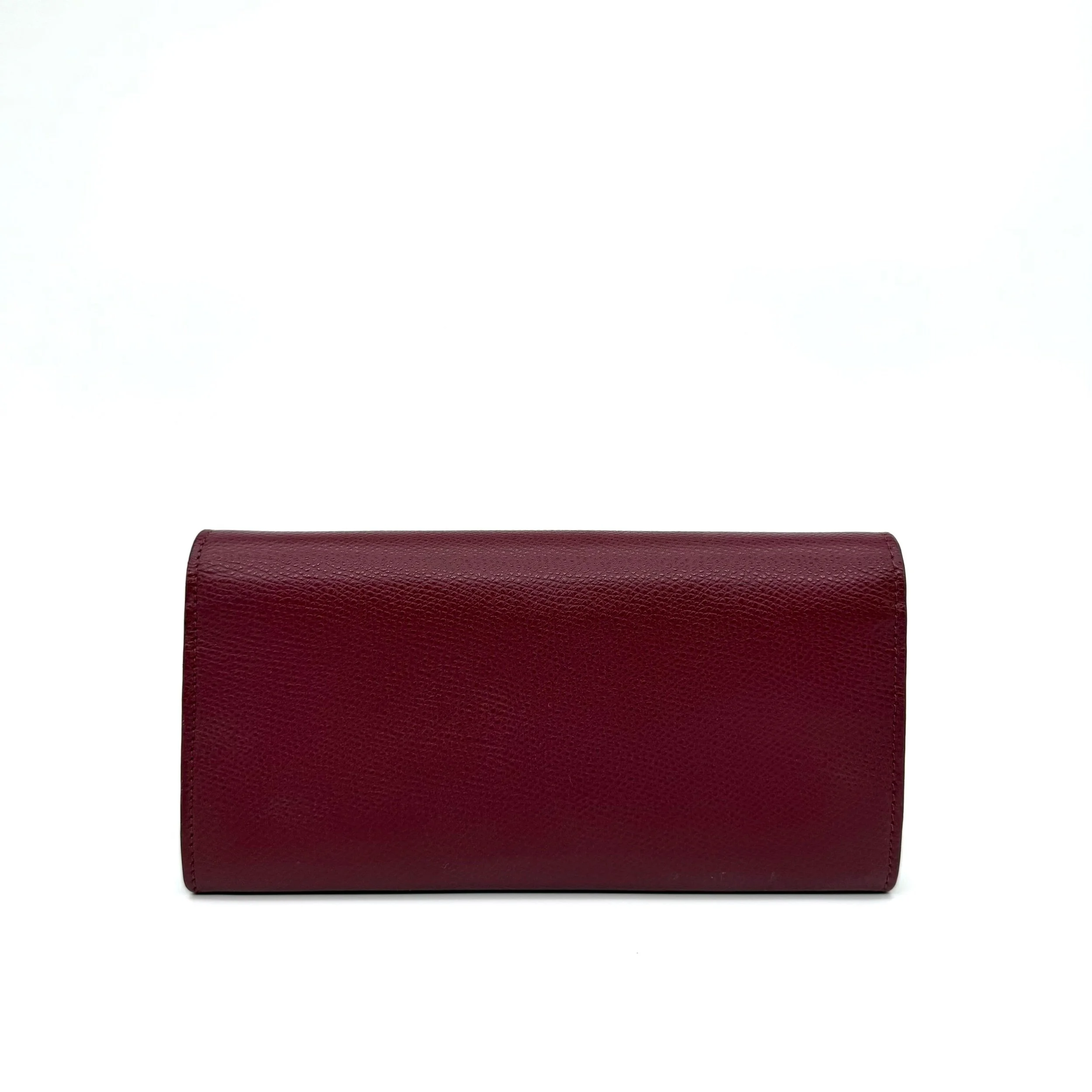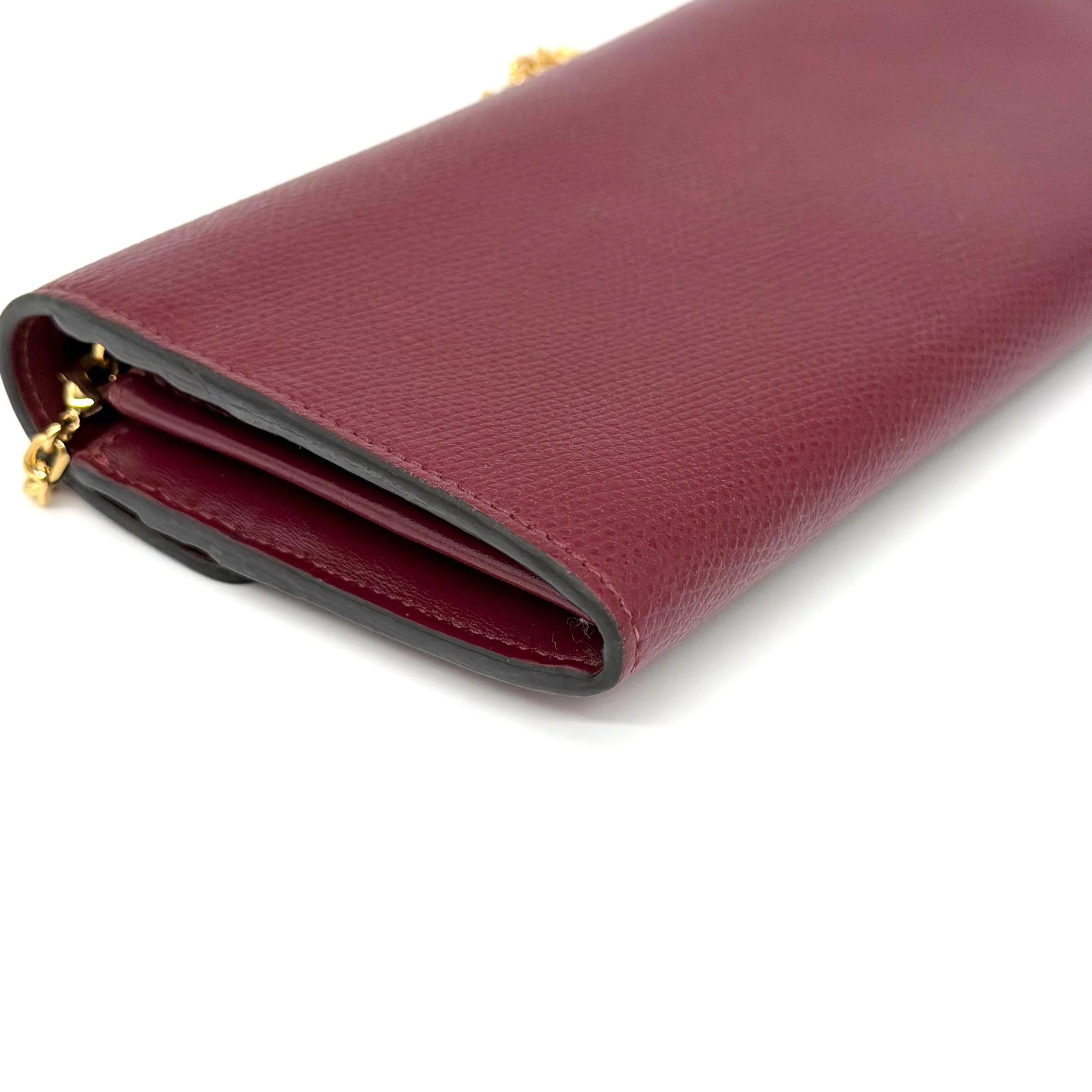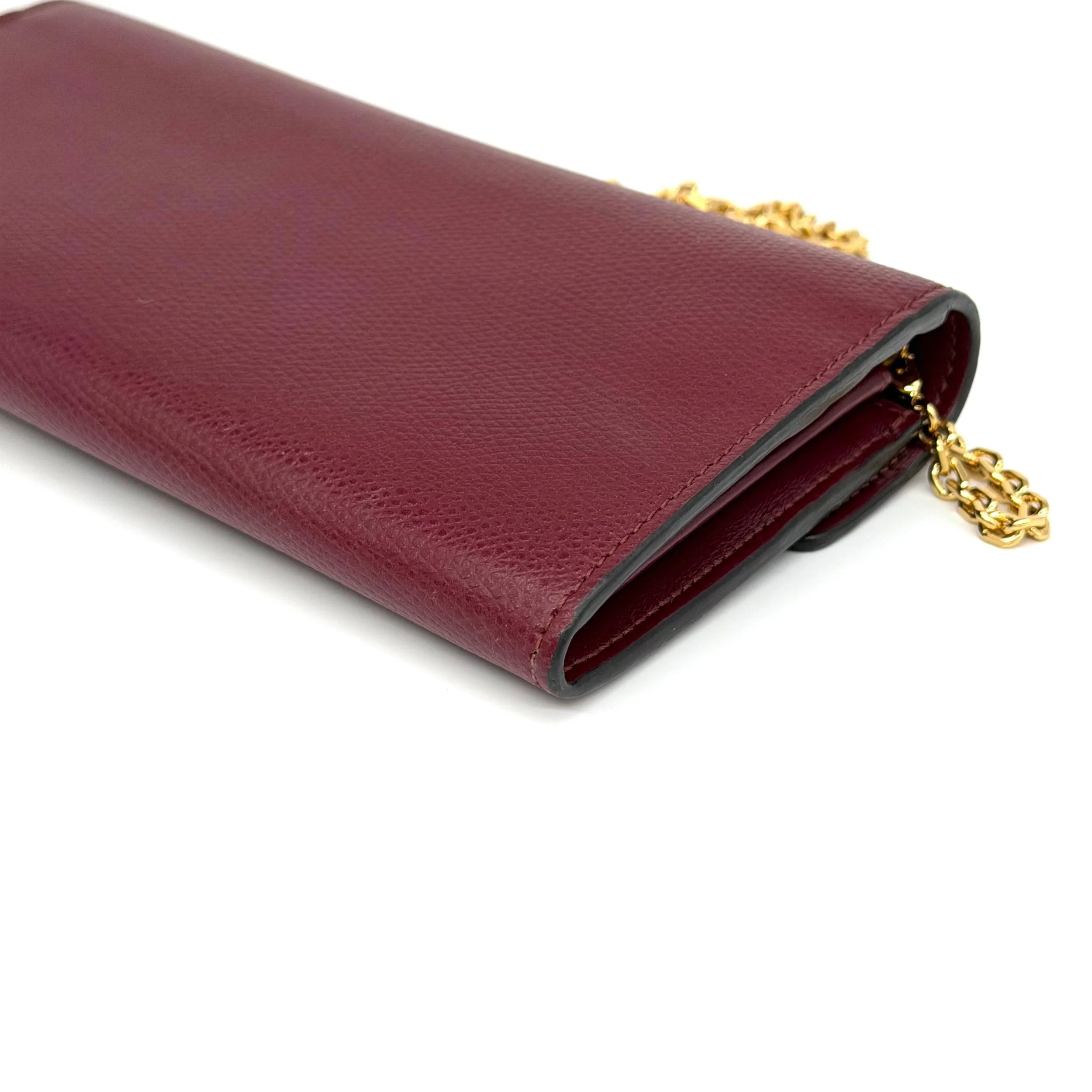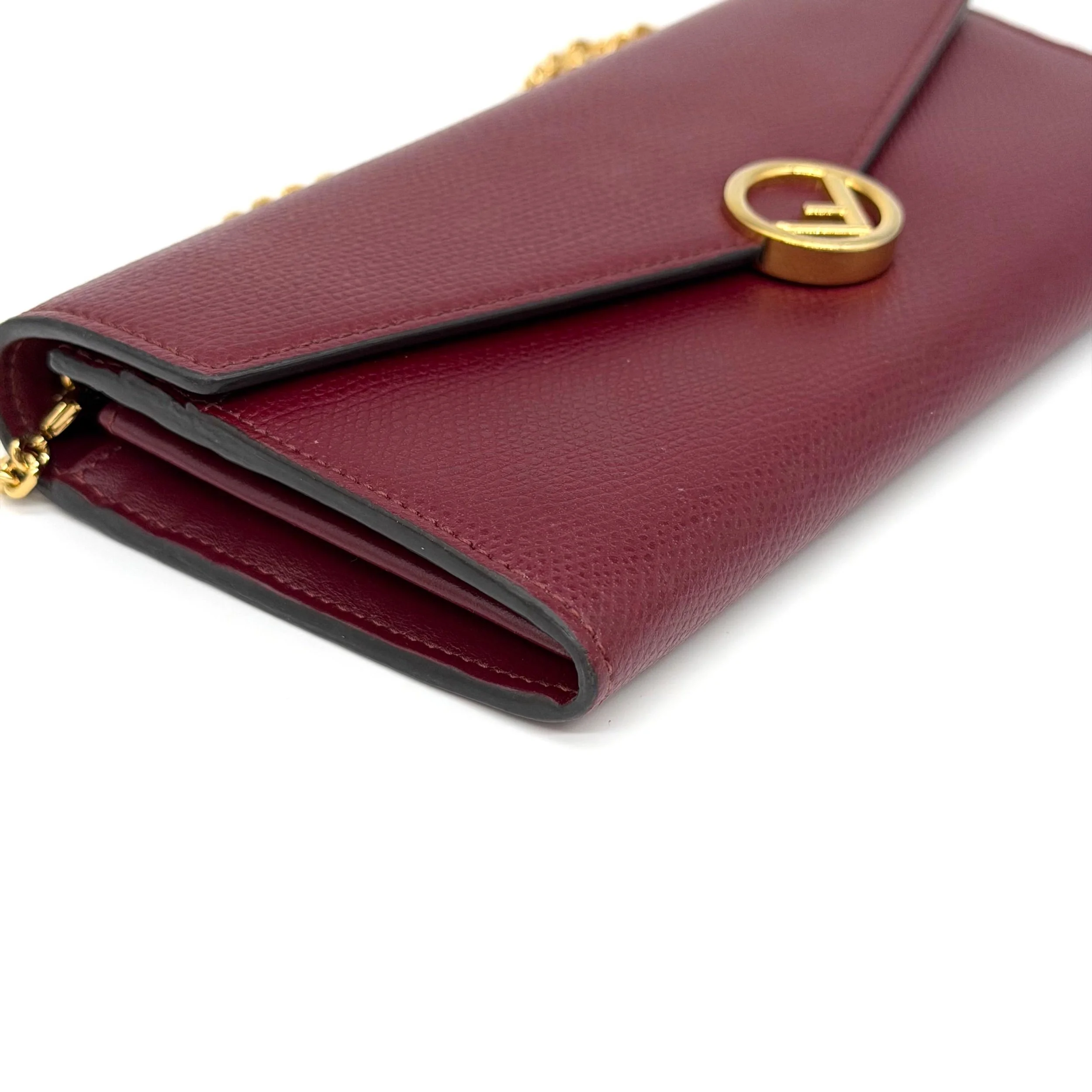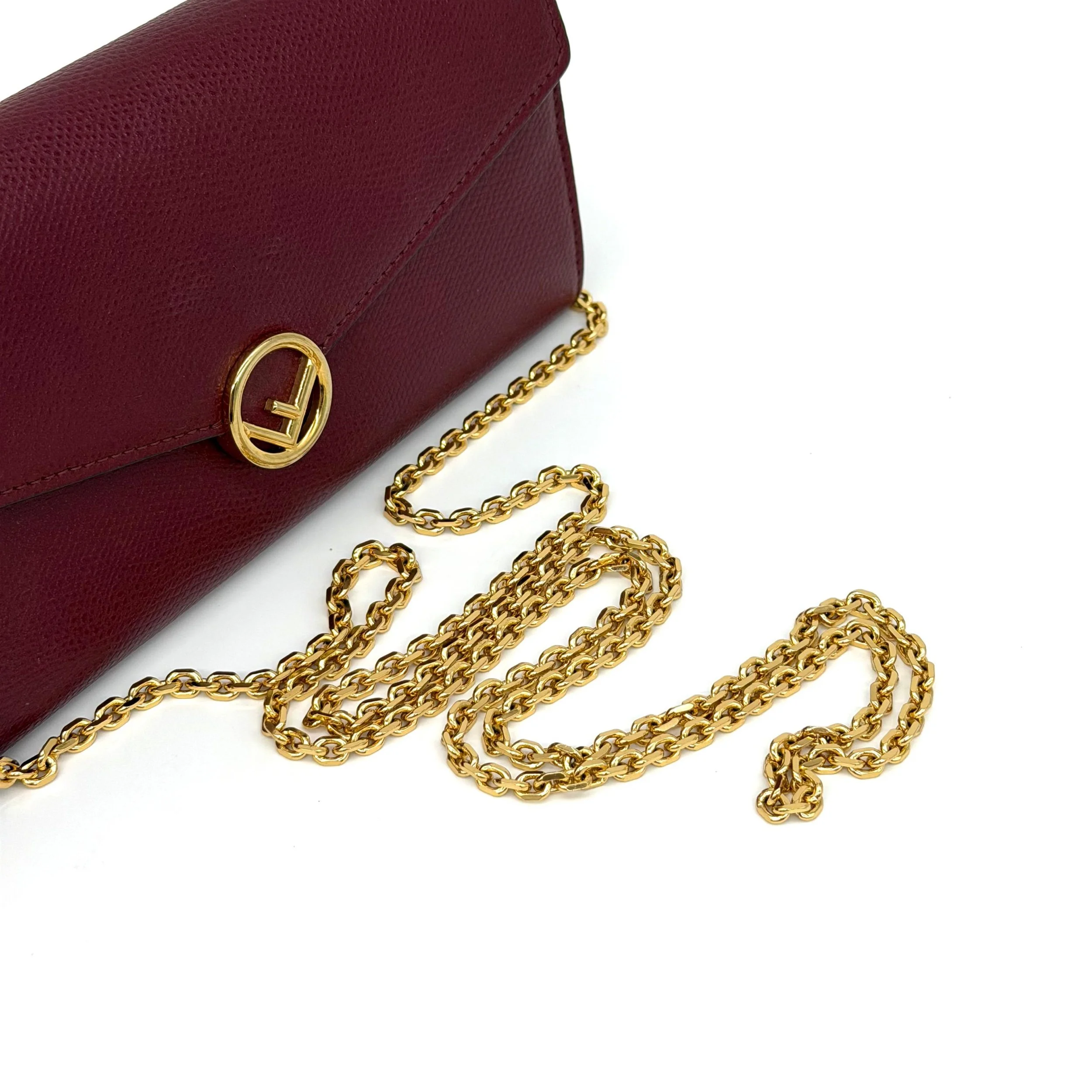 Item Description/Model: Fendi Continental Wallet on Chain Bag Burgundy Grained Leather with Gold Hardware