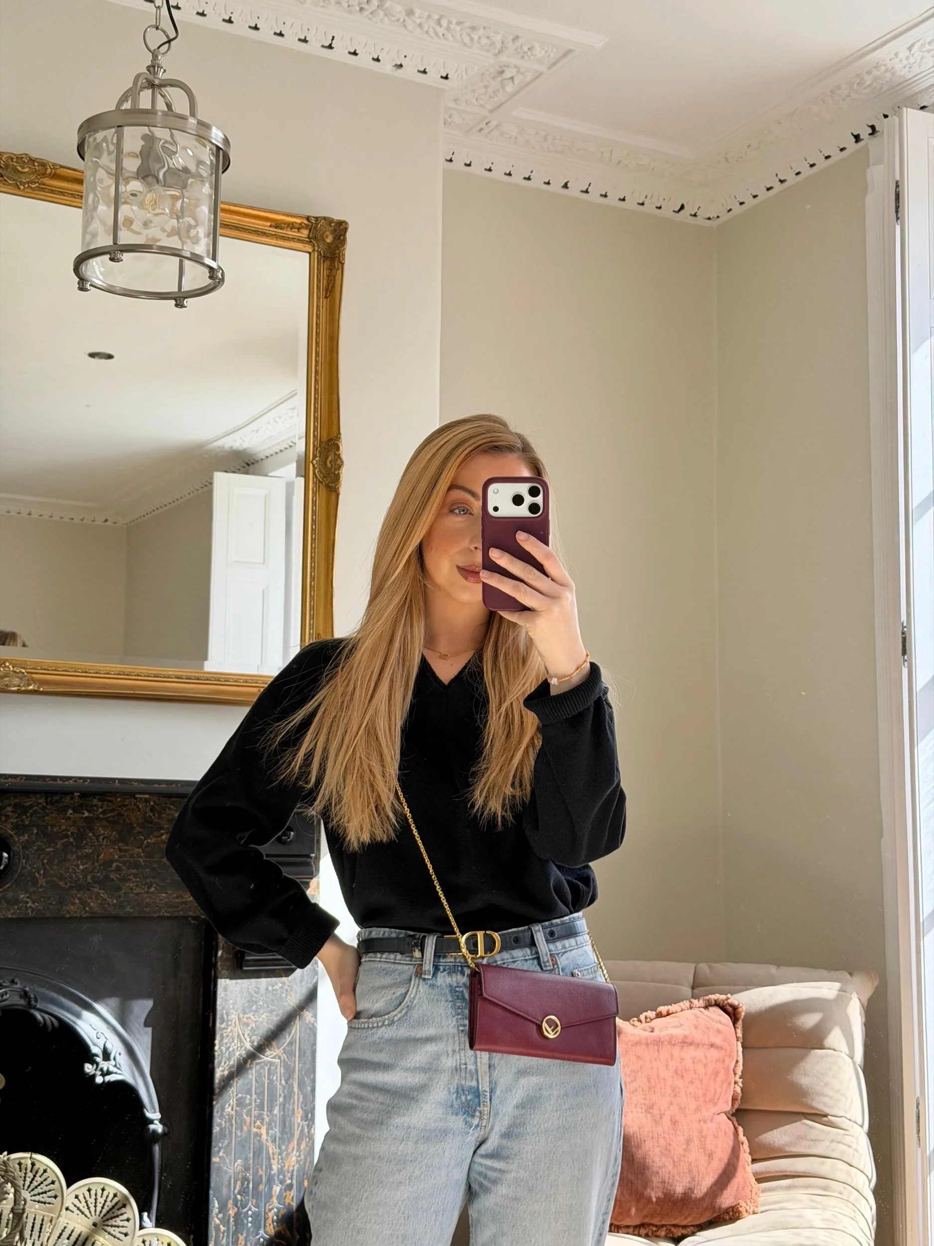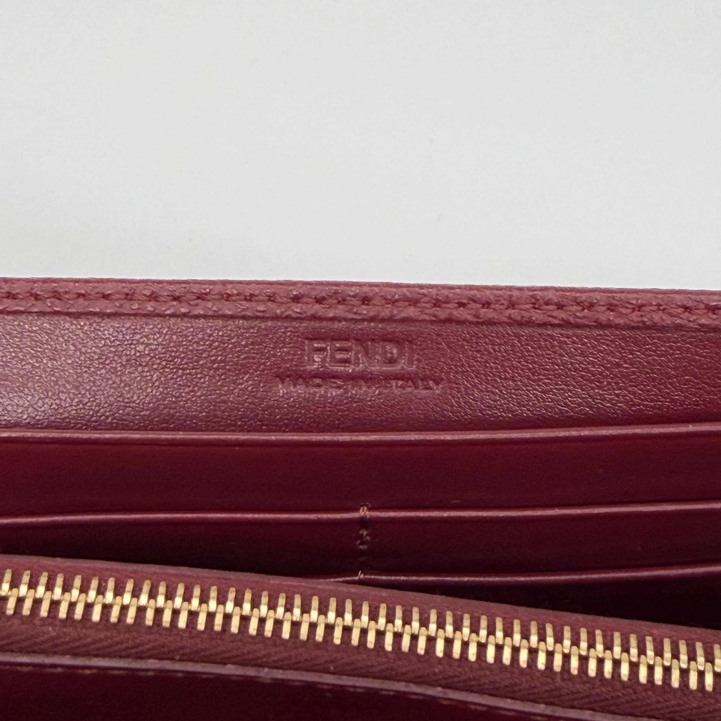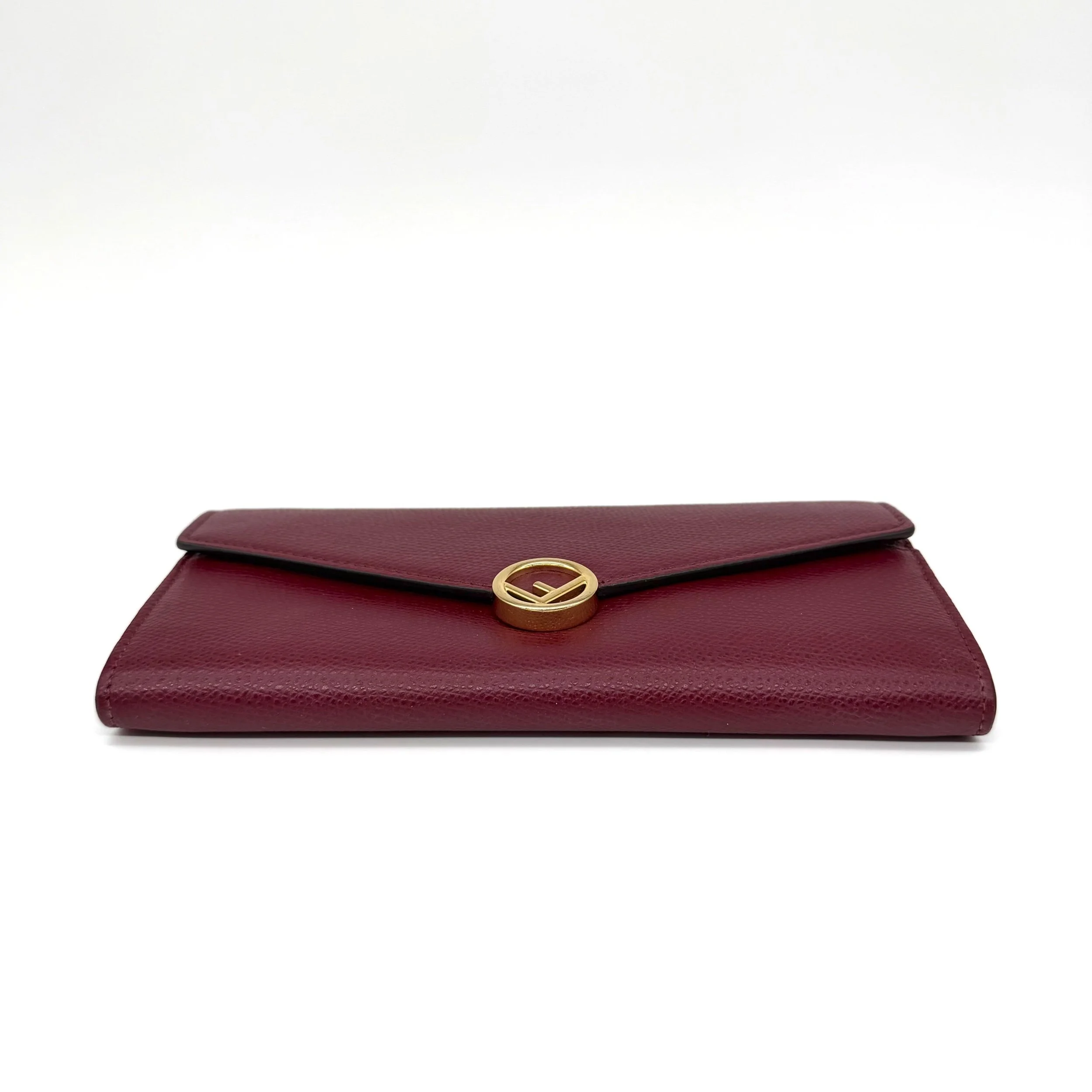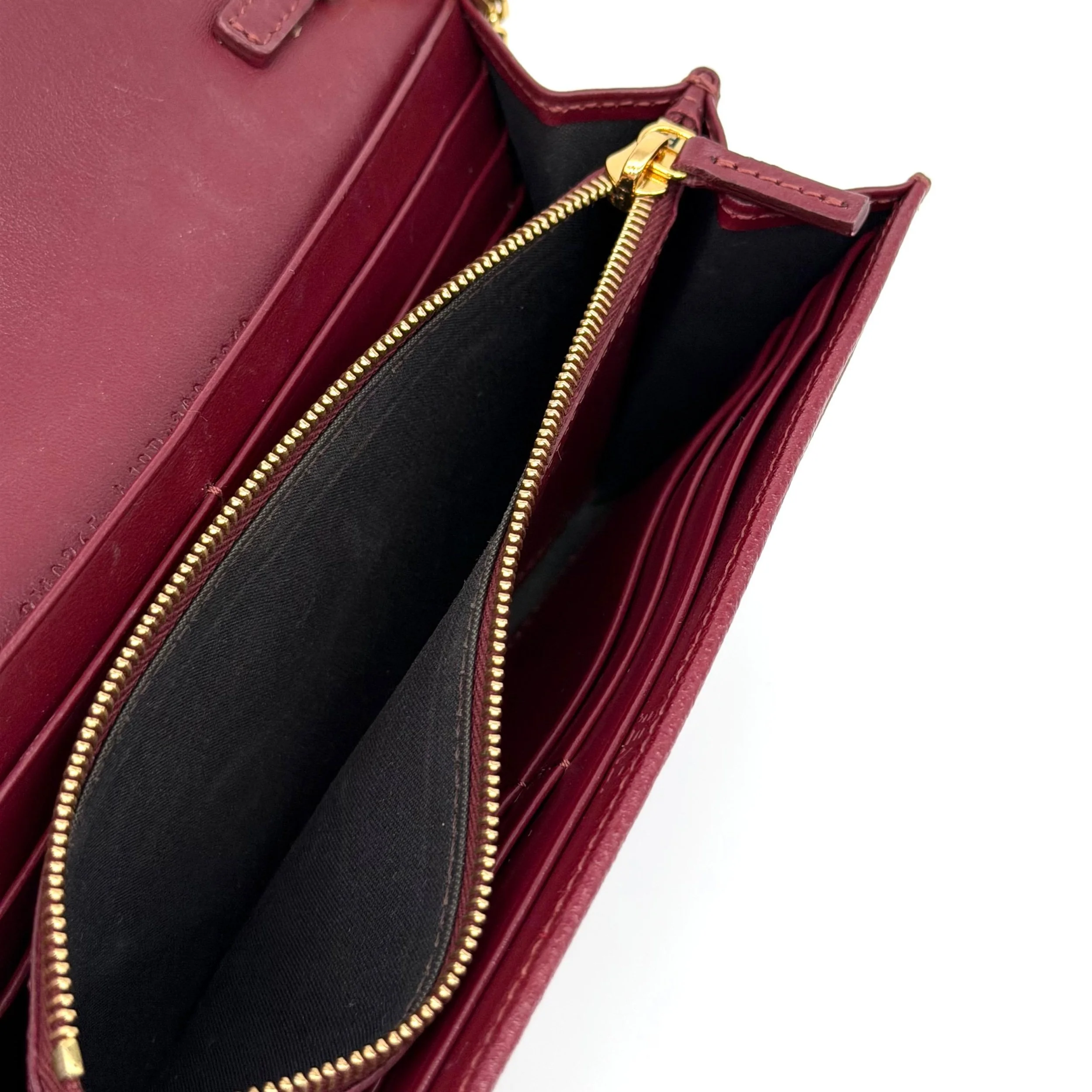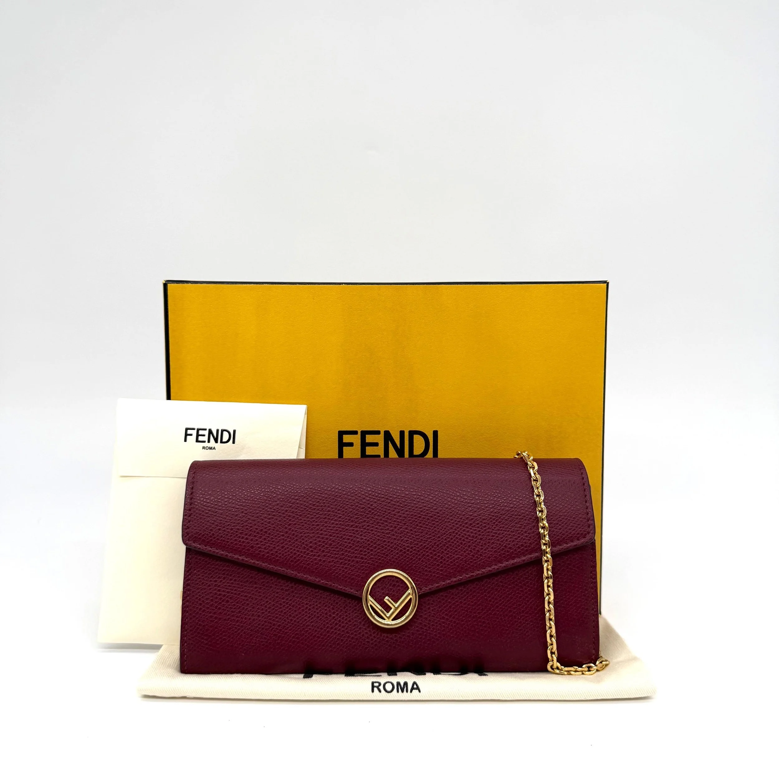 Item Description/Model: Fendi Continental Wallet on Chain Bag Burgundy Grained Leather with Gold Hardware