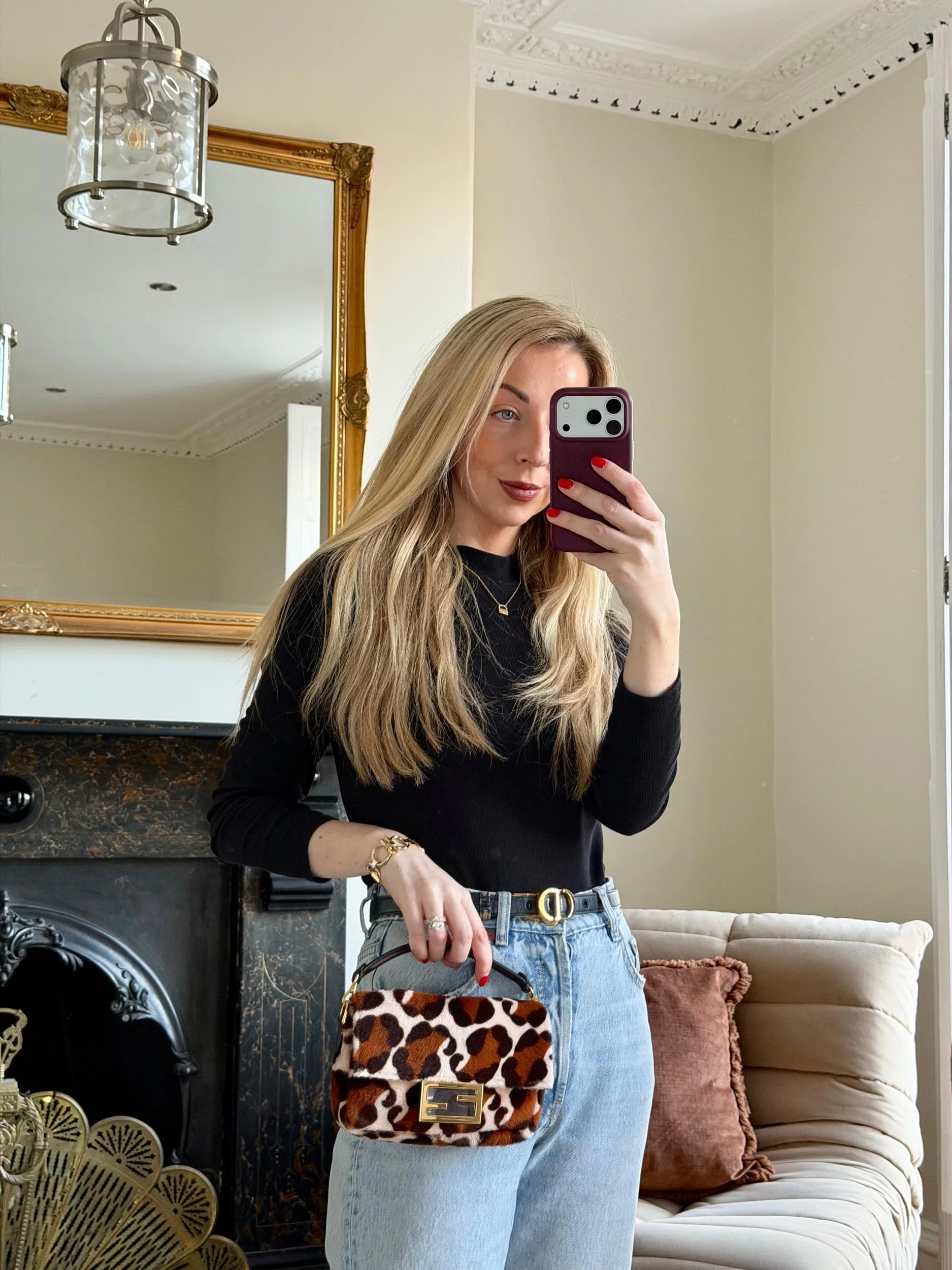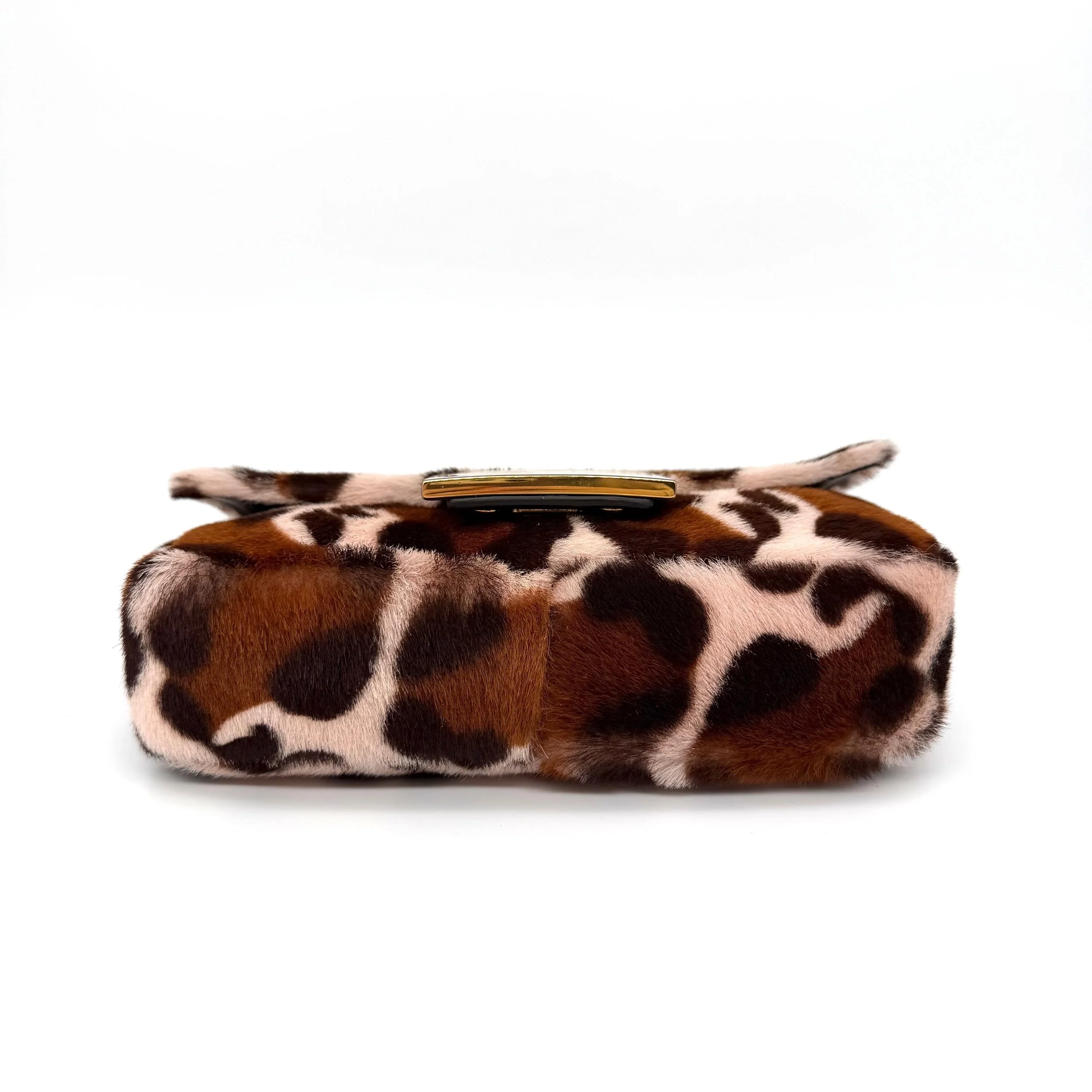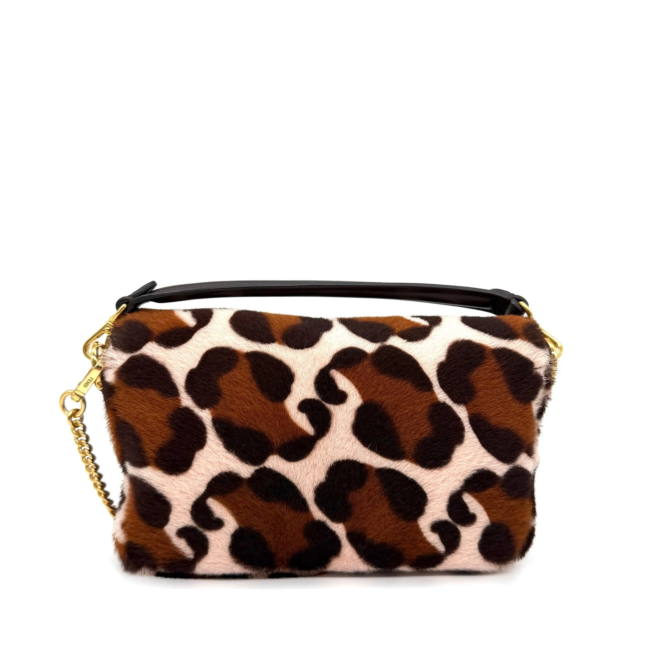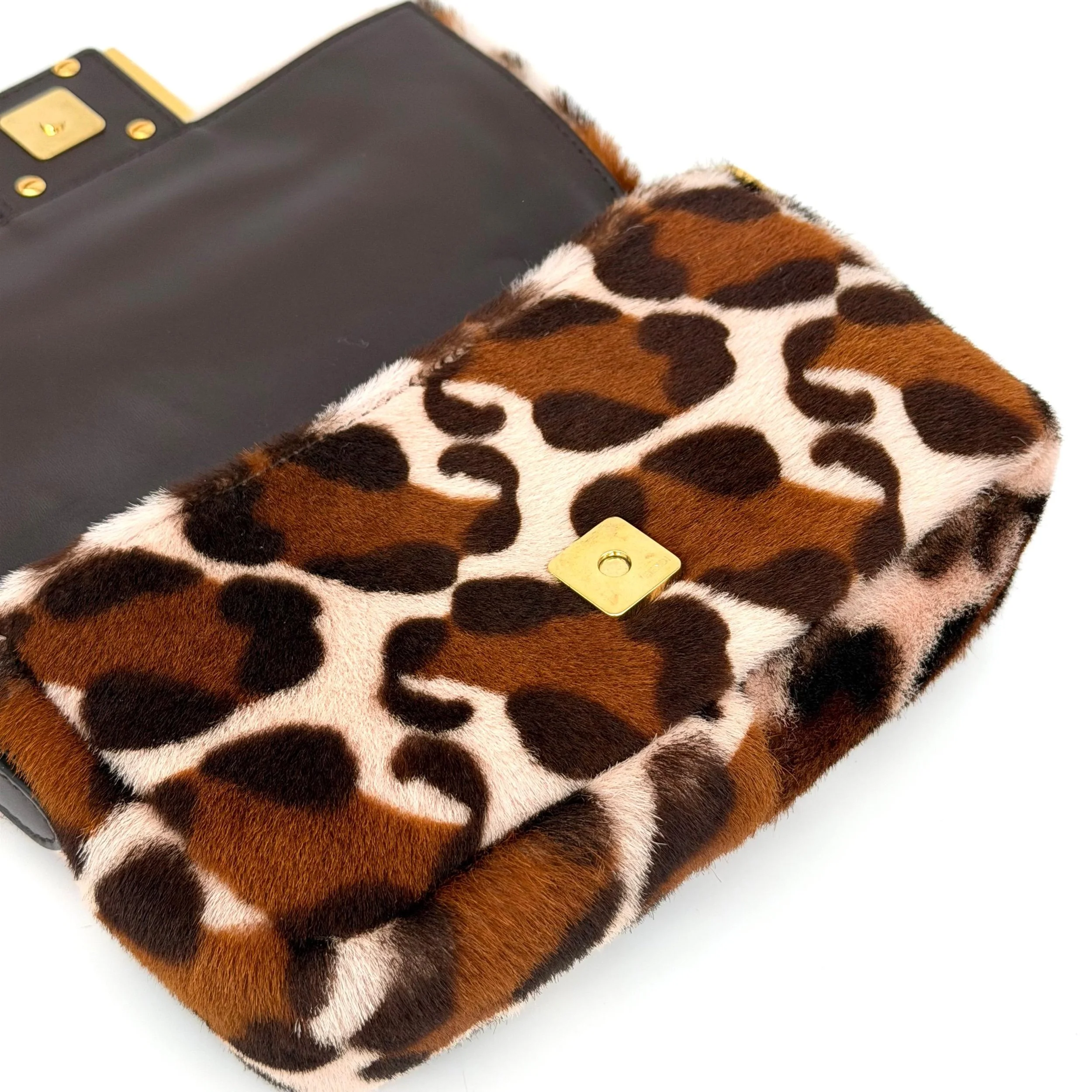 Item Description/Model: Fendi Mini Baguette Chain Bag in Brown Leopard Print Pony Hair with Gold Hardware