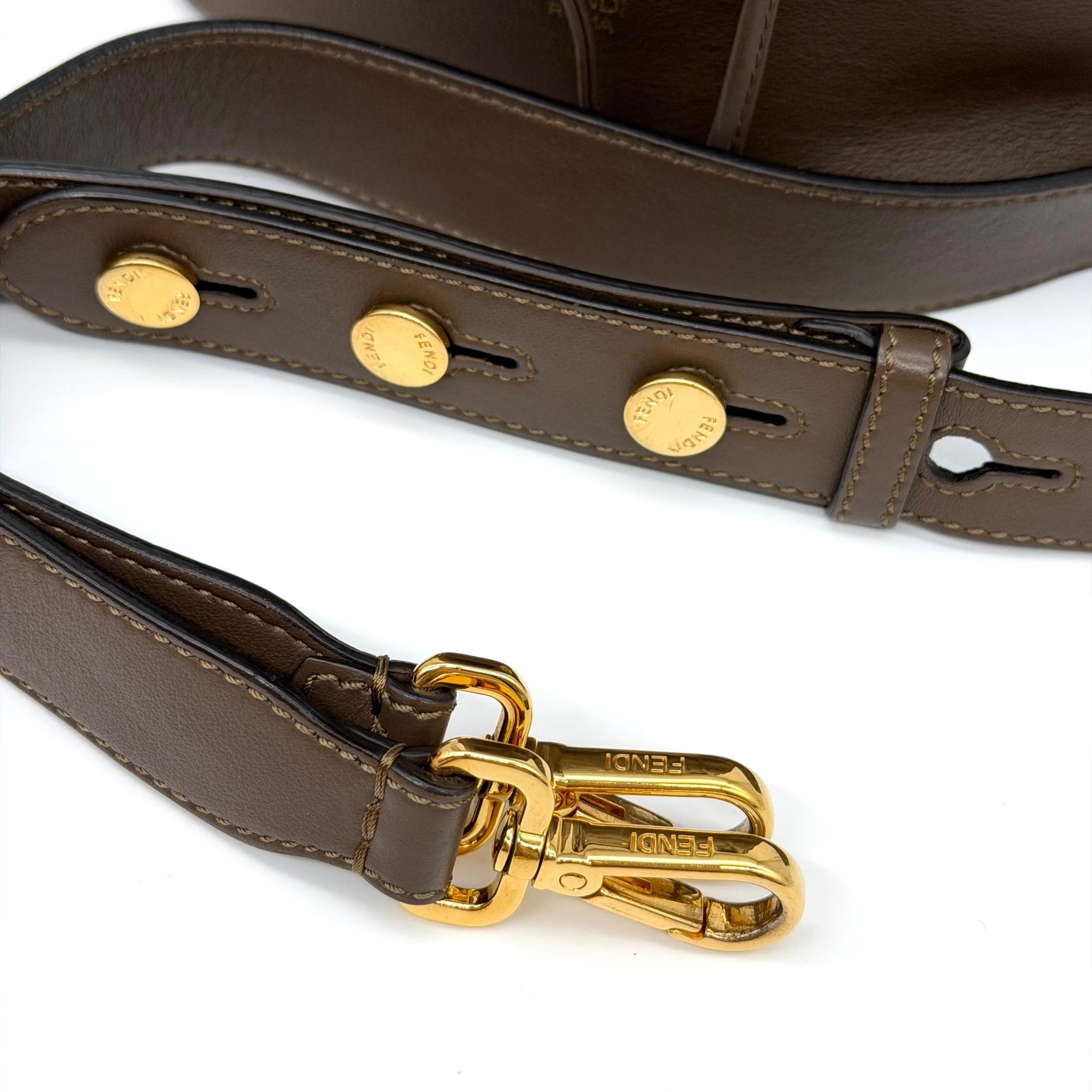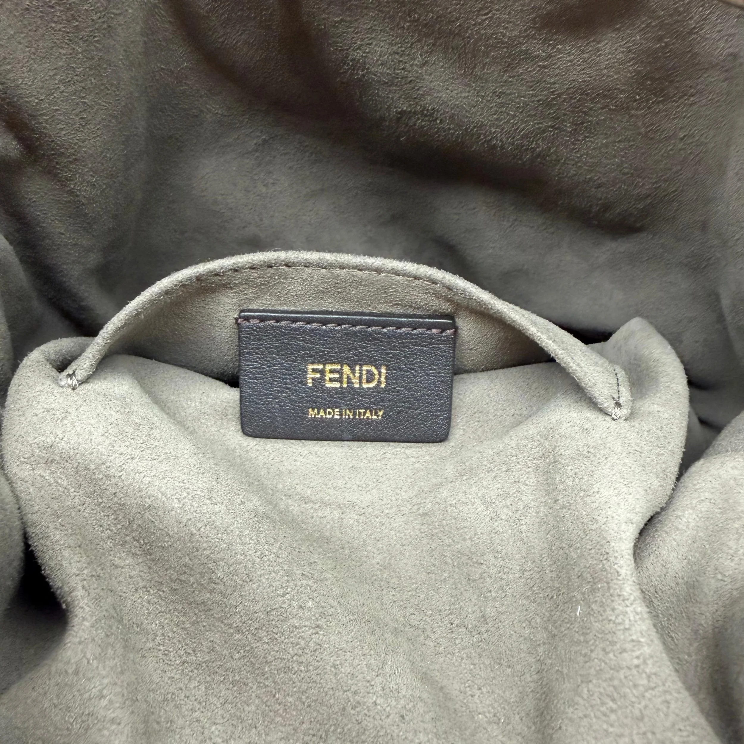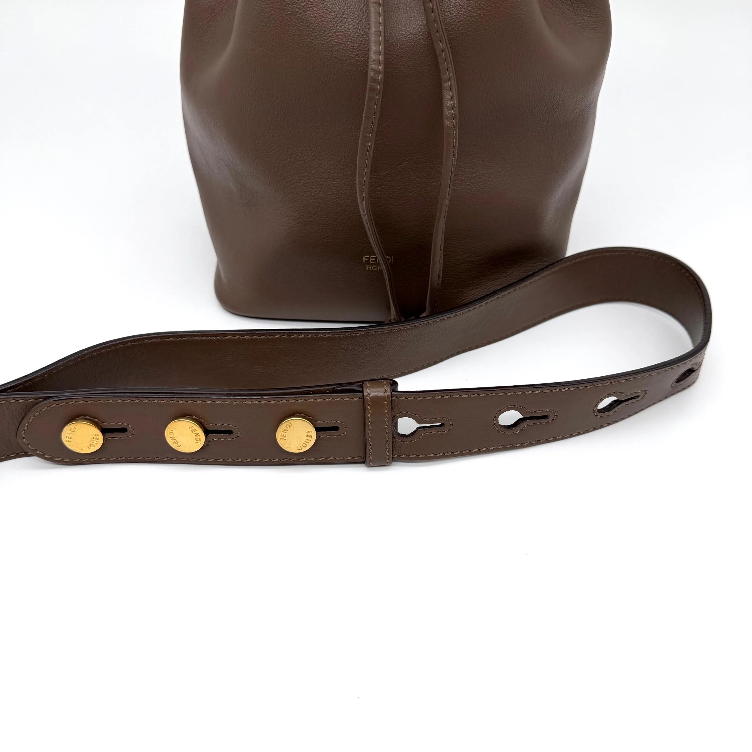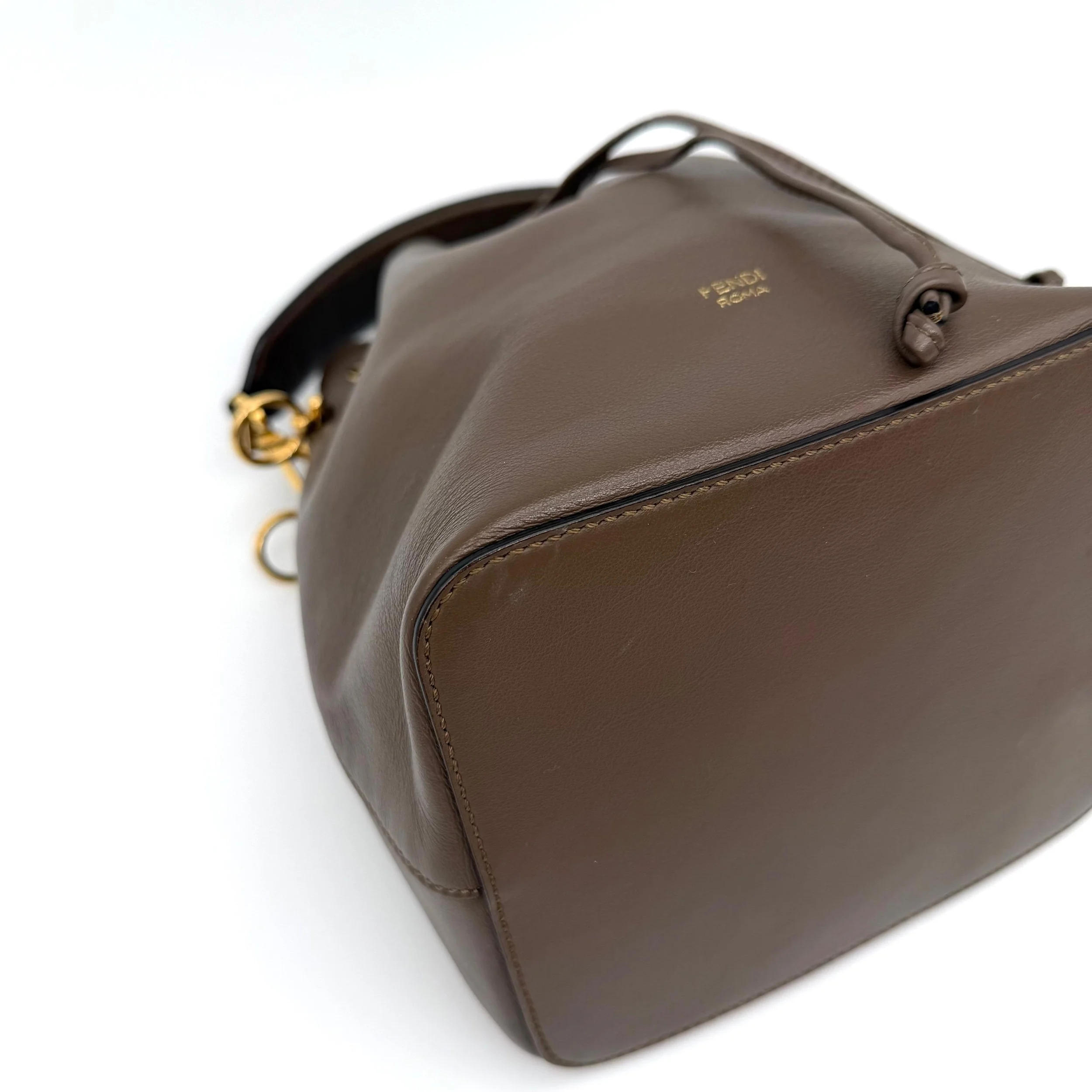 Fendi Mon Tresor Bucket Bag Brown Leather FF Monogram Top Handle Gold Hardware