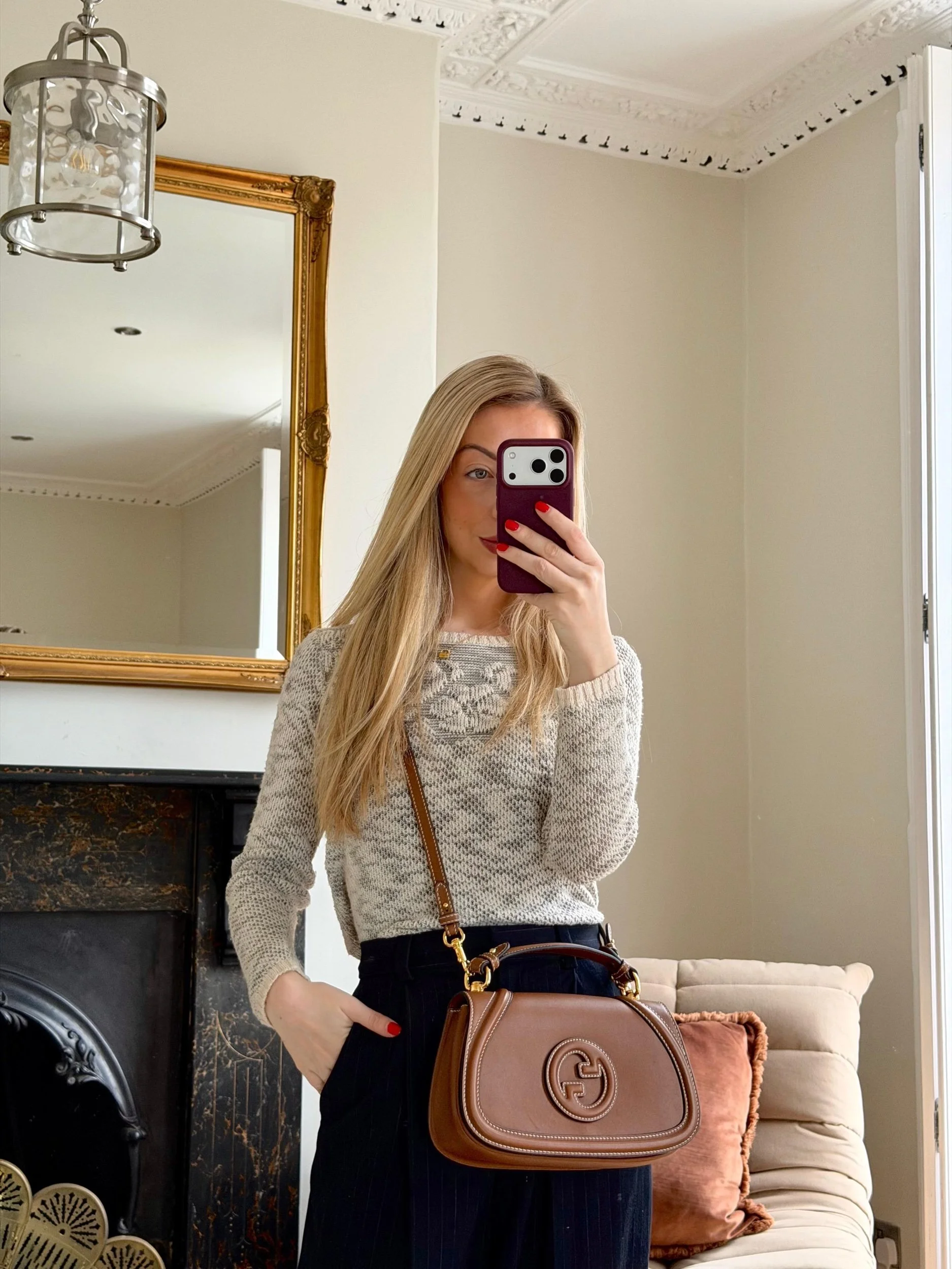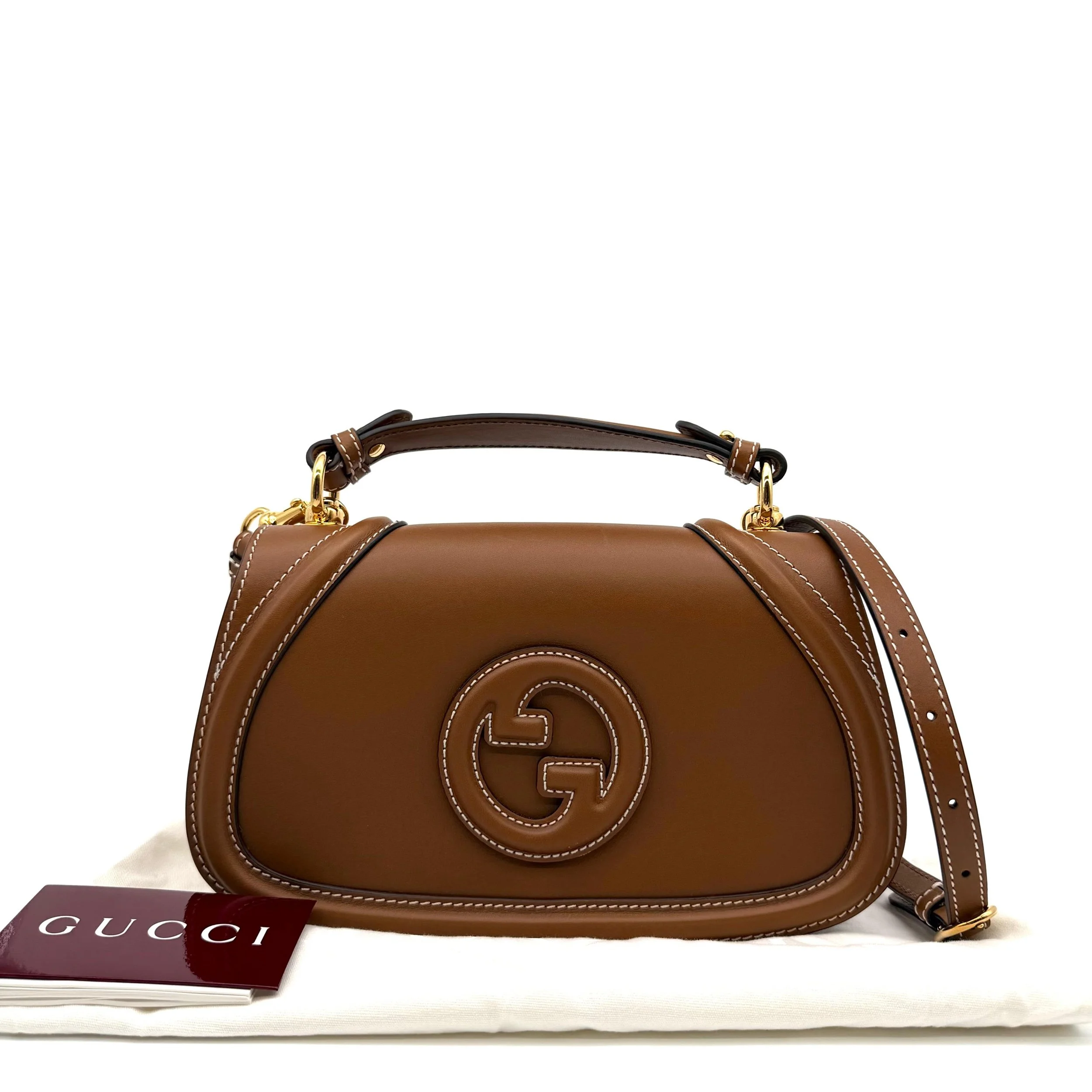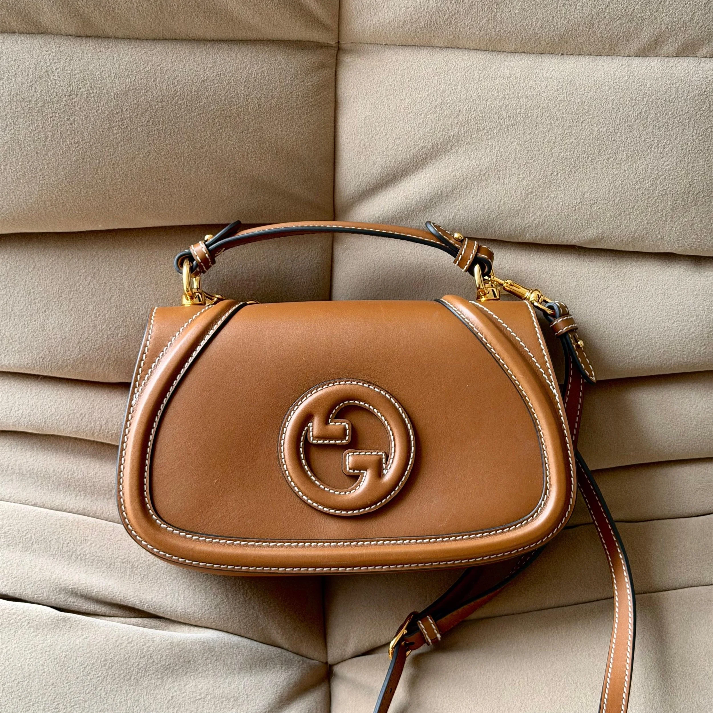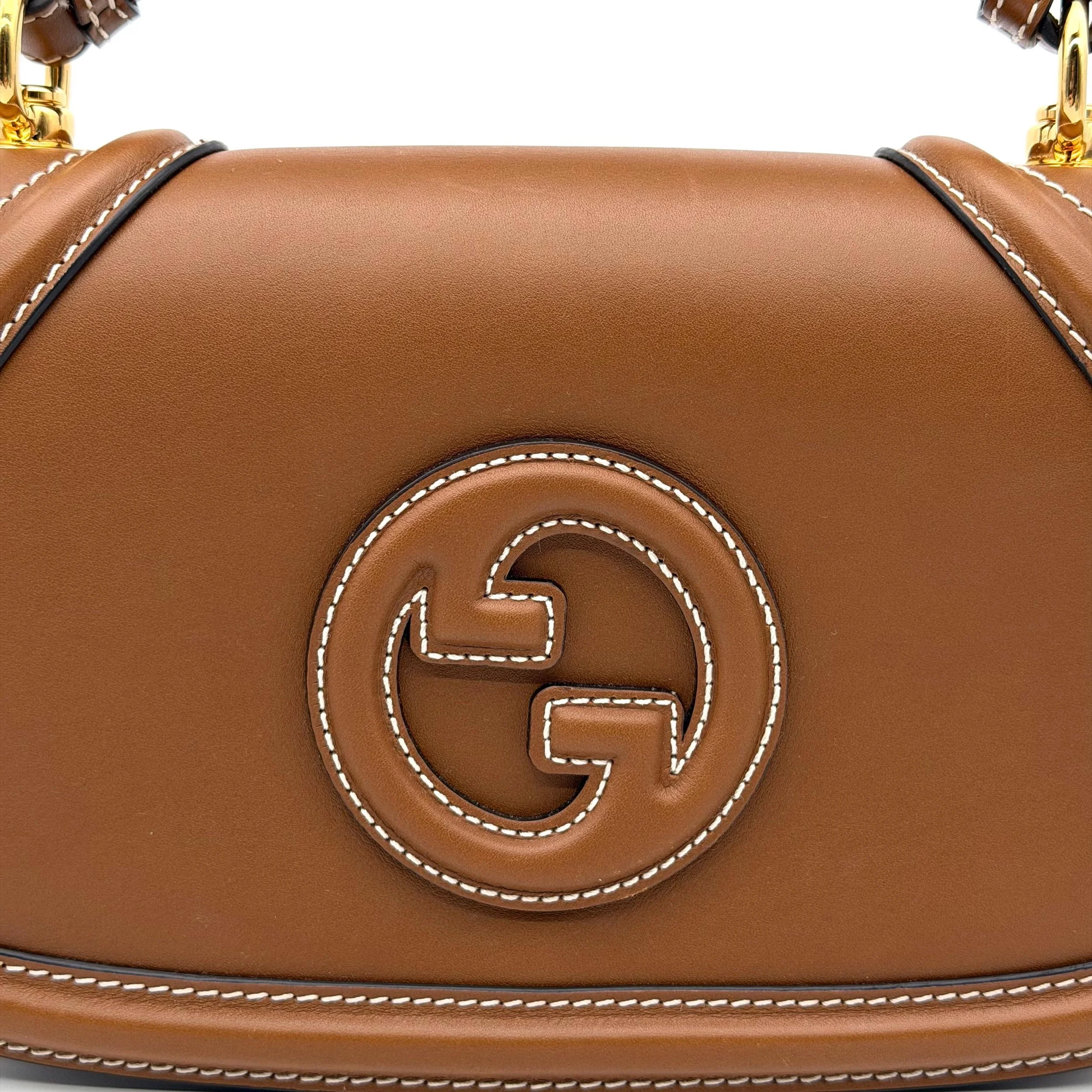 Item Description/Model: Gucci Blondie Medium Top Handle Bag in Brown Smooth Leather Gold Hardware