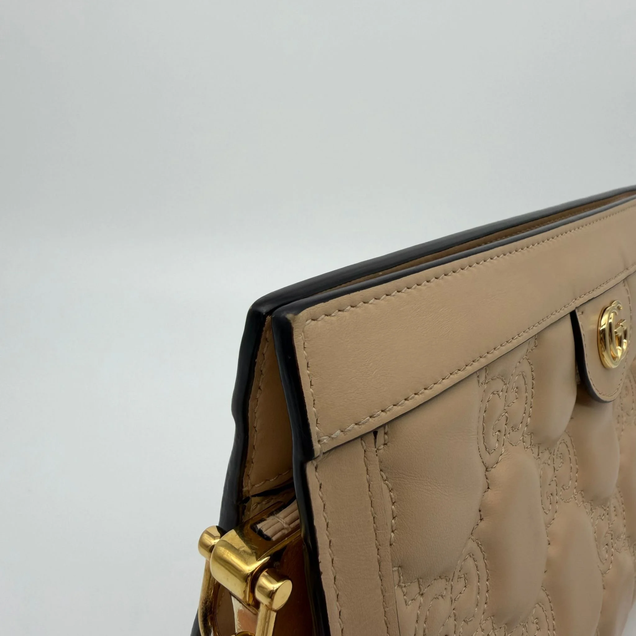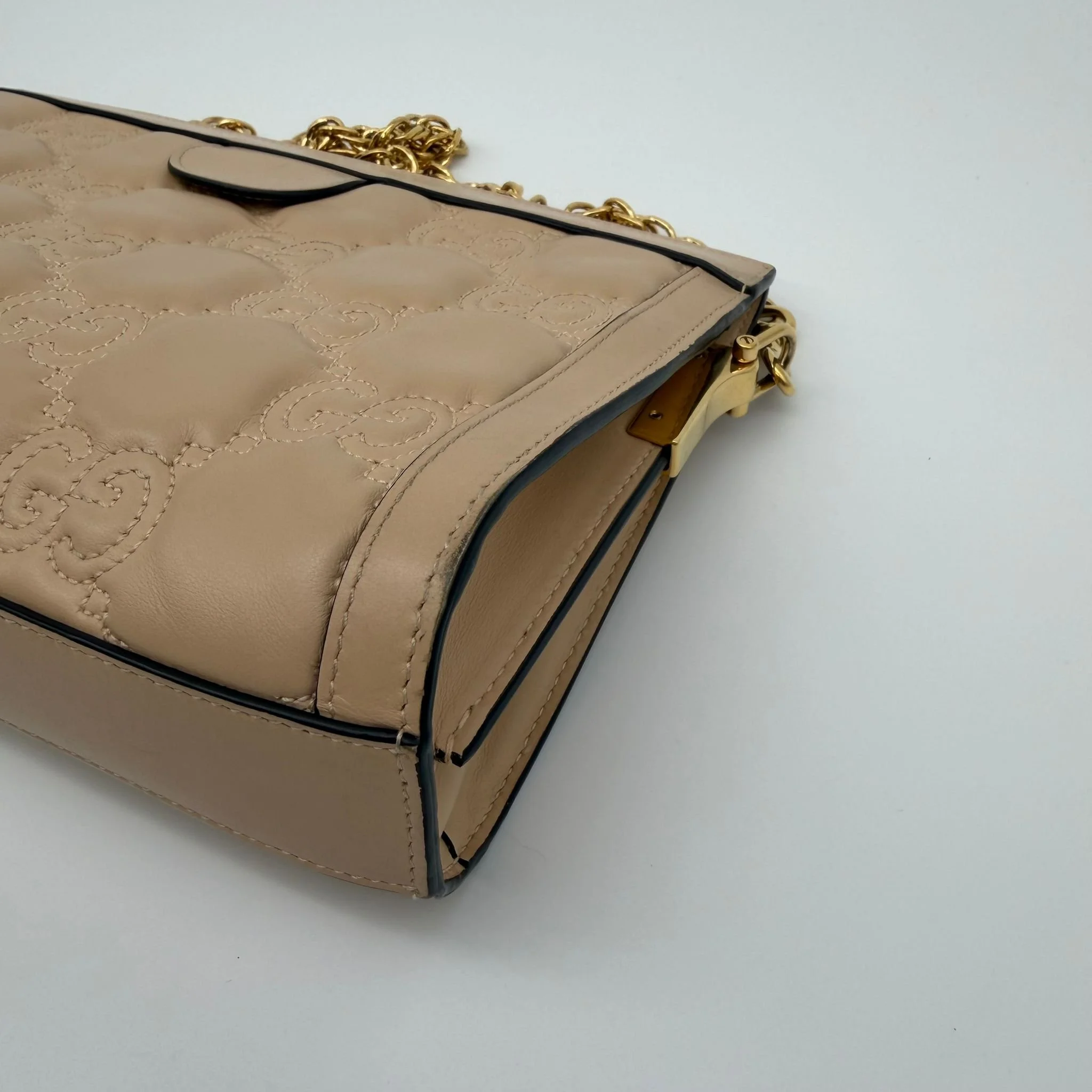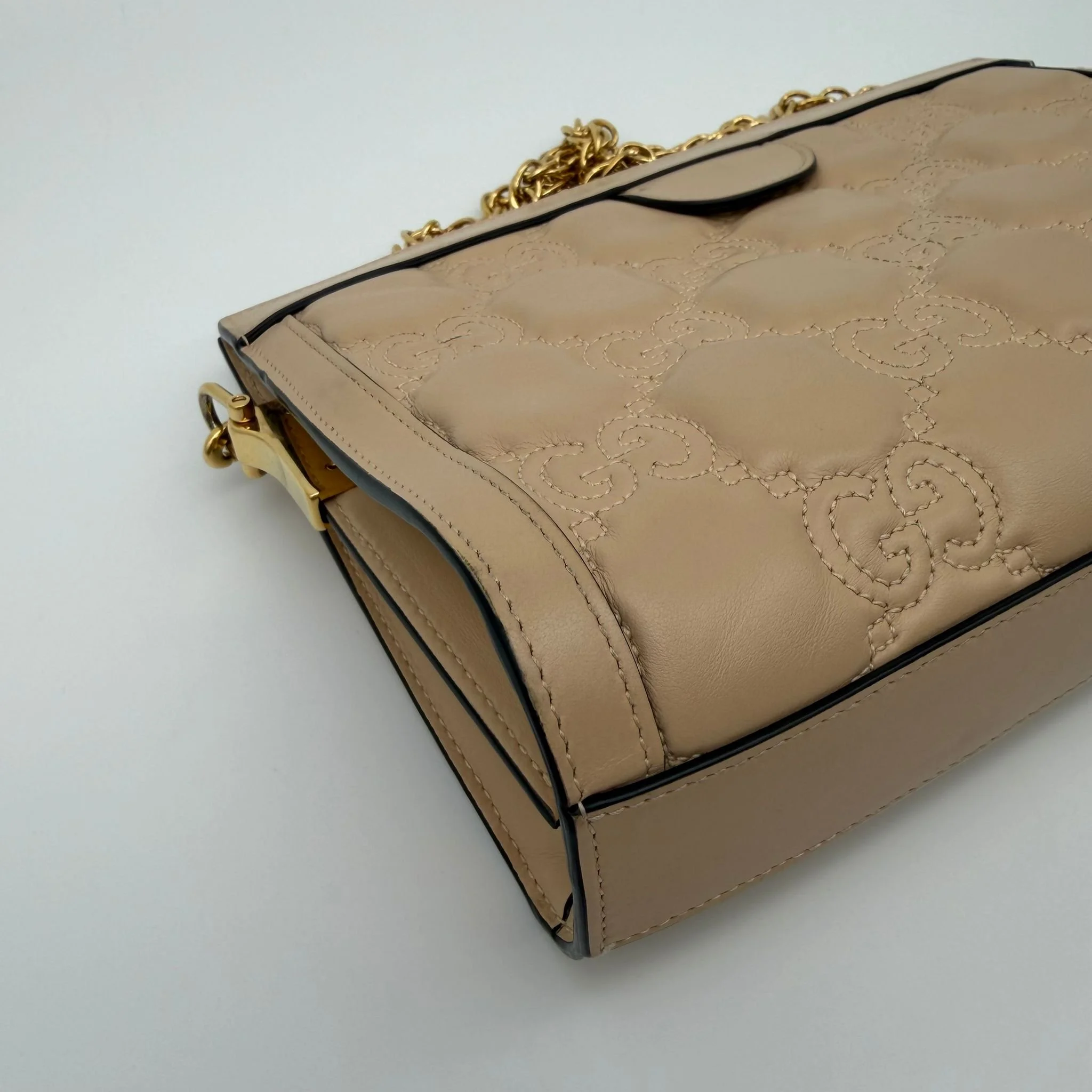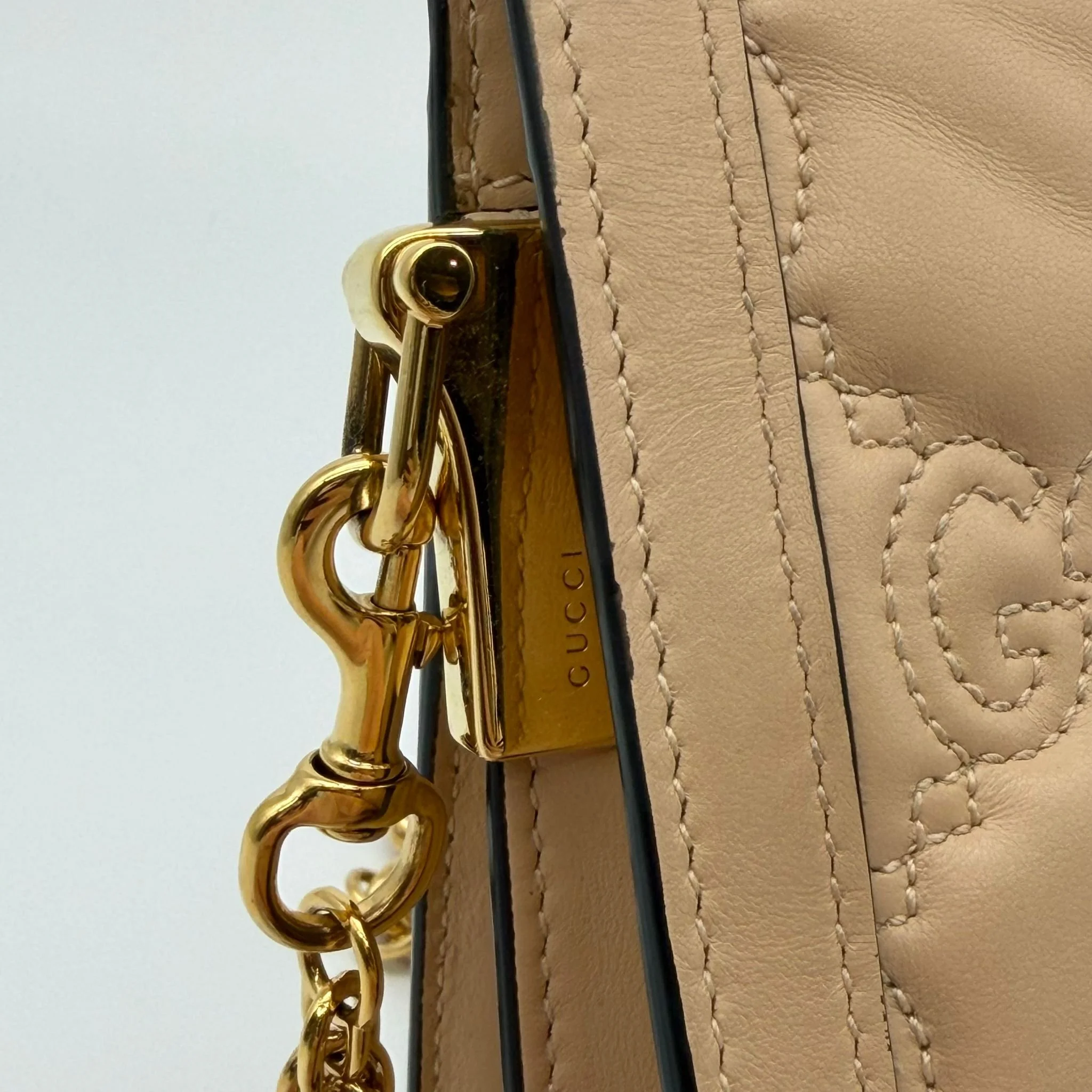Item Description/Model: Gucci GG Matelasse Monogram Small Shoulder Bag in Beige Embossed Leather Gold Hardware