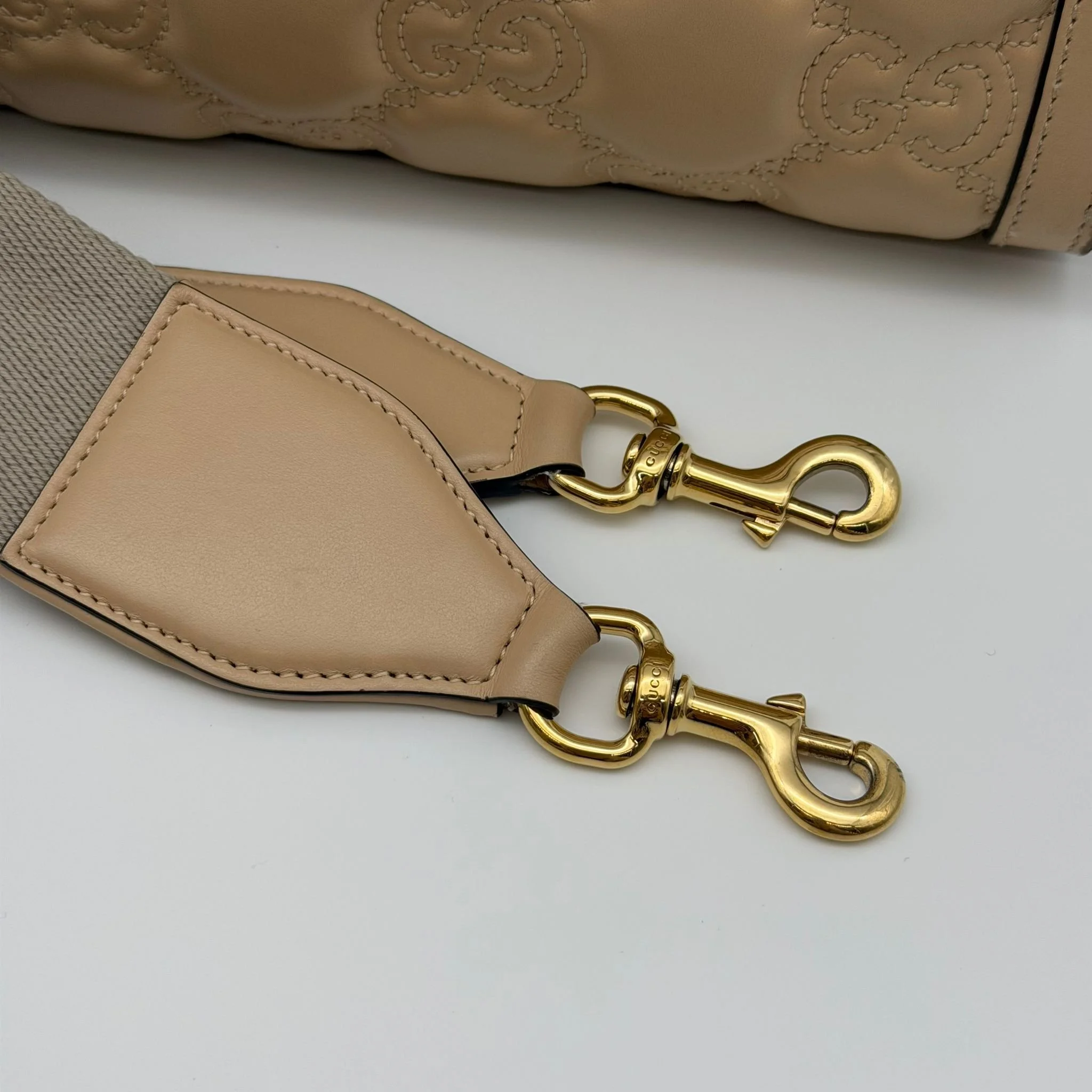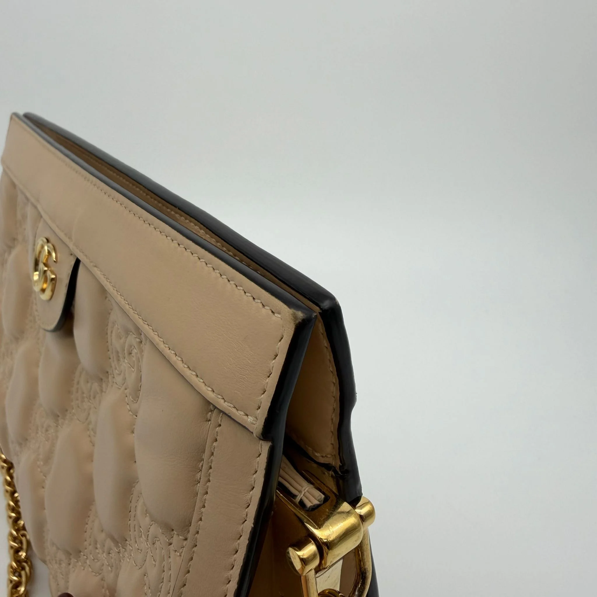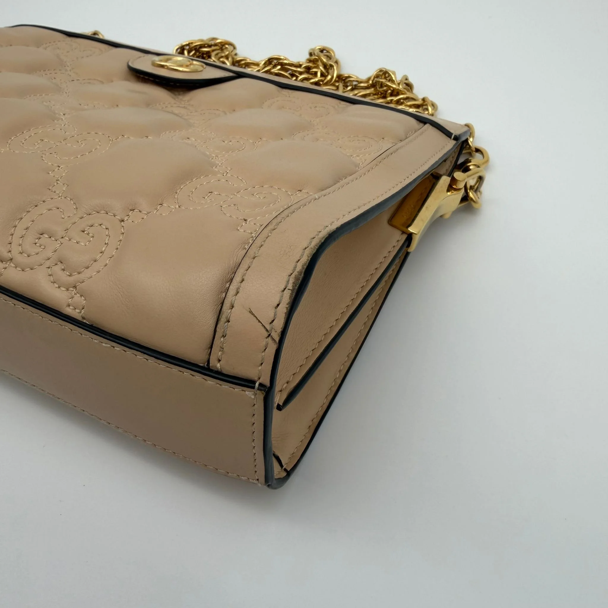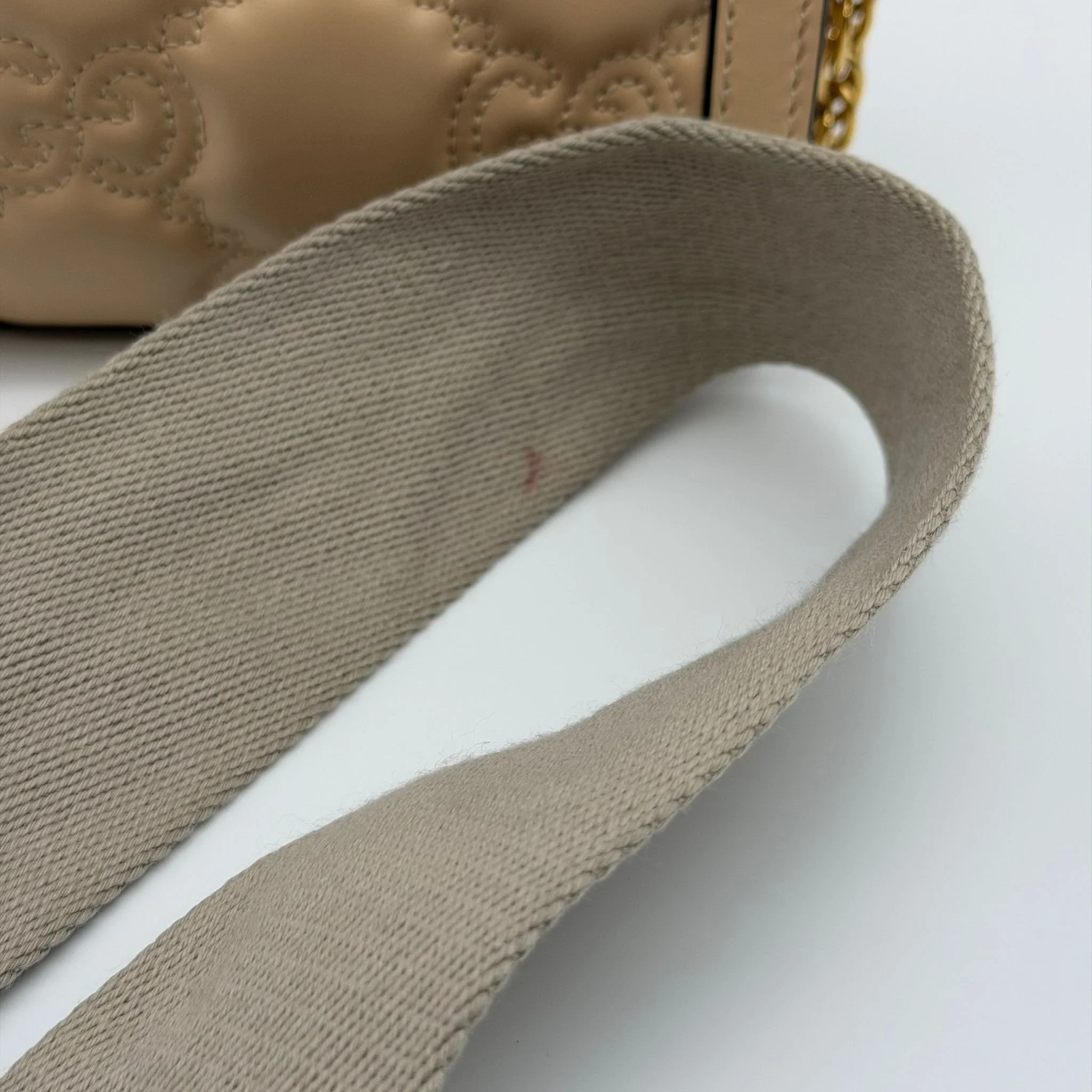 Item Description/Model: Gucci GG Matelasse Monogram Small Shoulder Bag in Beige Embossed Leather Gold Hardware