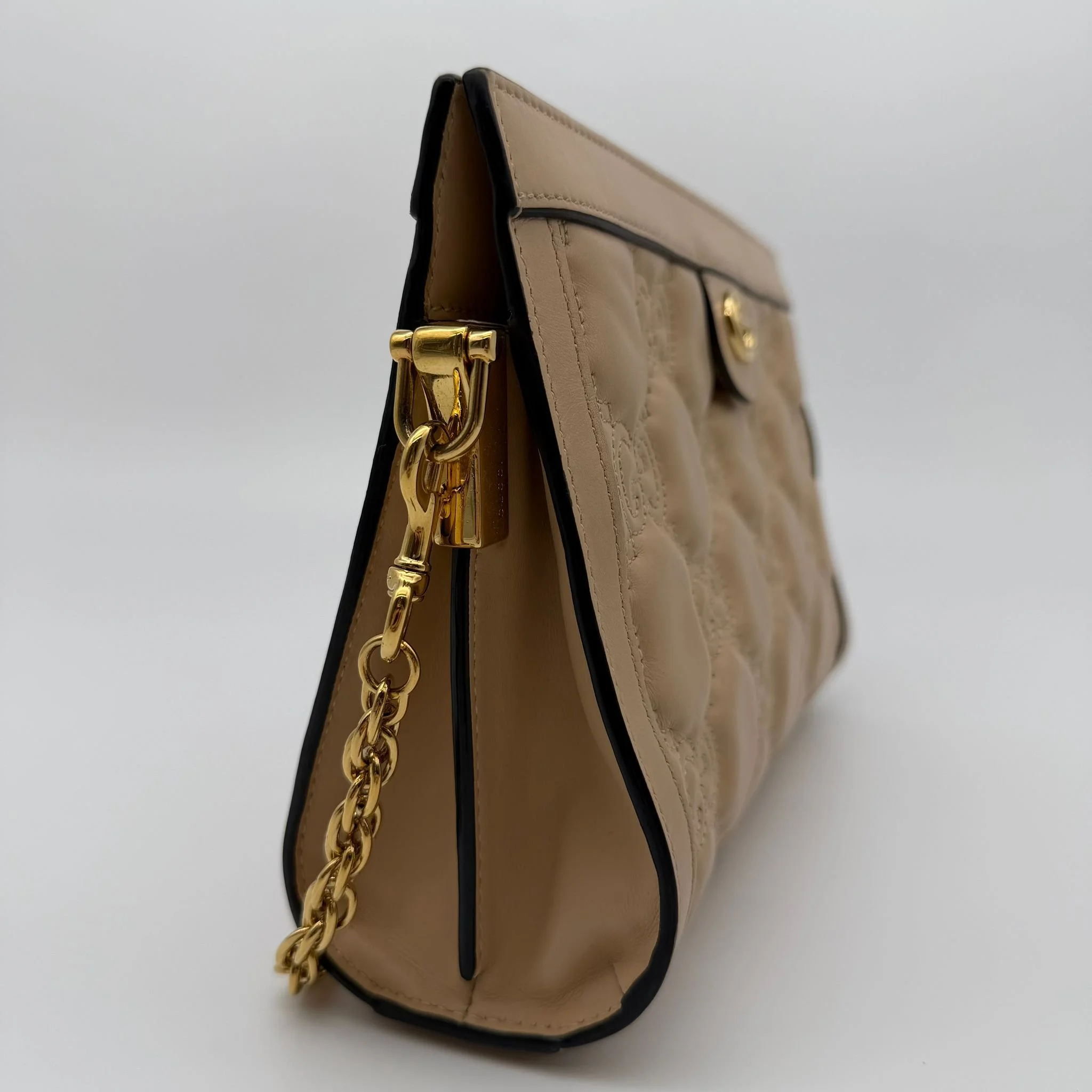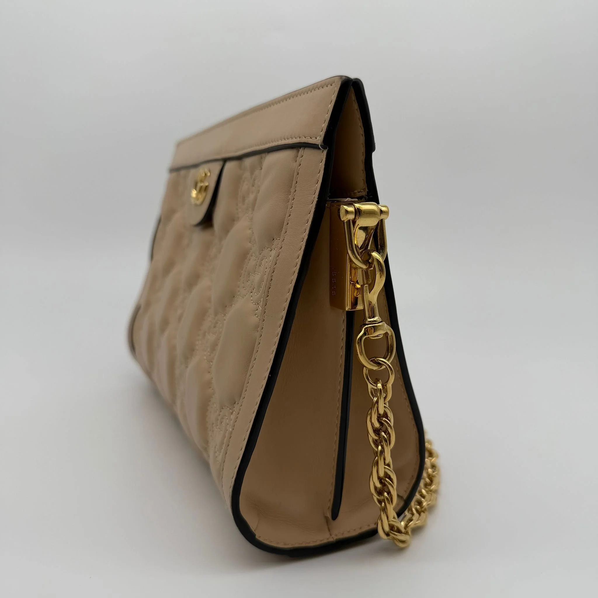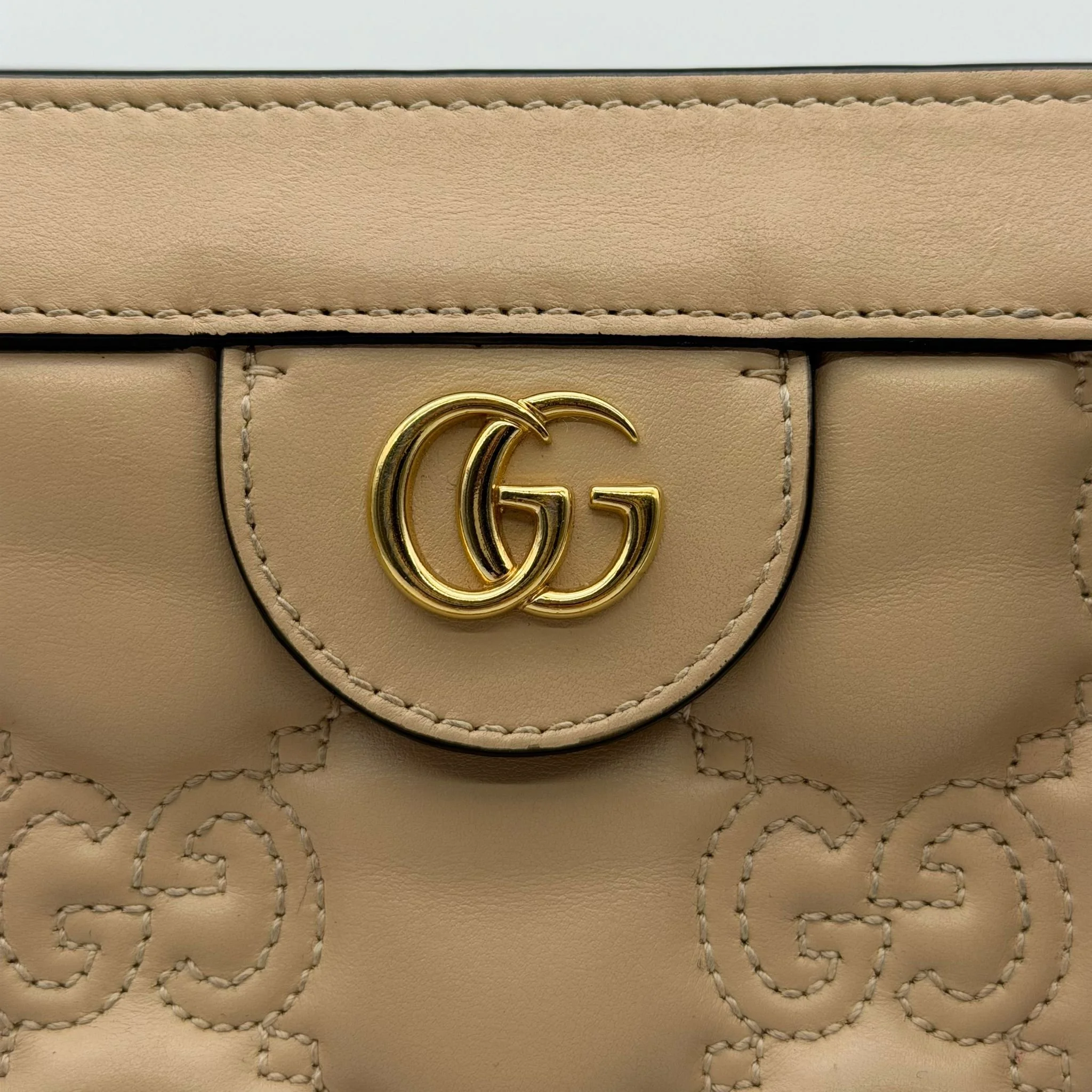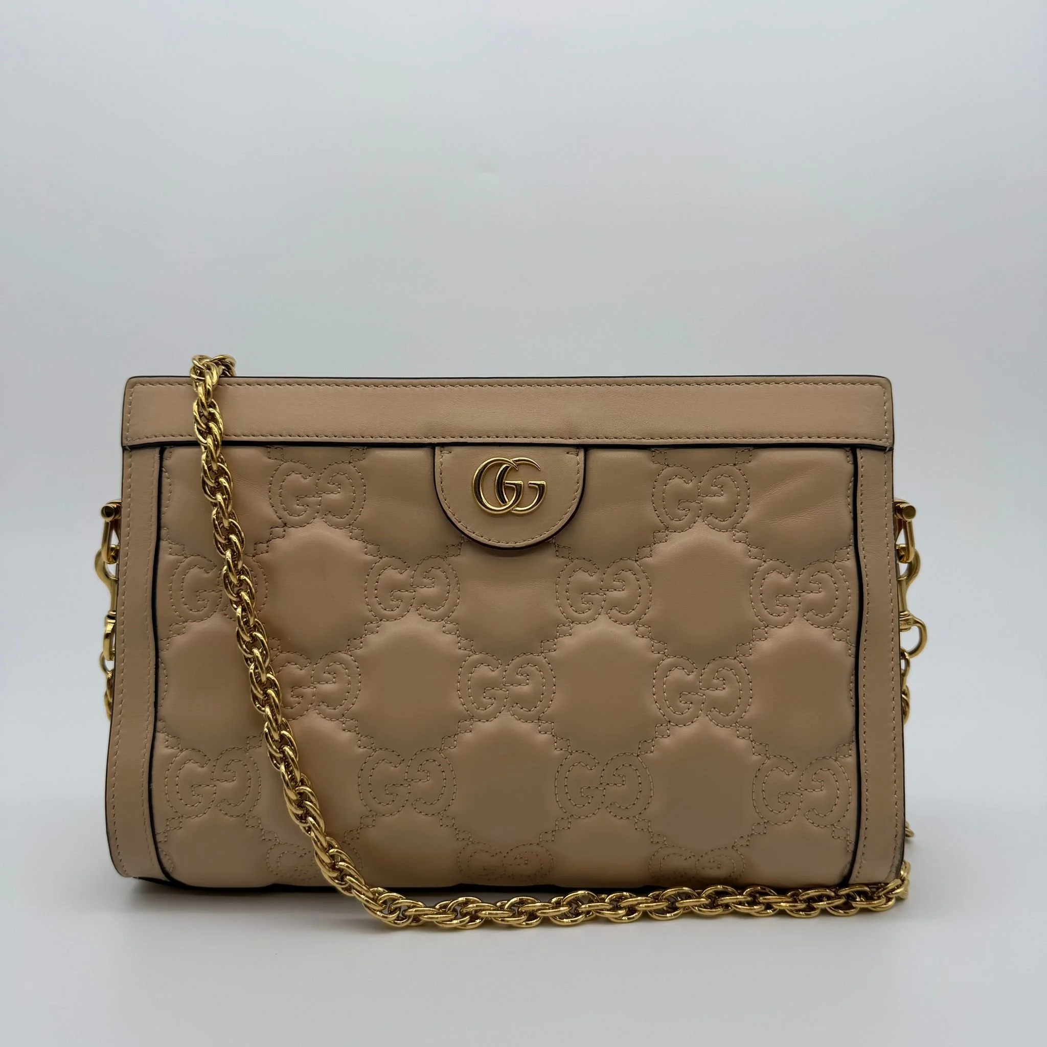 Item Description/Model: Gucci GG Matelasse Monogram Small Shoulder Bag in Beige Embossed Leather Gold Hardware