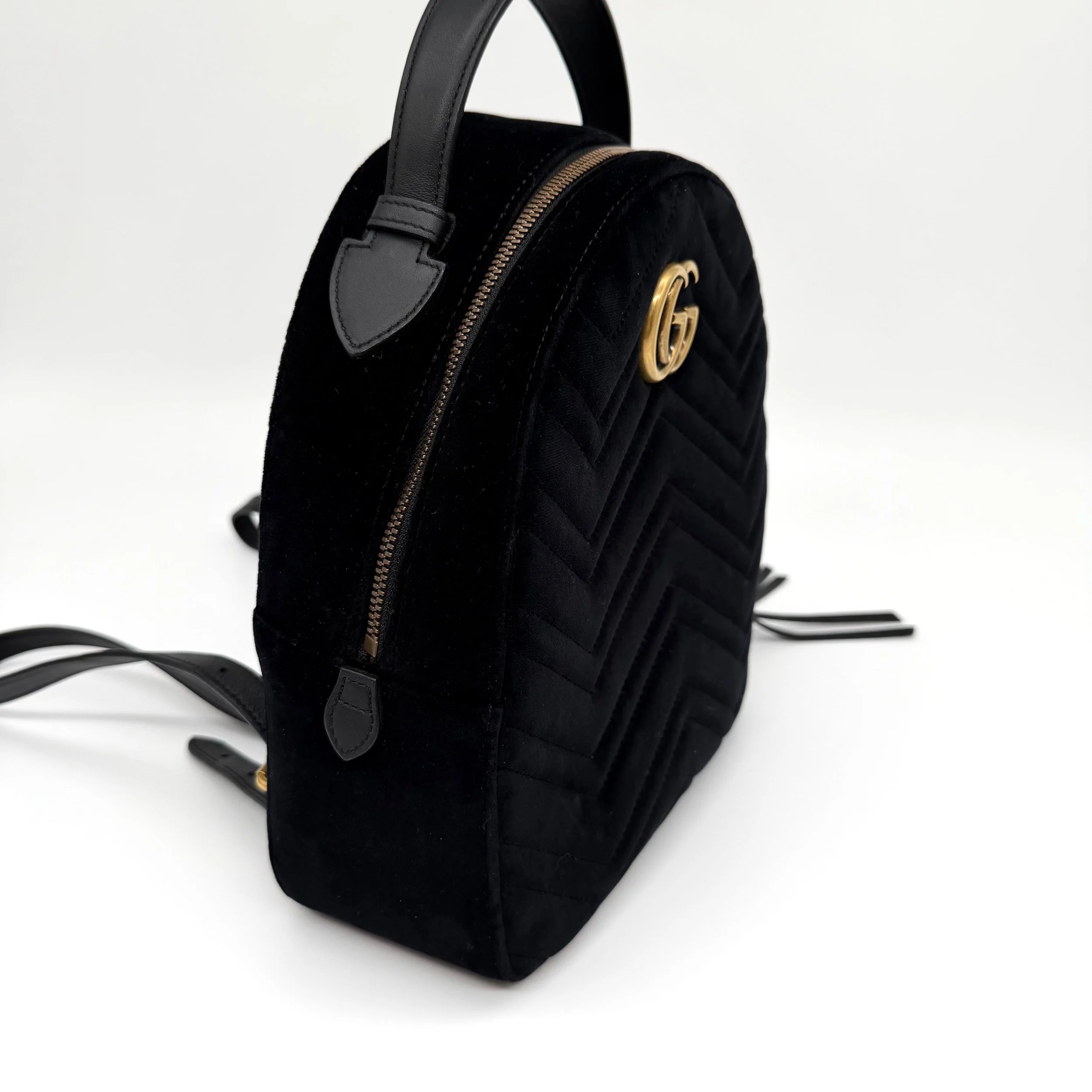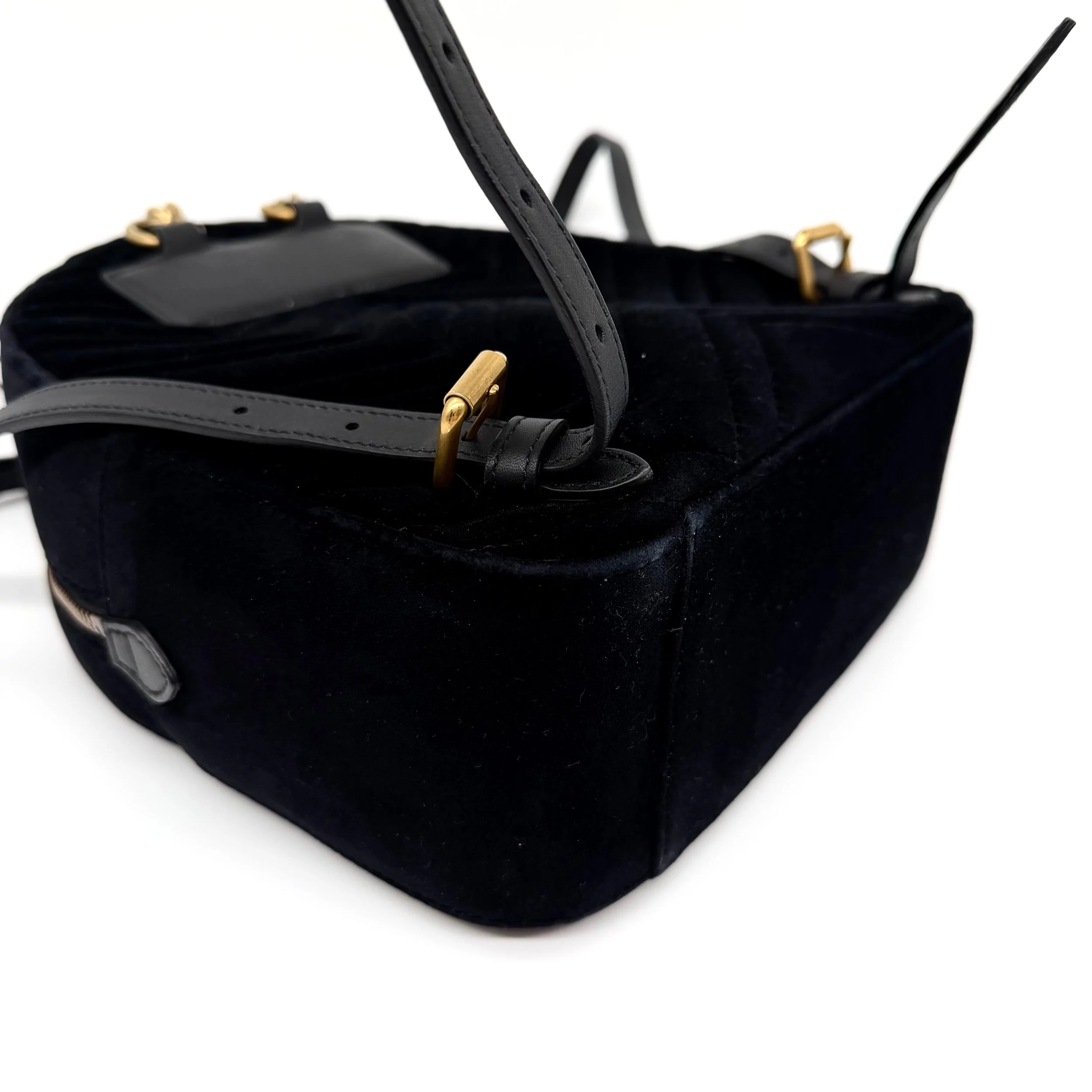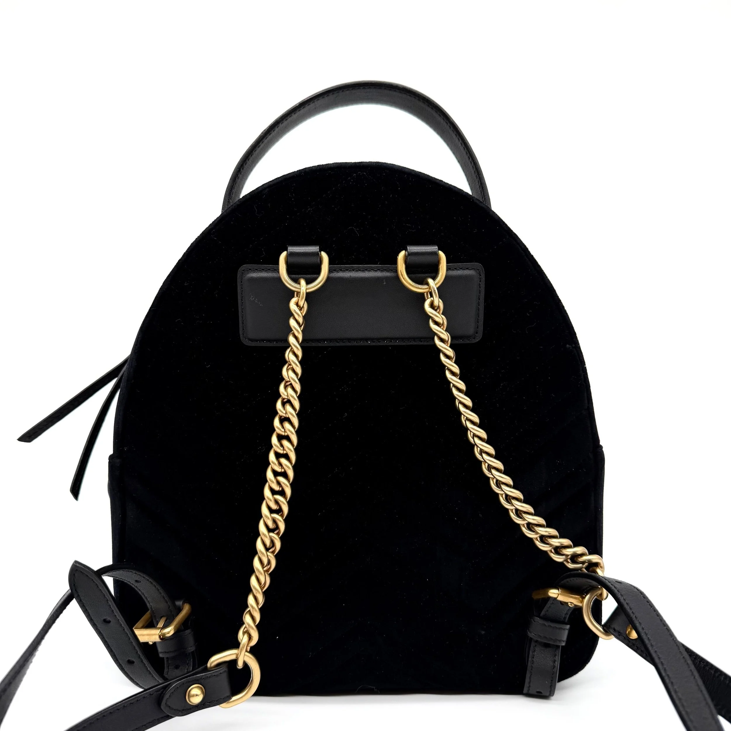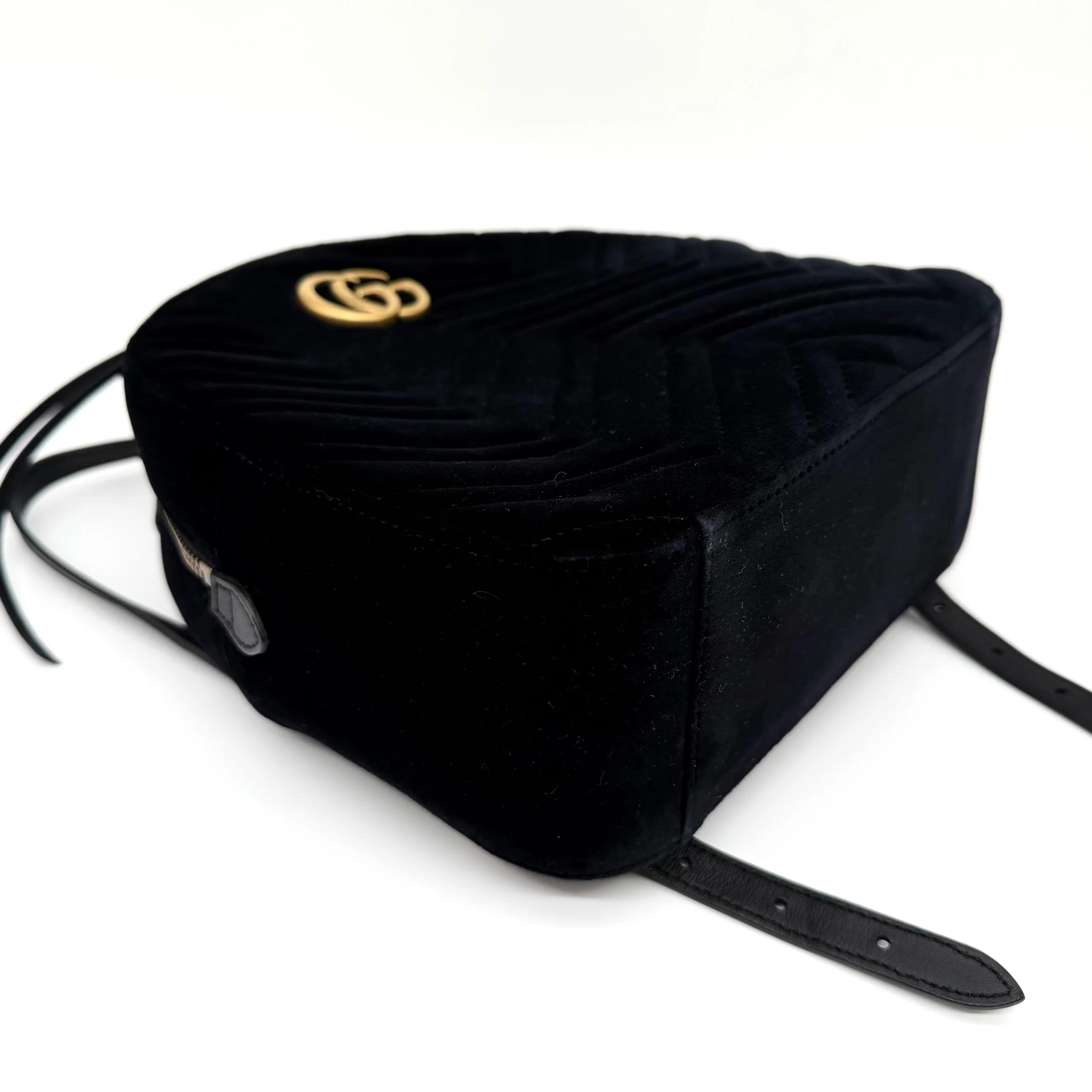 Gucci Marmont Velvet Backpack Bag in Black Quilted Gold Hardware