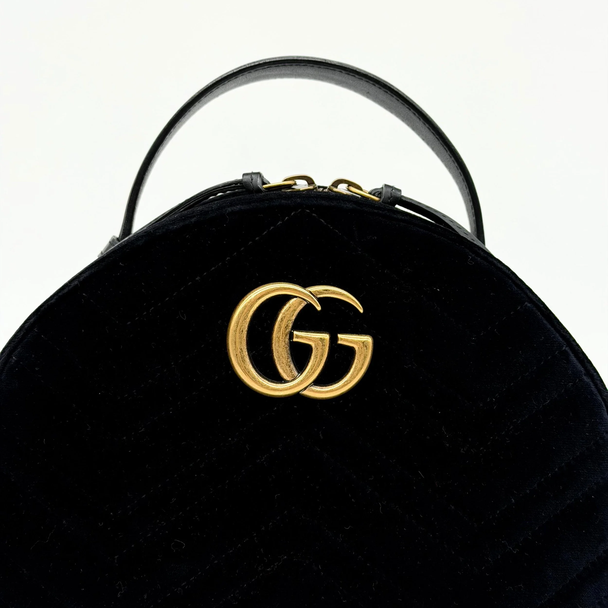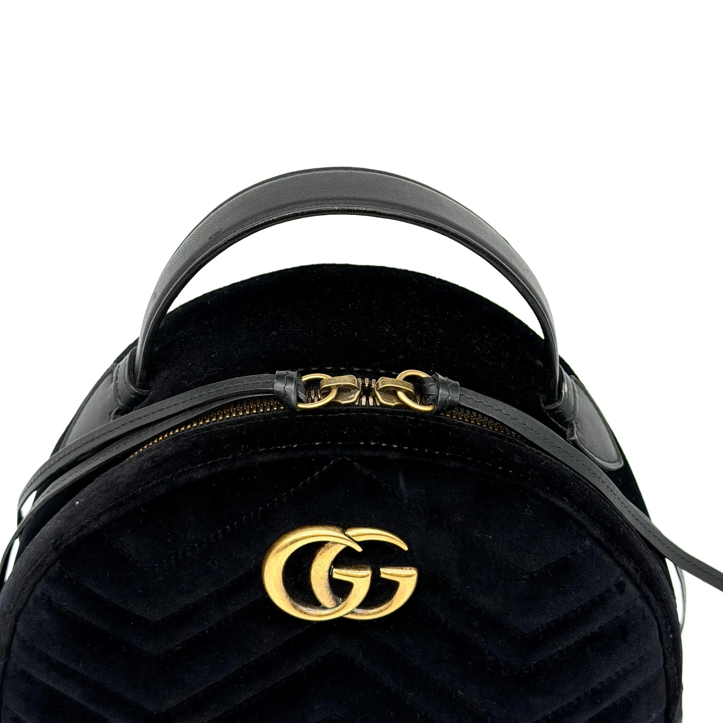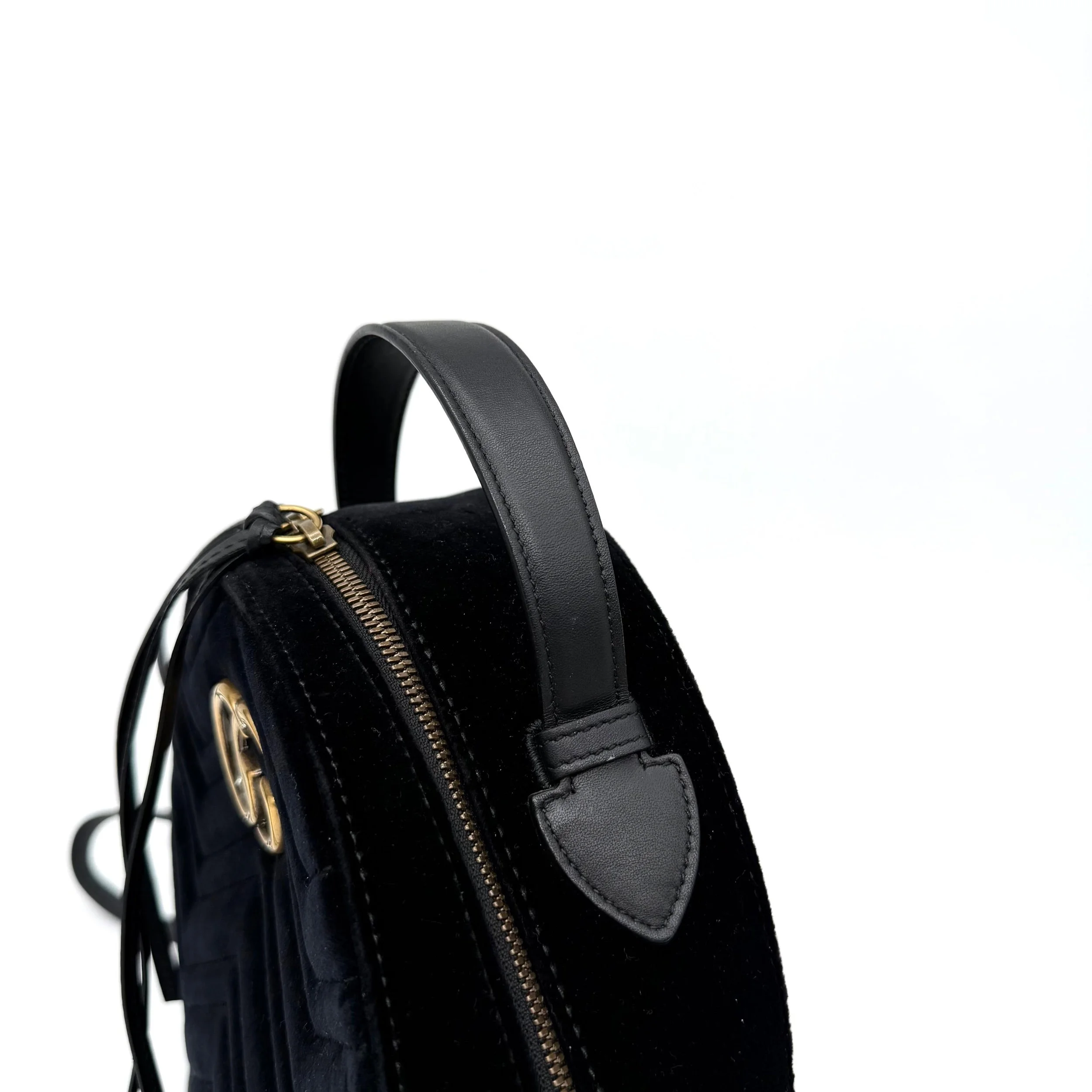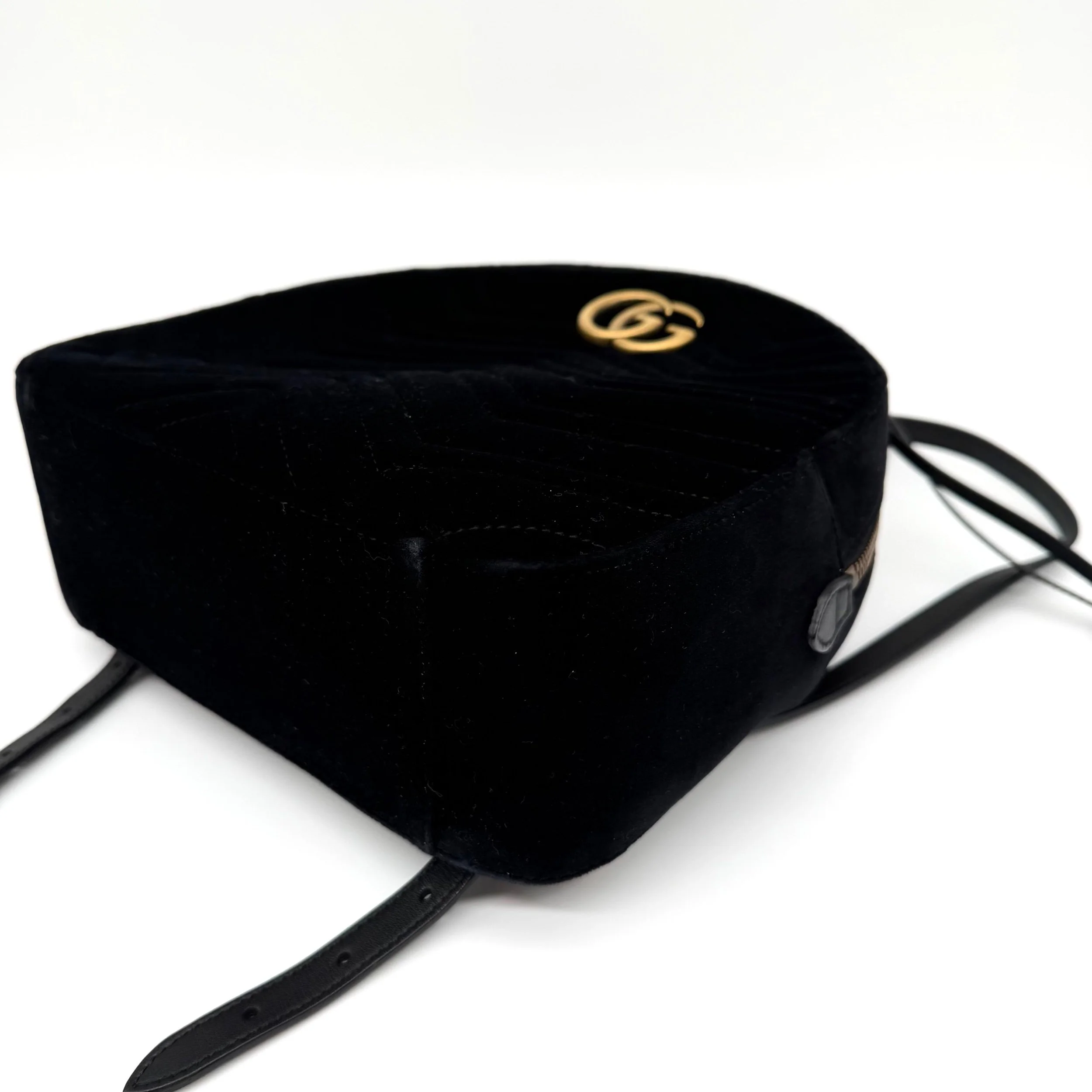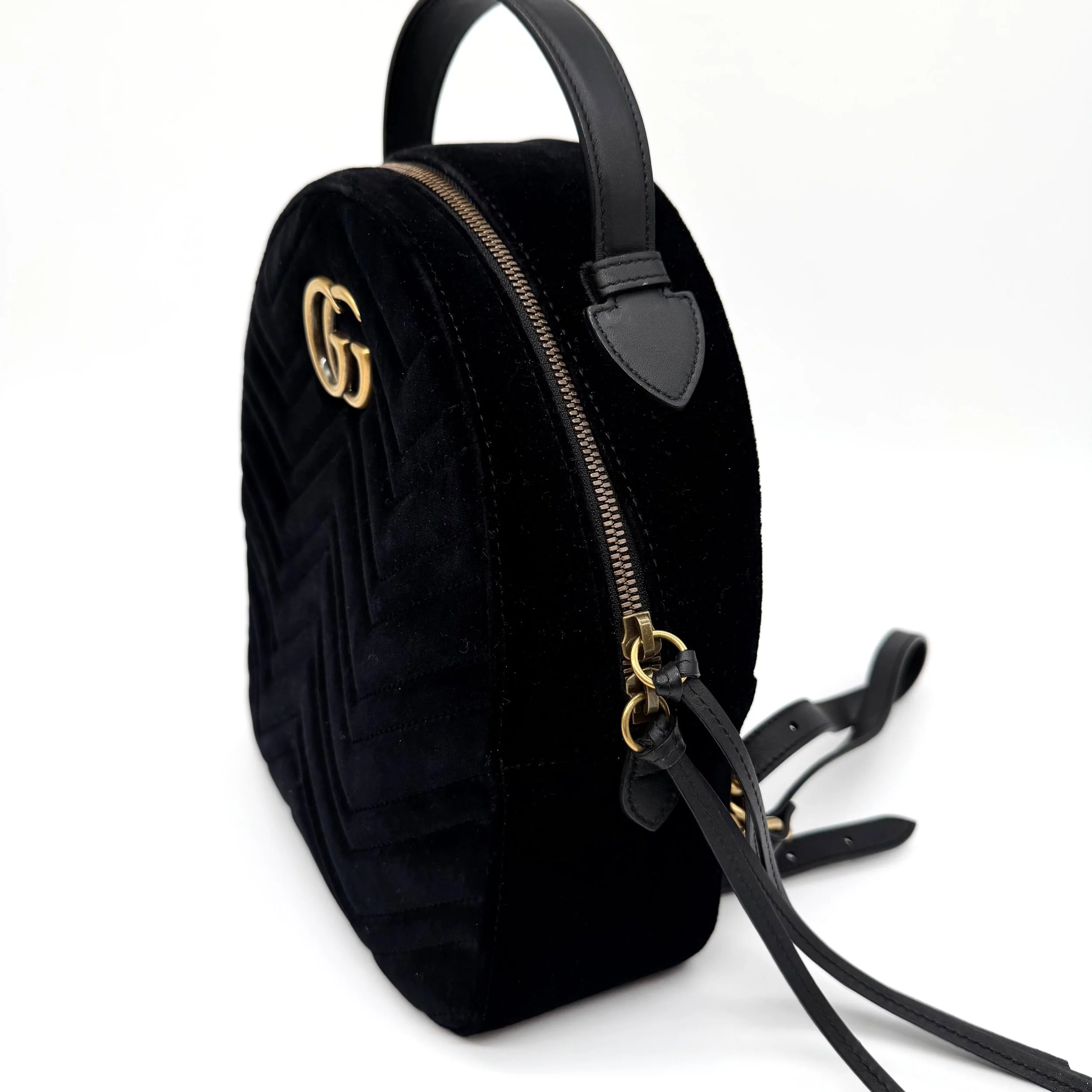 Gucci Marmont Velvet Backpack Bag in Black Quilted Gold Hardware