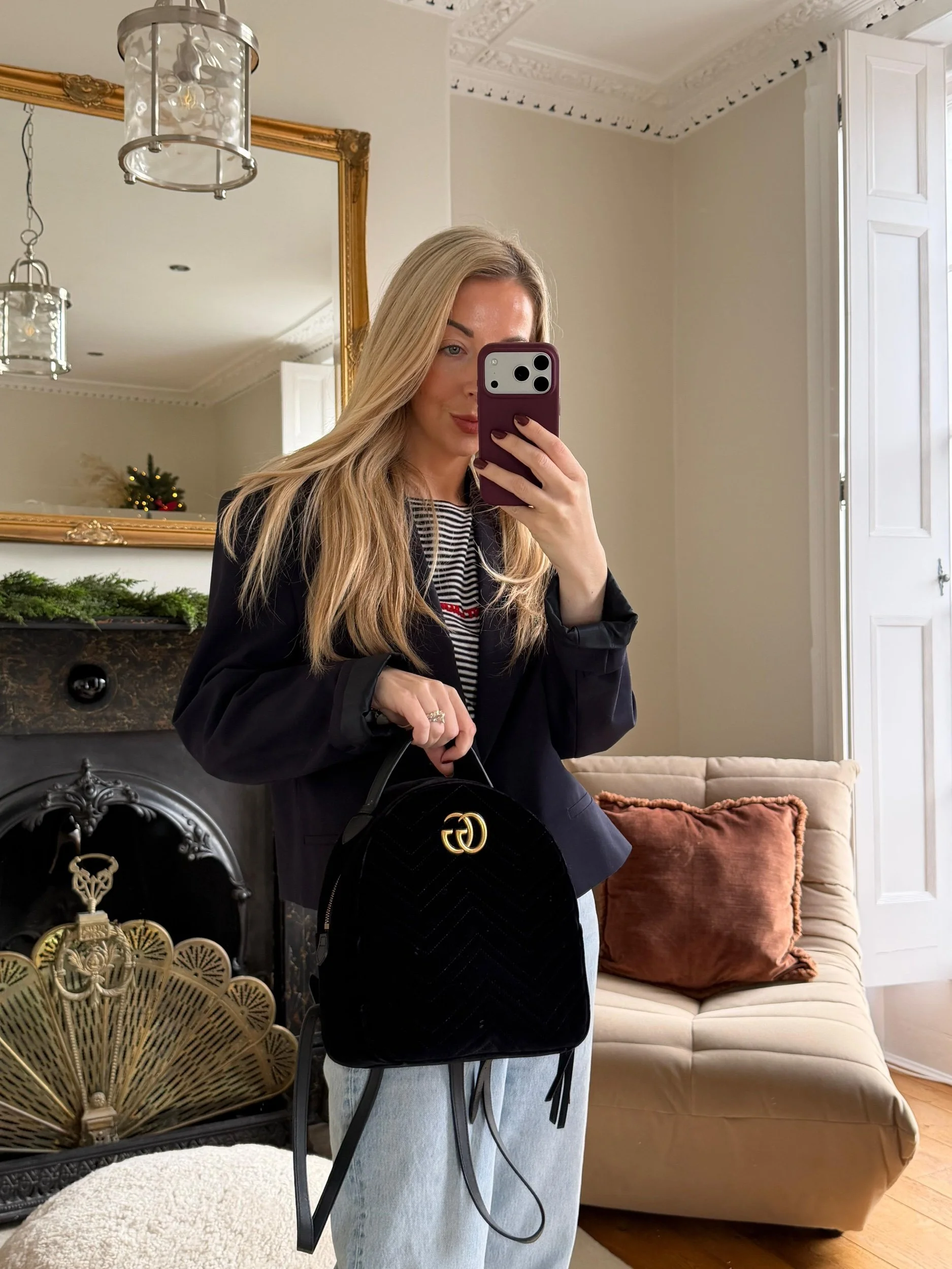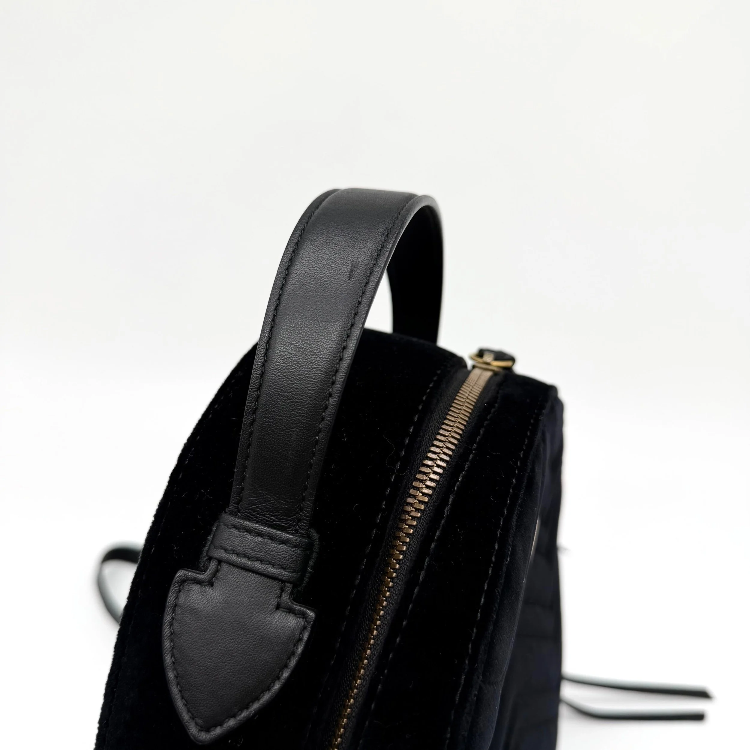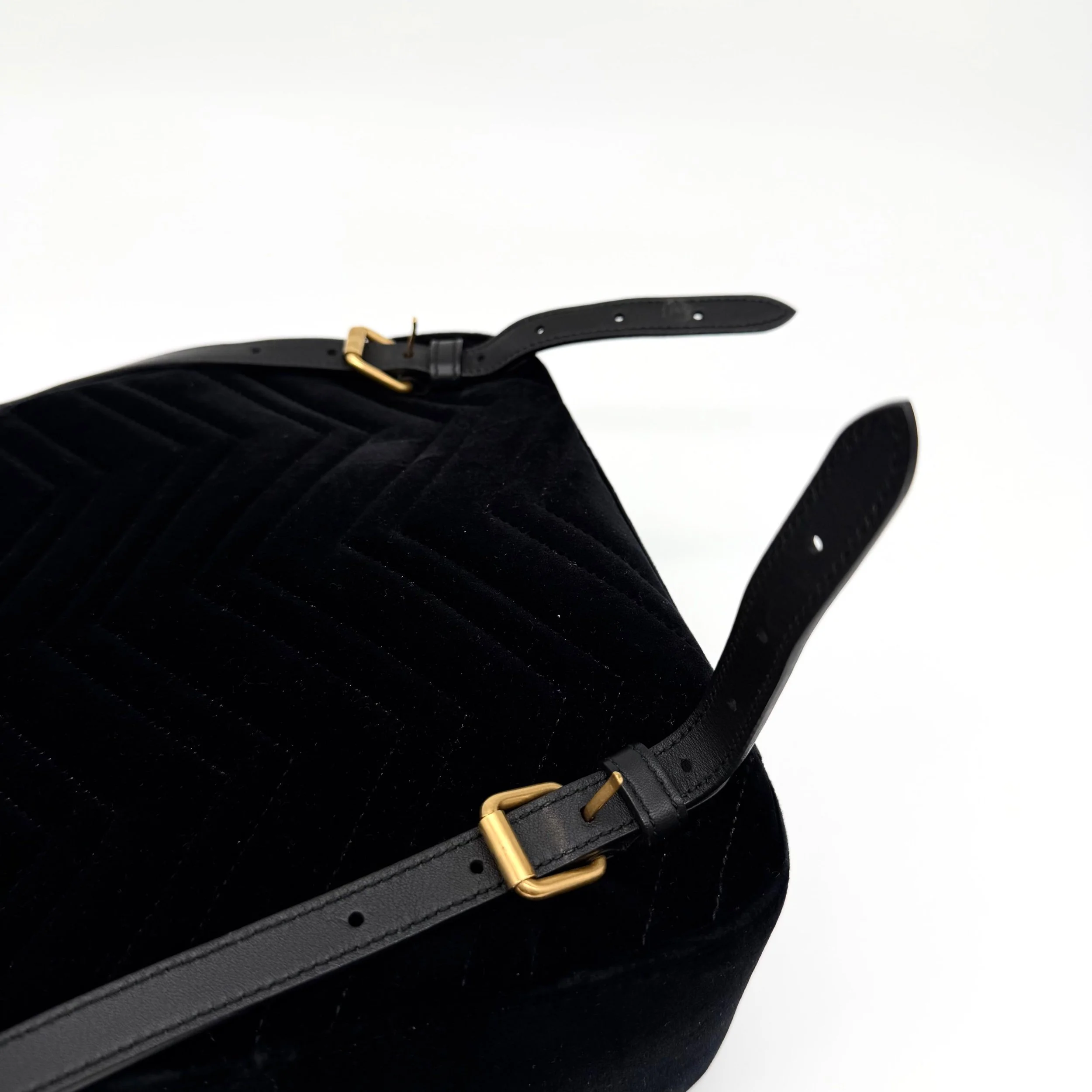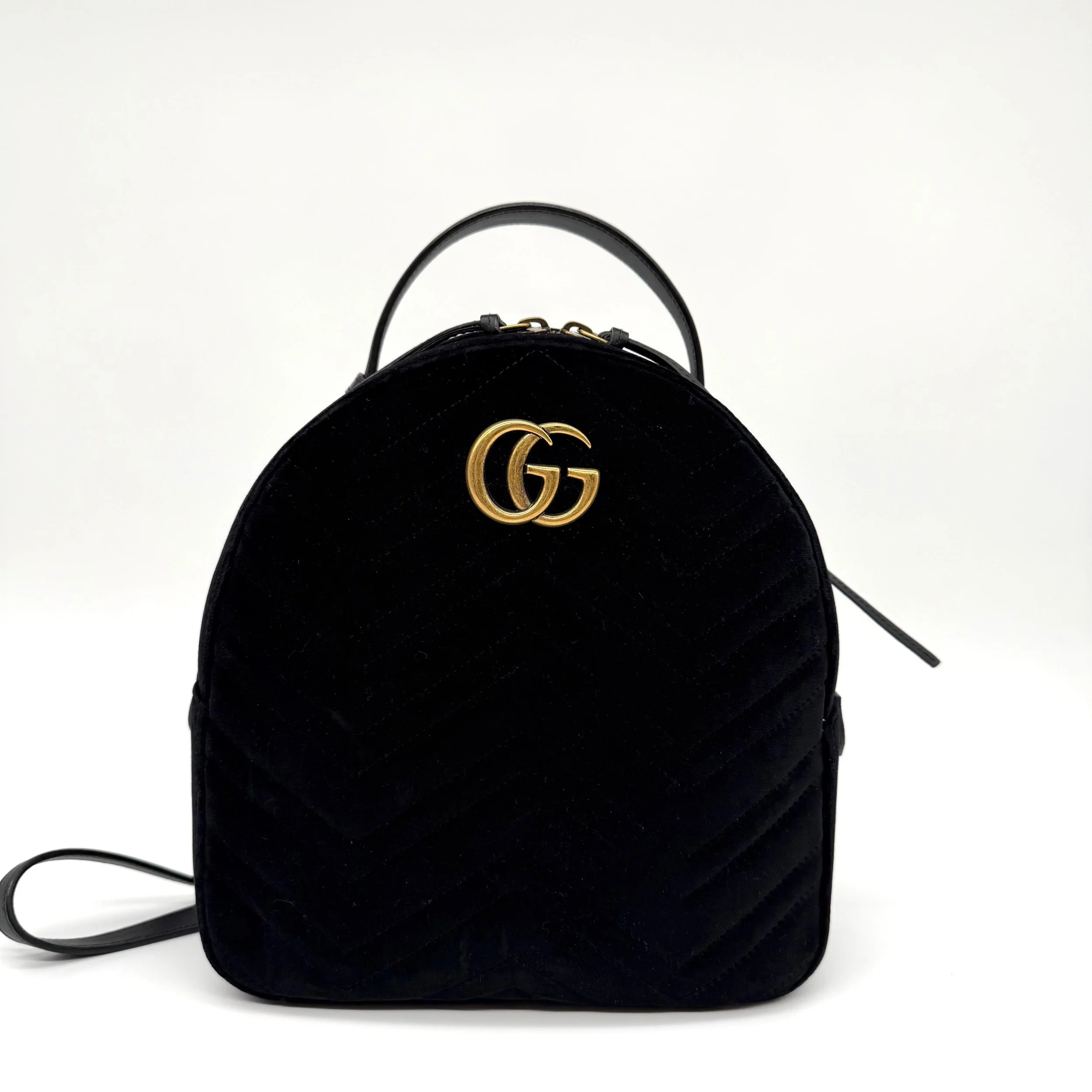 Gucci Marmont Velvet Backpack Bag in Black Quilted Gold Hardware