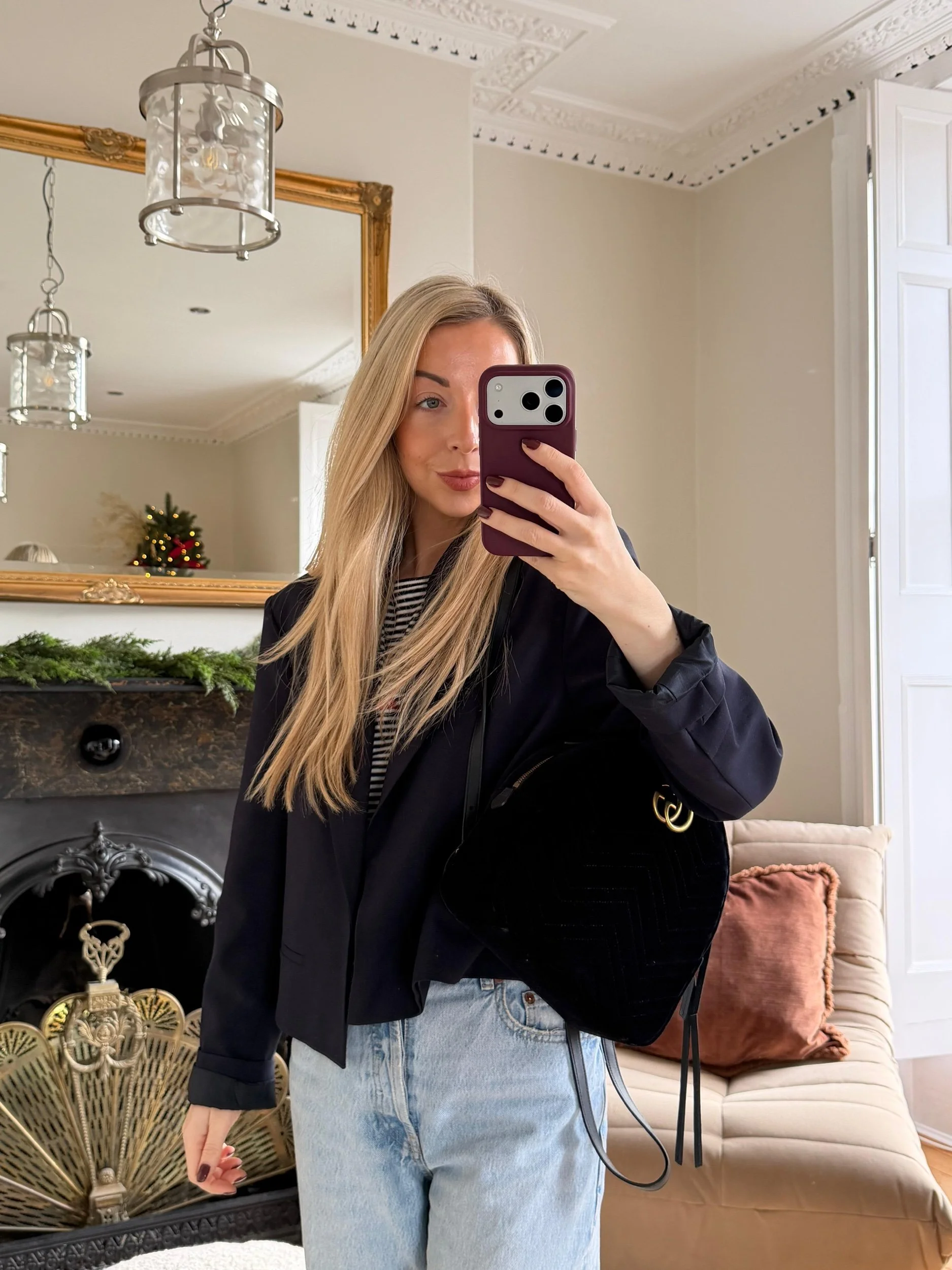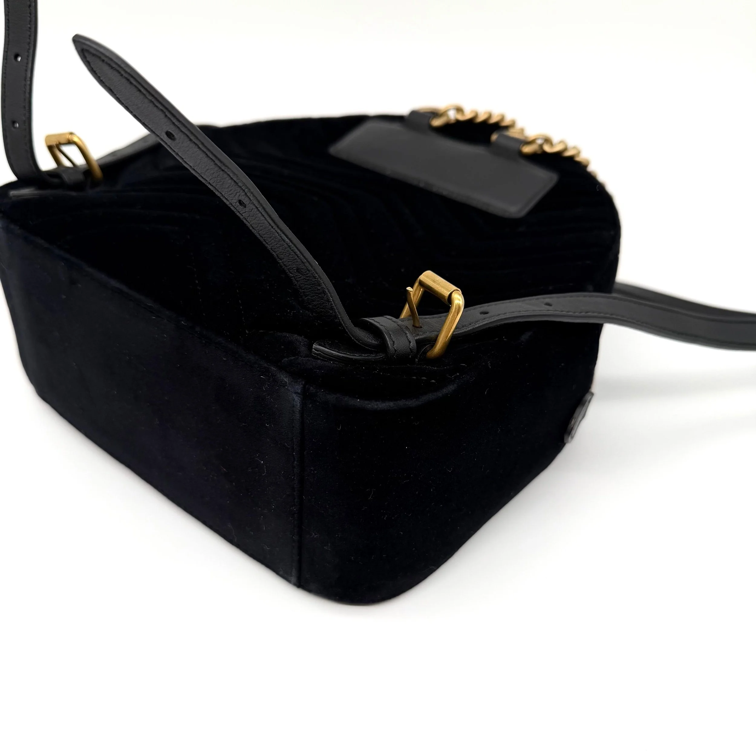 Item Description/Model: Gucci GG Marmont Velvet Chain Backpack Bag in Black Quilted Gold Hardware