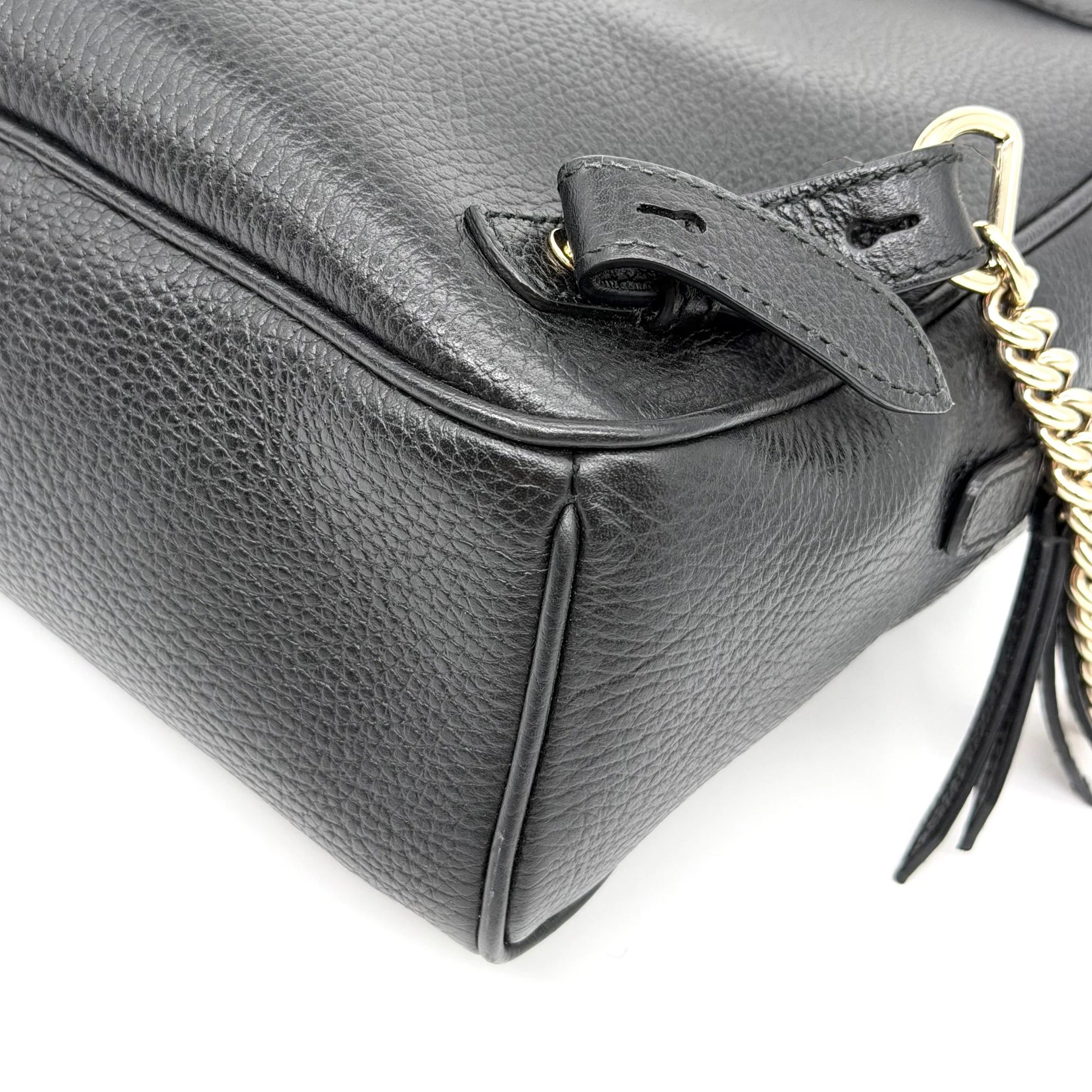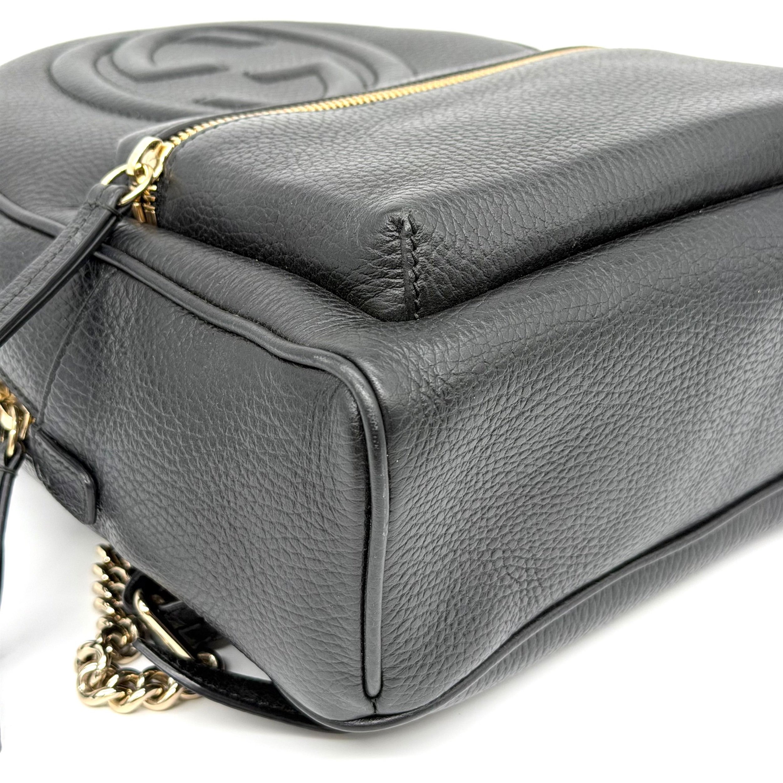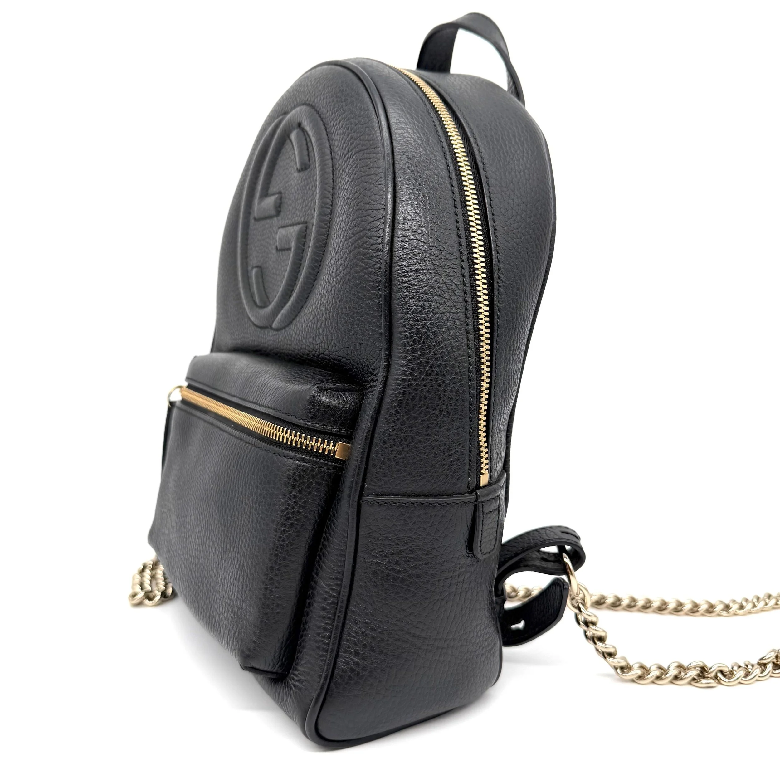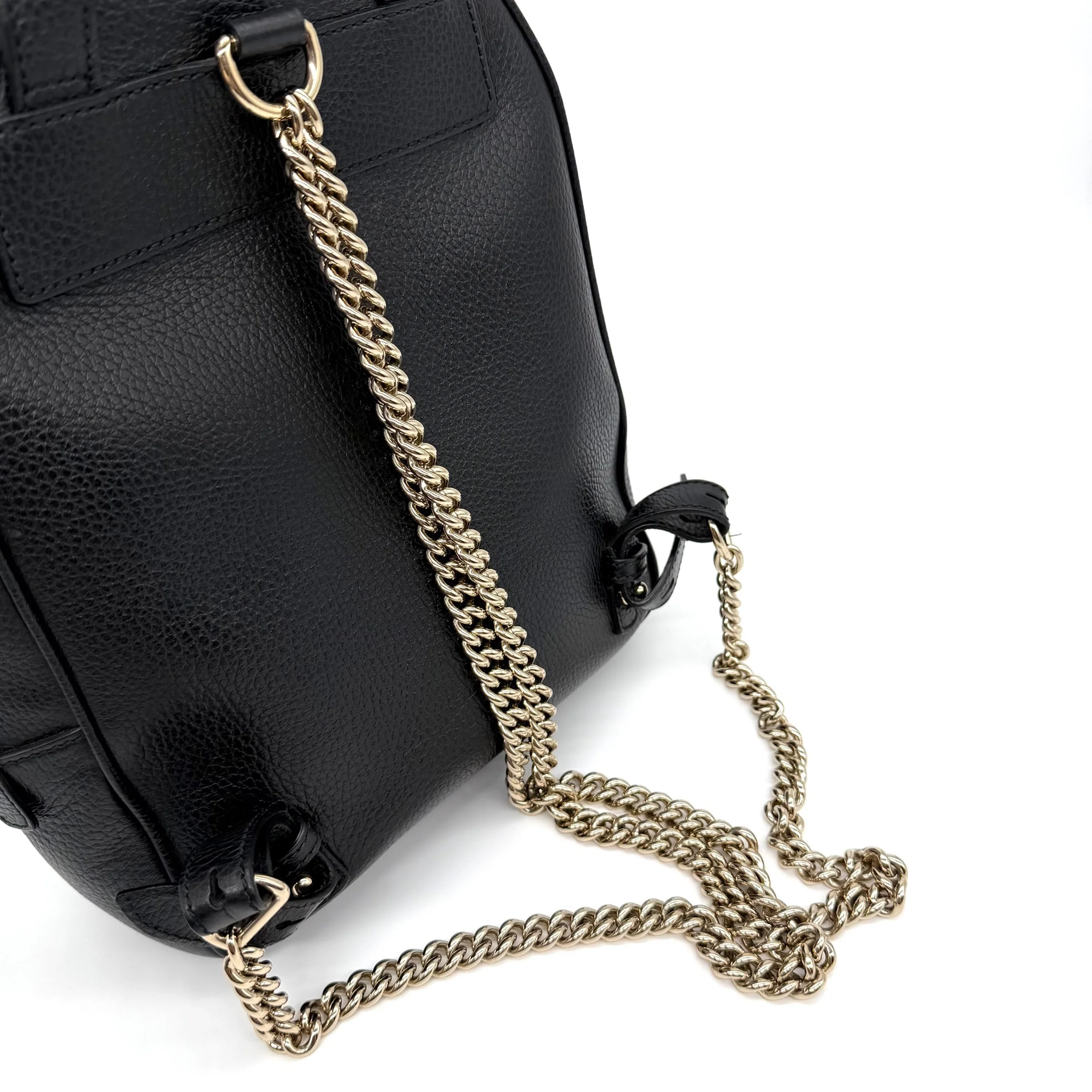 Item Description/Model: Gucci Soho Chain Backpack Bag with Black Grained Leather Champagne Gold Hardware