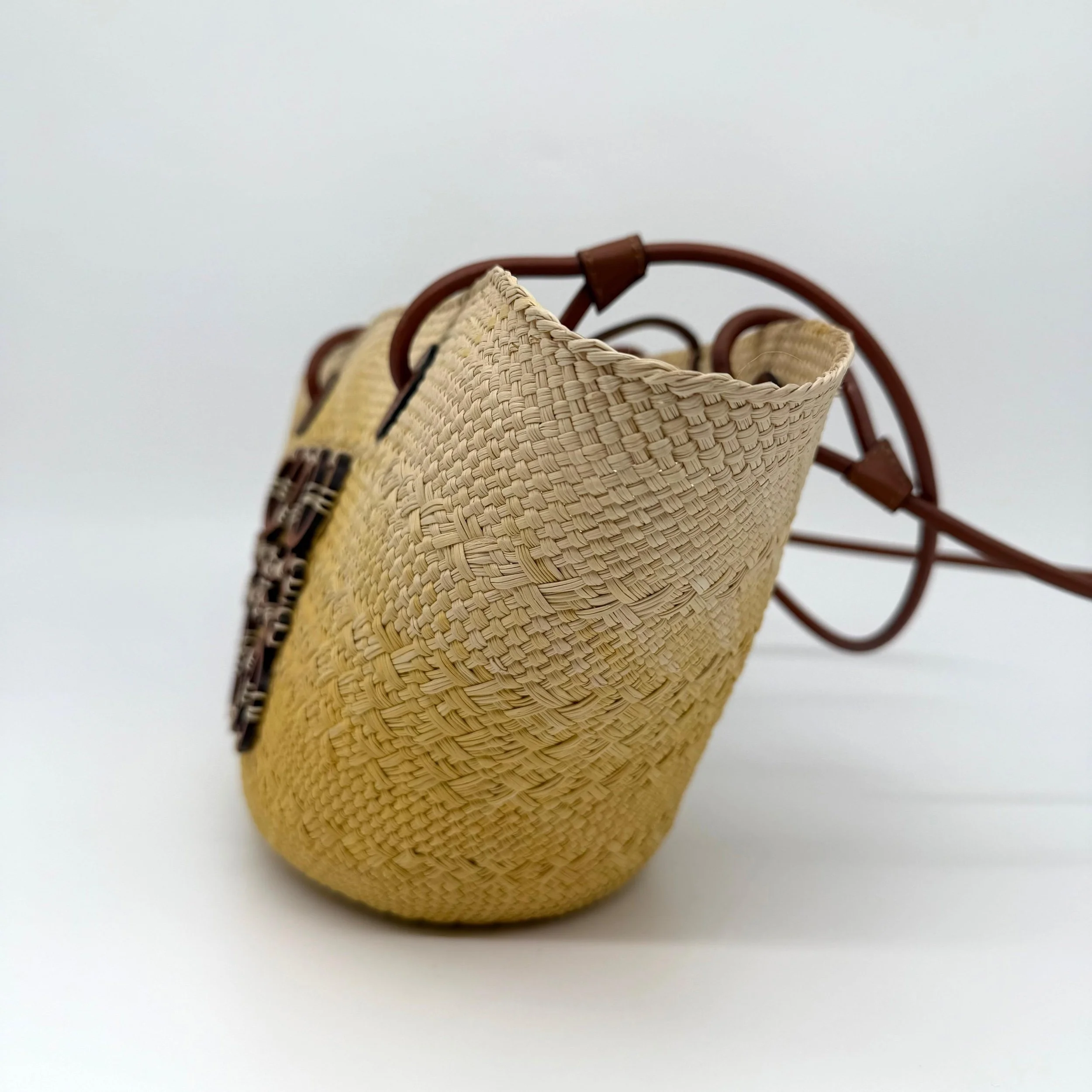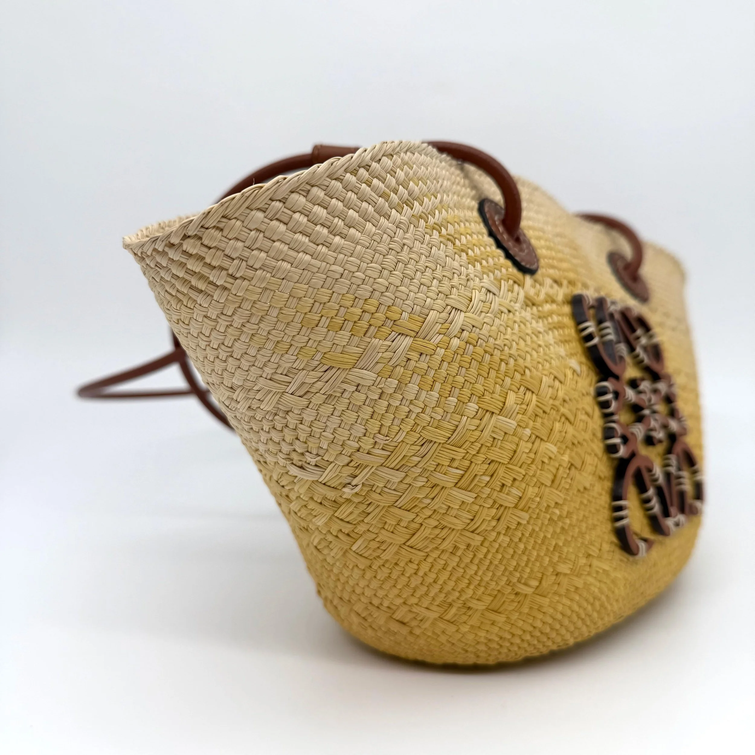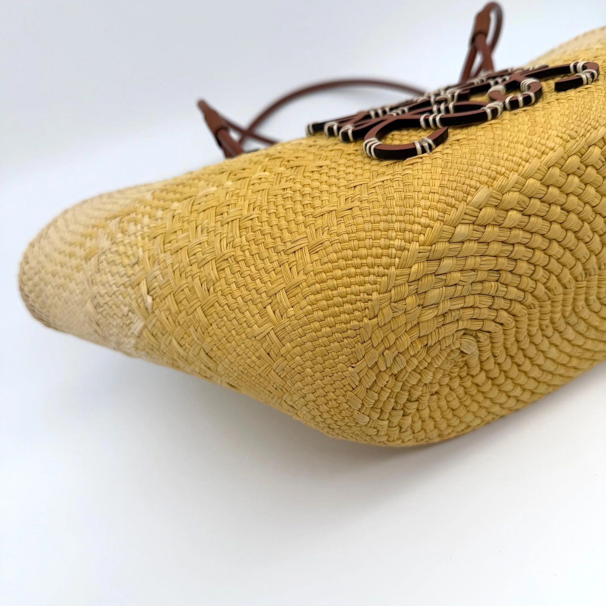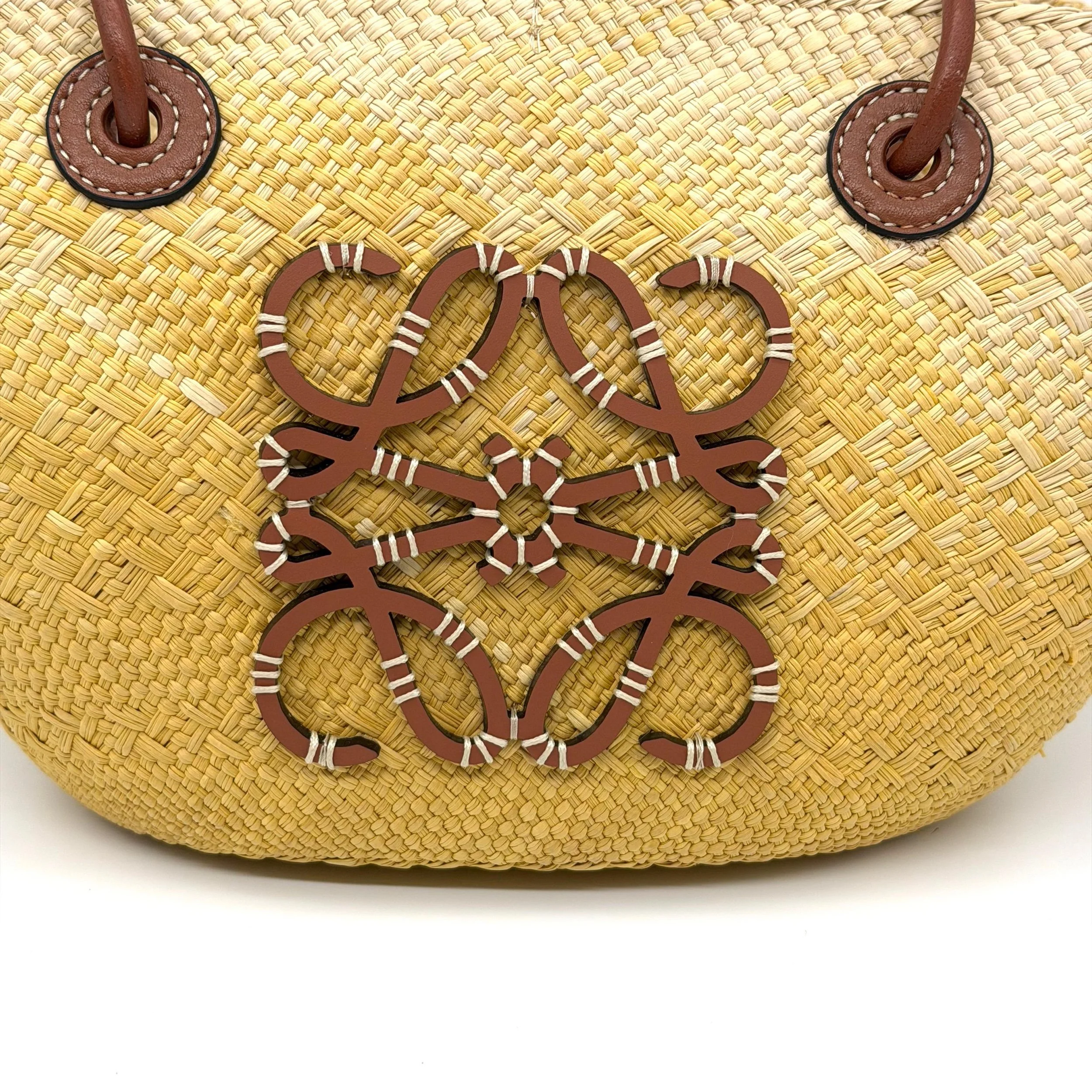 Loewe Anagram Small Basket Raffia Tote Bag Natural / Yellow