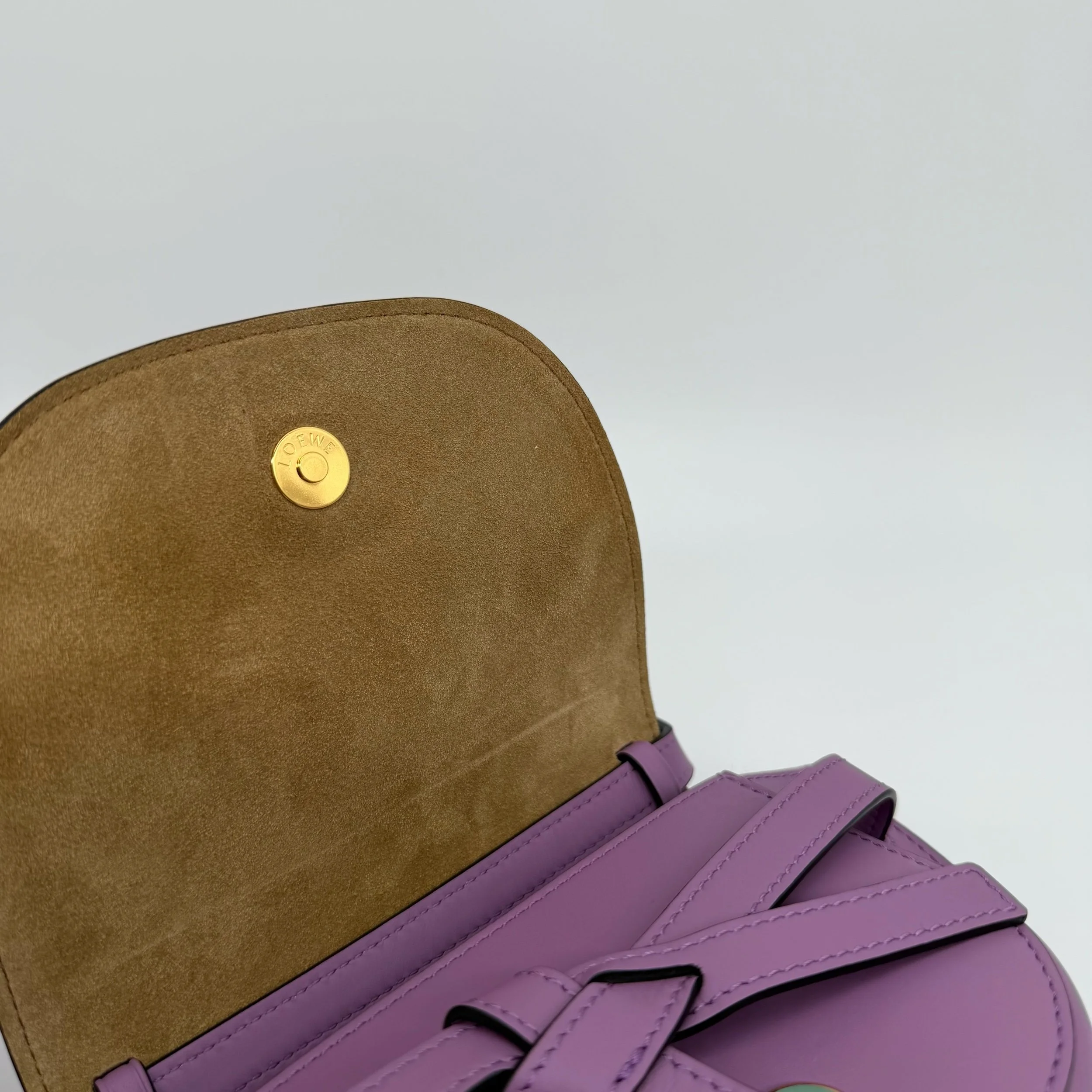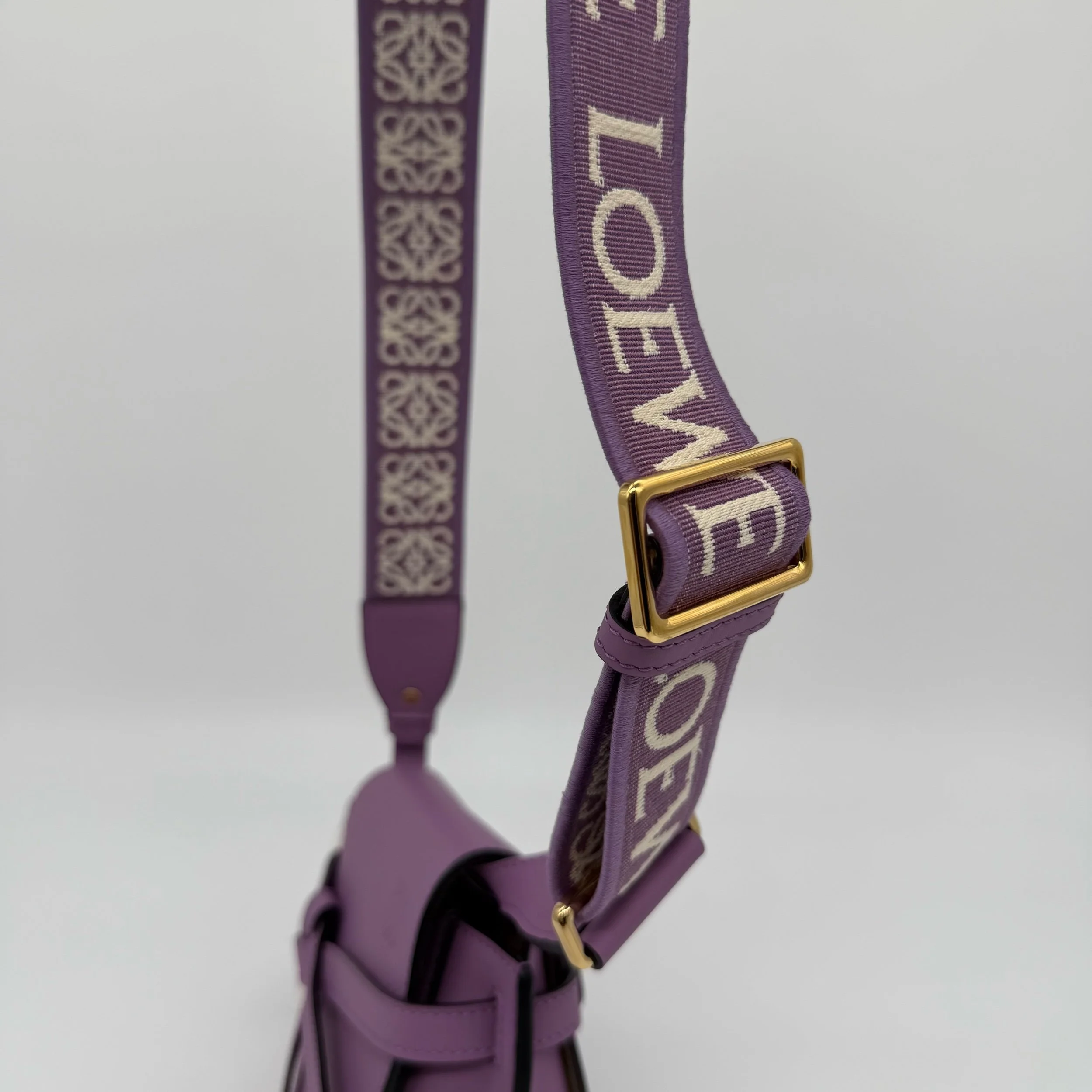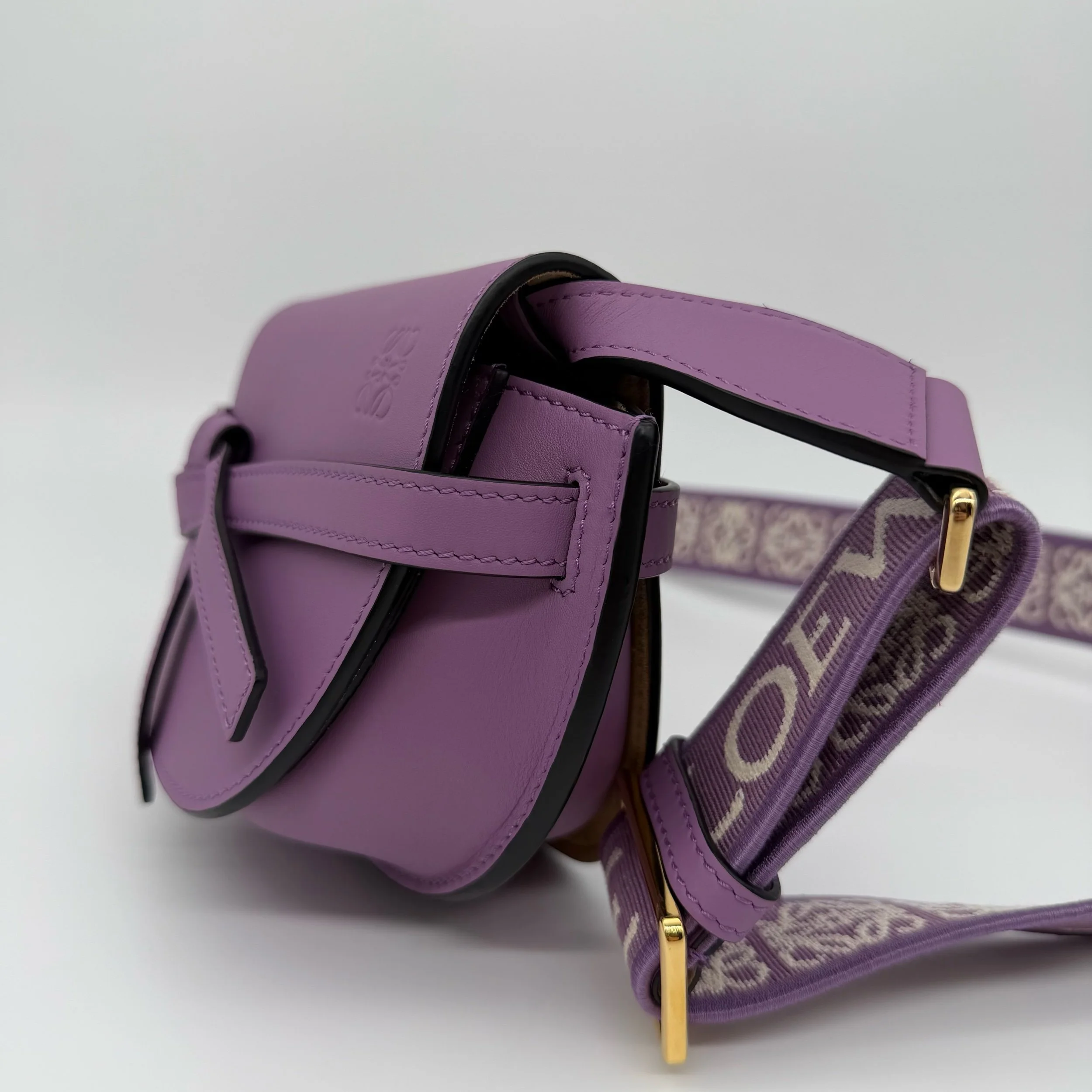 Item Description/Model: Loewe Gate Dual Mini Crossbody Bag Purple Smooth Leather Gold Hardware