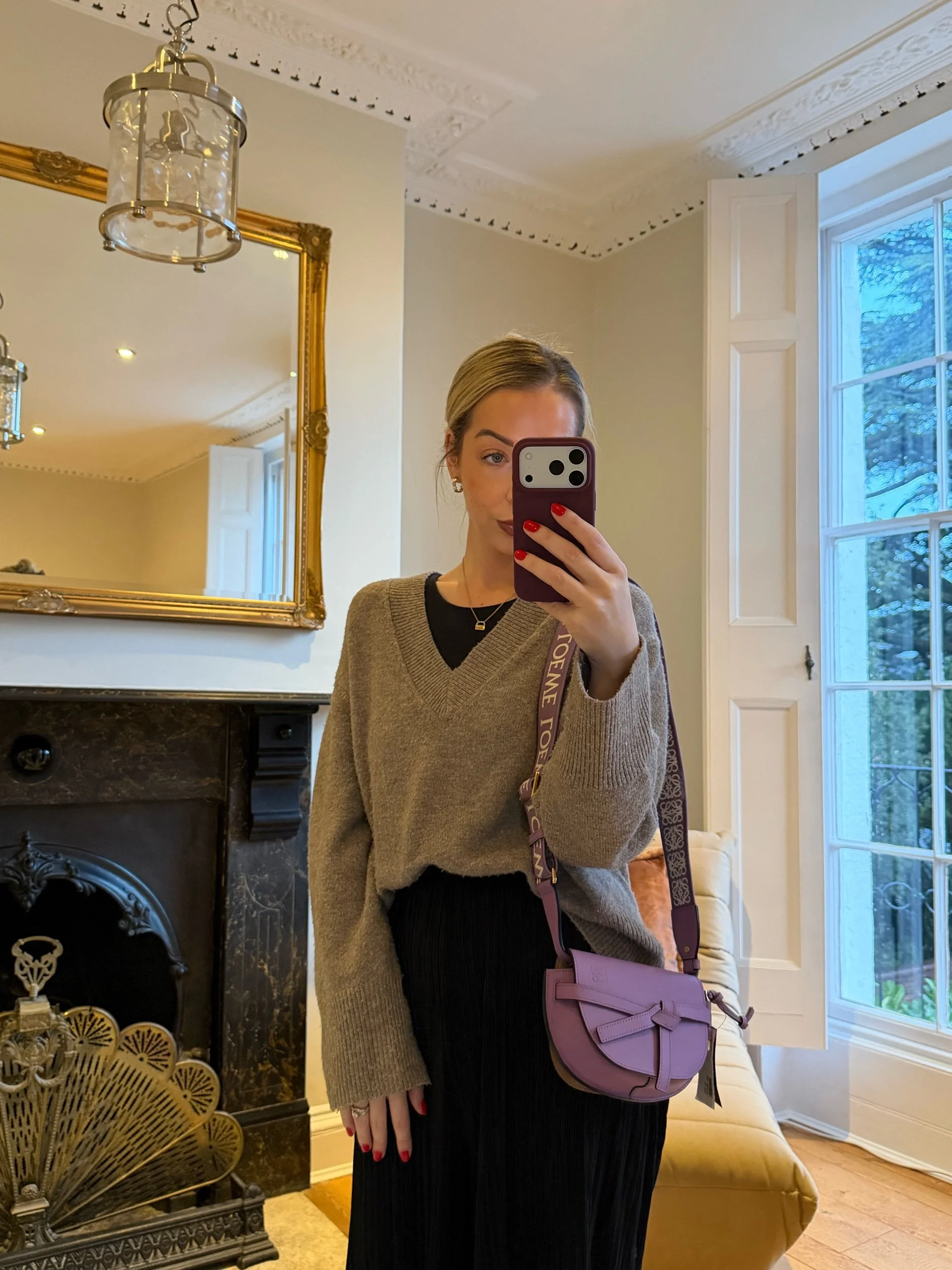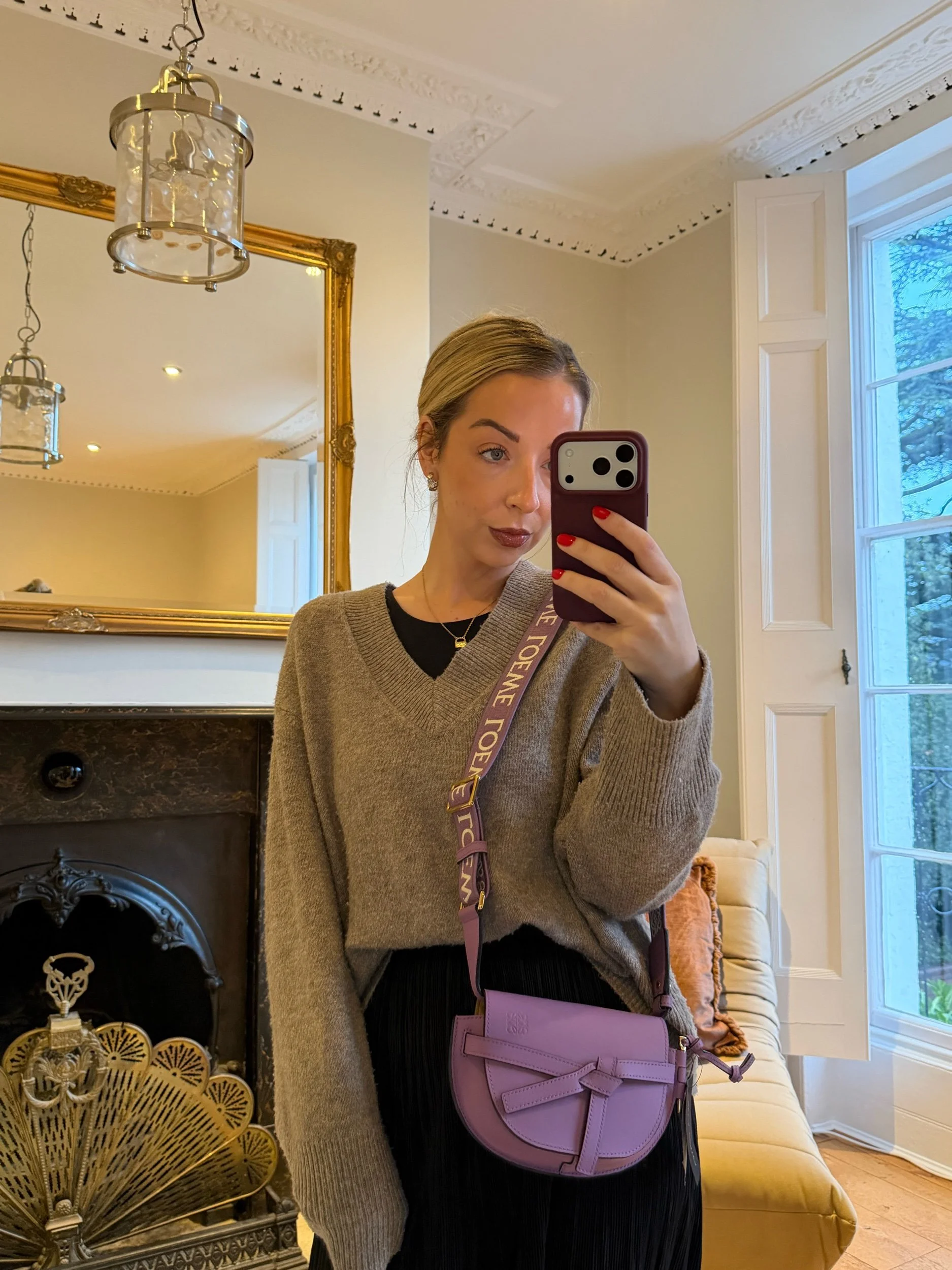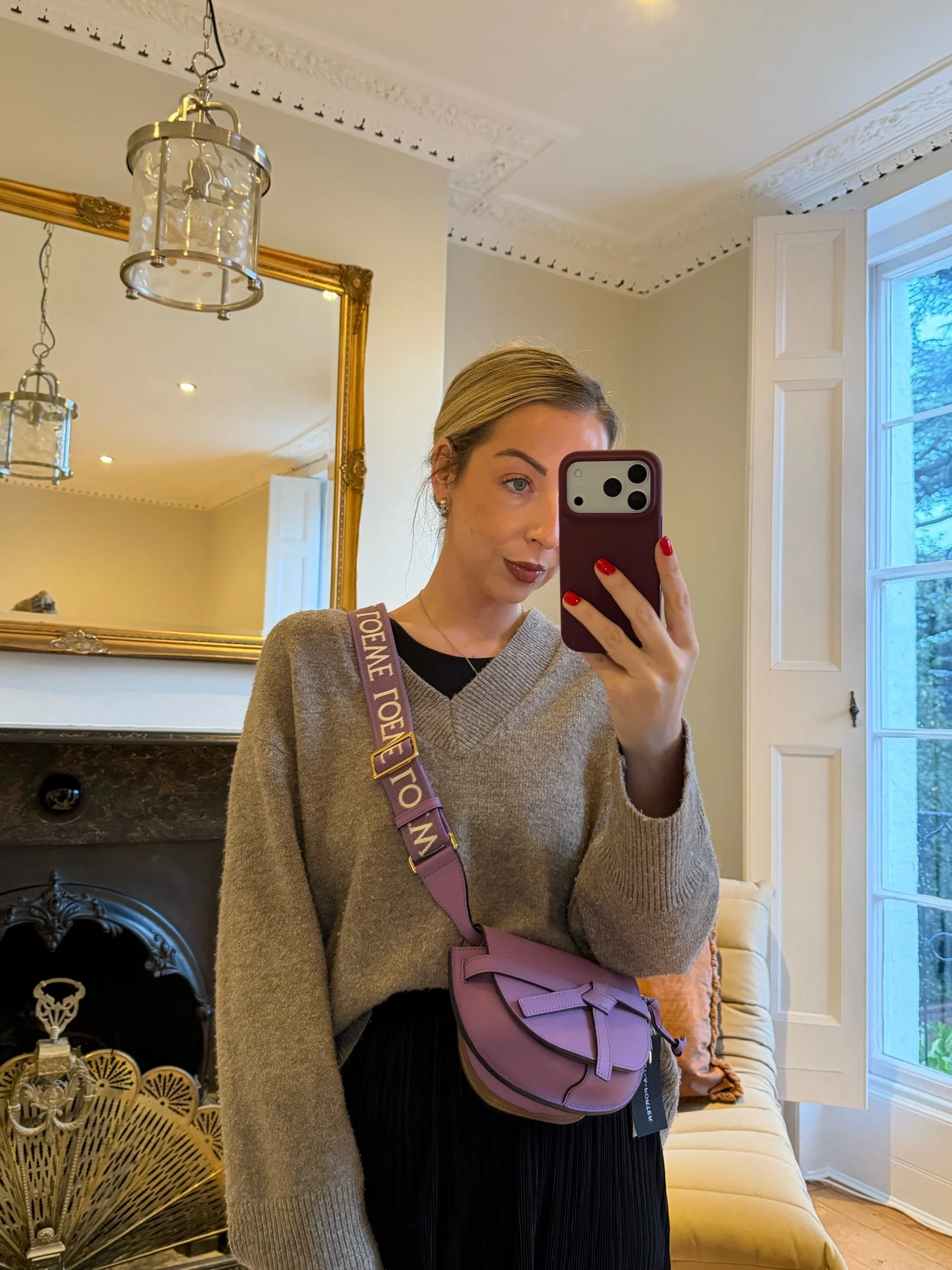Item Description/Model: Loewe Gate Dual Mini Crossbody Bag Purple Smooth Leather Gold Hardware