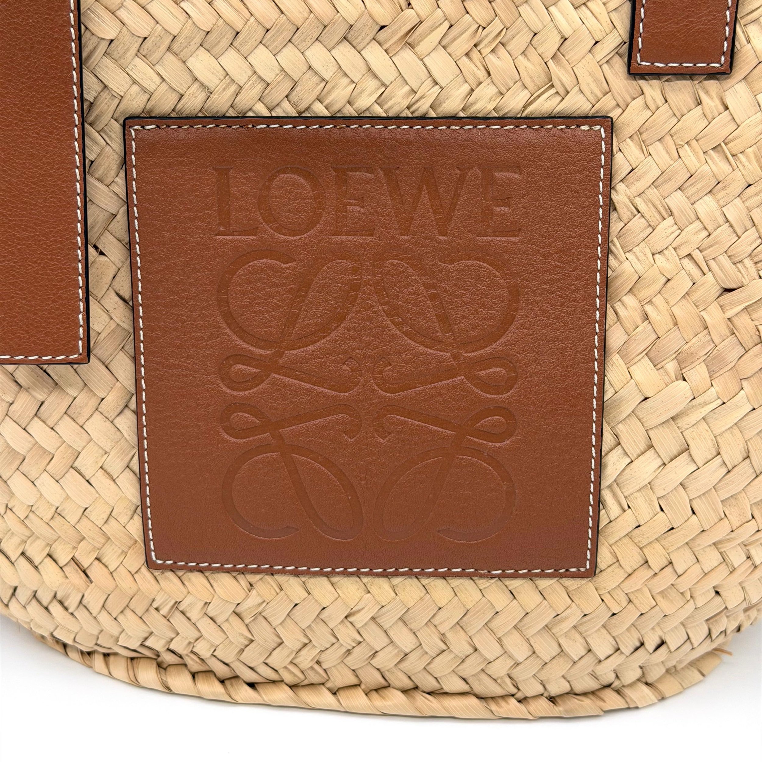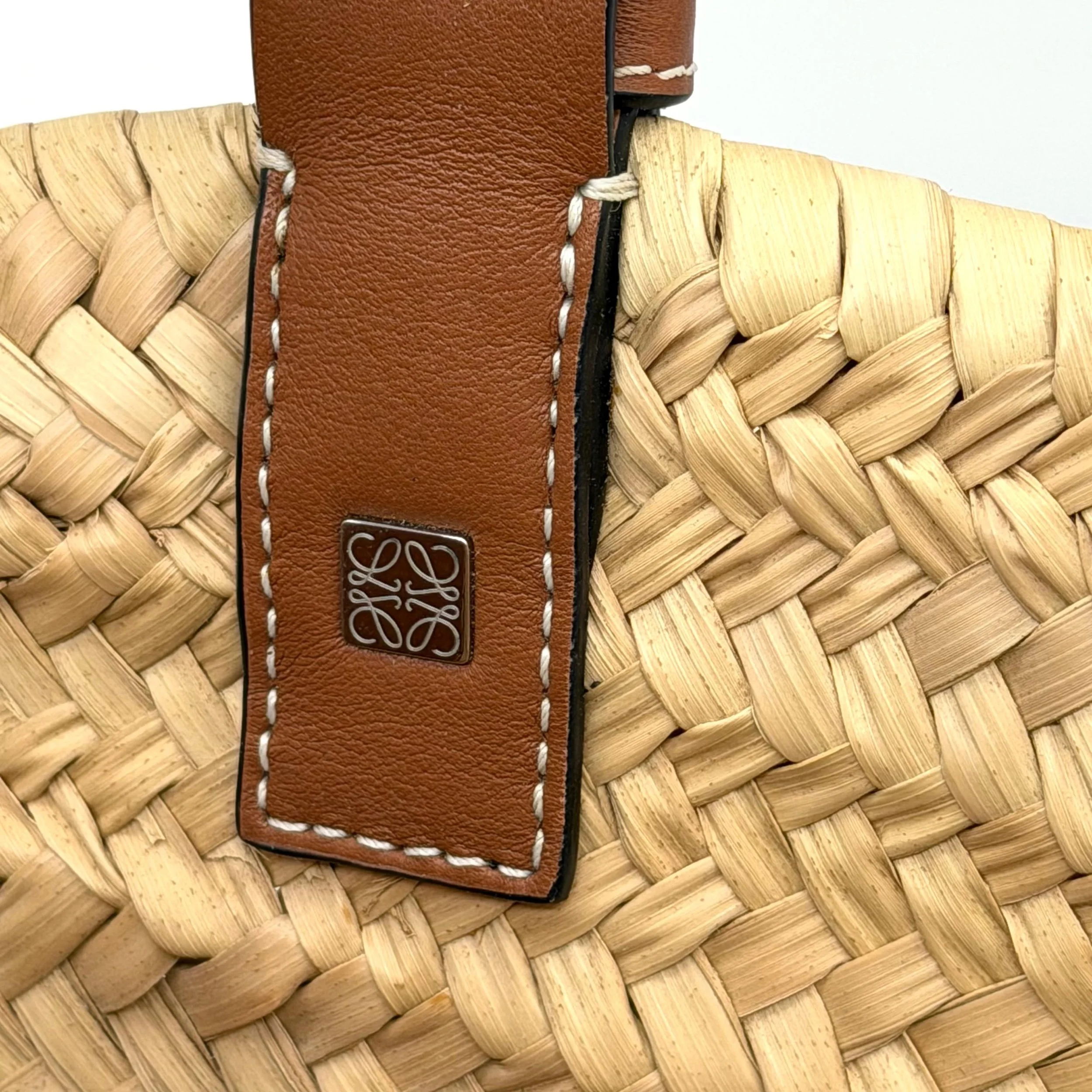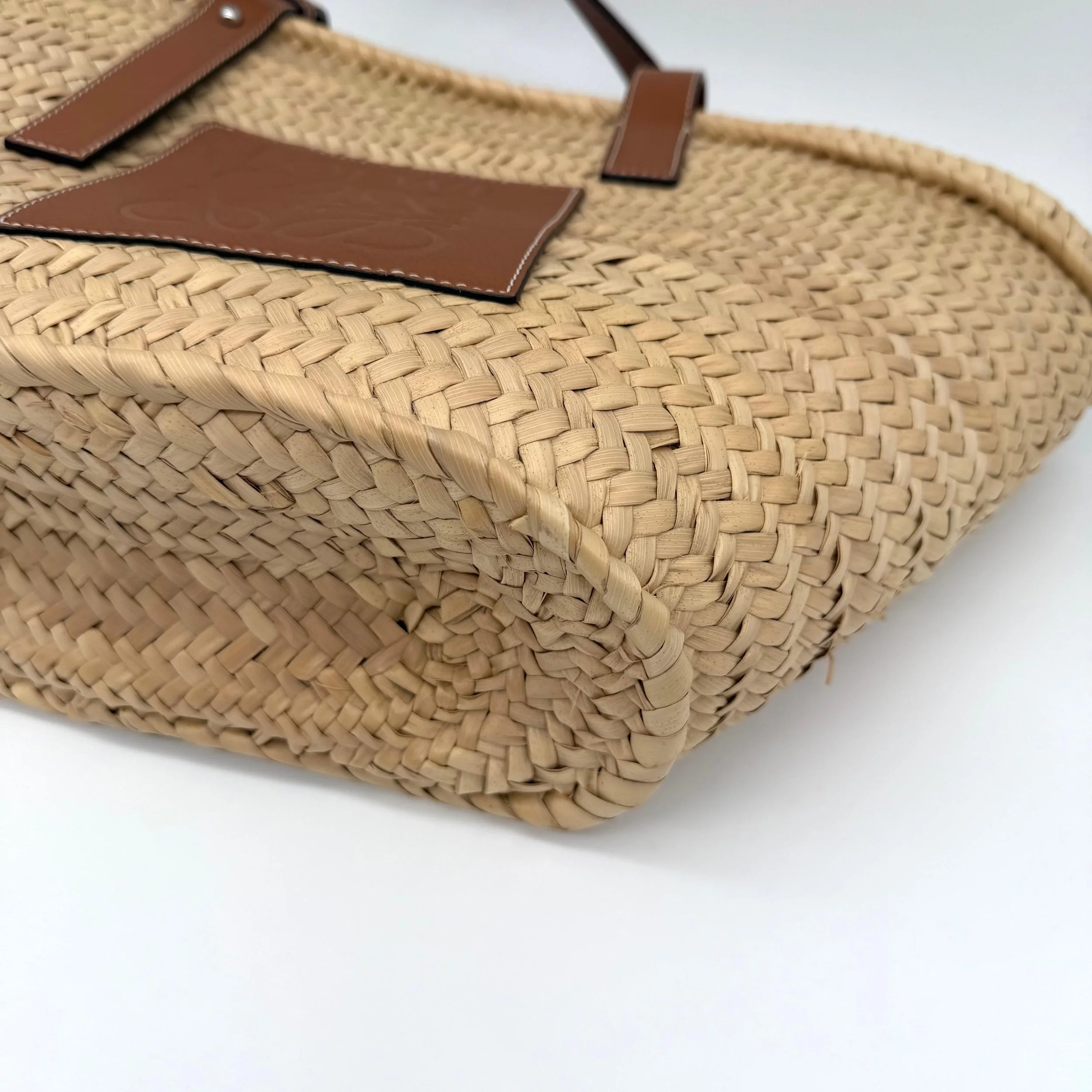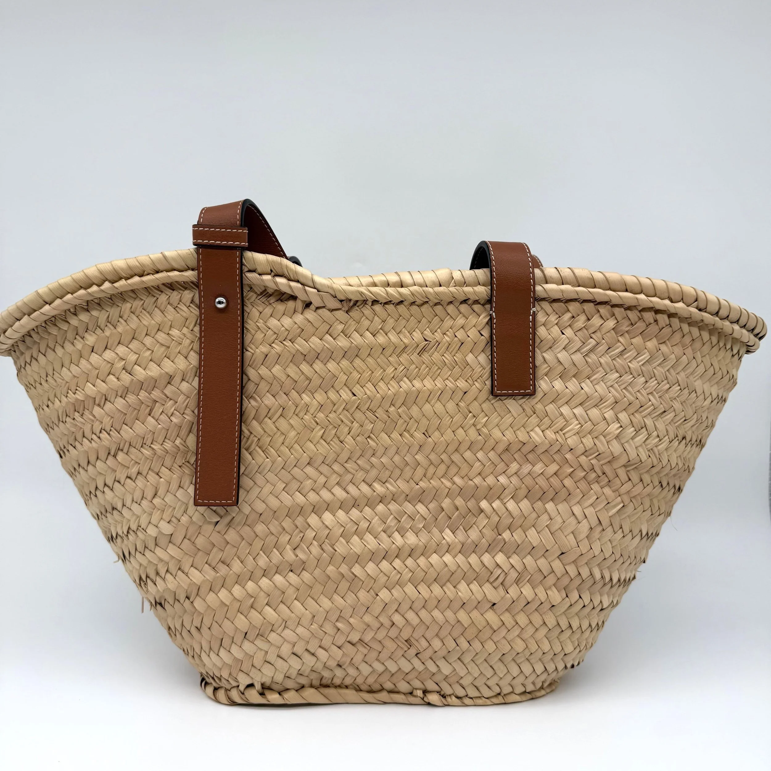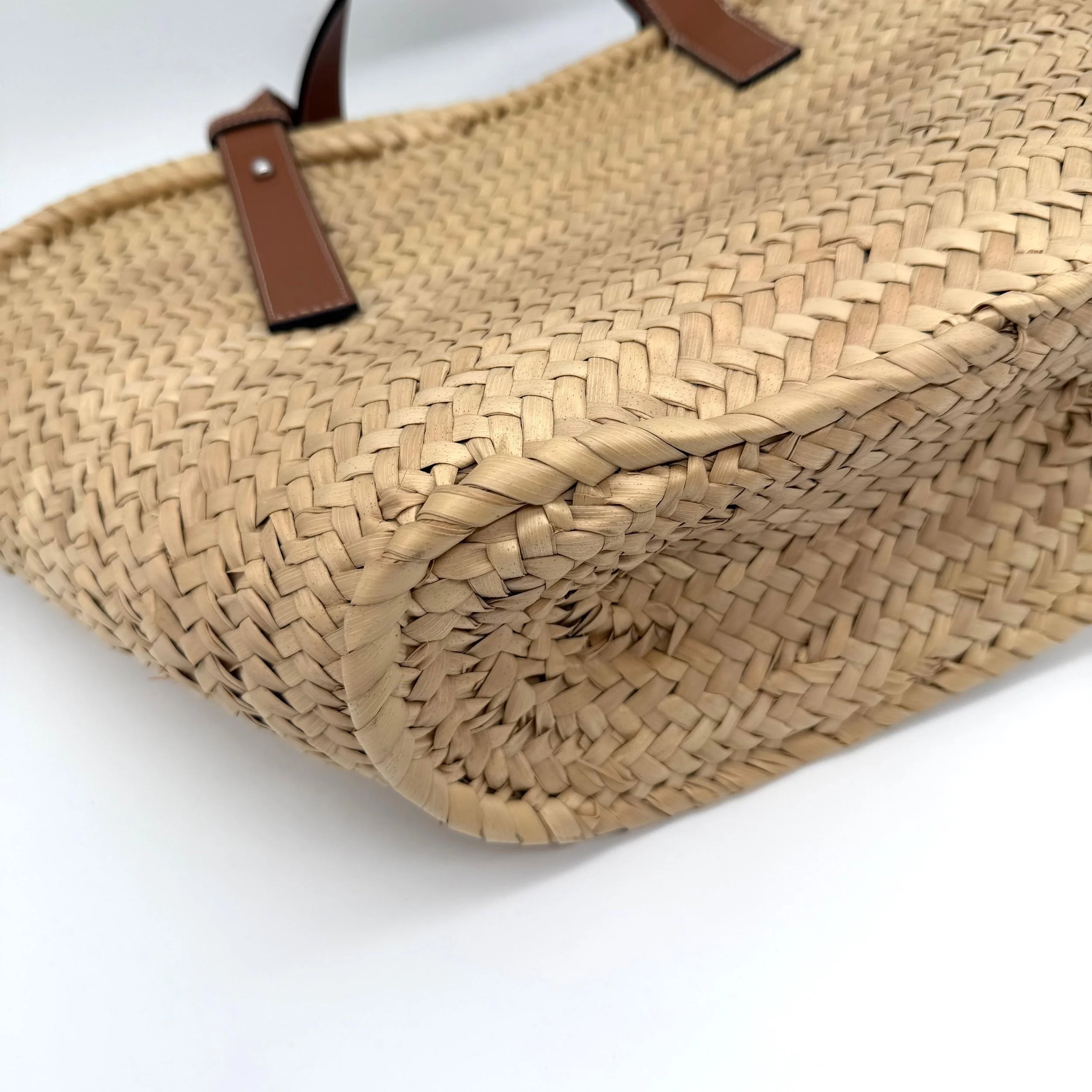 Loewe Palm Leaf Wicker and Brown Calfskin Leather Trim Large Basket Tote Bag