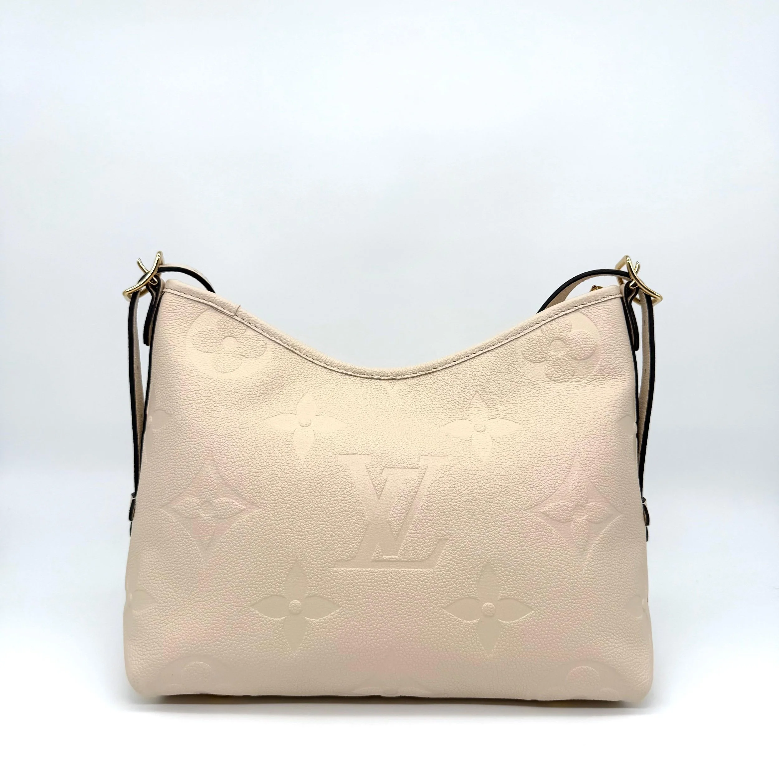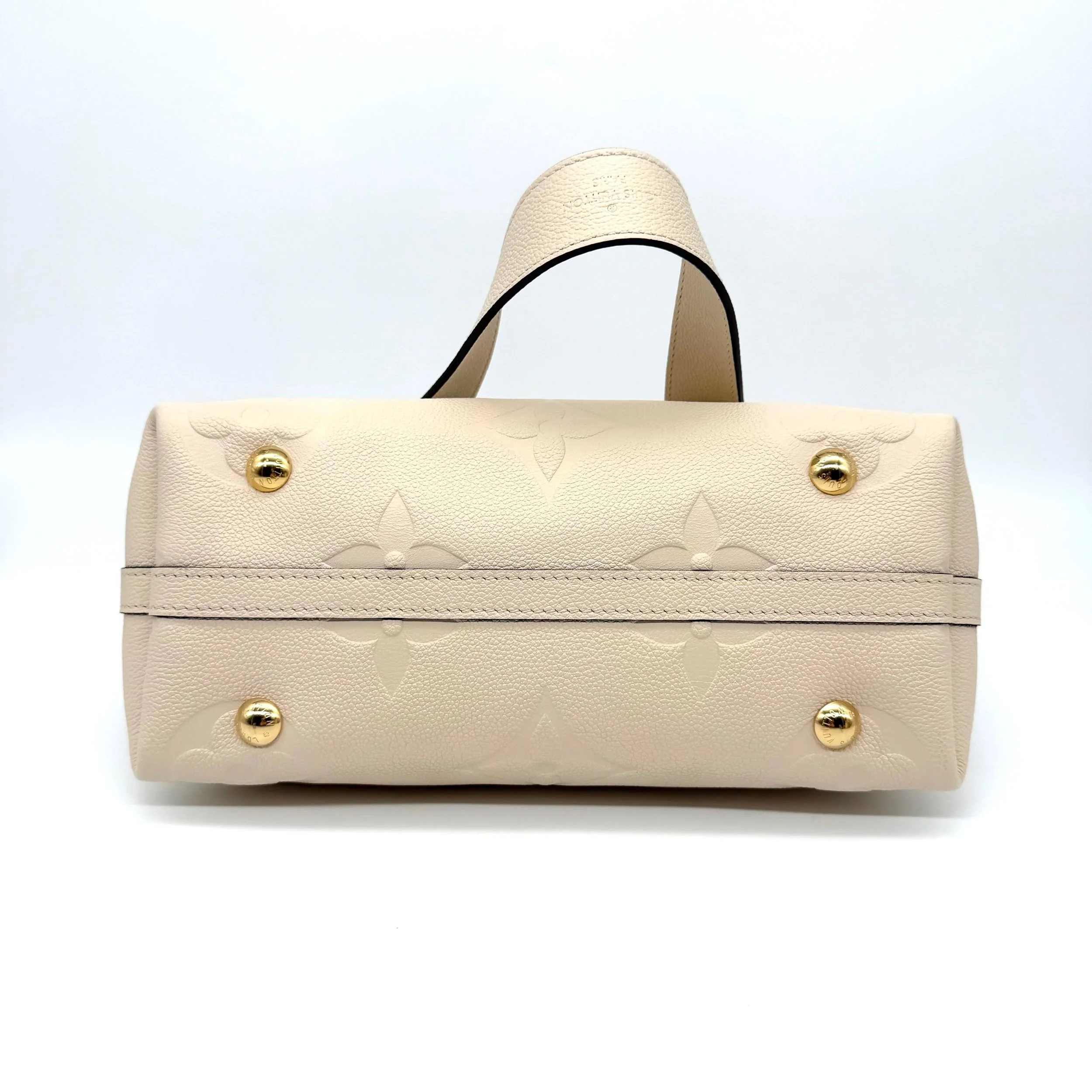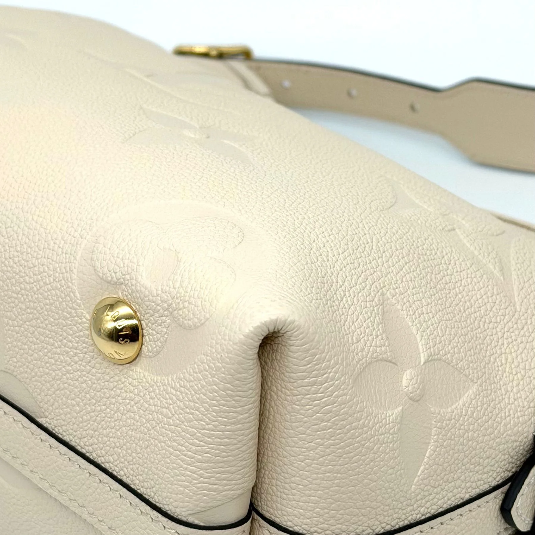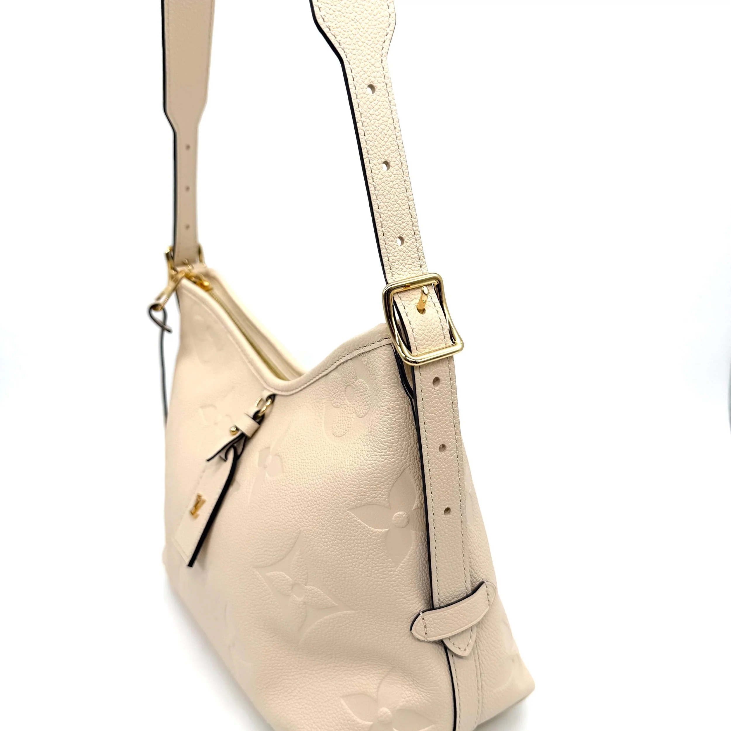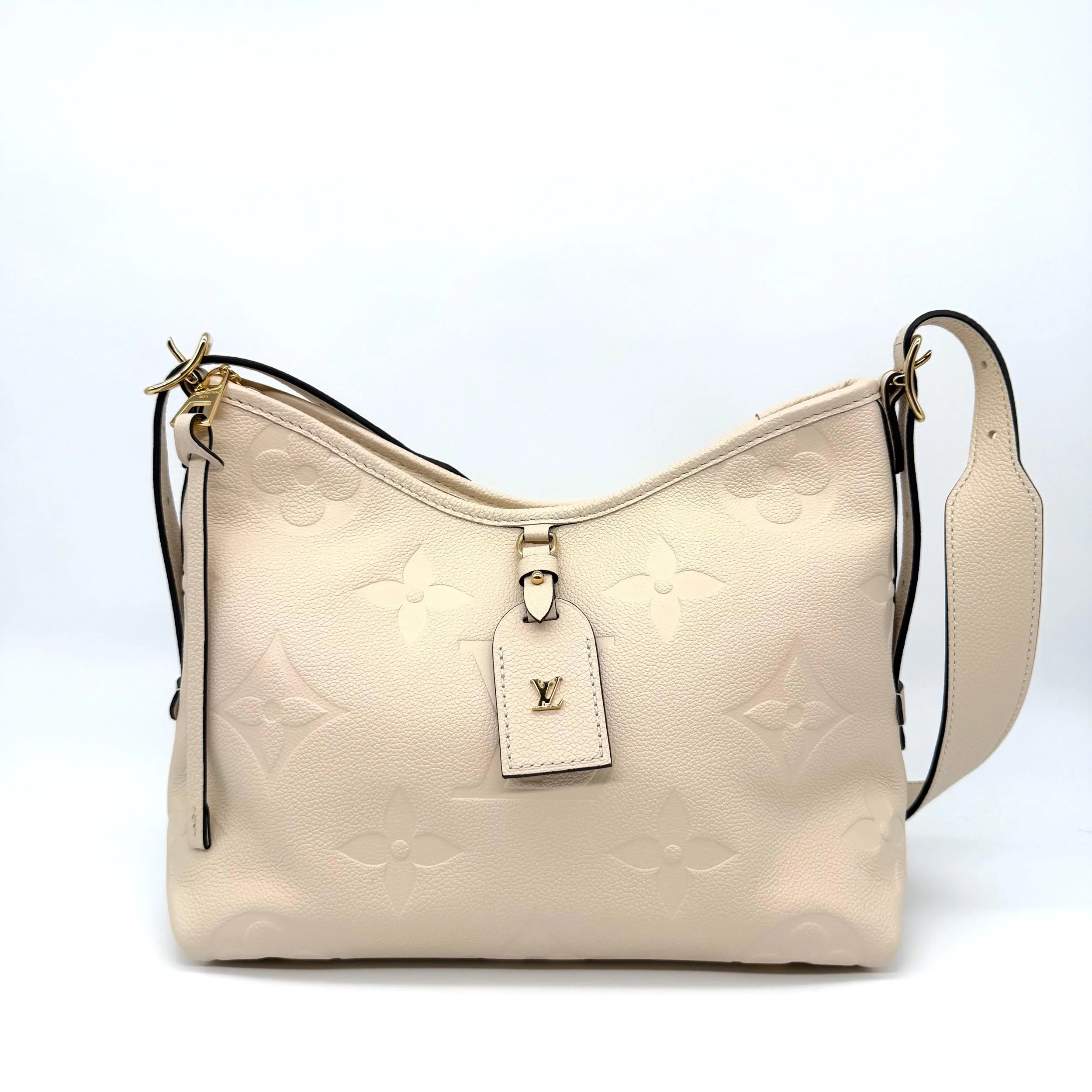 Item Description/Model: Louis Vuitton Carryall Giant Monogram PM Shoulder Bag in Cream Ivory Empreinte Leather Gold Hardware and Interior Pouch Clutch.