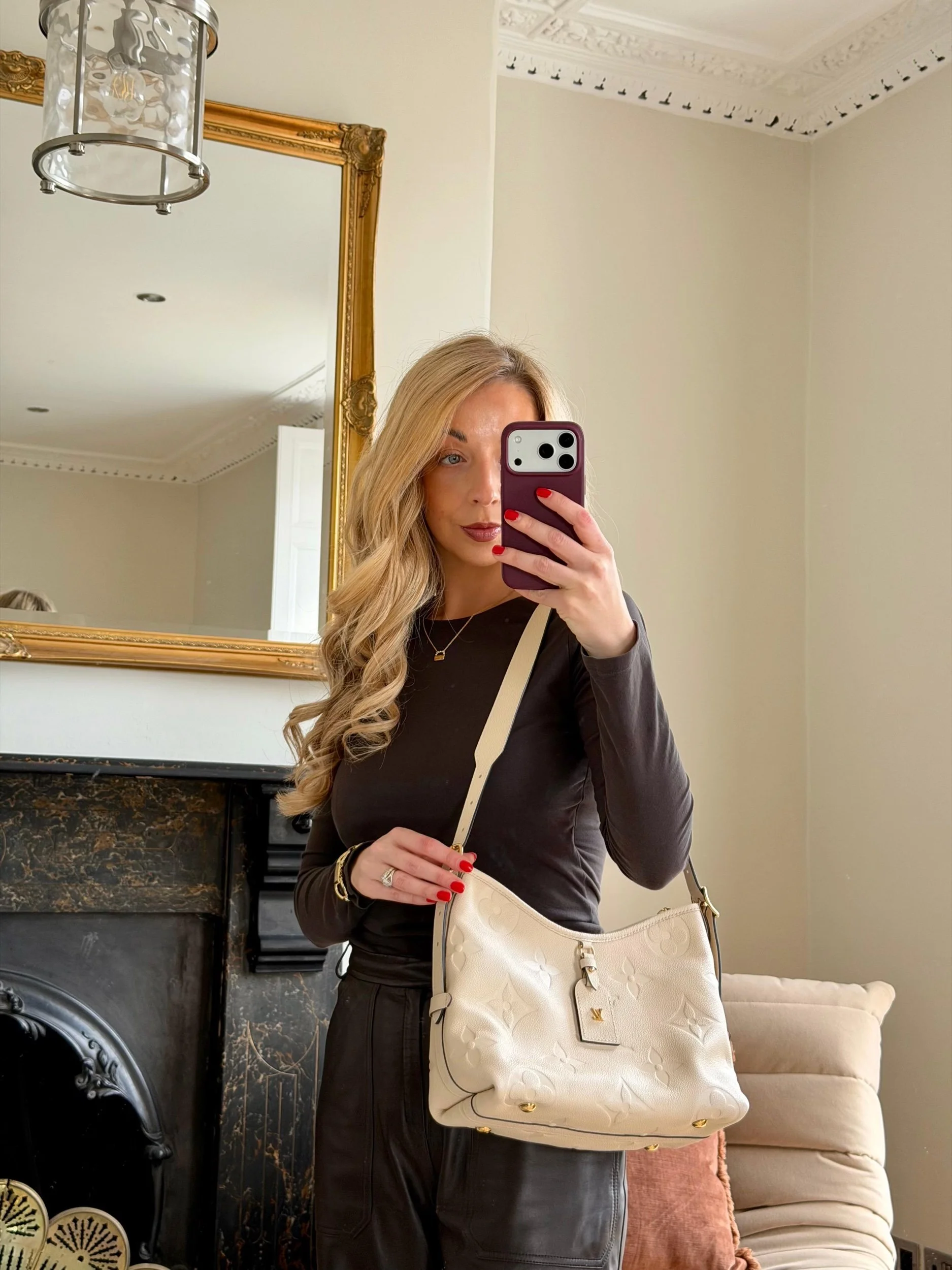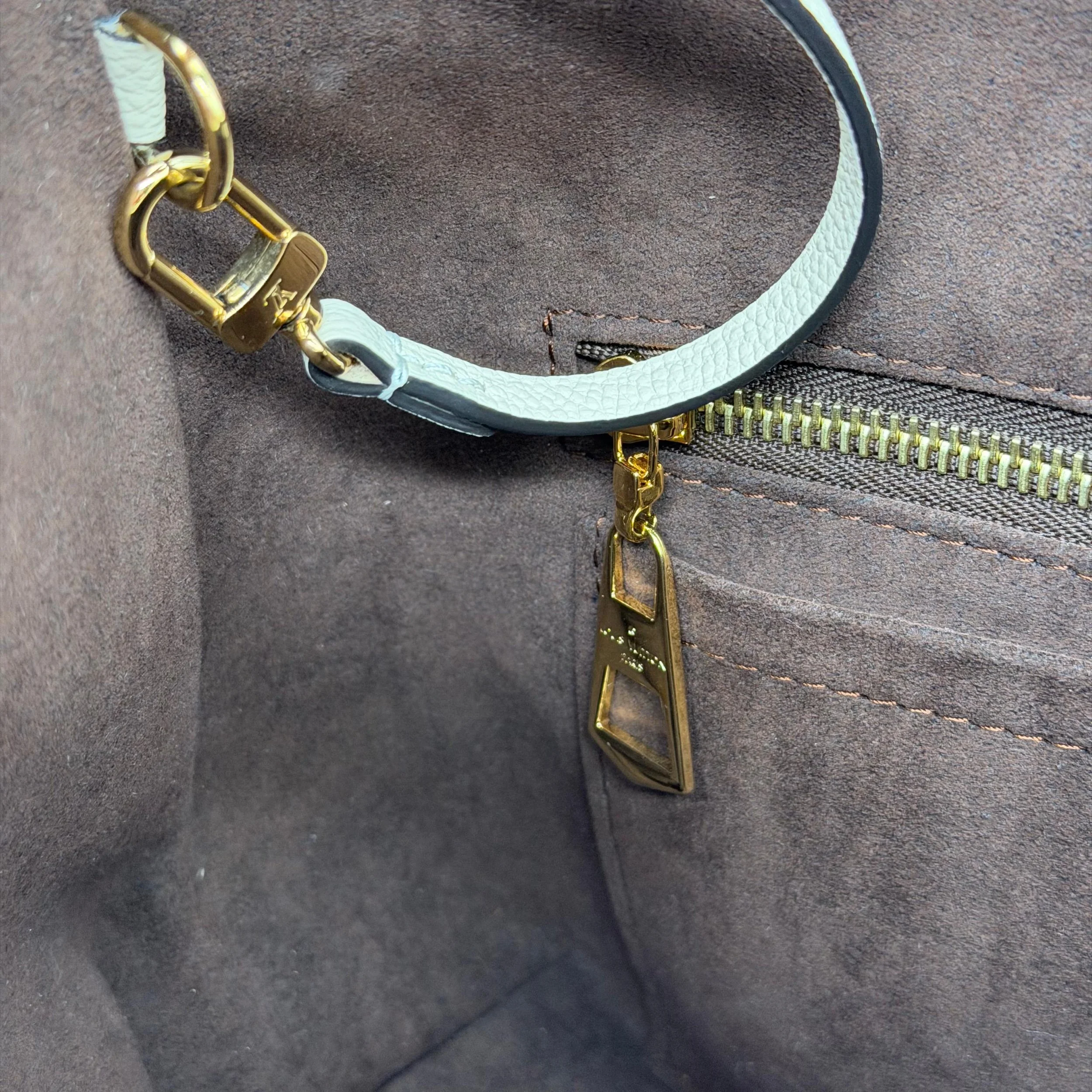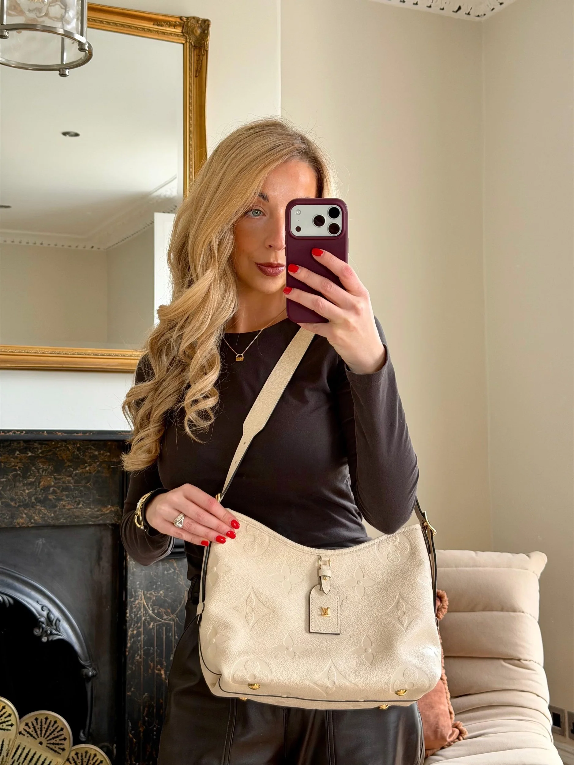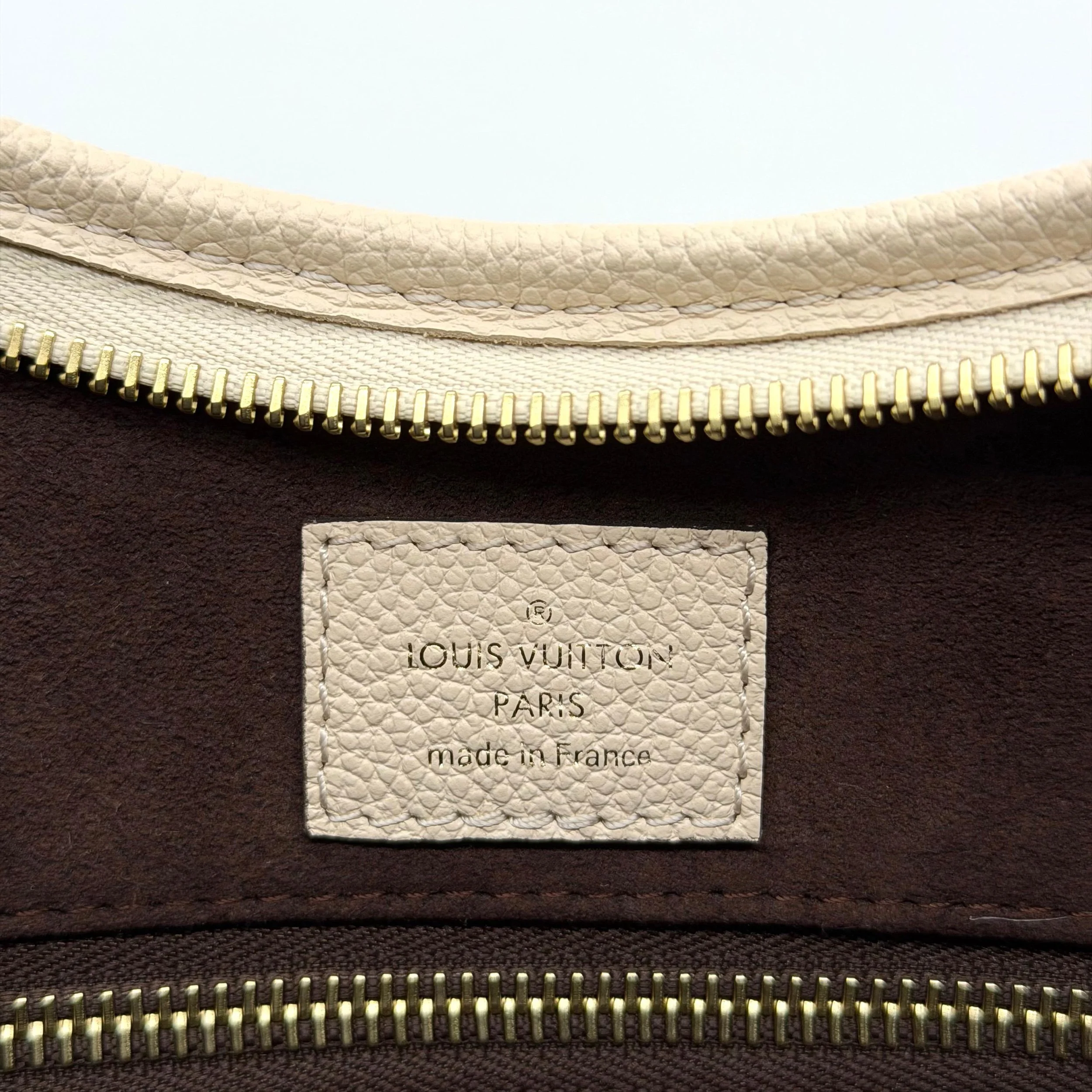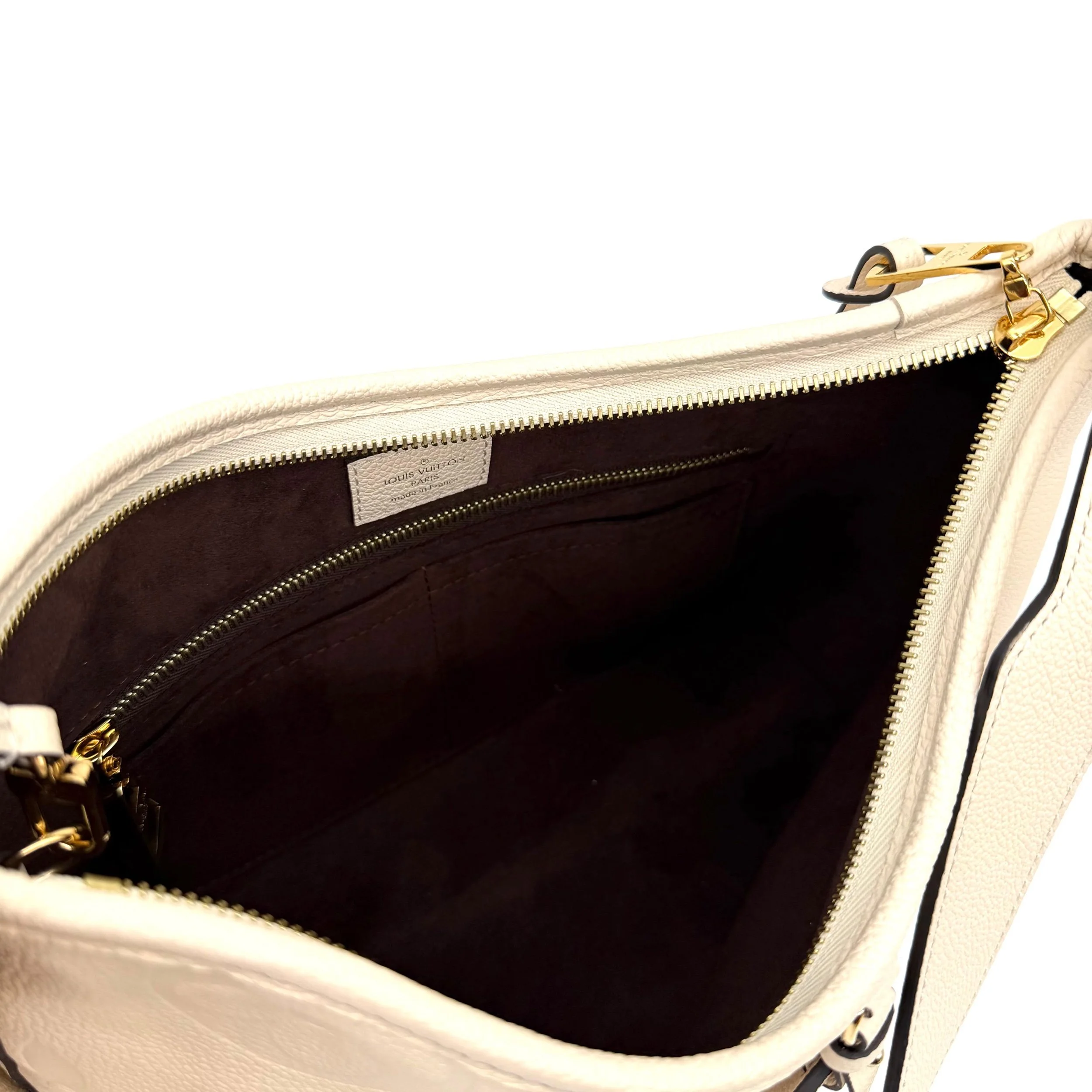 Item Description/Model: Louis Vuitton Carryall Giant Monogram PM Shoulder Bag in Cream Ivory Empreinte Leather Gold Hardware and Interior Pouch Clutch.