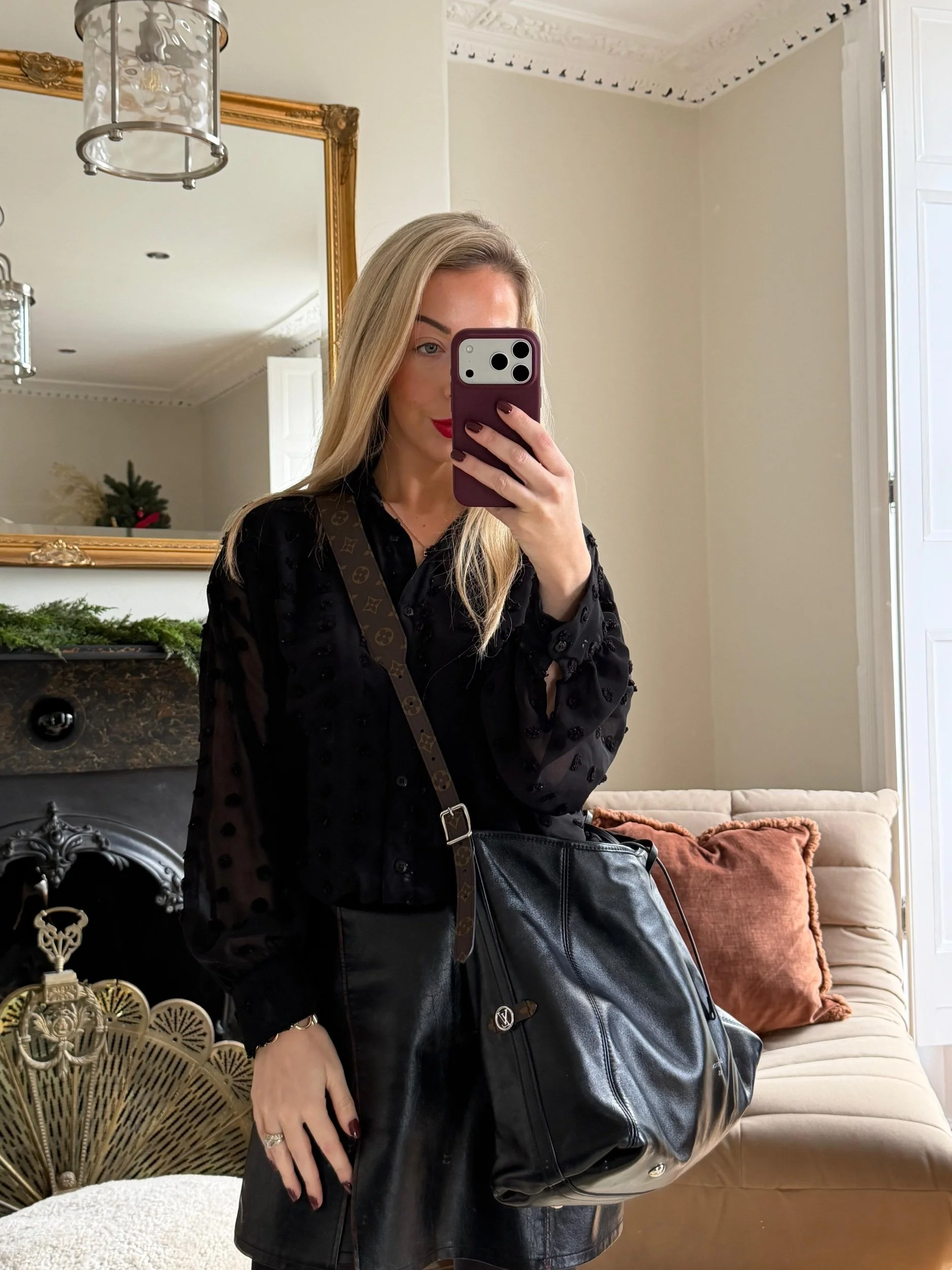 Louis Vuitton CarryAll Vibe MM Bag in Black Leather Brown Monogram Detailing