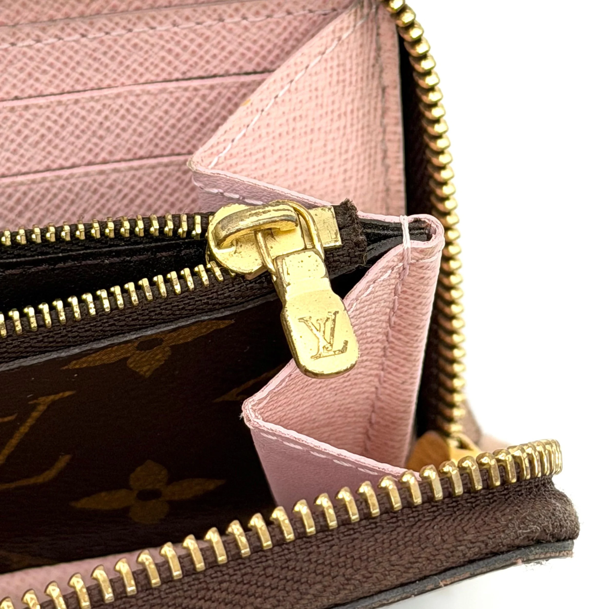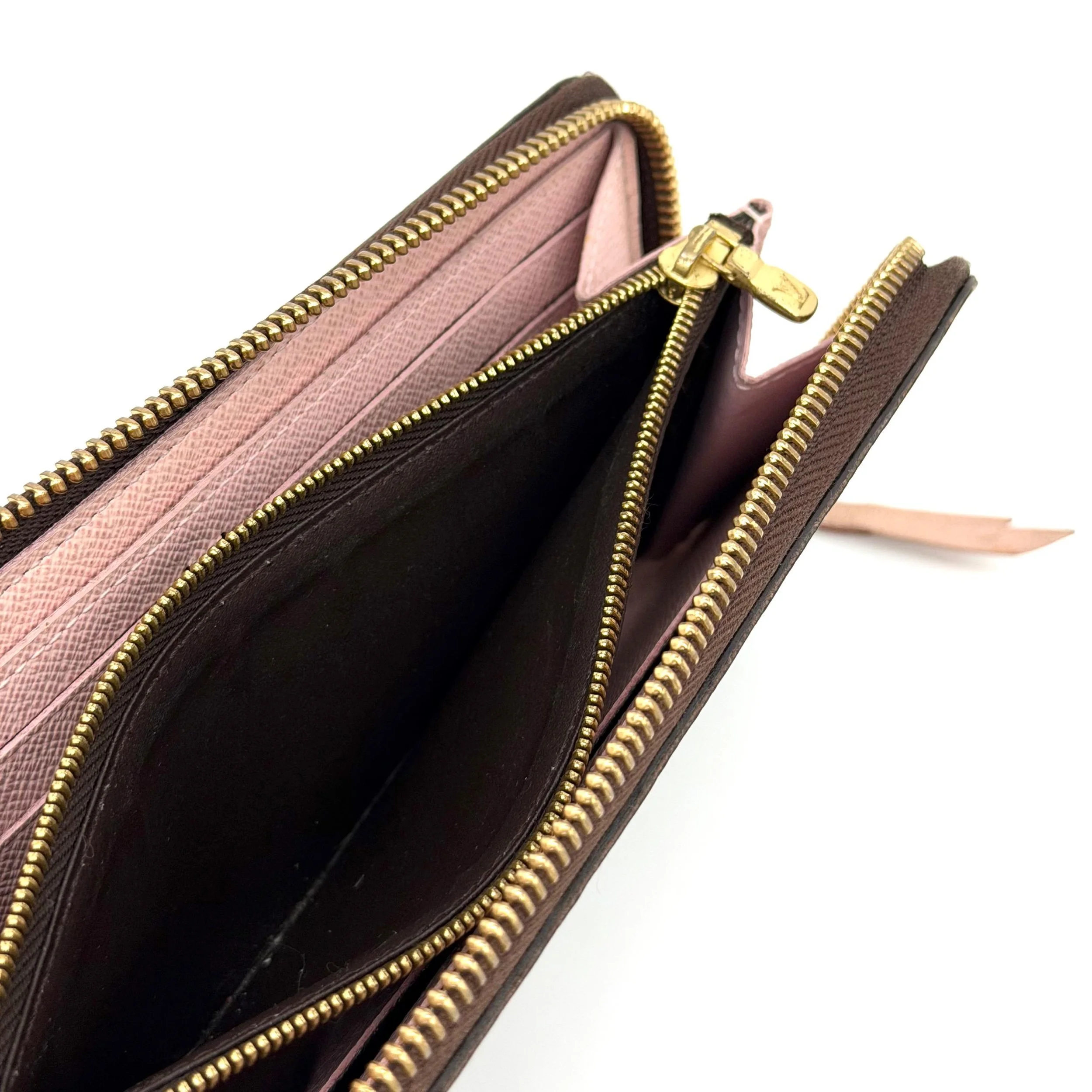 Item Description/Model: Louis Vuitton Clemence Wallet Purse in Brown Monogram Canvas and Rose Ballerine Pink Interior with Gold Hardware