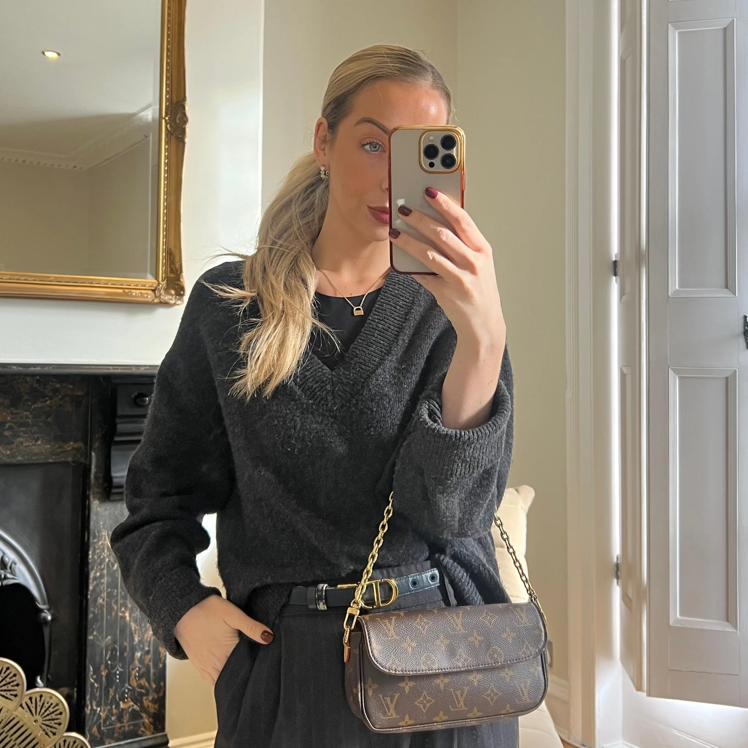 Incredibly Versatile bag with multiple different carry options. Comes with removable chain strap to wear on the shoulder and a removable and adjustable leather strap which can be worn on the shoulder short/long or crossbody.