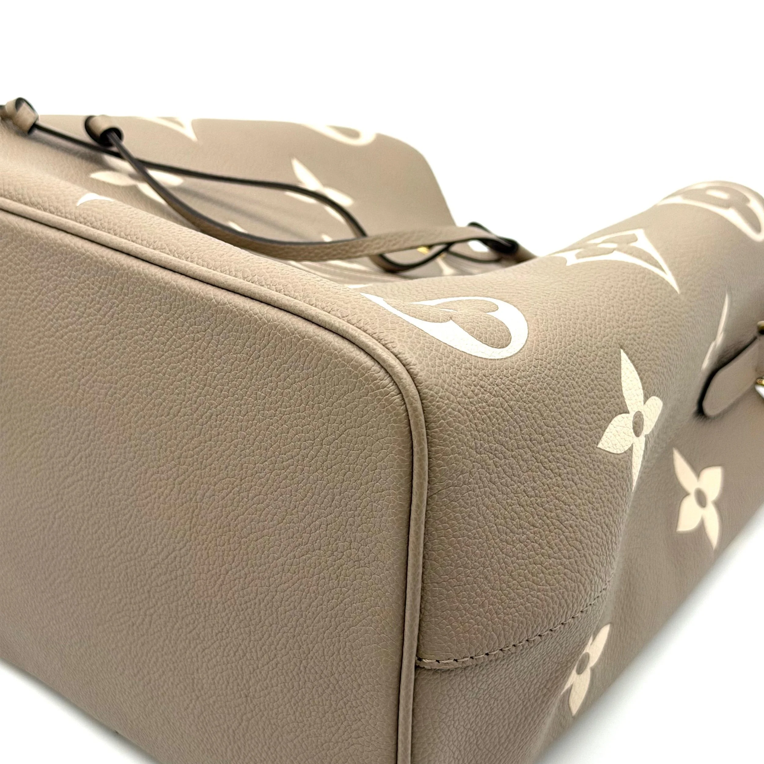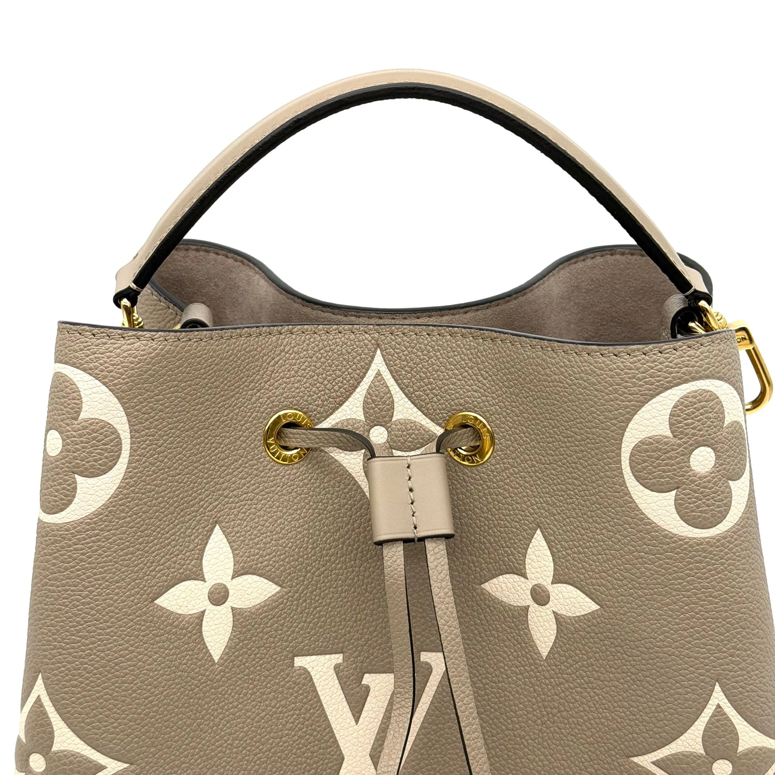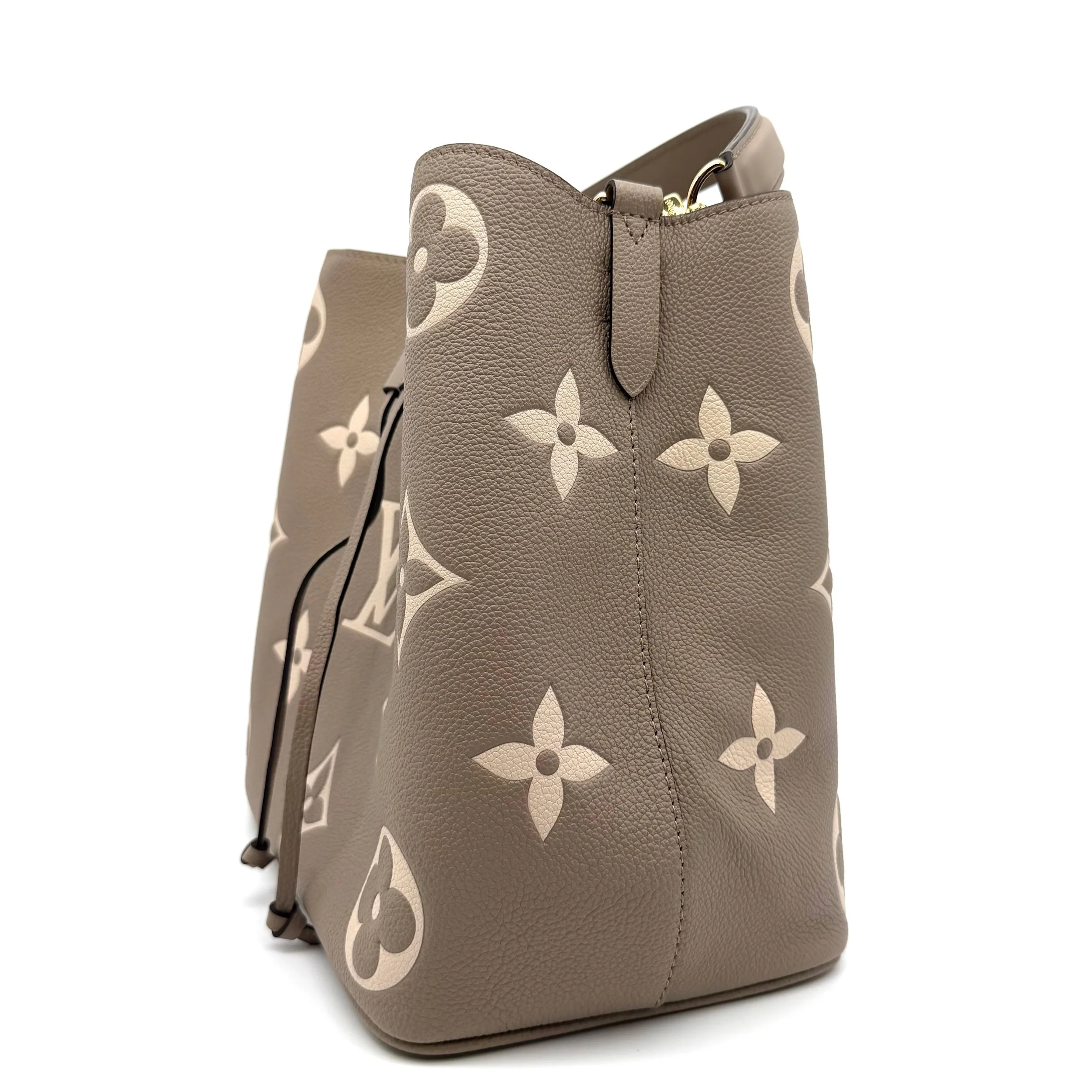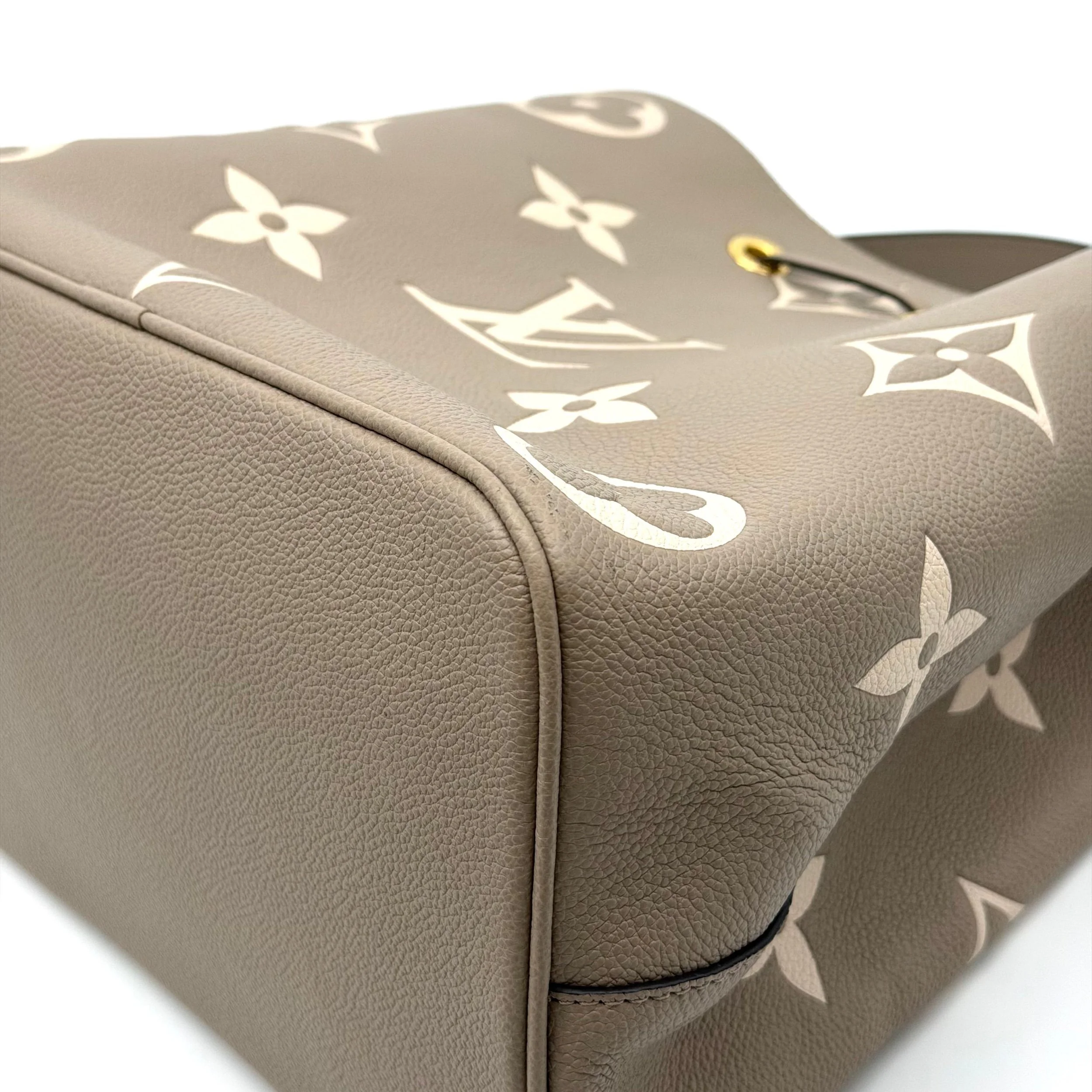 Item Description/Model: Louis Vuitton Neo Noe MM Bucket Bag Bi Colour Monogram Empreinte Leather Tourterelle / Cream Gold Hardware