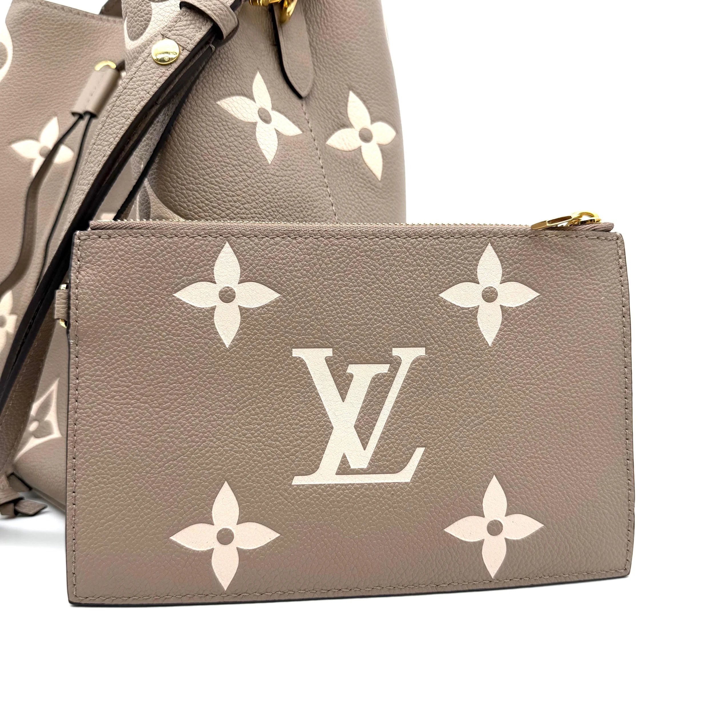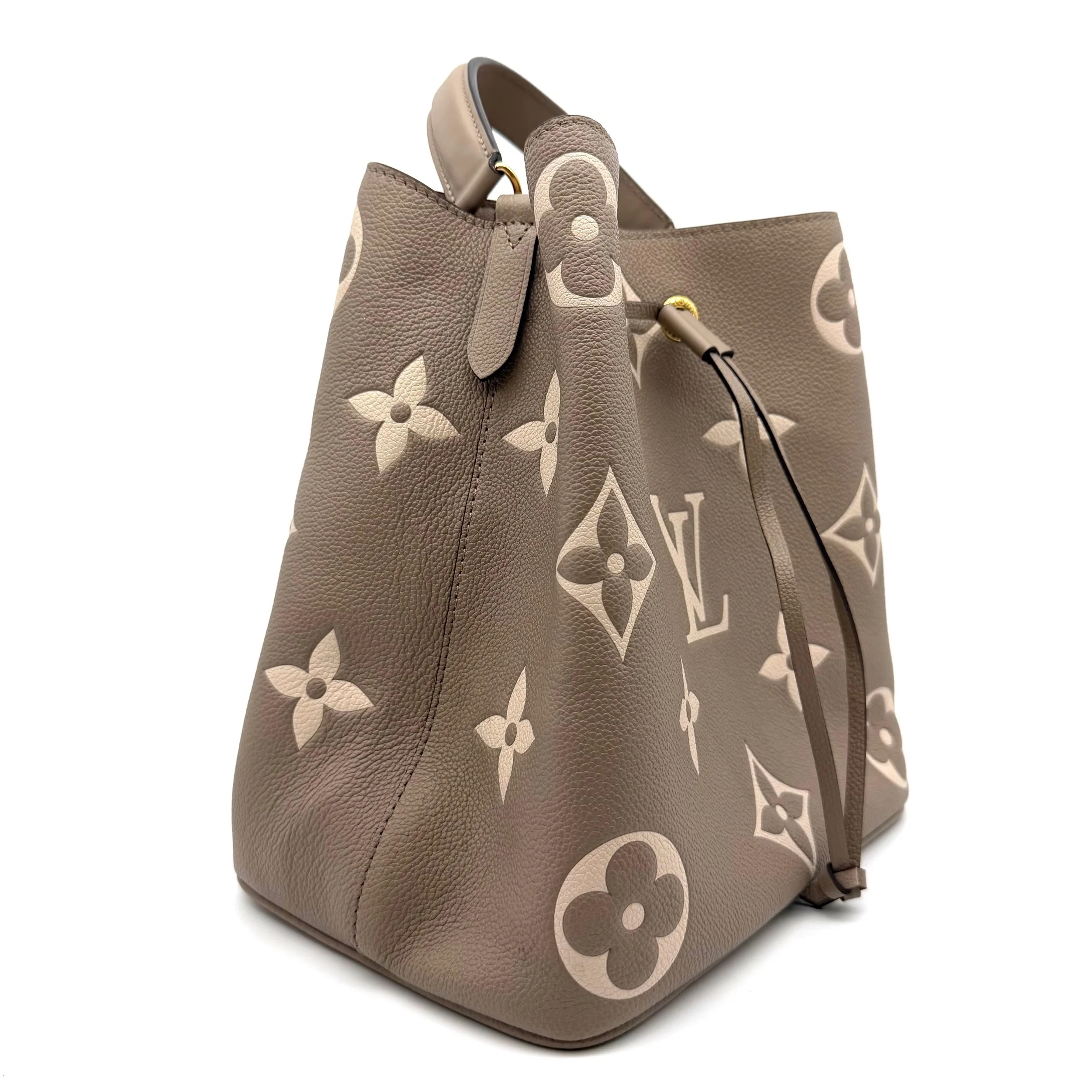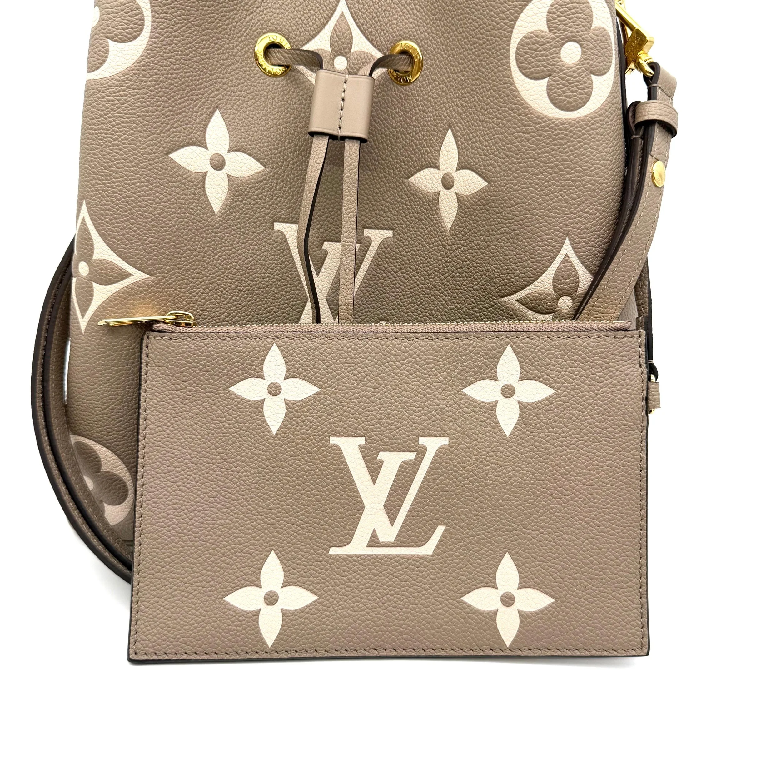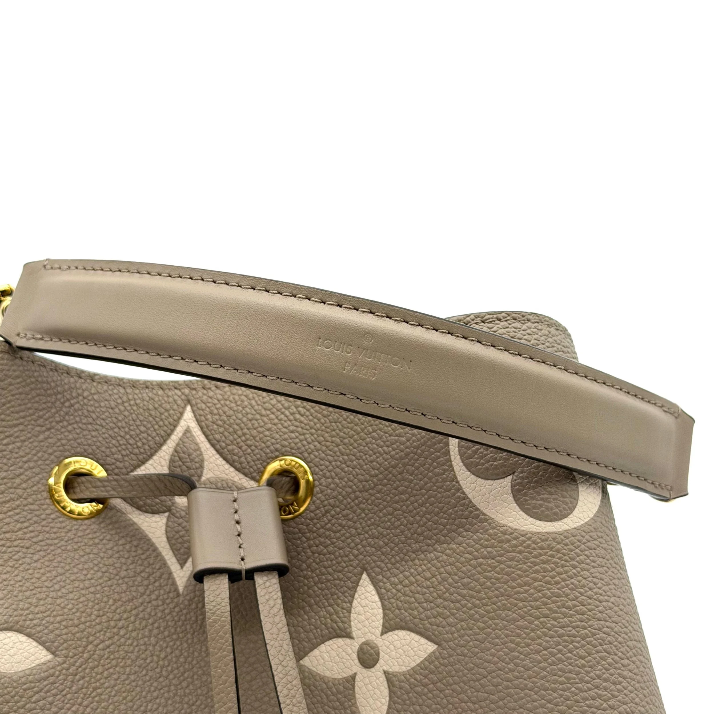 Item Description/Model: Louis Vuitton Neo Noe MM Bucket Bag Bi Colour Monogram Empreinte Leather Tourterelle / Cream Gold Hardware