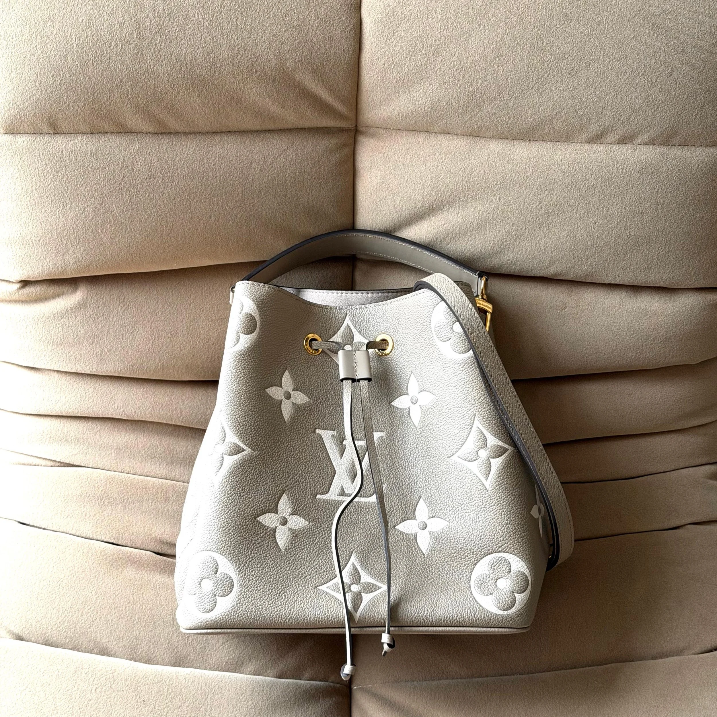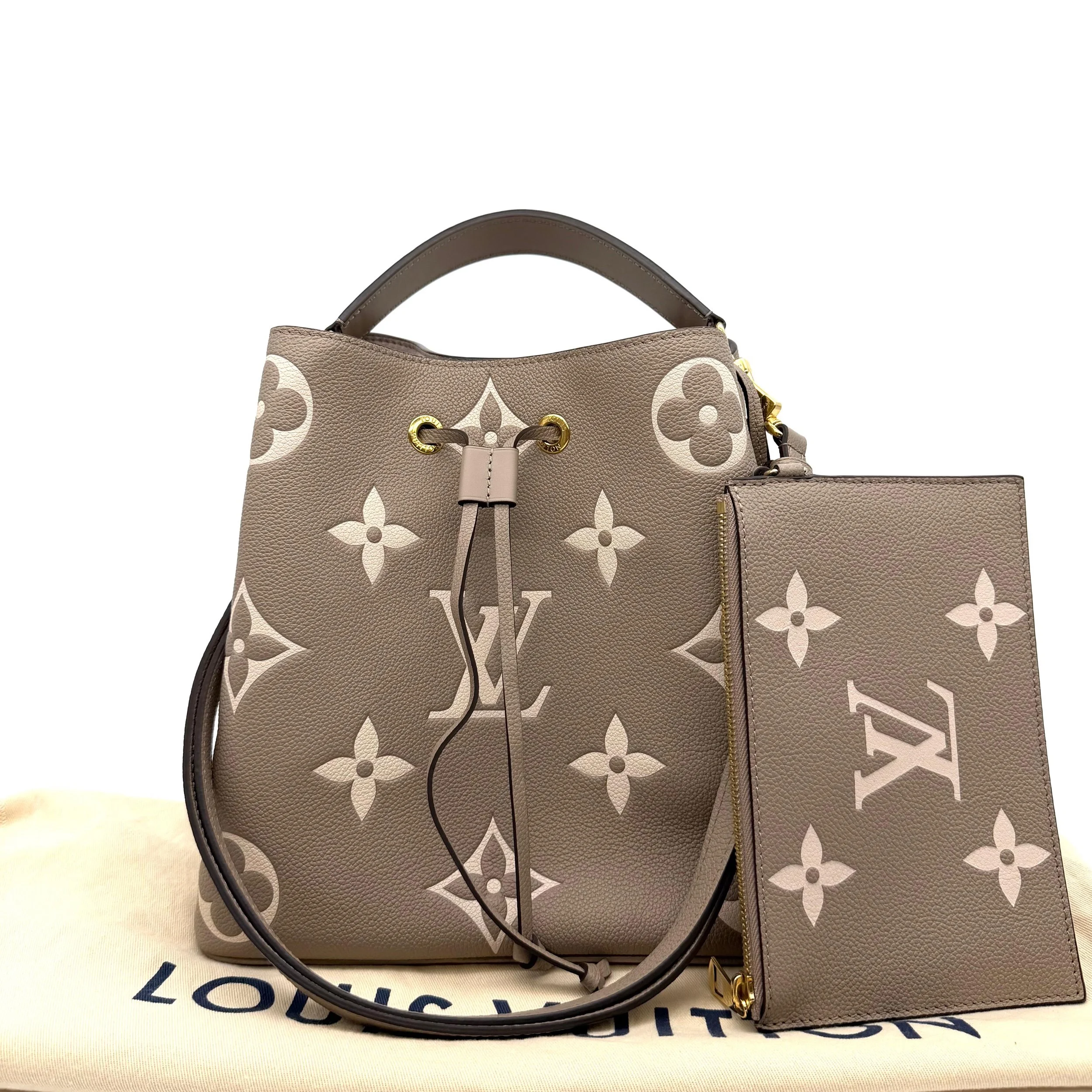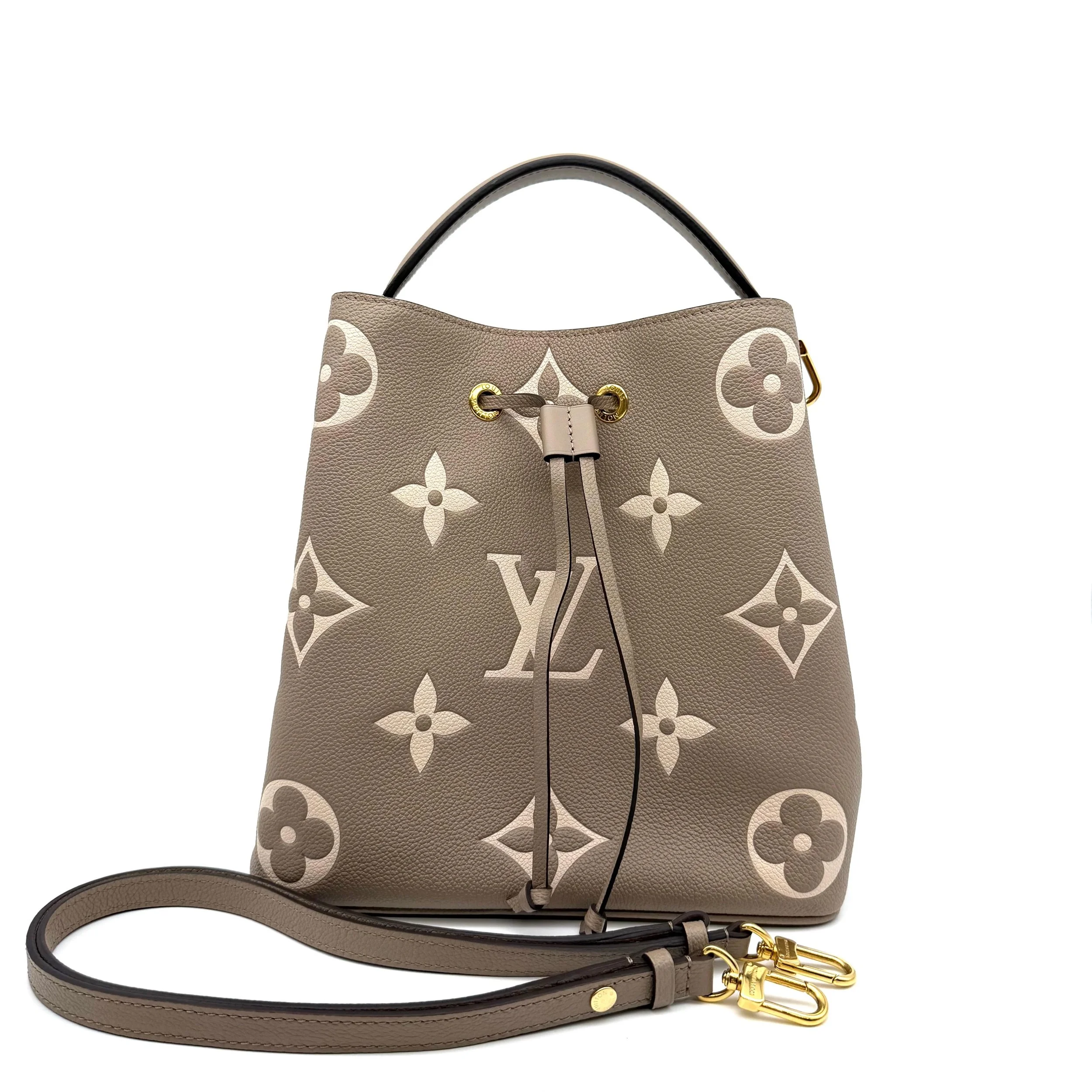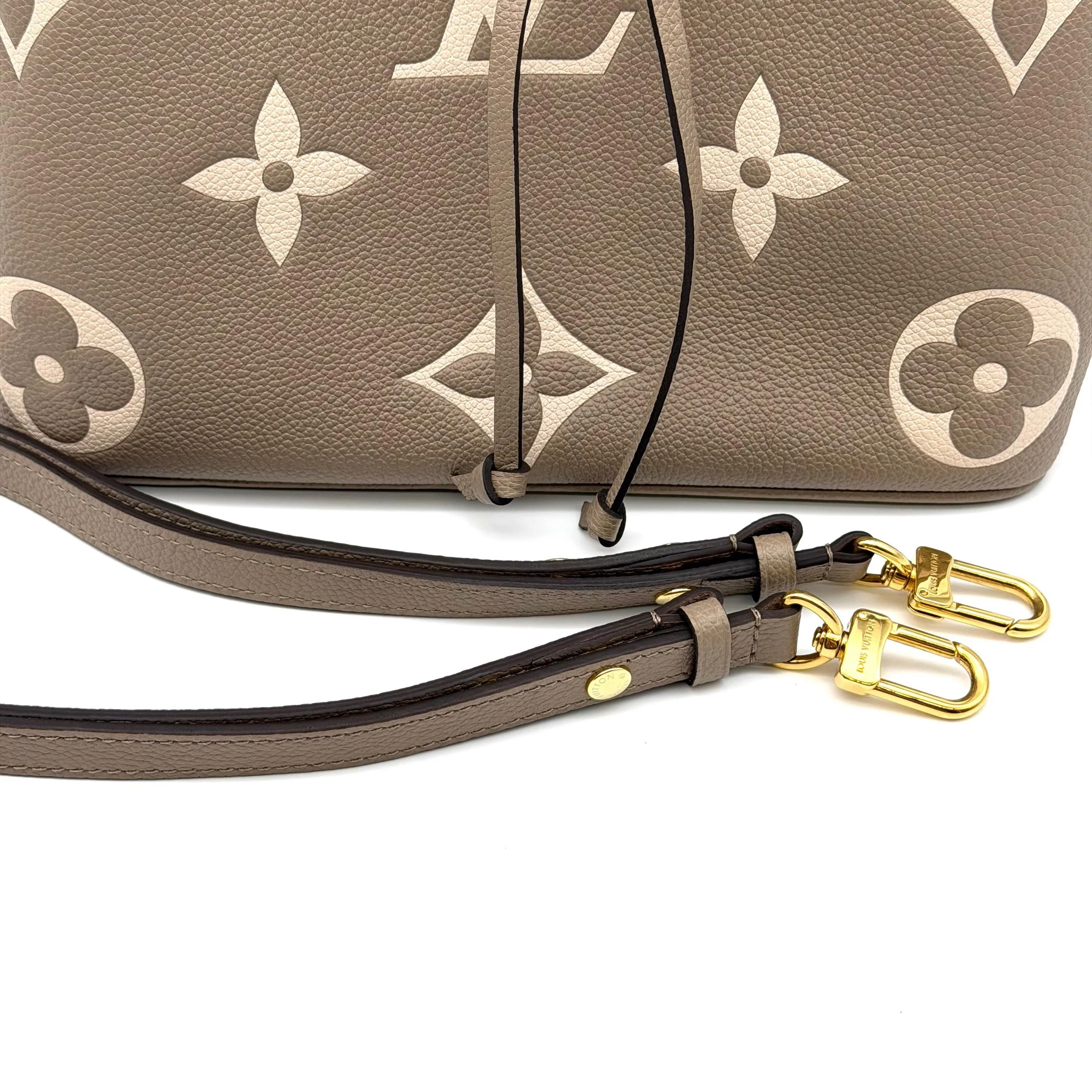 Item Description/Model: Louis Vuitton Neo Noe MM Bucket Bag Bi Colour Monogram Empreinte Leather Tourterelle / Cream Gold Hardware